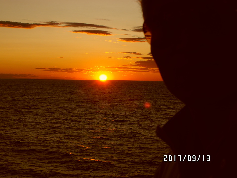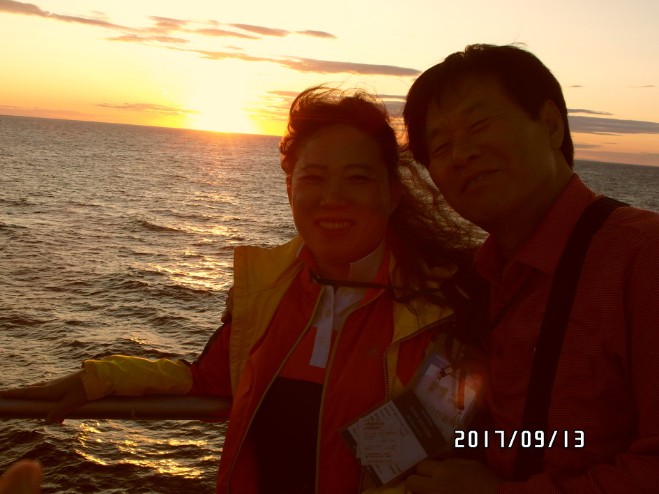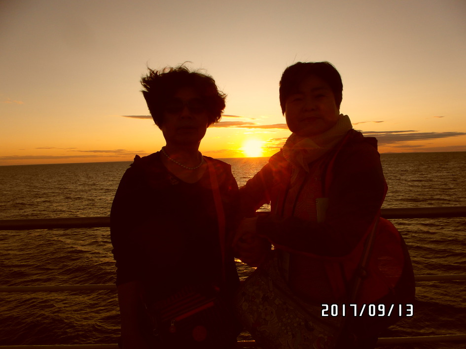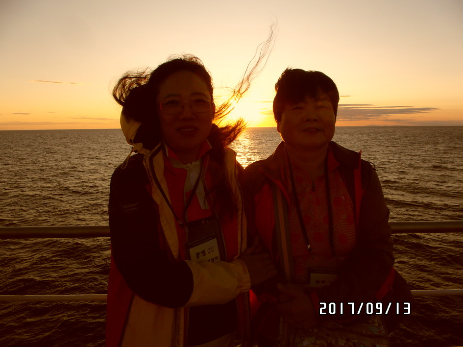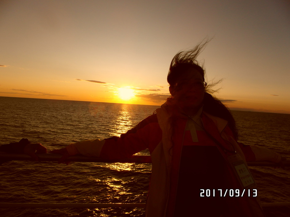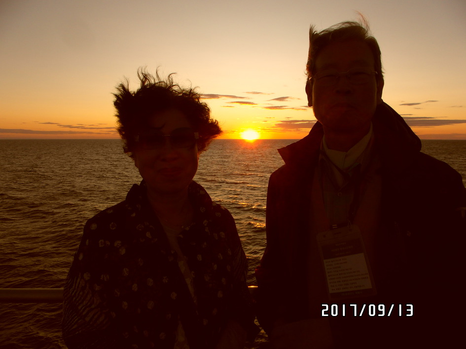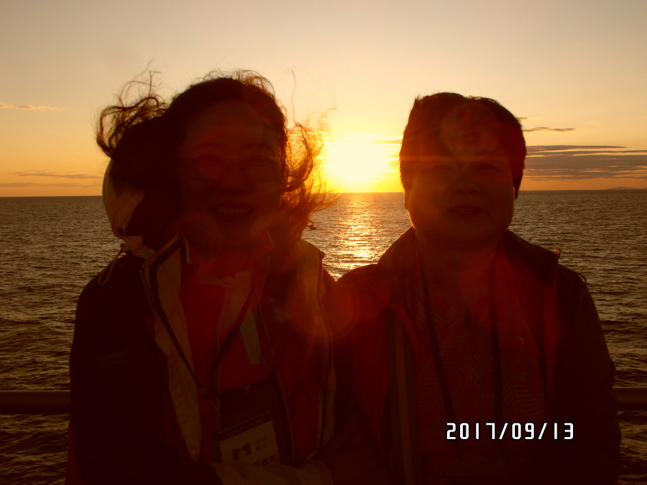 가면서 못 본 낙조와 내일 아침 일출을 기대하면서 크루스선 이스턴 드림호에 오른다