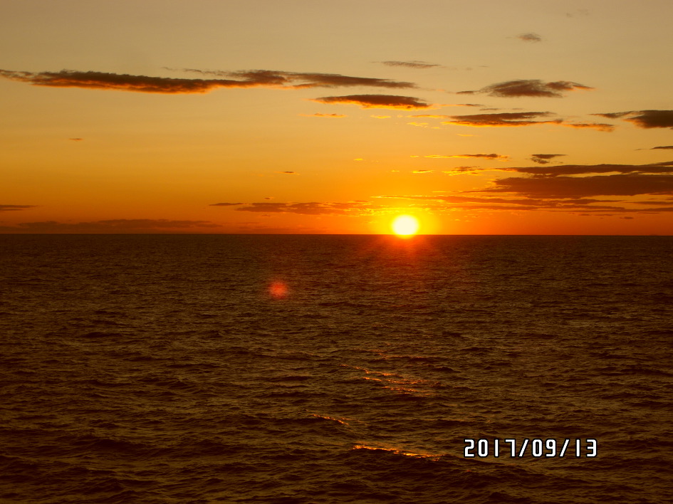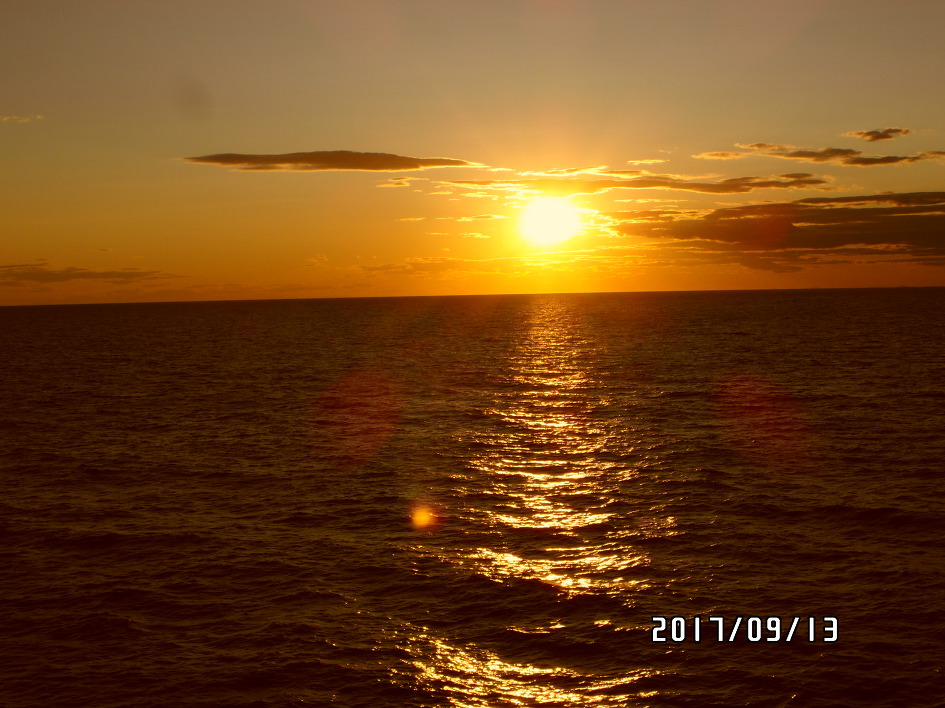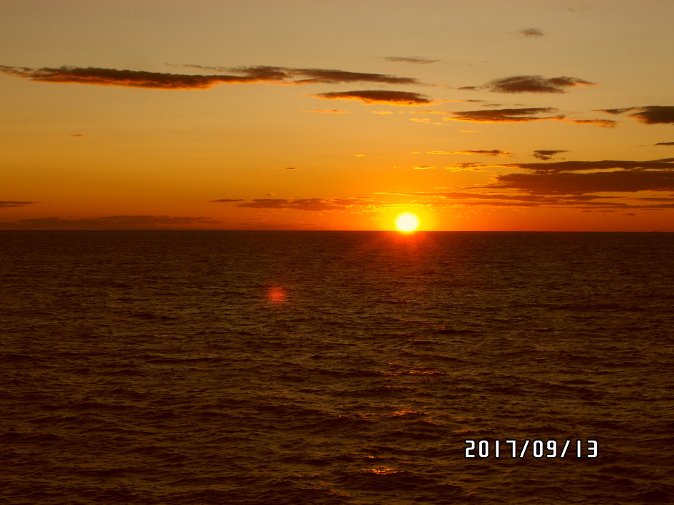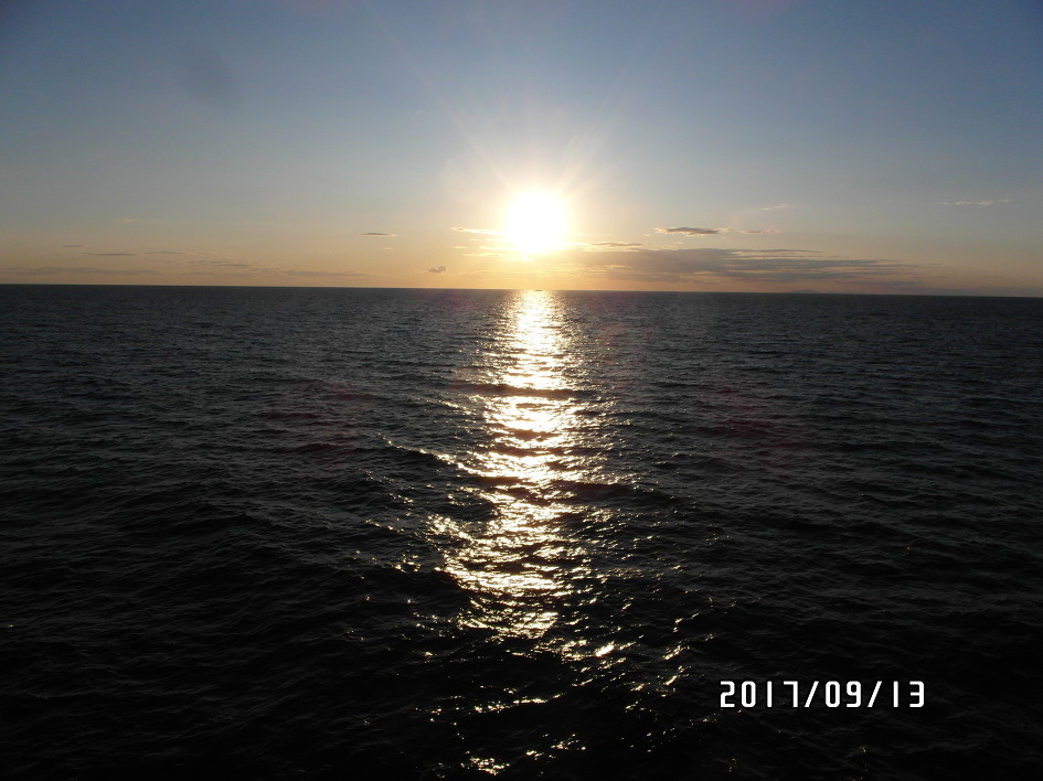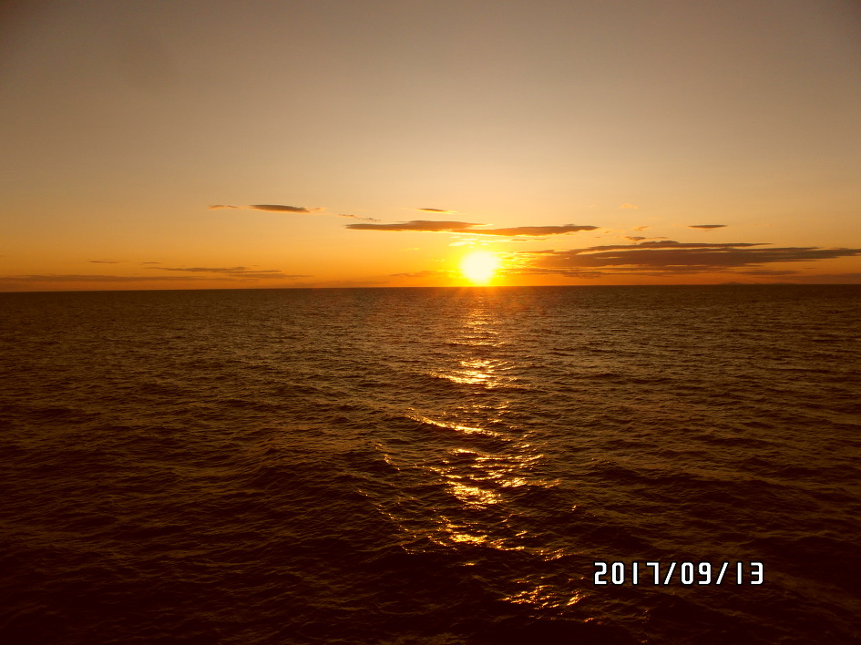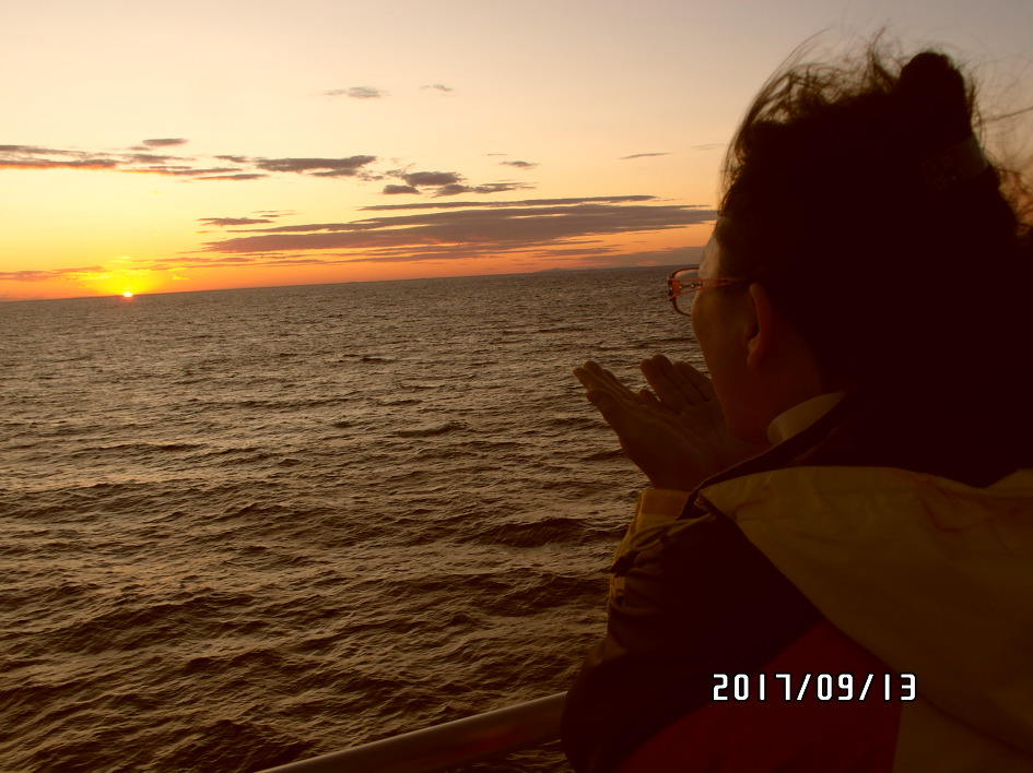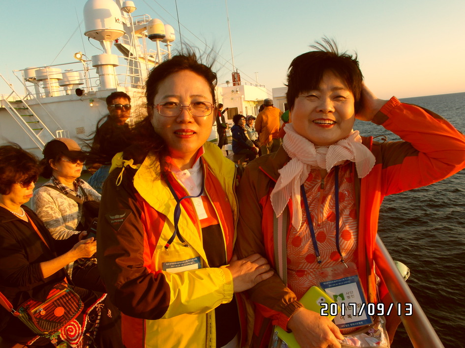 가면서 못 본 낙조와 내일 아침 일출을 기대하면서 크루스선 이스턴 드림호에 오른다