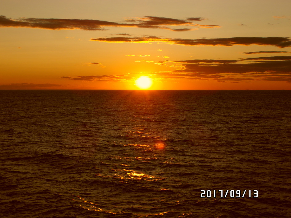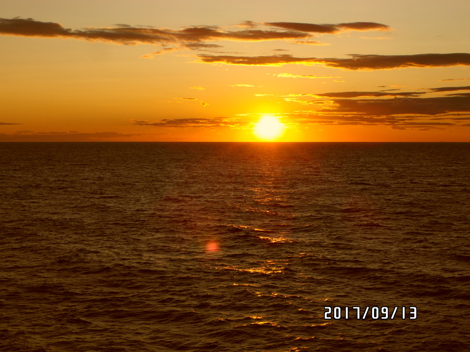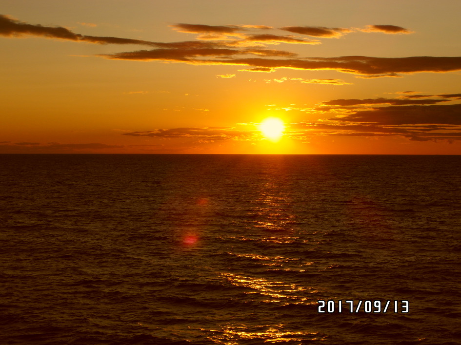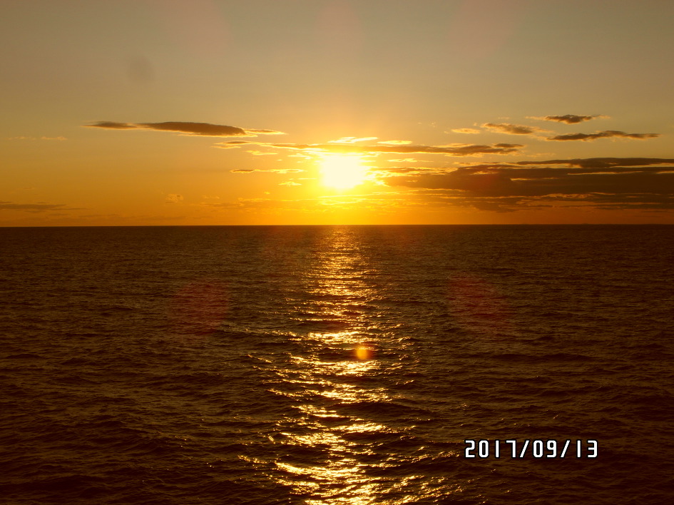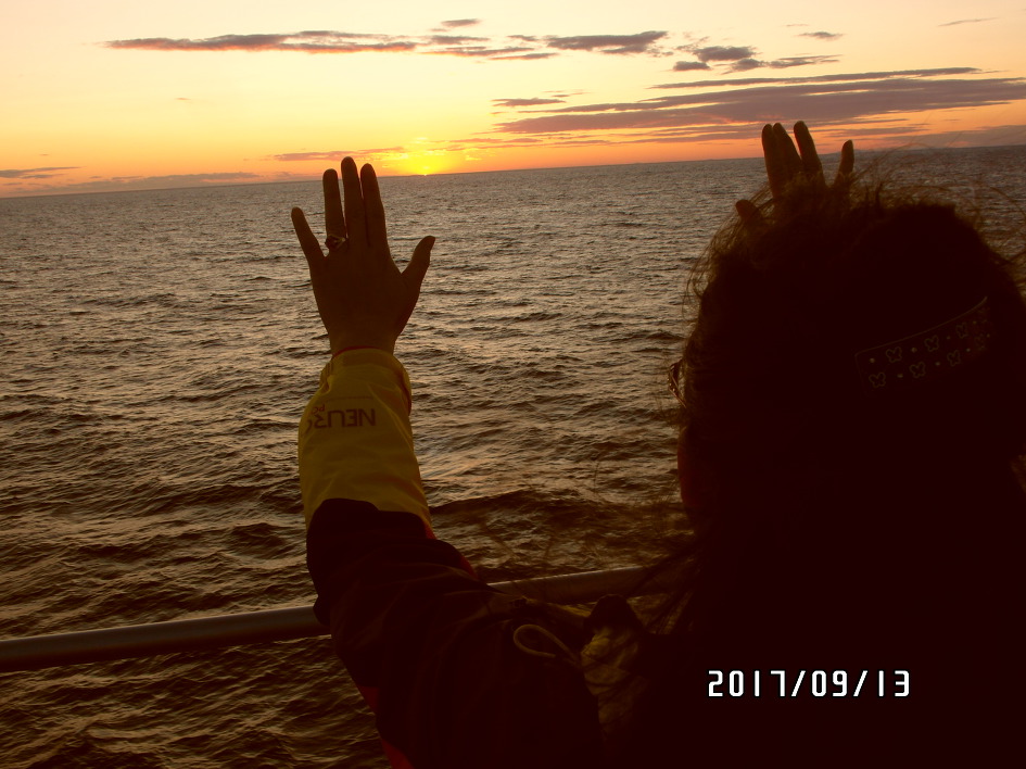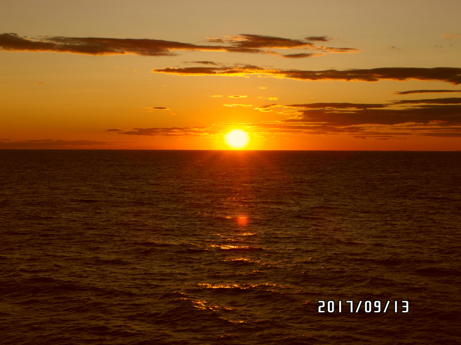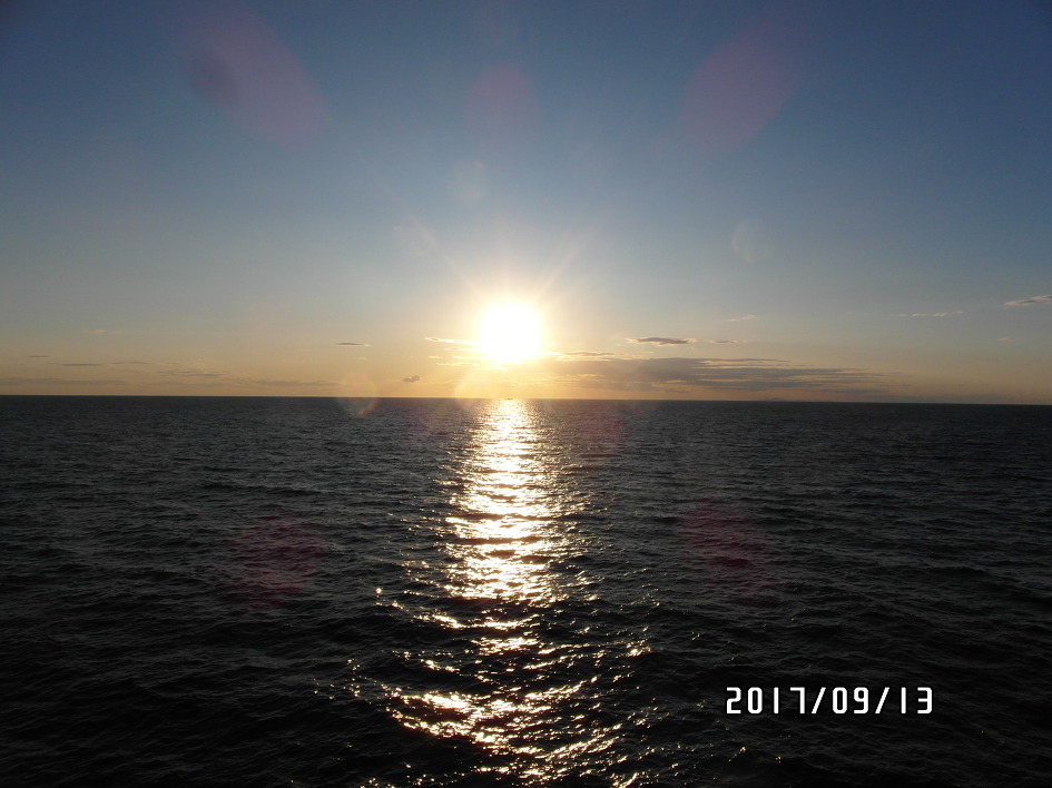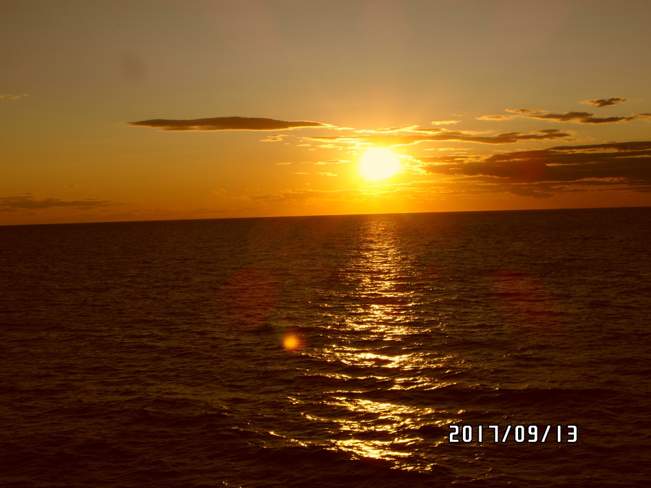 가면서 못 본 낙조와 내일 아침 일출을 기대하면서 크루스선 이스턴 드림호에 오른다