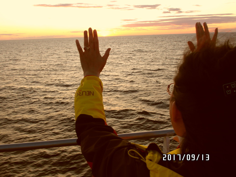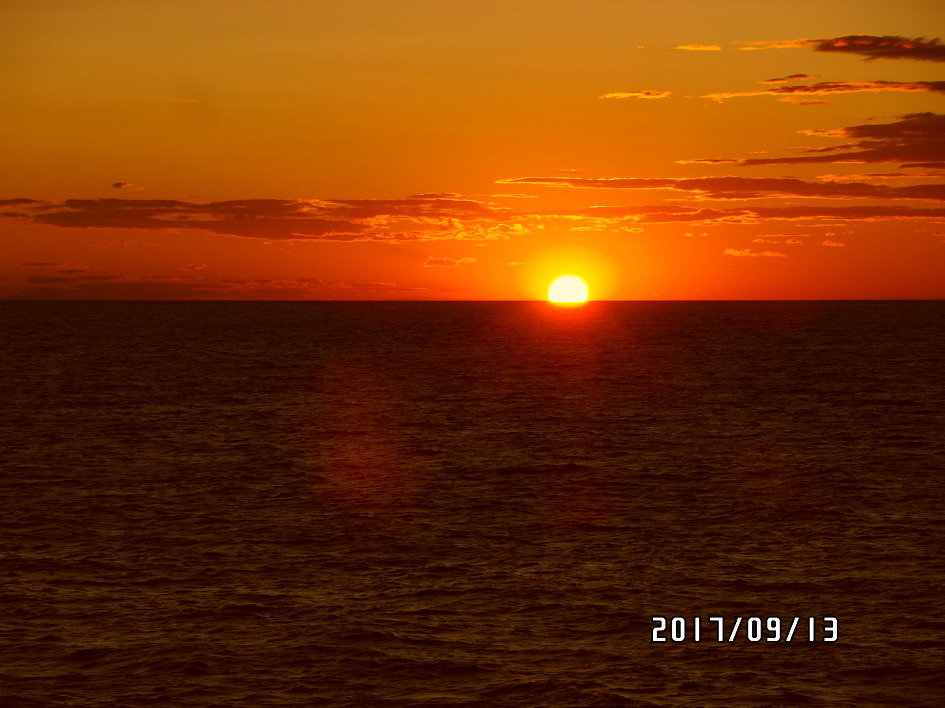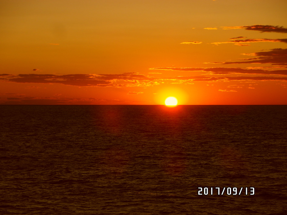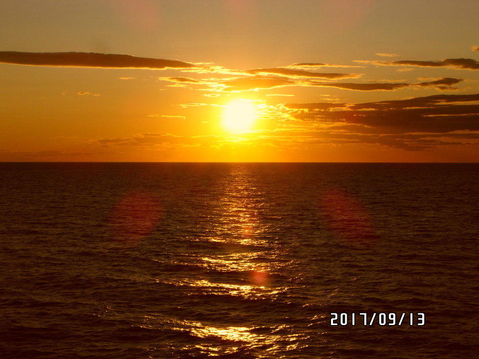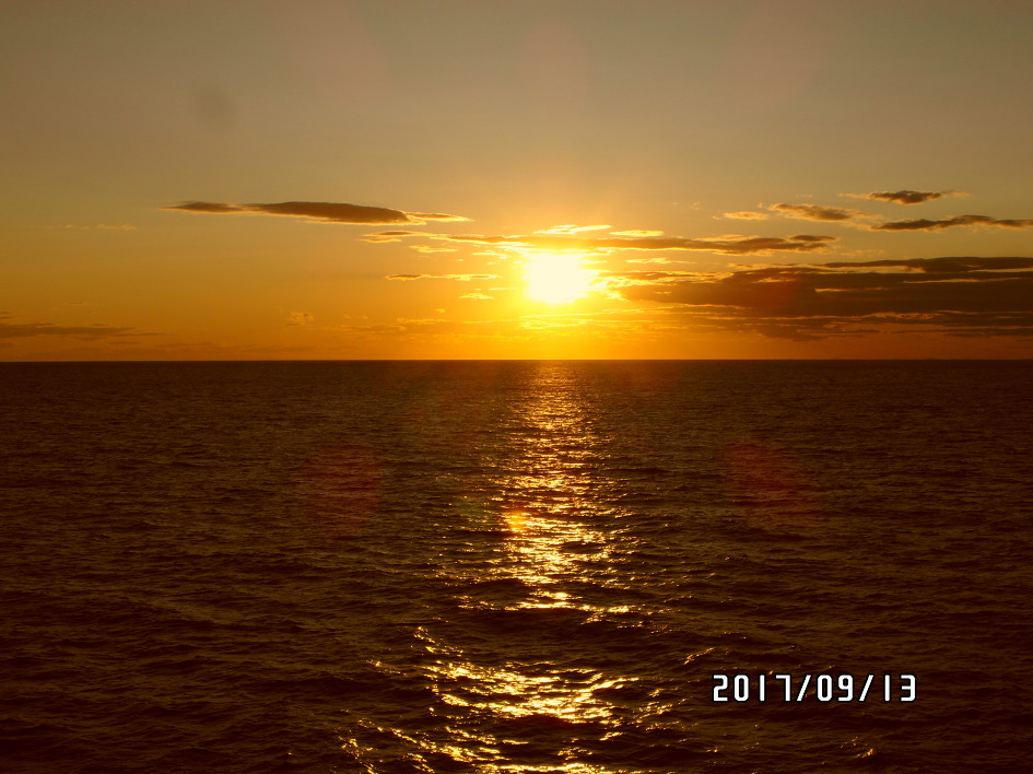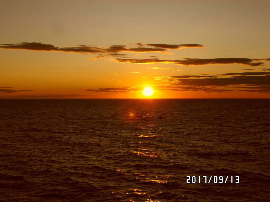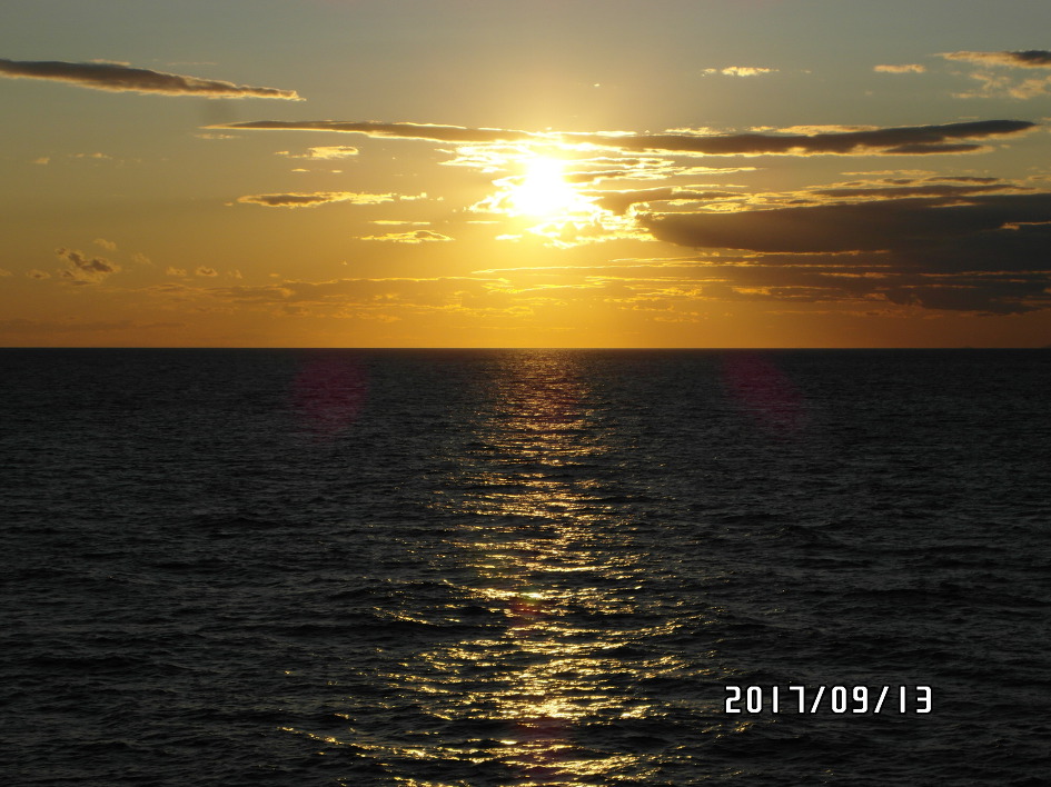 가면서 못 본 낙조와 내일 아침 일출을 기대하면서 크루스선 이스턴 드림호에 오른다