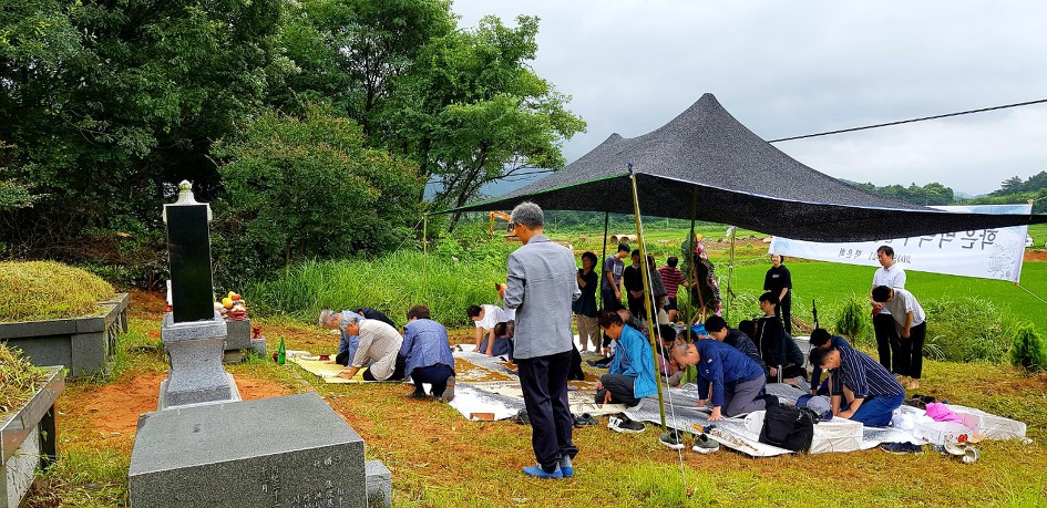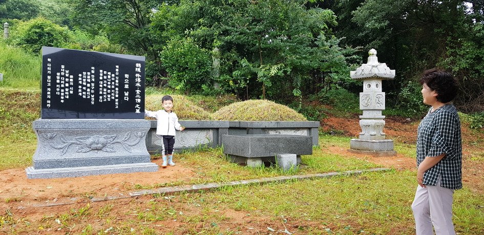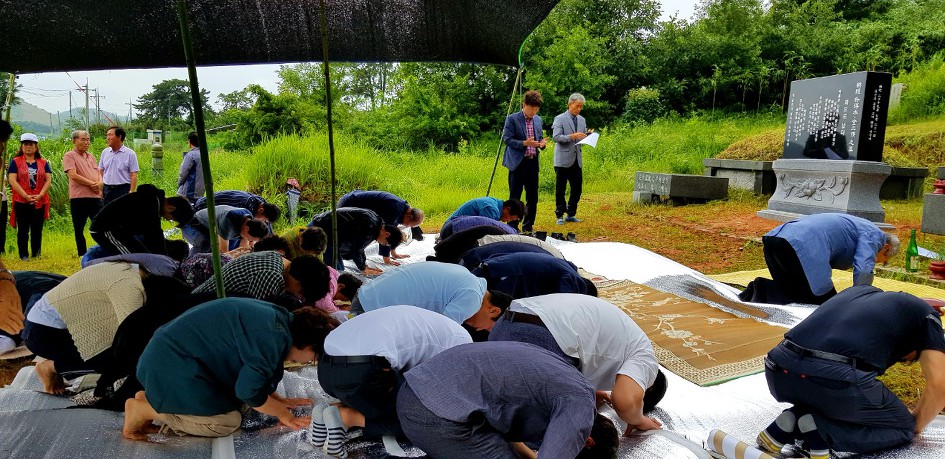 오늘 묘소 앞에 자식과 손자들이 모여 아버님 어머님 추모하는 글을 비에 새겨 바칩니다