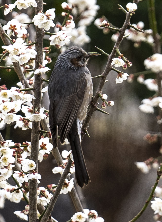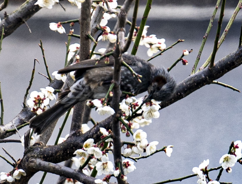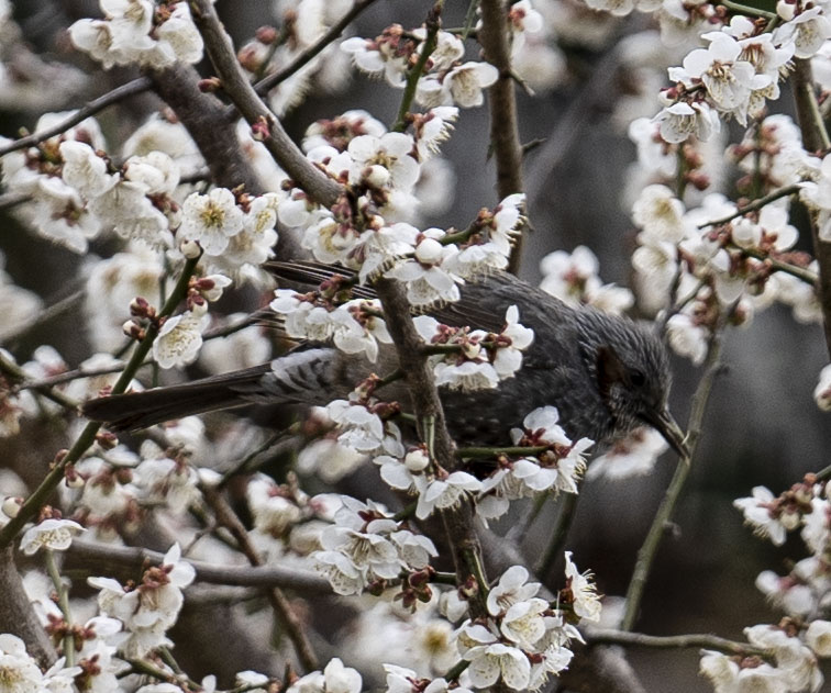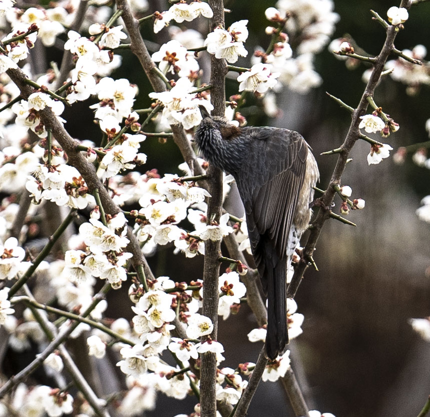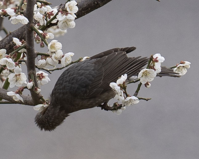 겨울 옷 껴 입은 직박구리 매화방을 찾다
