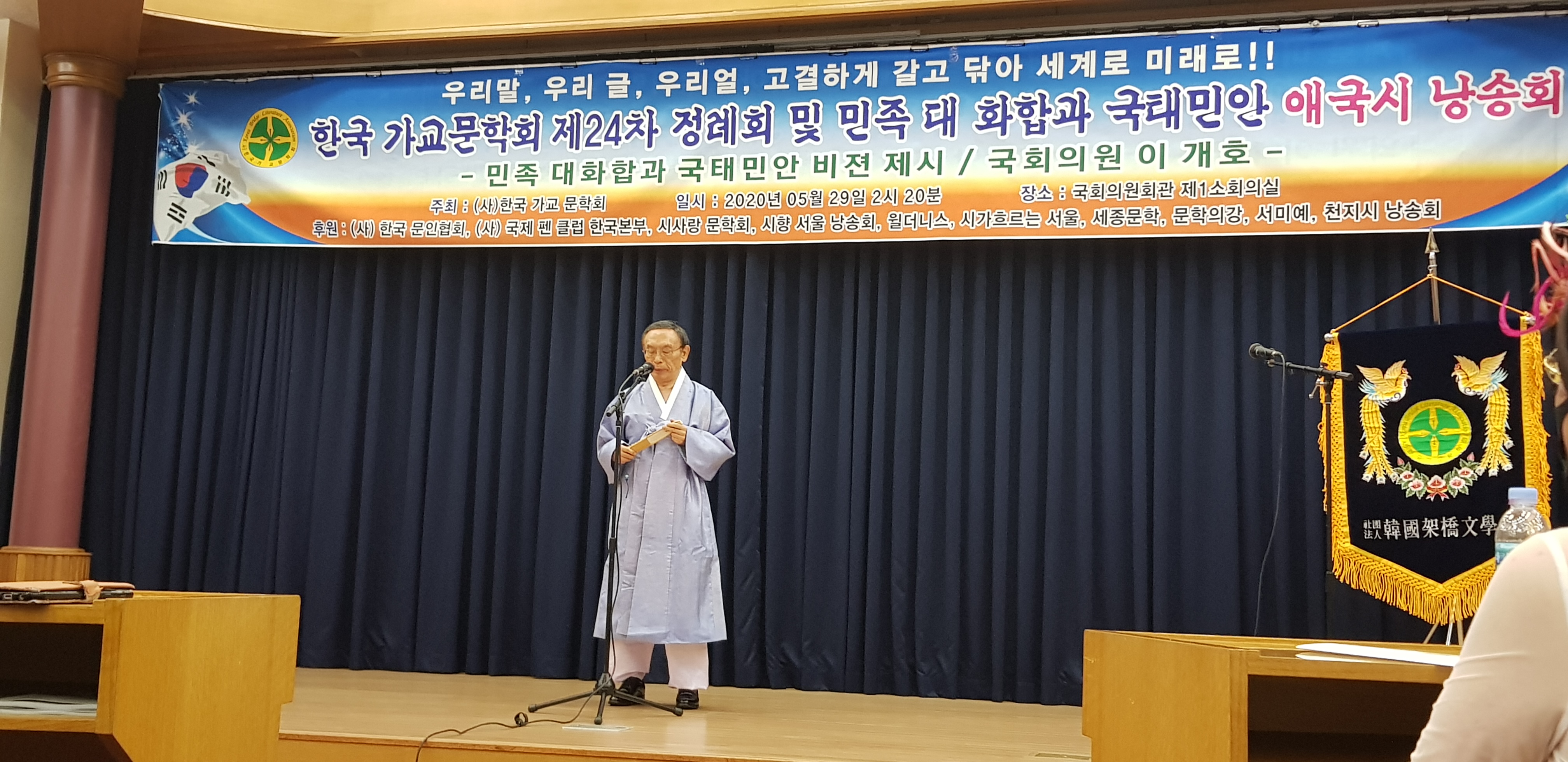 2020. 5. 29 국회의원회관 제 1소회의실에서 가교문학 애국시 낭송회가 열렸다