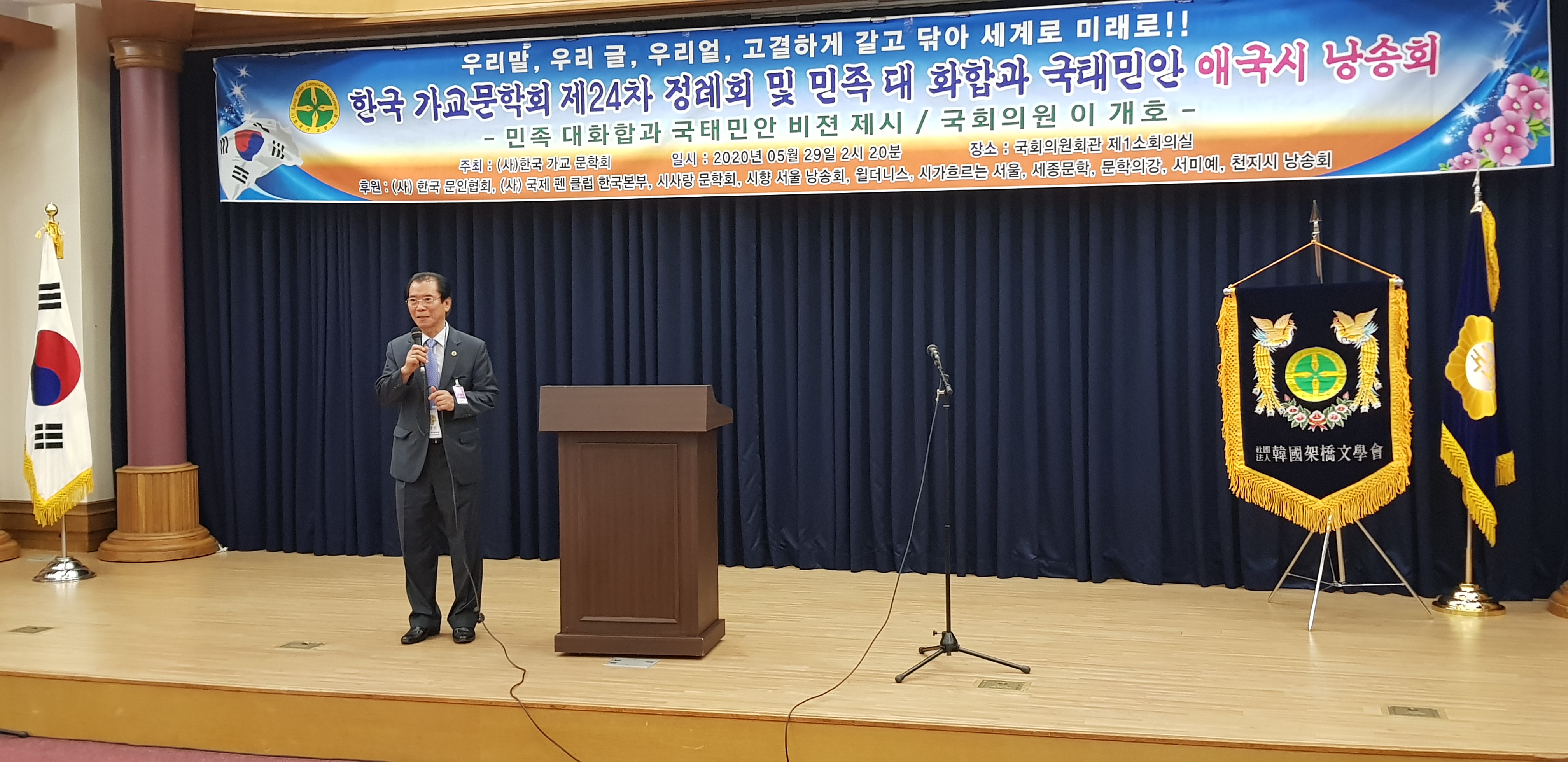이번 행사는 가교문학회 제 24차 정례회 및 애국시 낭송회라는 주제이다