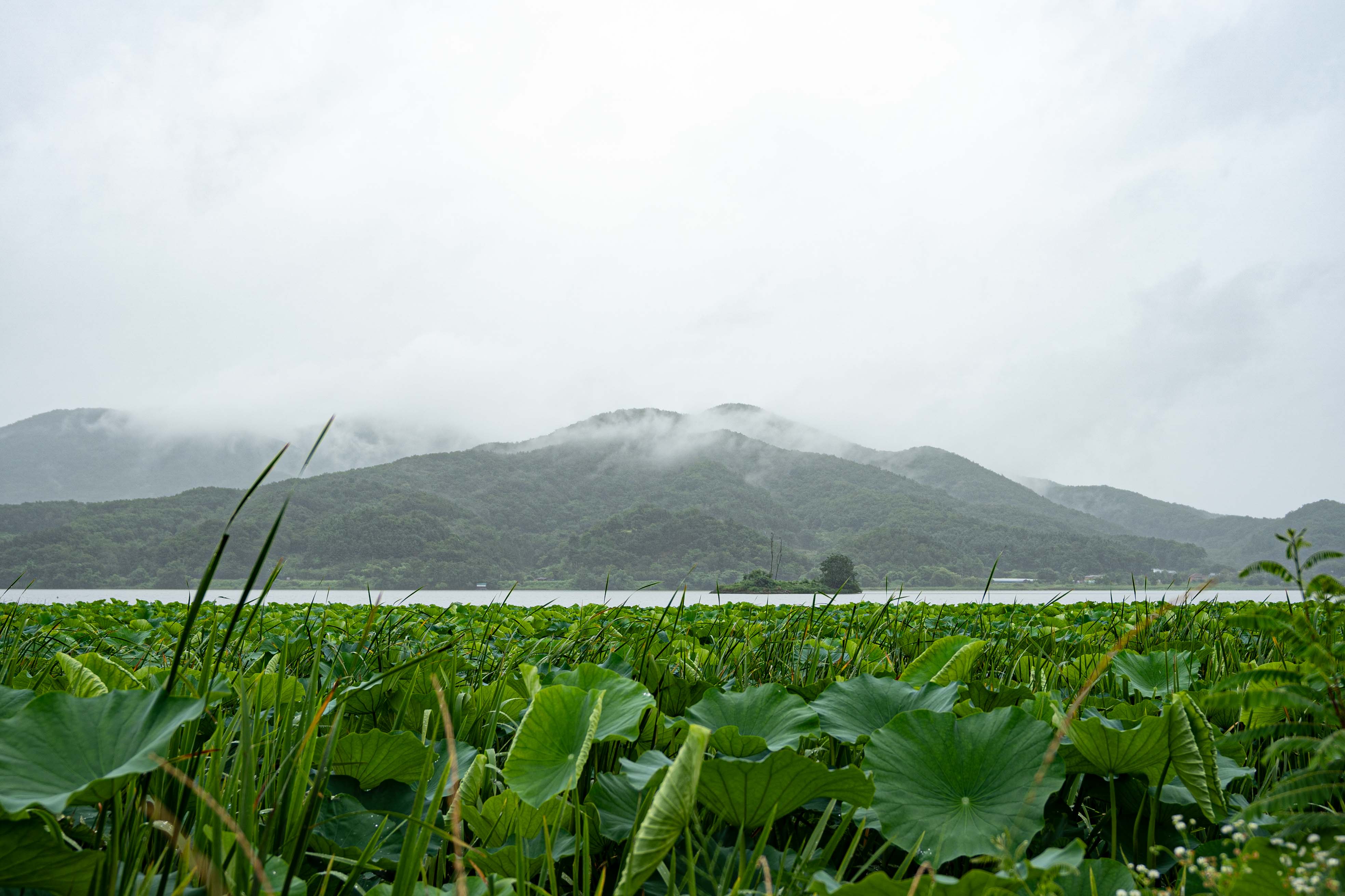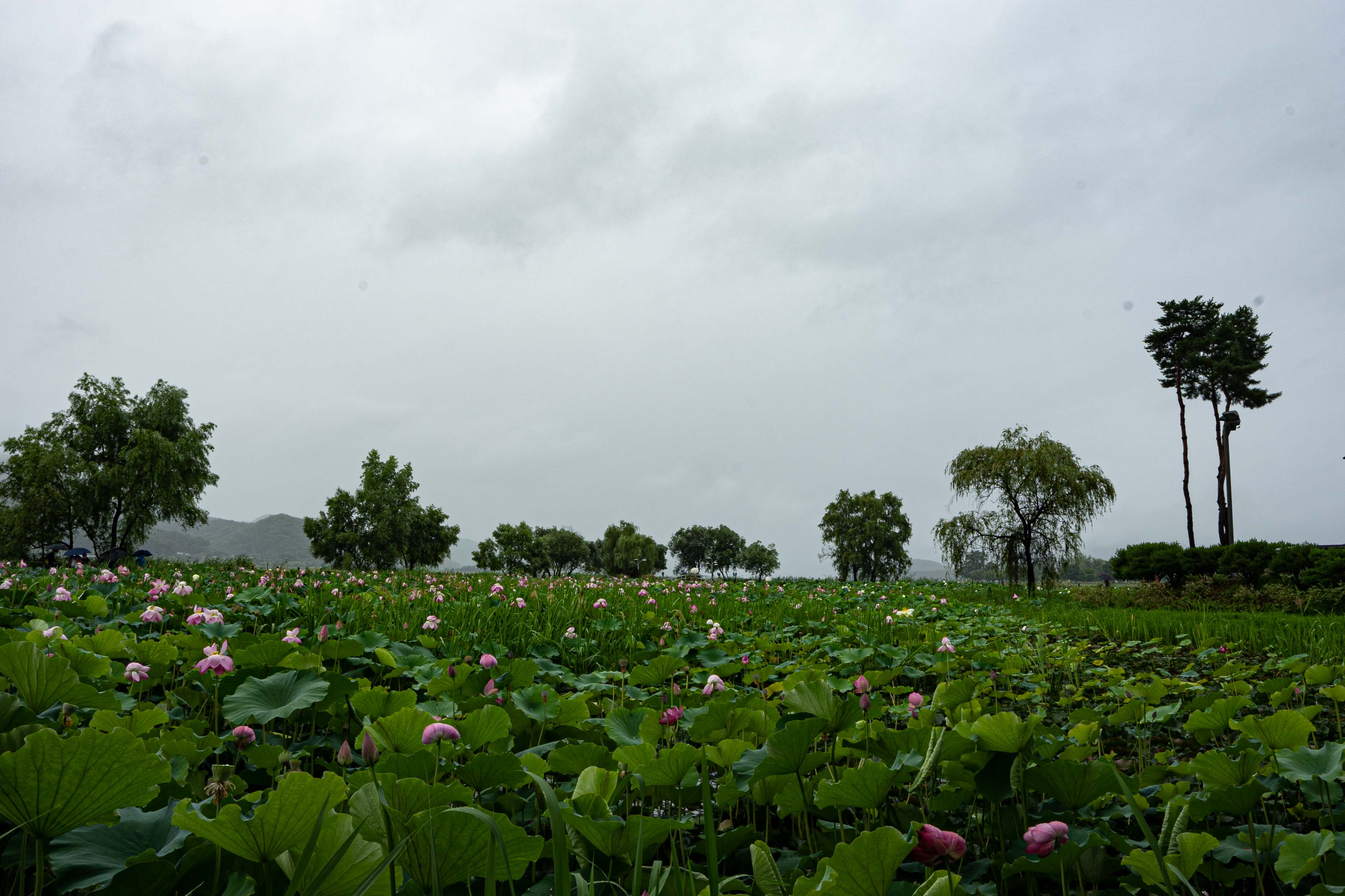 6월부터 8월까지 연꽃 문화제 기간이라서 붐빌텐데 비가 내리고 코로나 영향으로 비교적 한적하다