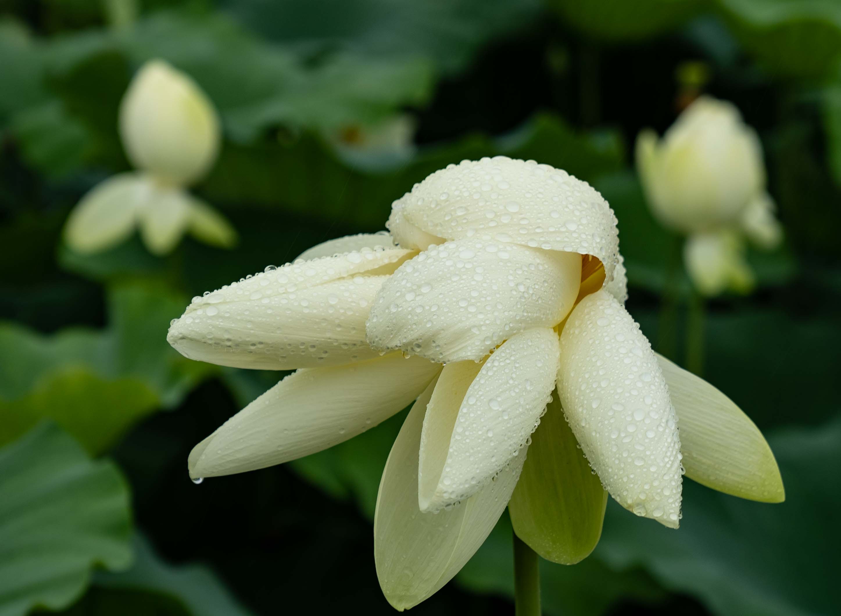 비가 오는 날 젖은 창호지 구겨지듯 낱꽃잎이 처져 있어 완전하게 핀 연꽃은 찾을 수가 없어도
