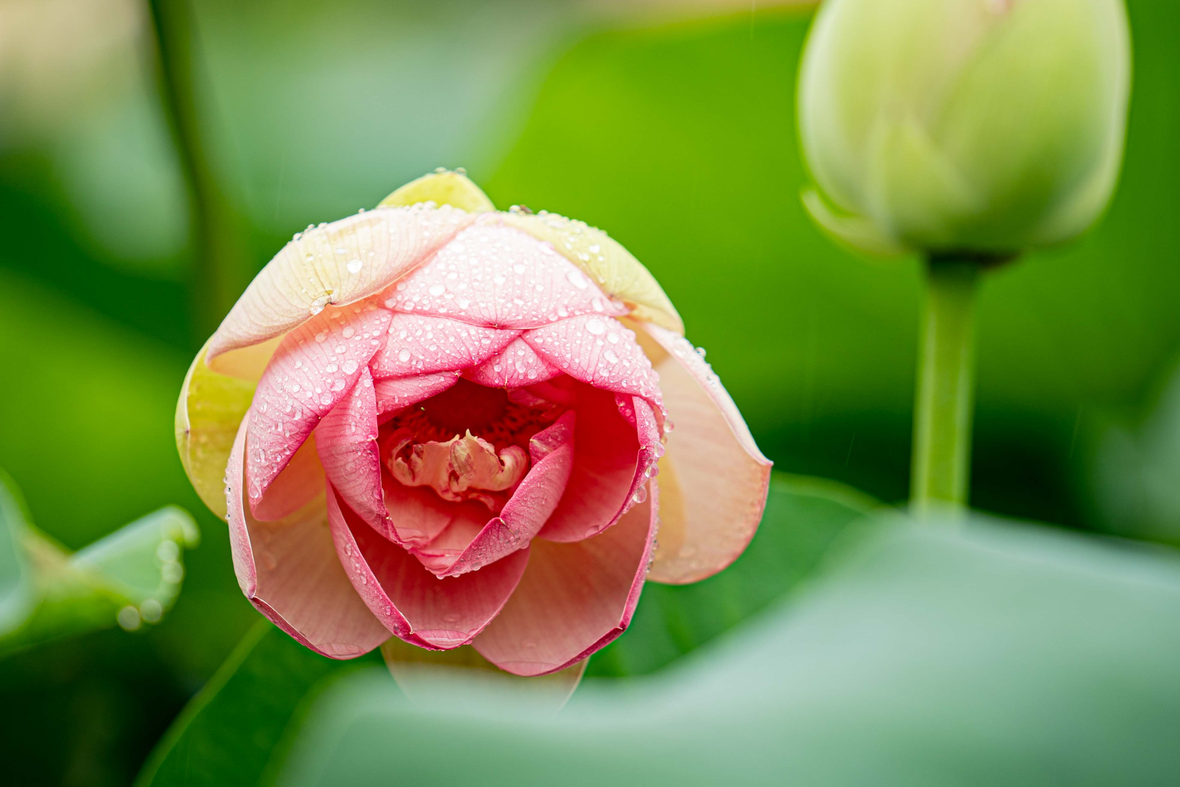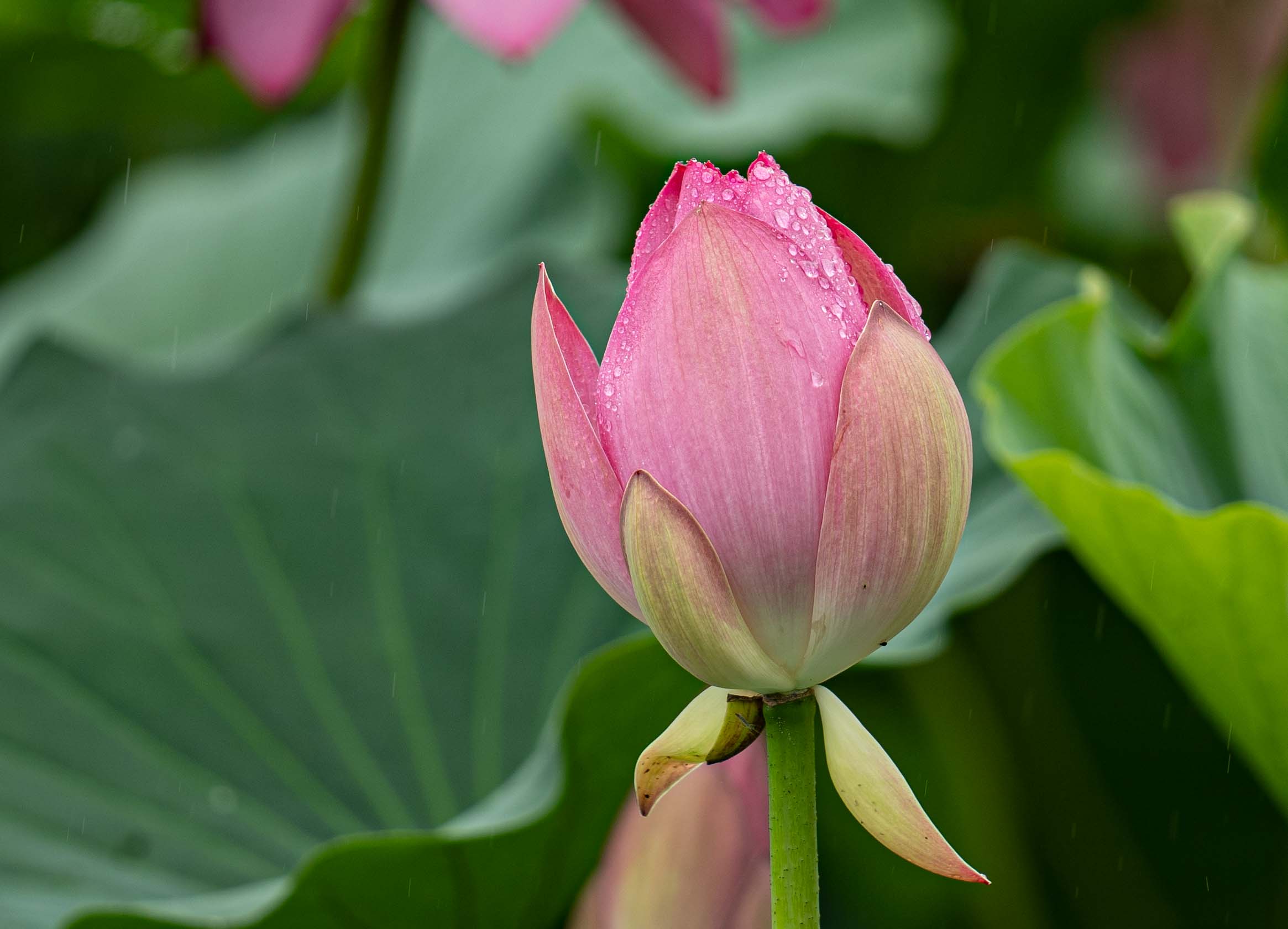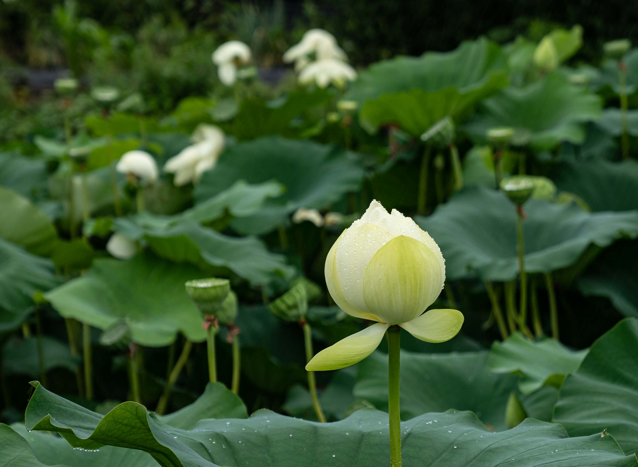 비가 오는 날을 선택한 것은 연잎과 연꽃에 맻힌 빗방울 모습을 보기 위함이다