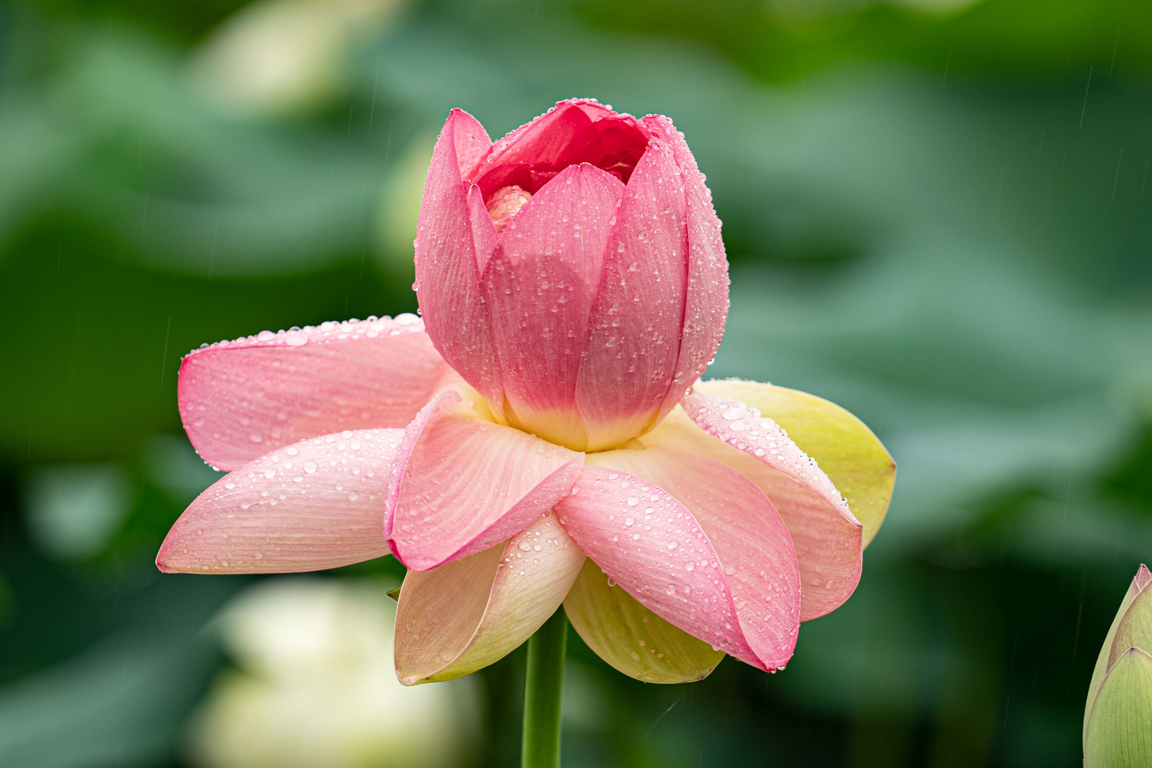 빗속 연꽃이 피어나고 있는 세미원에서 꼭 맞는 홍연의 시다