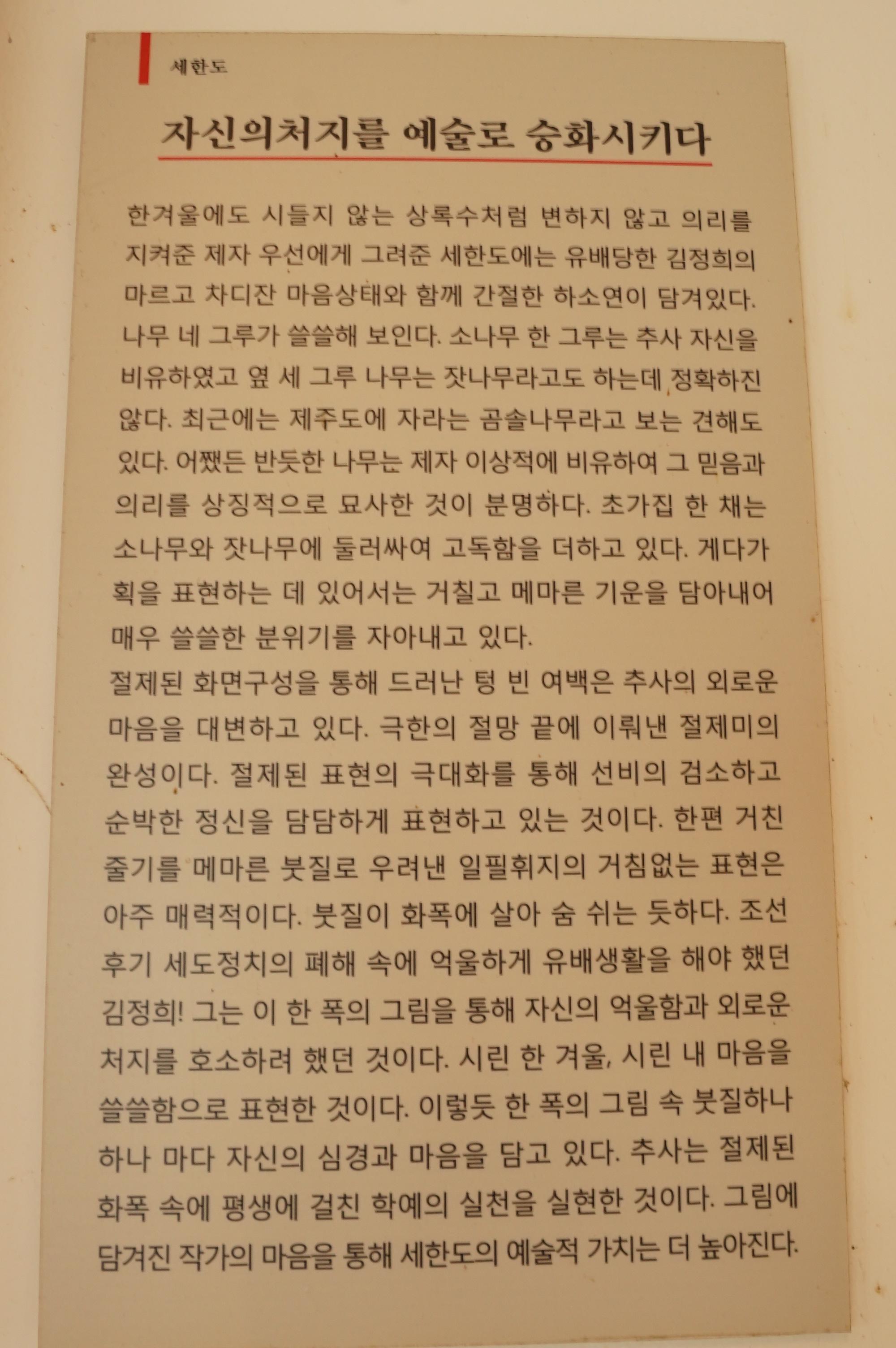 세한도는 너무 유명해서 모르는 사람이 없을 정도인데 다 아는 사람은 적다고 한다 그래서 한 걸음 더 깊이 알아두는 게
