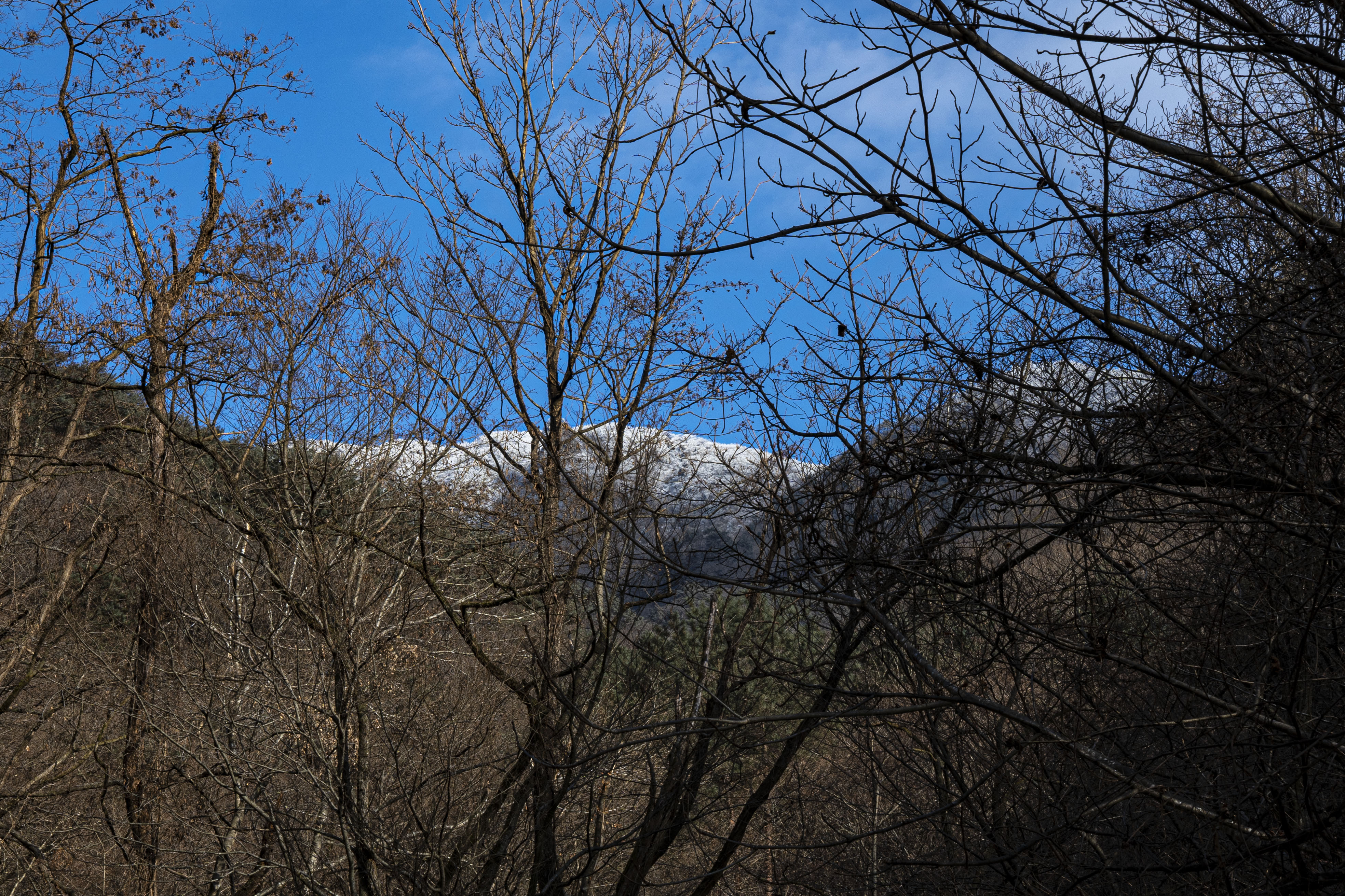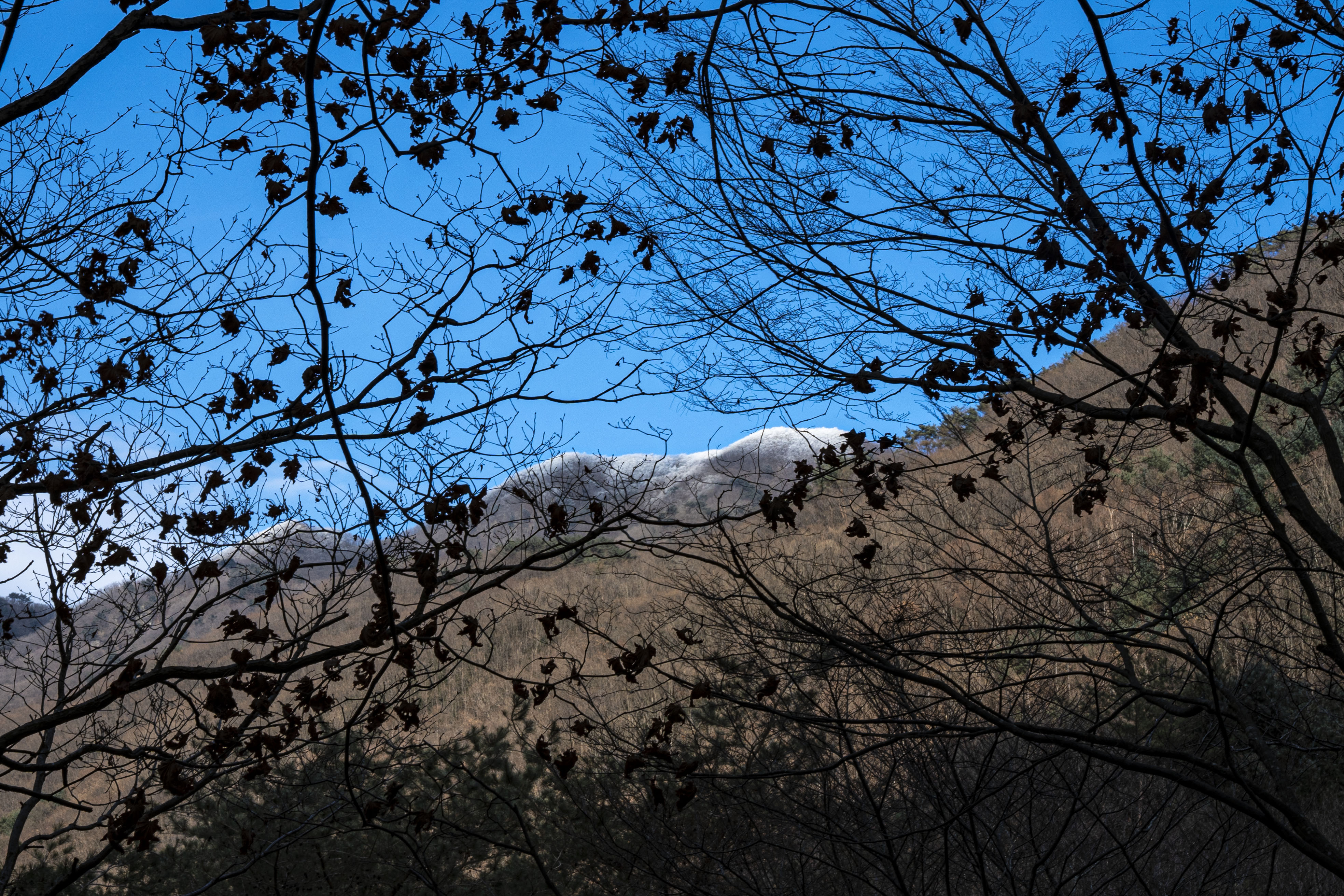 산 정산에는 눈이 내려 만년설을 연상케하며 하얗게 센 백발을 드러내고 있다