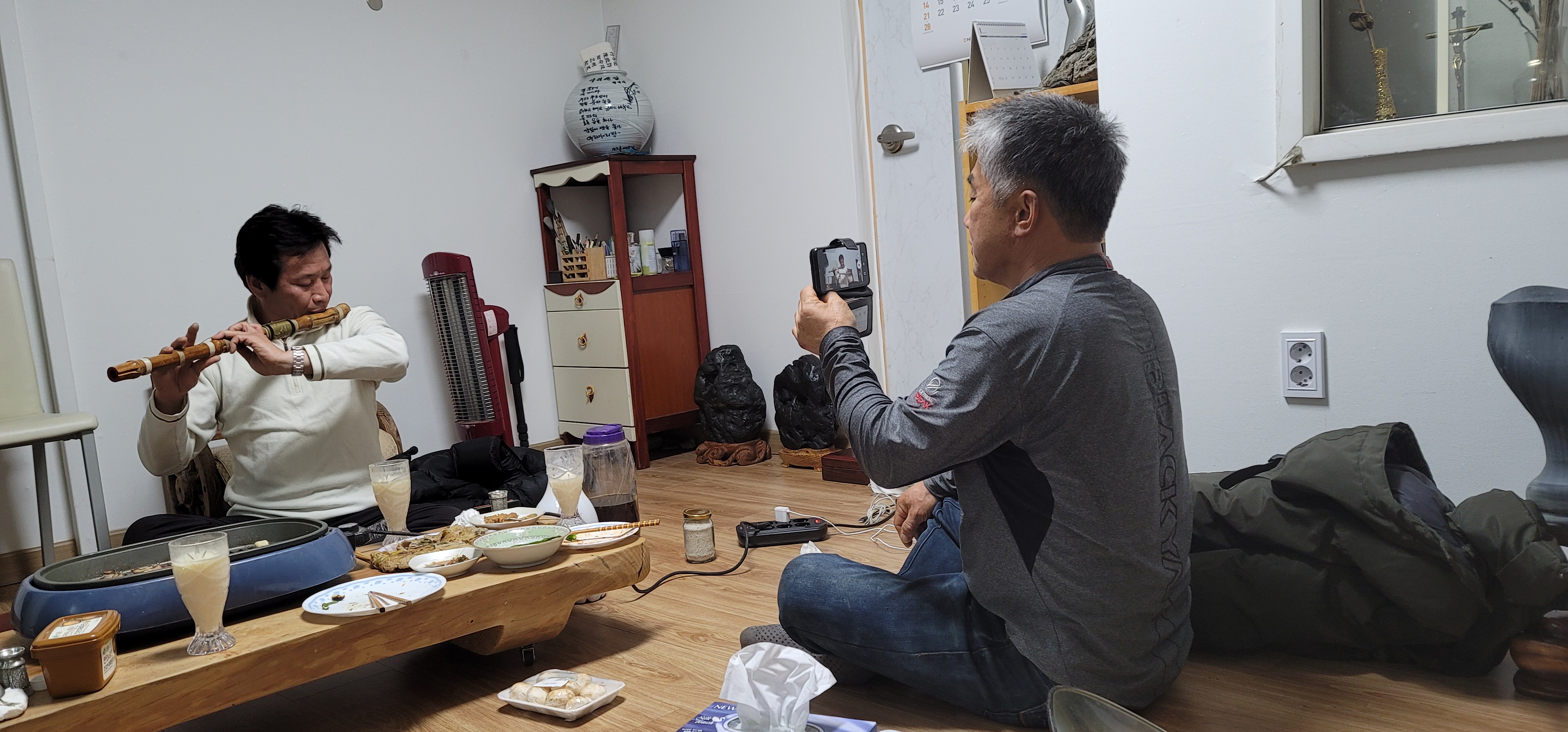대금과 하모니카와 젬베 3악기가 번갈아 가며 시와 어울리며 취기에 흥을 돋군다
