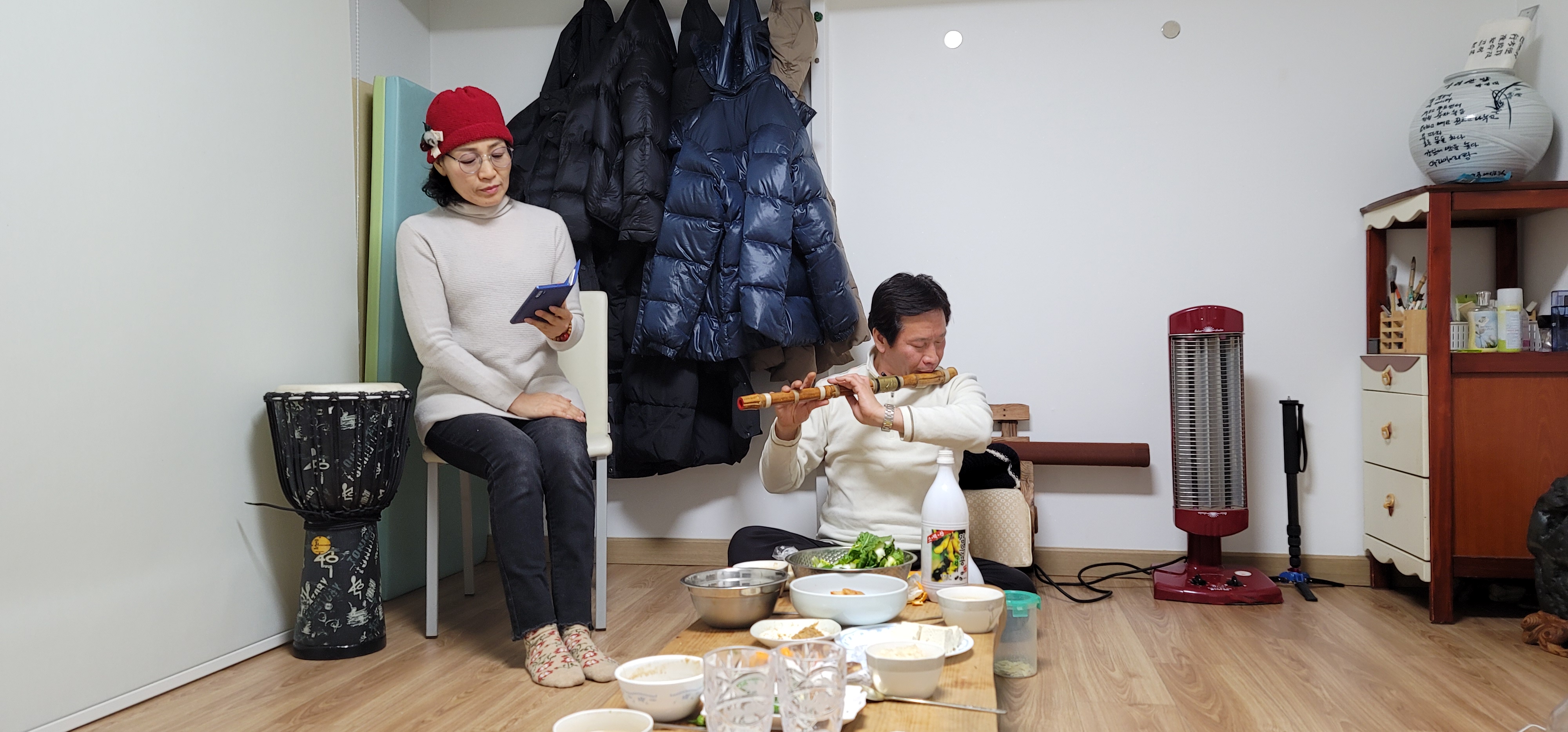 막걸리파인 가람 시인은 검은콩막걸리가 좋다고 둘이서 3통을 마시고 대금 연주와 시 낭송과 노래와 하모니카로 밤 한 시까지 즐겼다