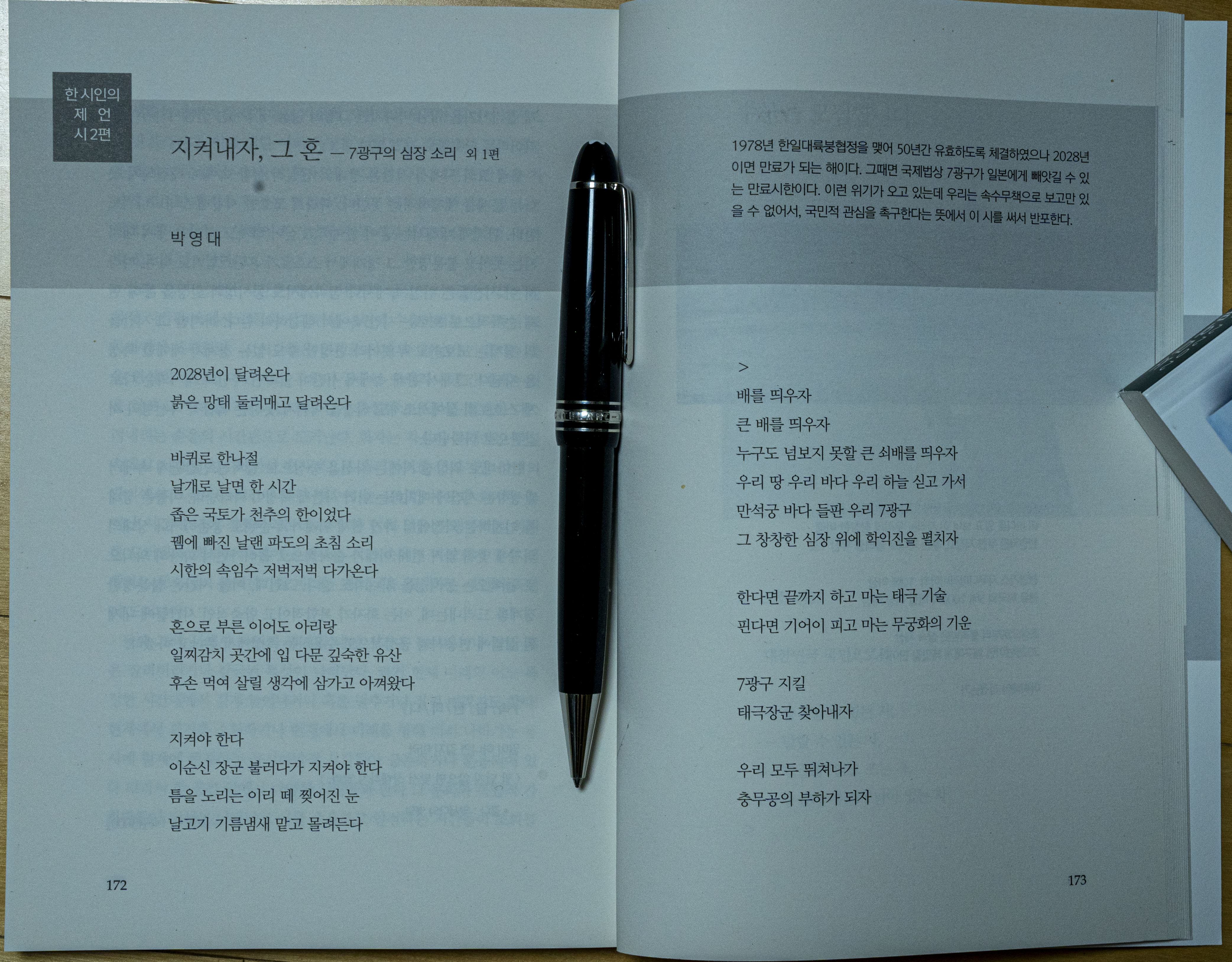 문인의 한 사람으로서 7광구 지키기 제언 시를 문학지에 발표하다