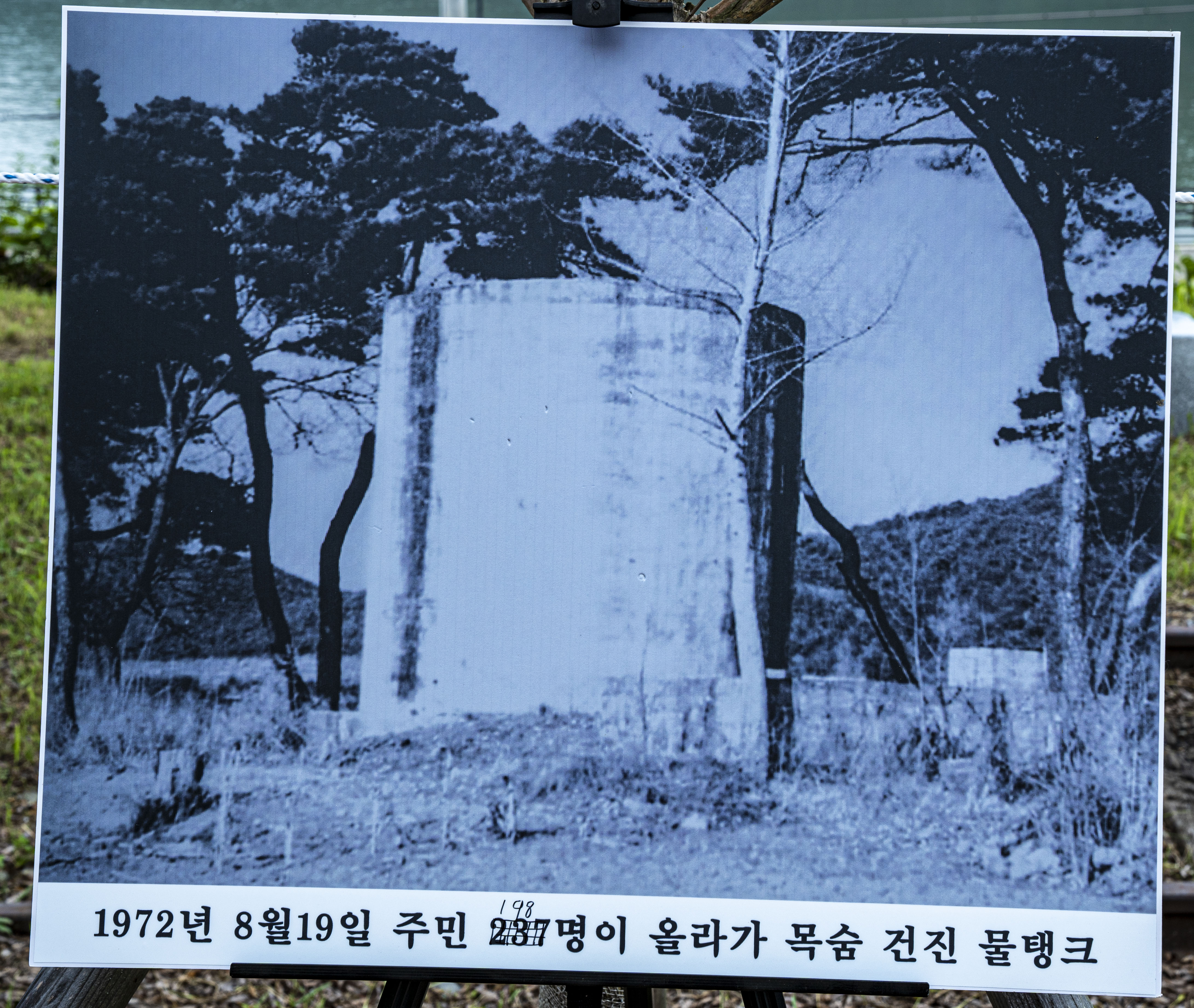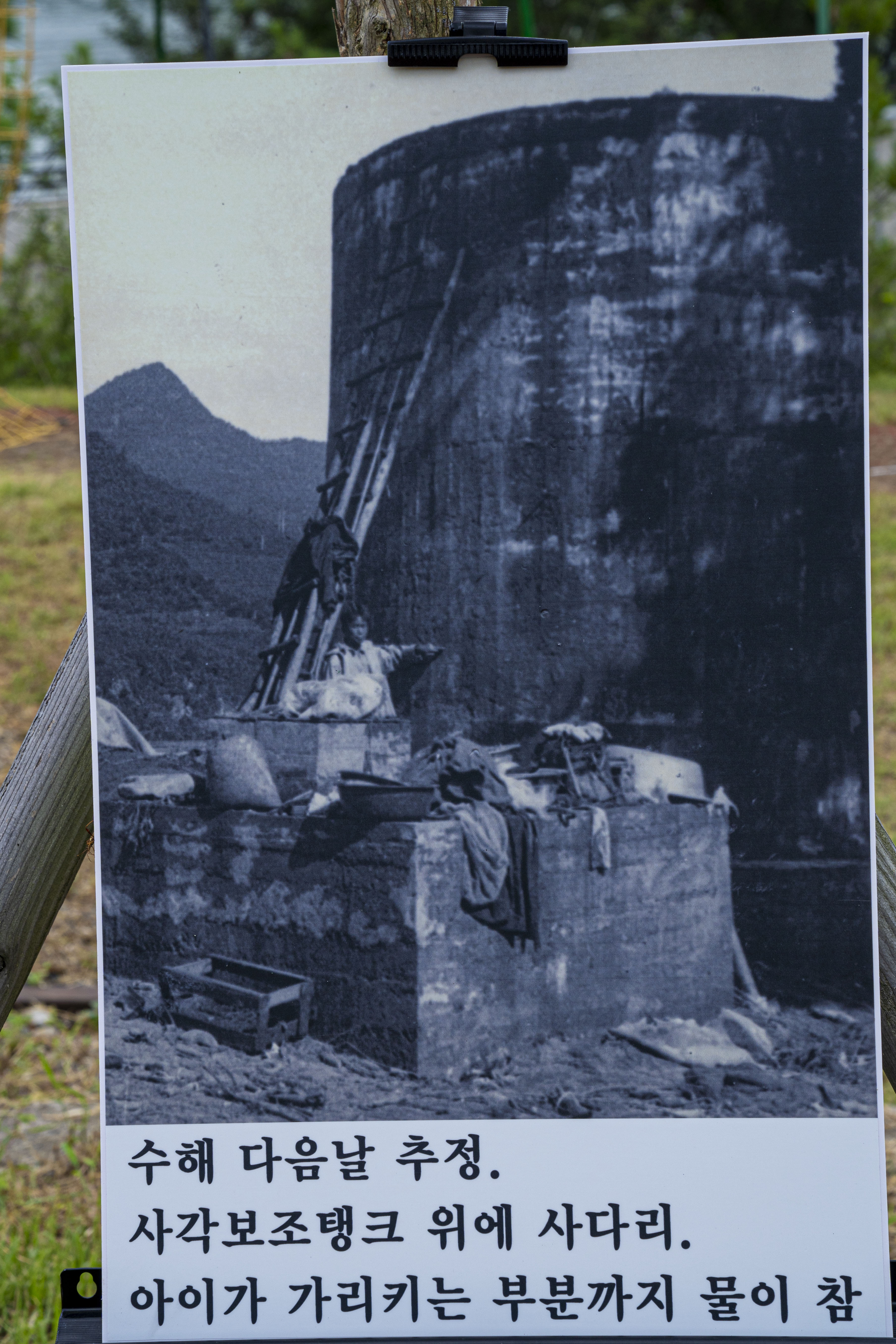1972년 8월19일밤 갑자기 밀려드는 홍수에 마을 사람들이 높은 지역으로 몰려 마을 상수도탑 위로 몰리기 시작했다