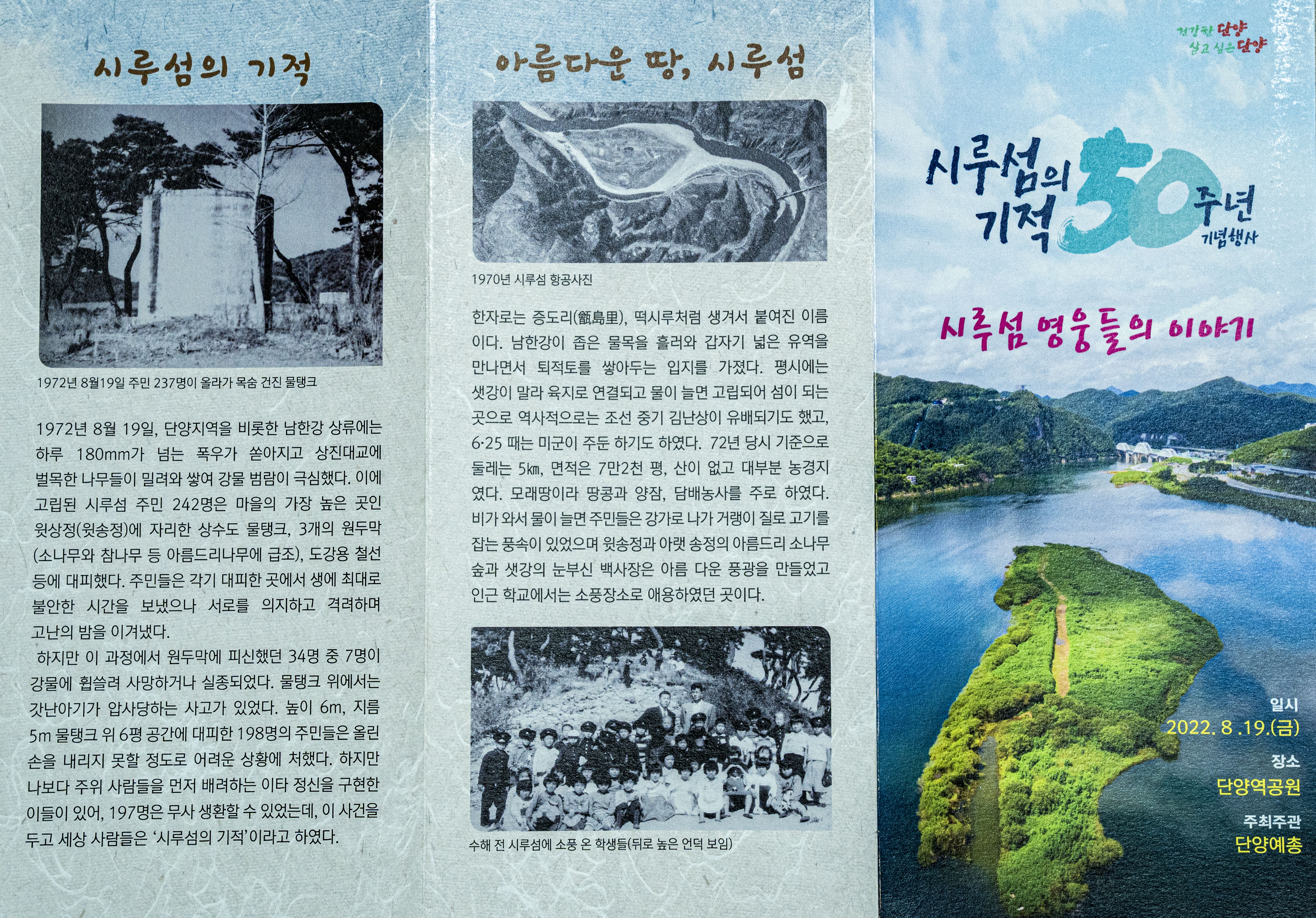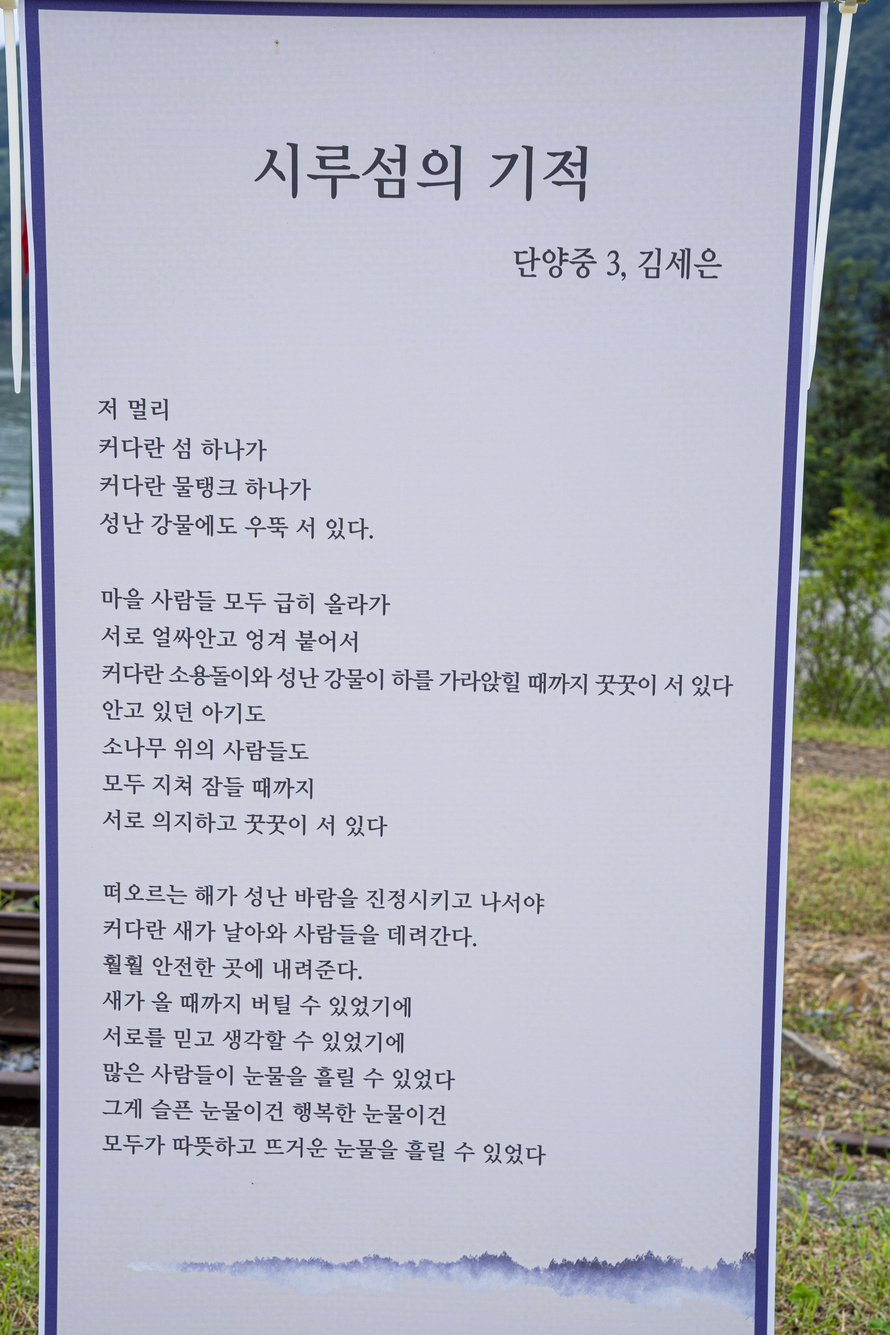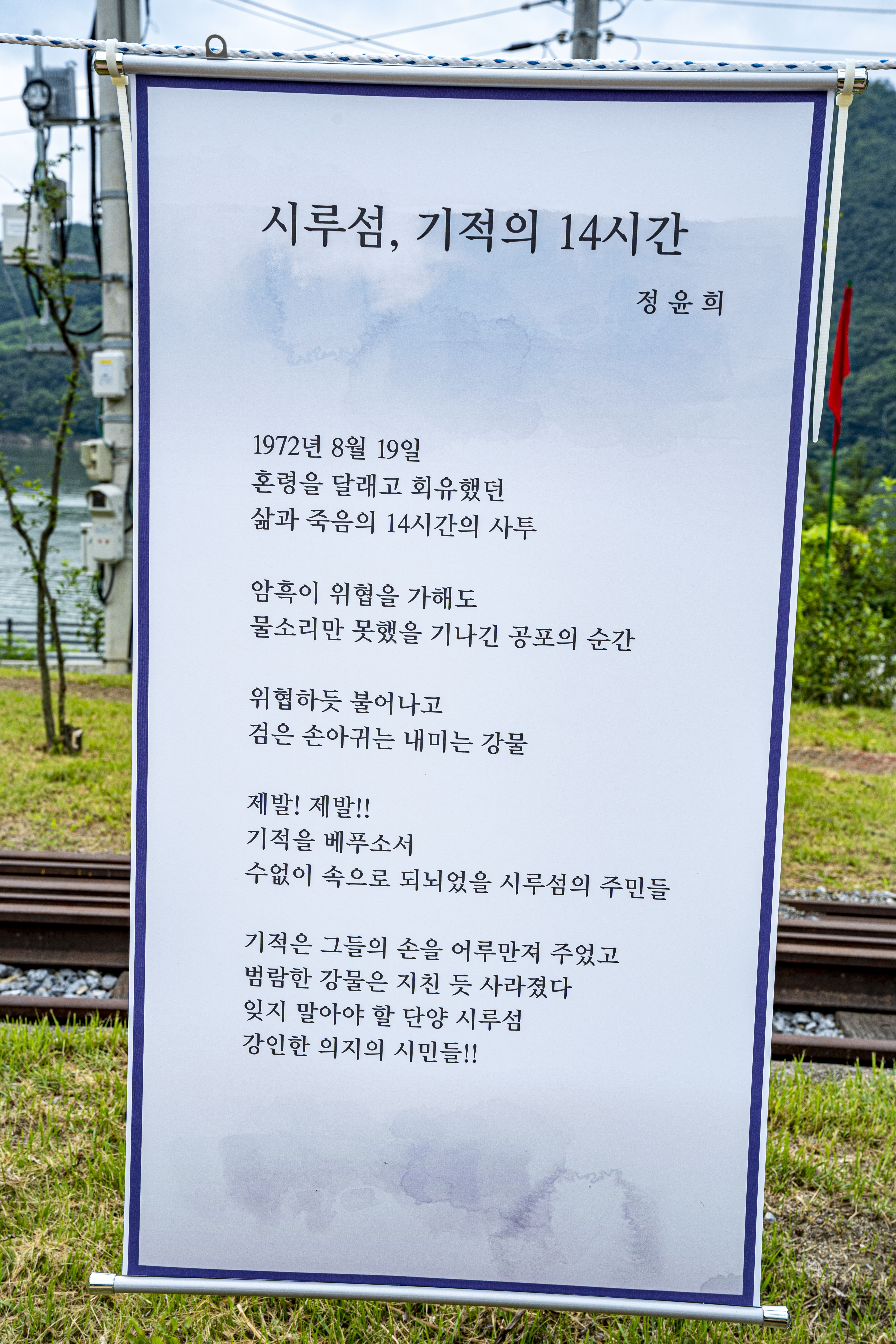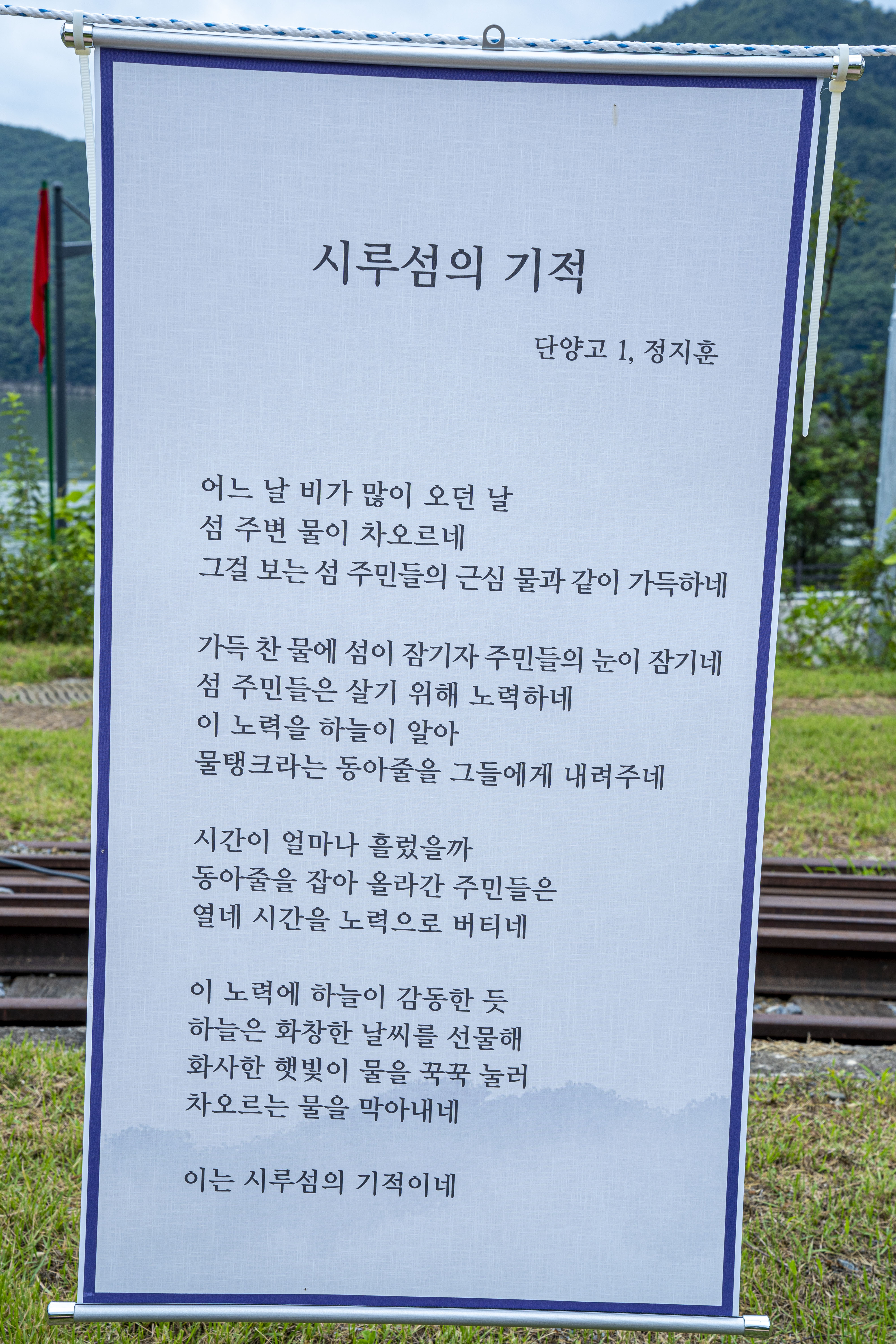 오늘 이 홍수의 기적을 기리기 위하여 시루섬이 바라다 보이는 단양역 광장에서 위령제와 기념식을 치른다