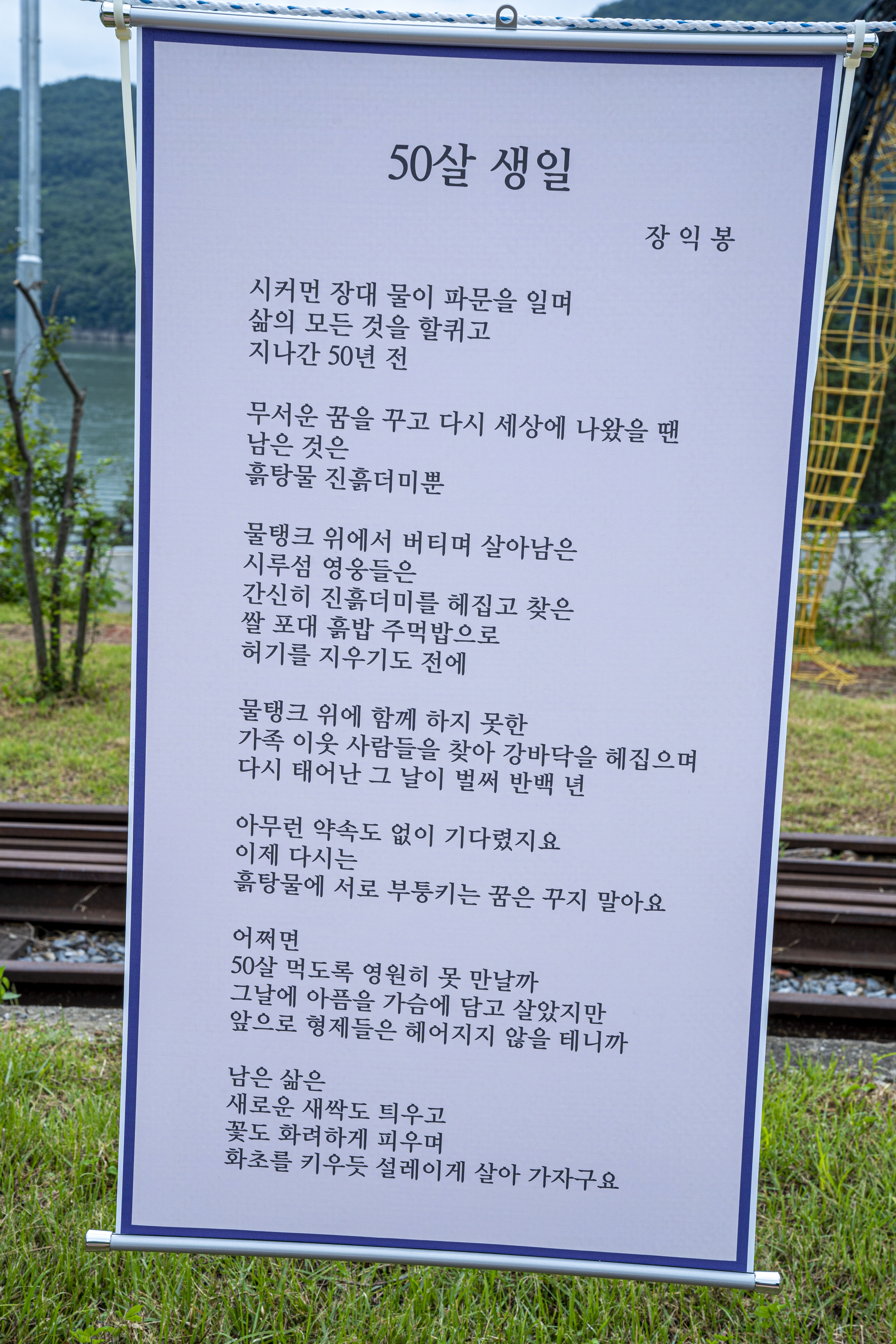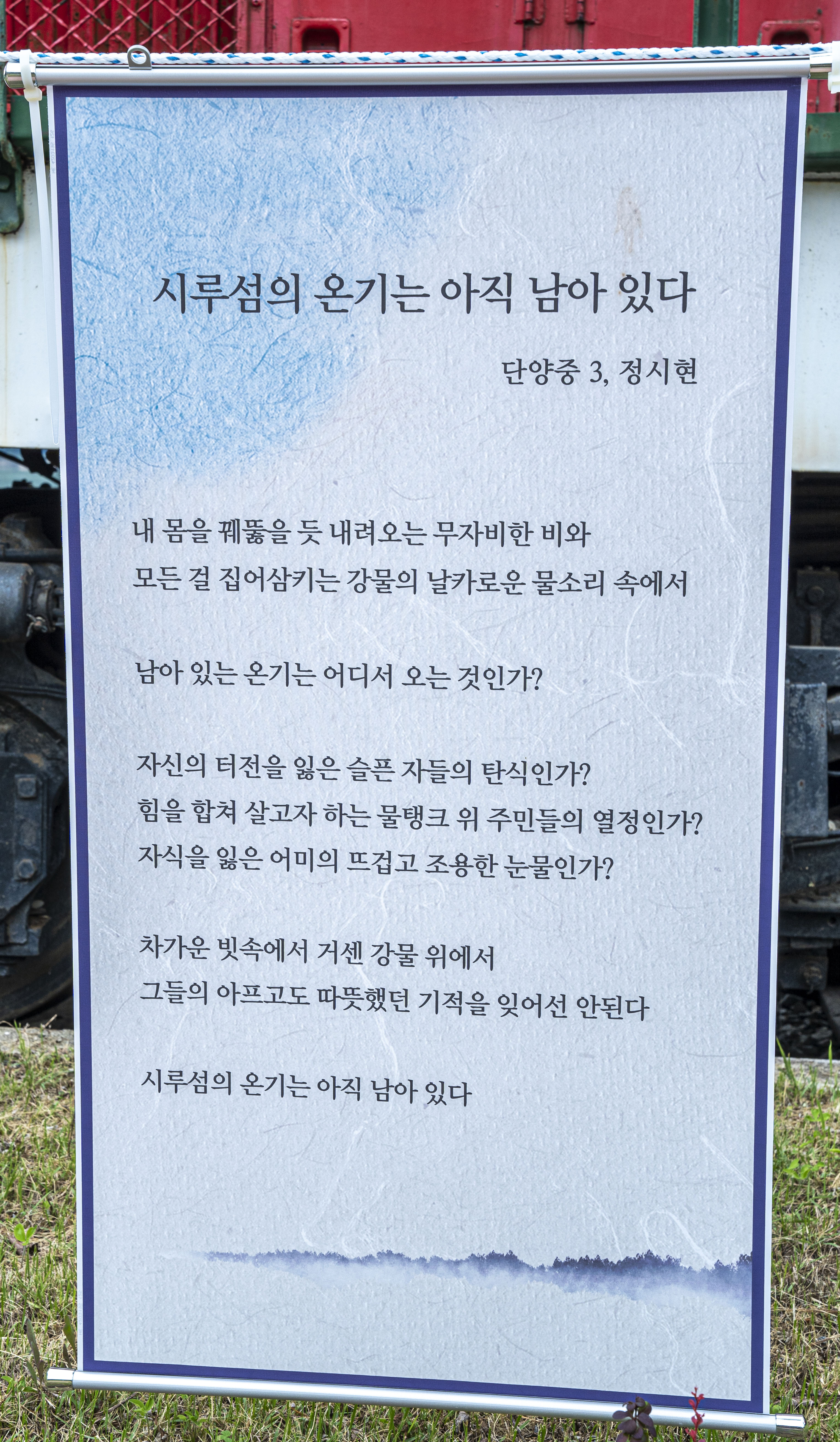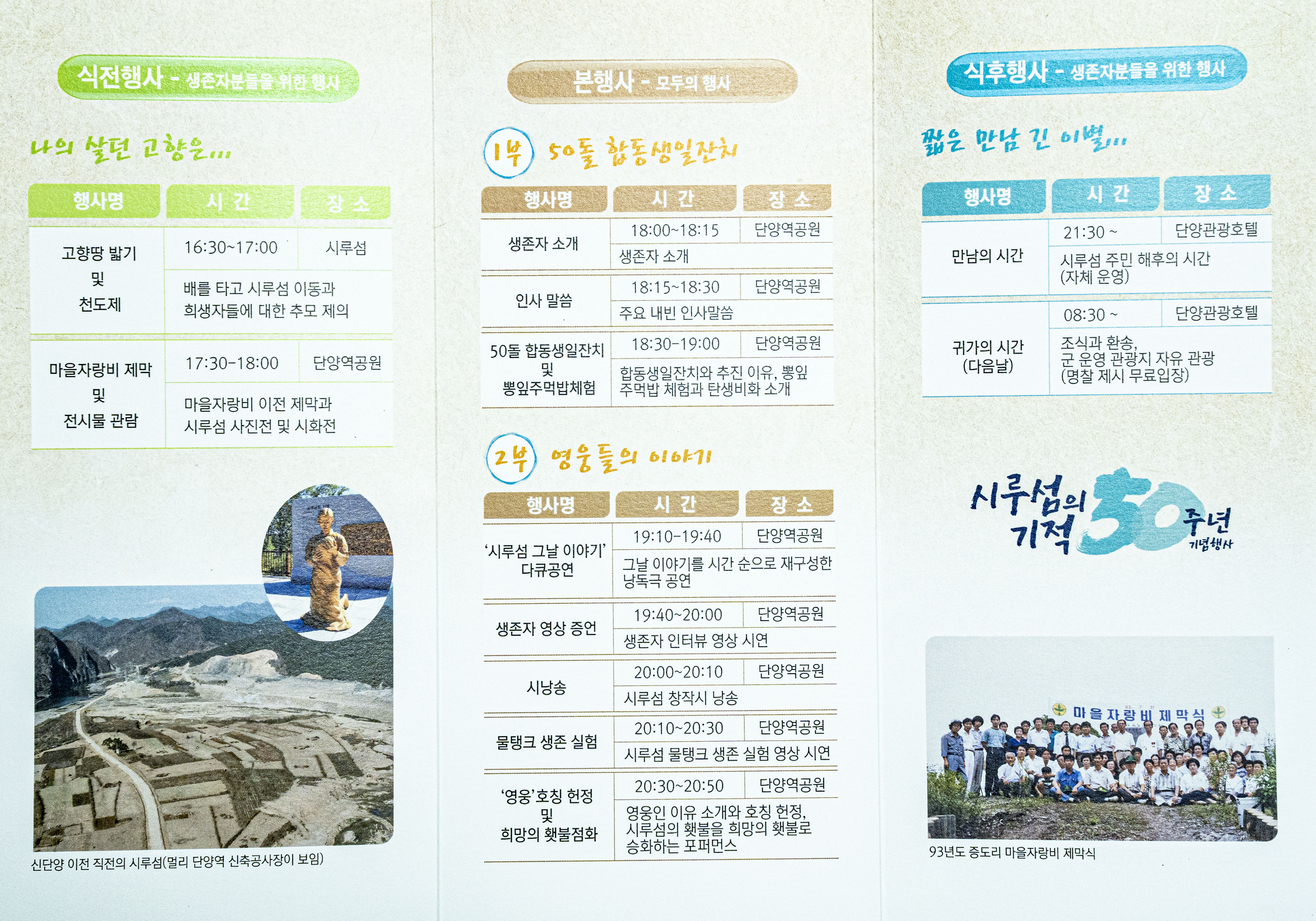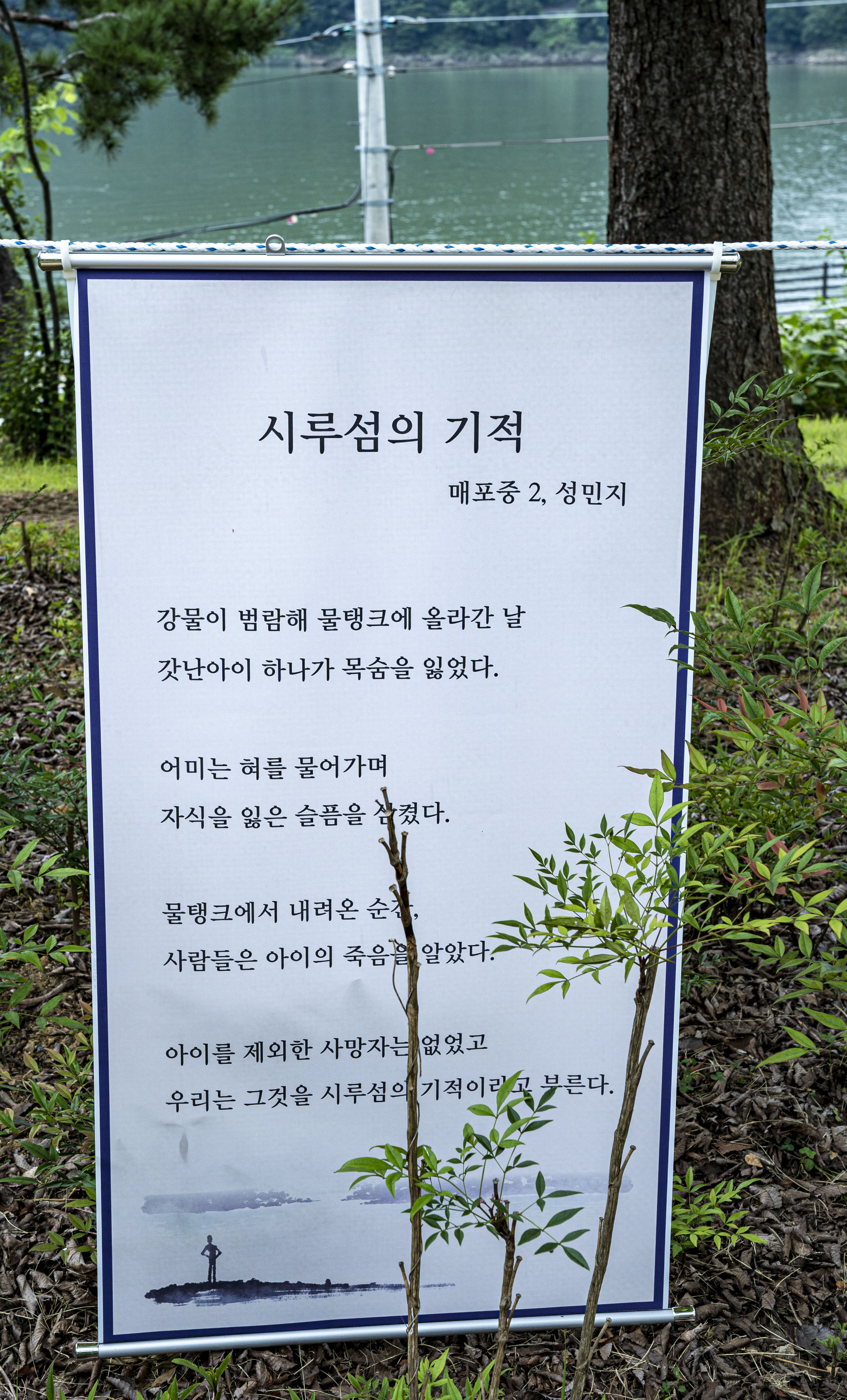 오늘 이 홍수의 기적을 기리기 위하여 시루섬이 바라다 보이는 단양역 광장에서 위령제와 기념식을 치른다