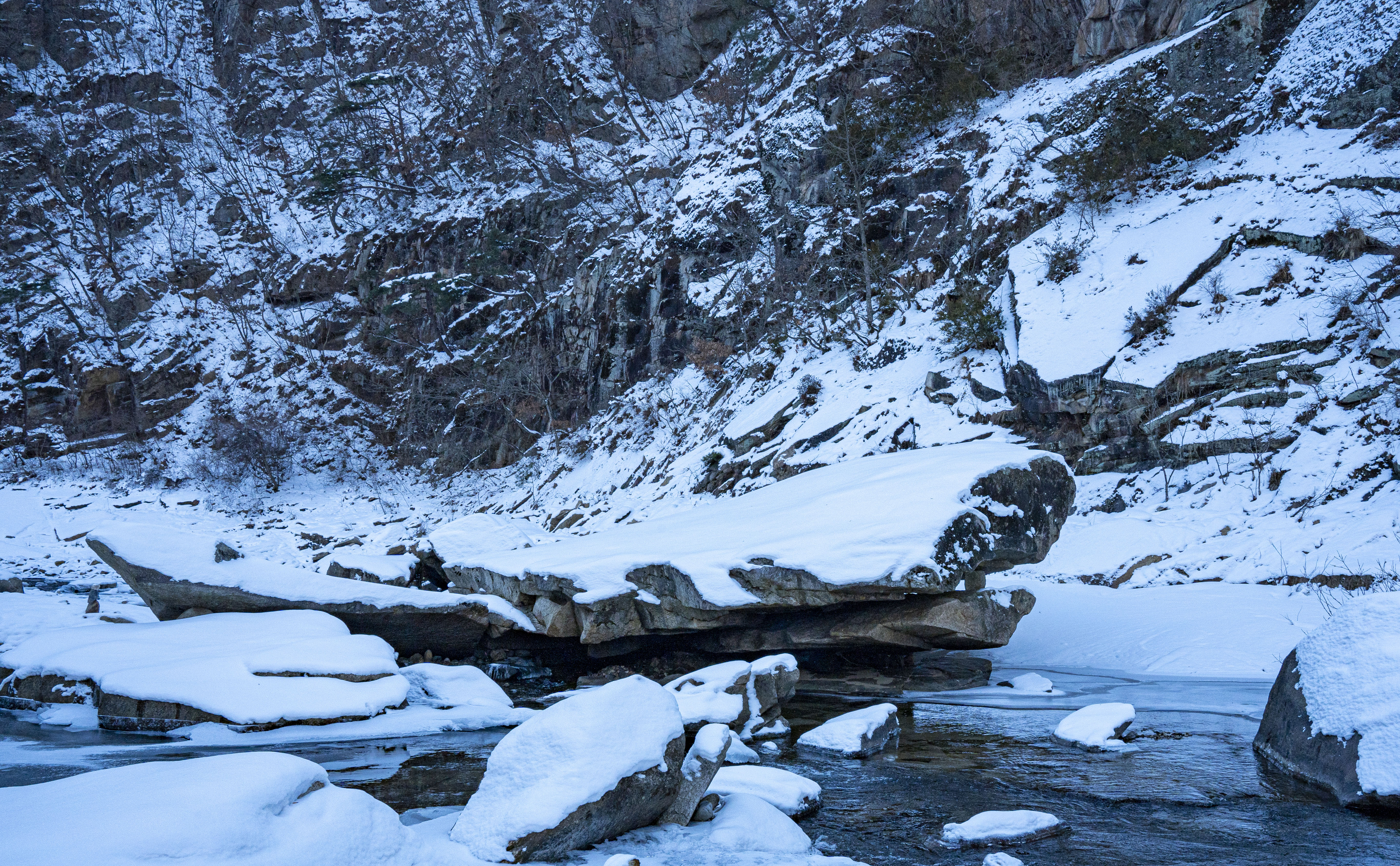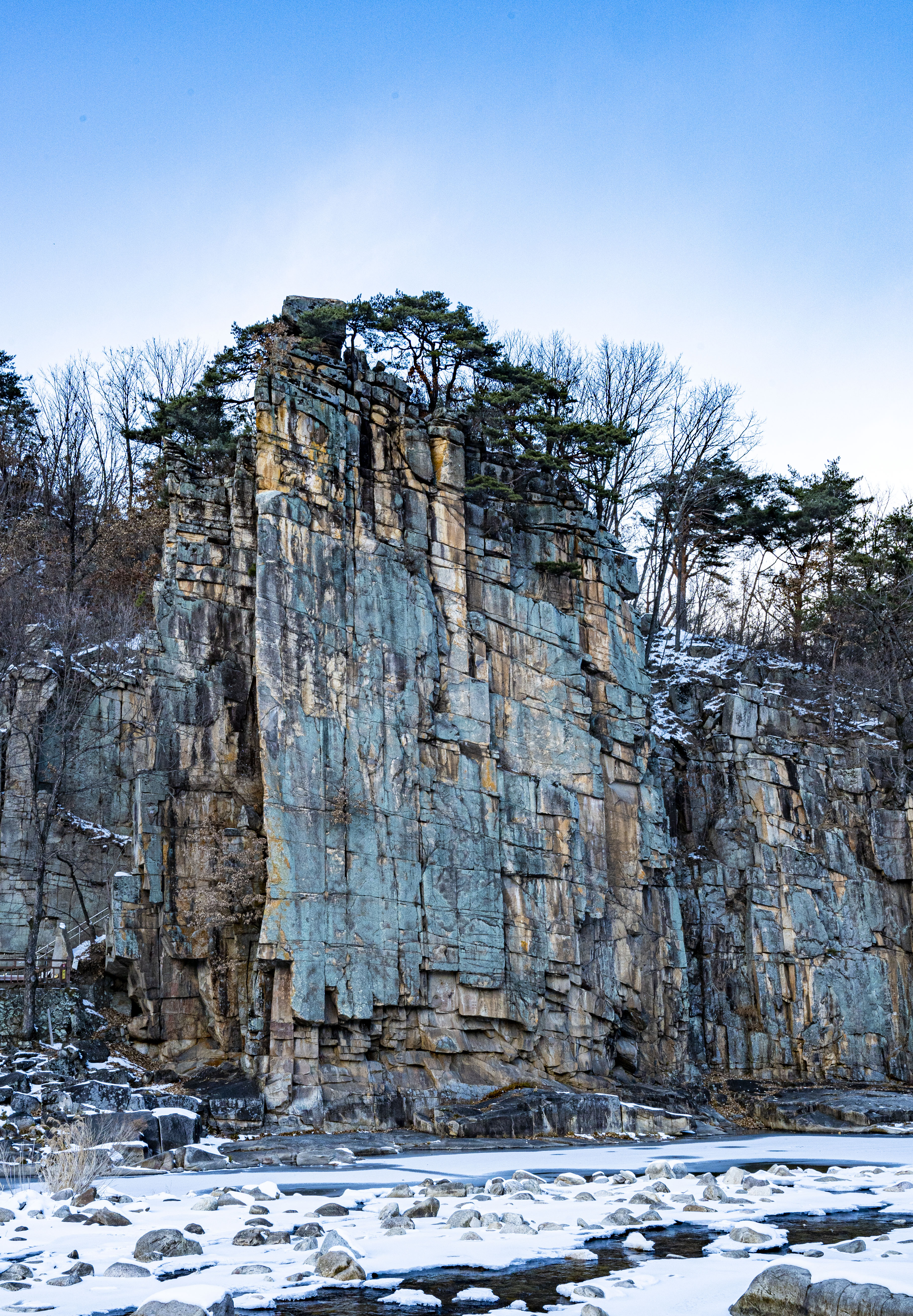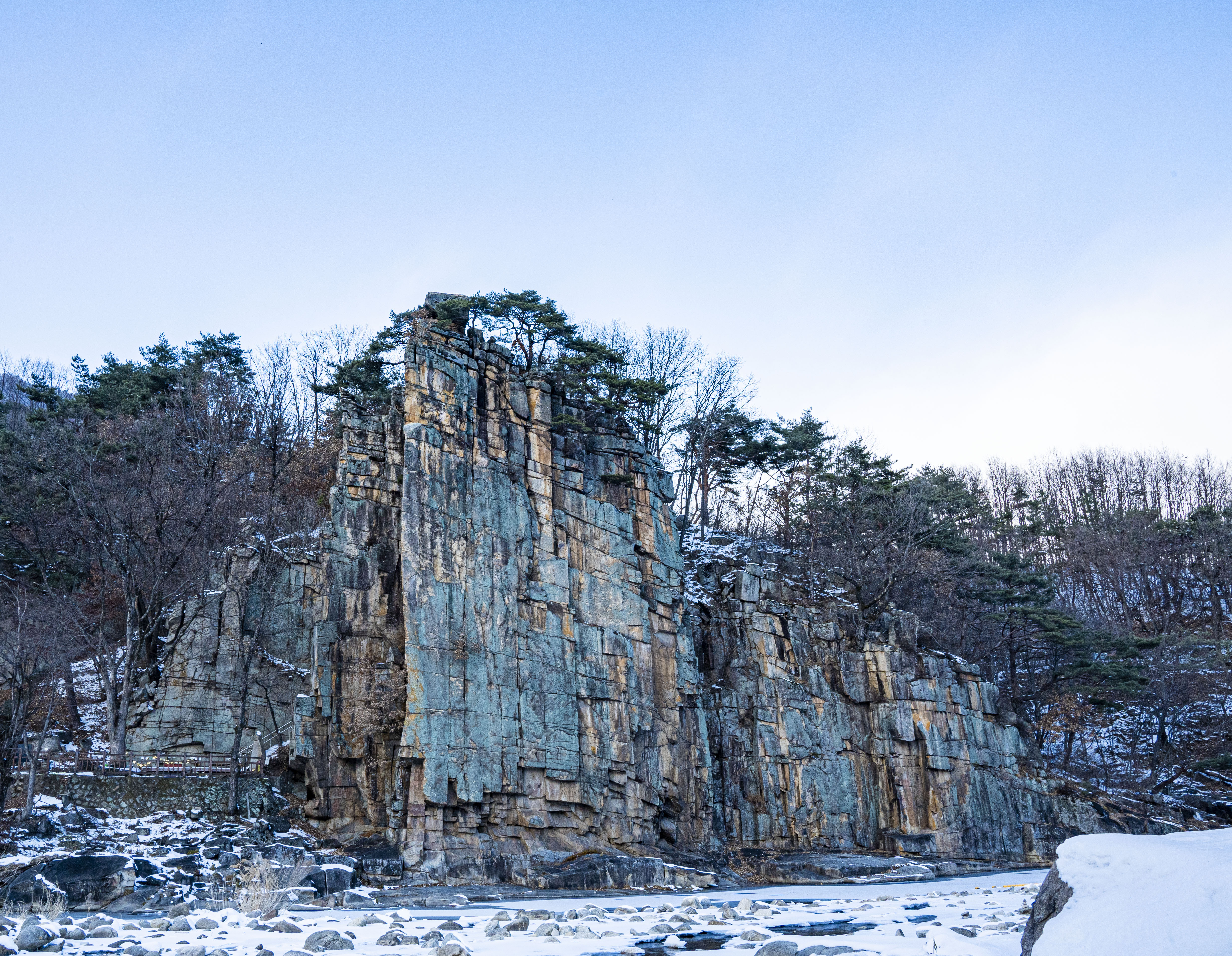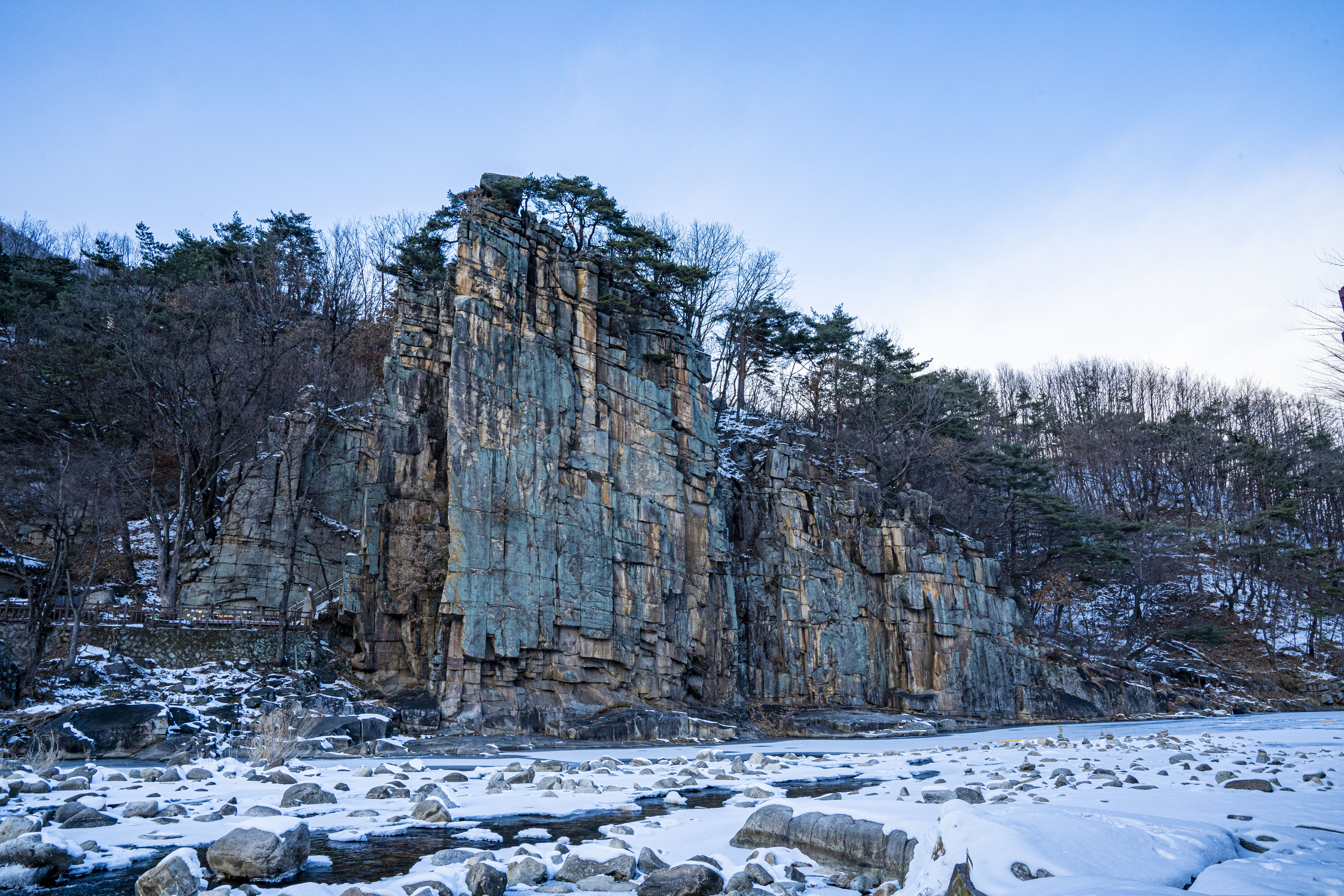 선암계곡에 쌓인 설암 풍경을 카메라에 담아 남긴다