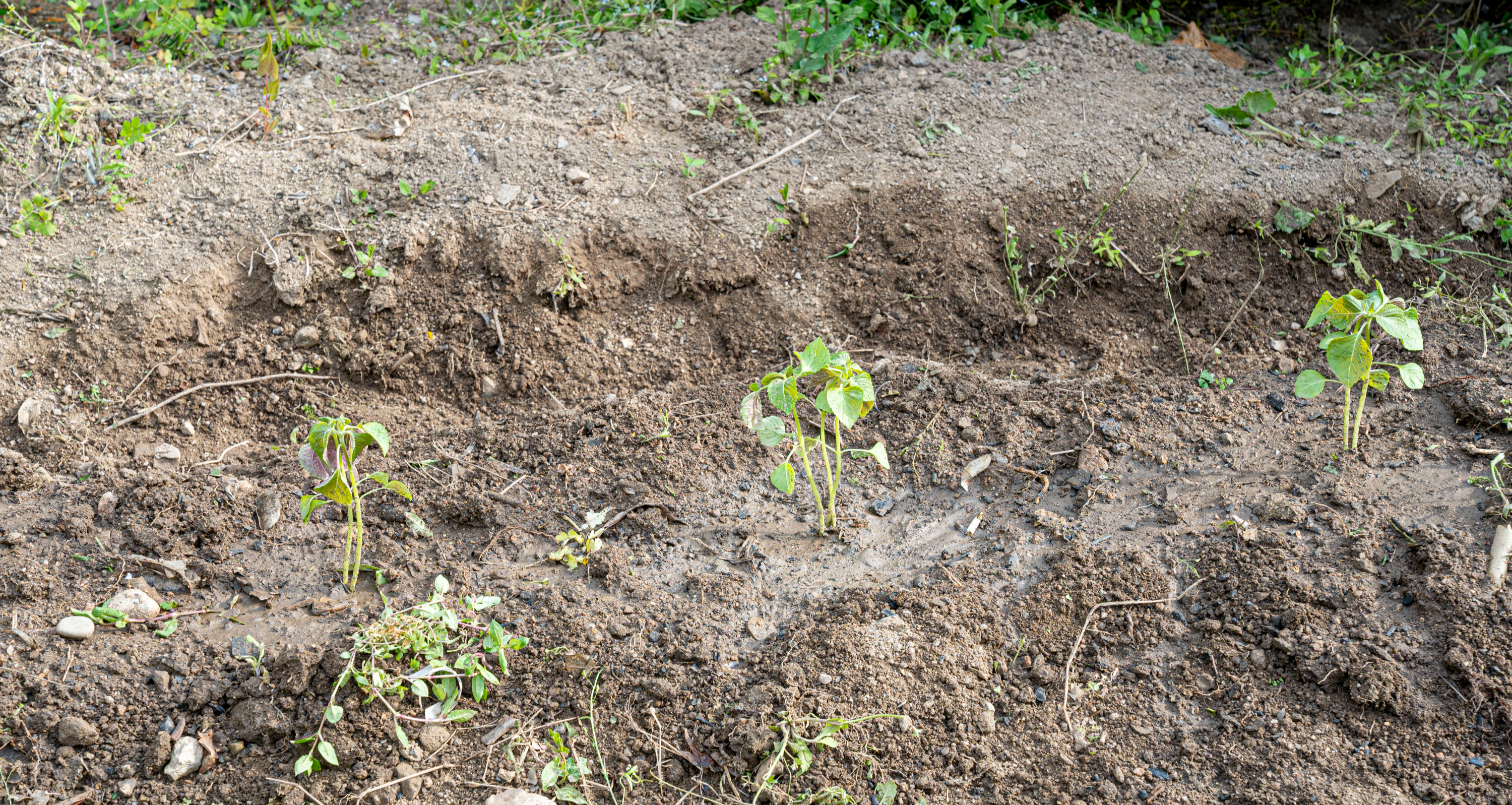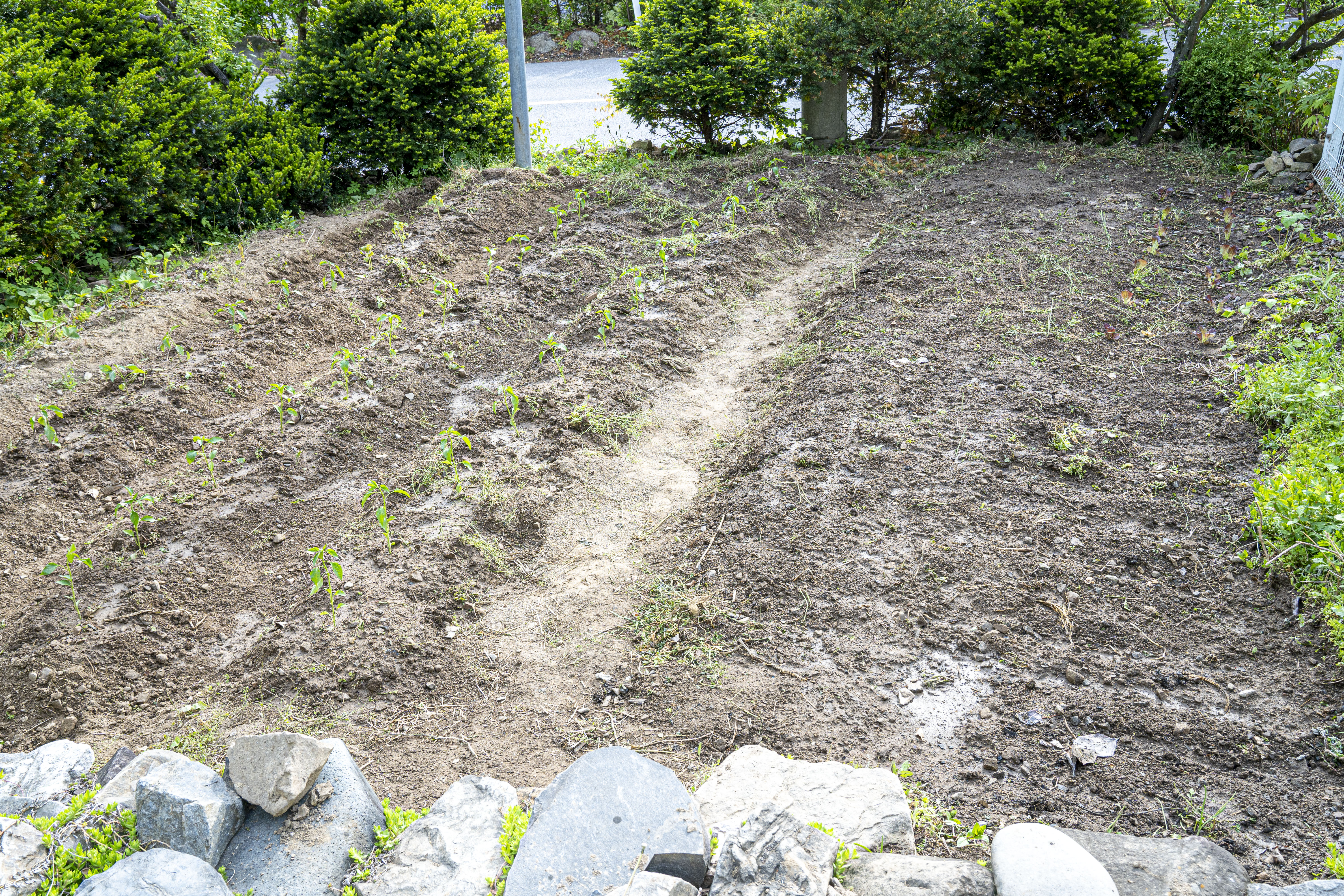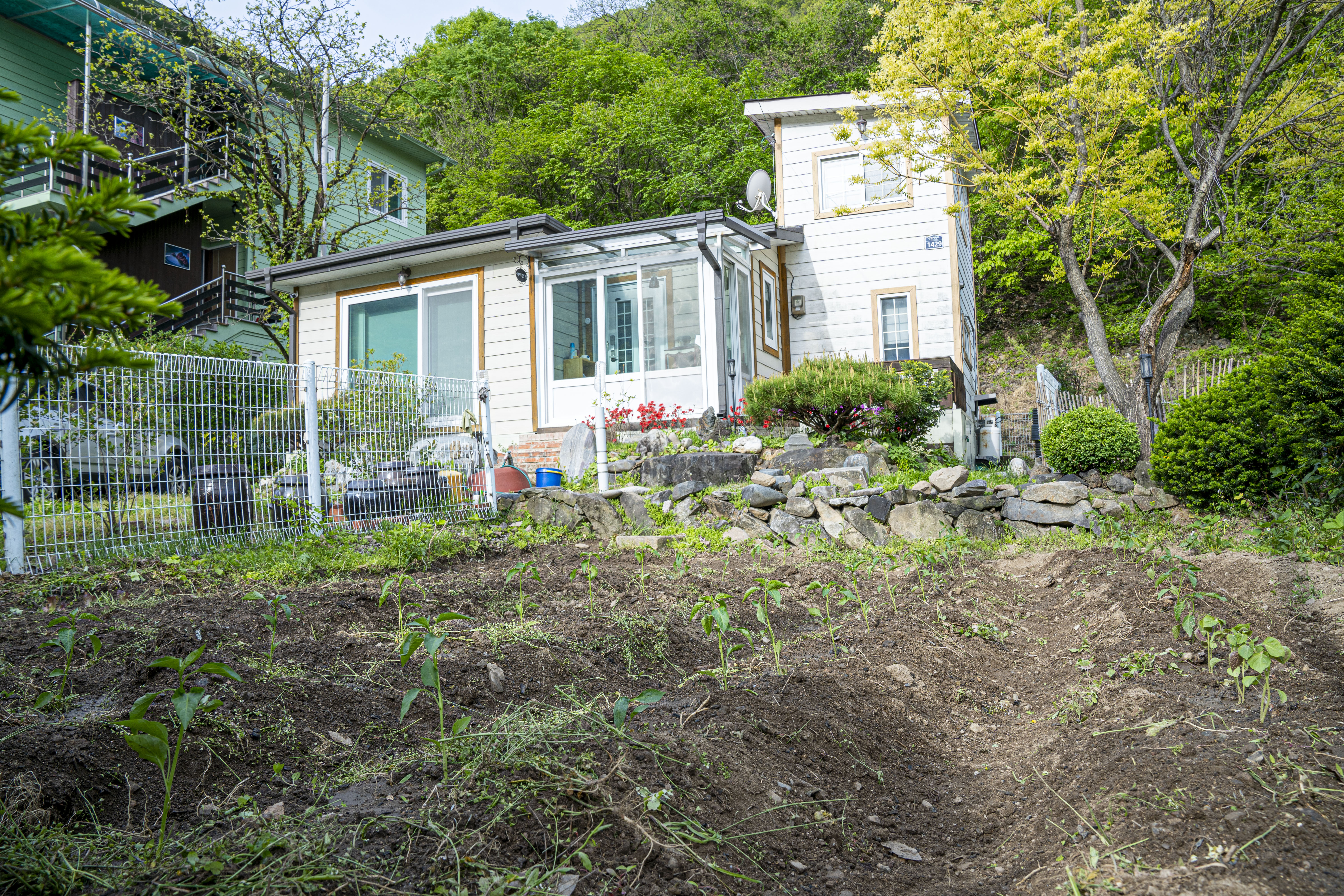 아들이 와서 함께 텃밭을 파고 작물 심을 자리를 마련했다