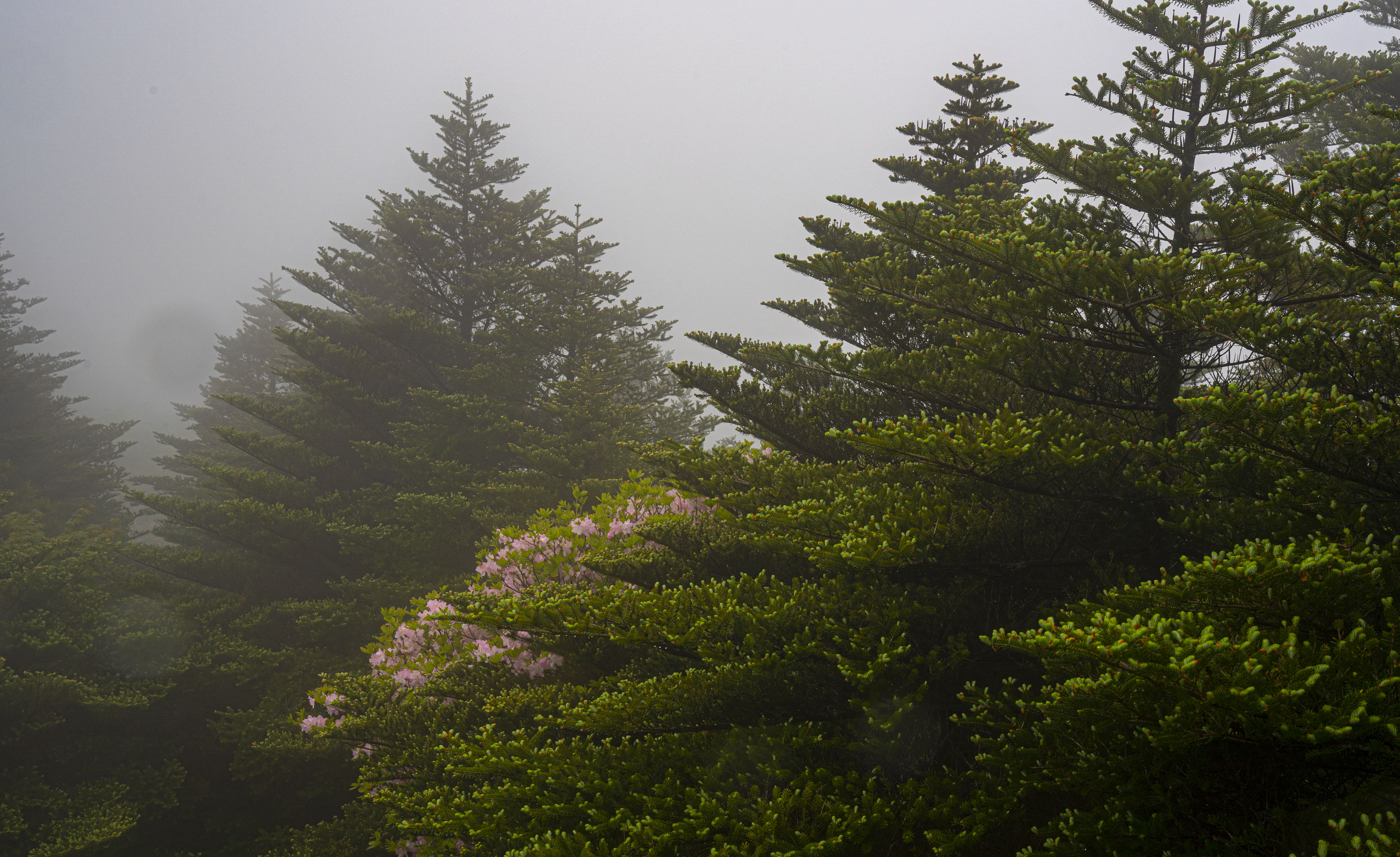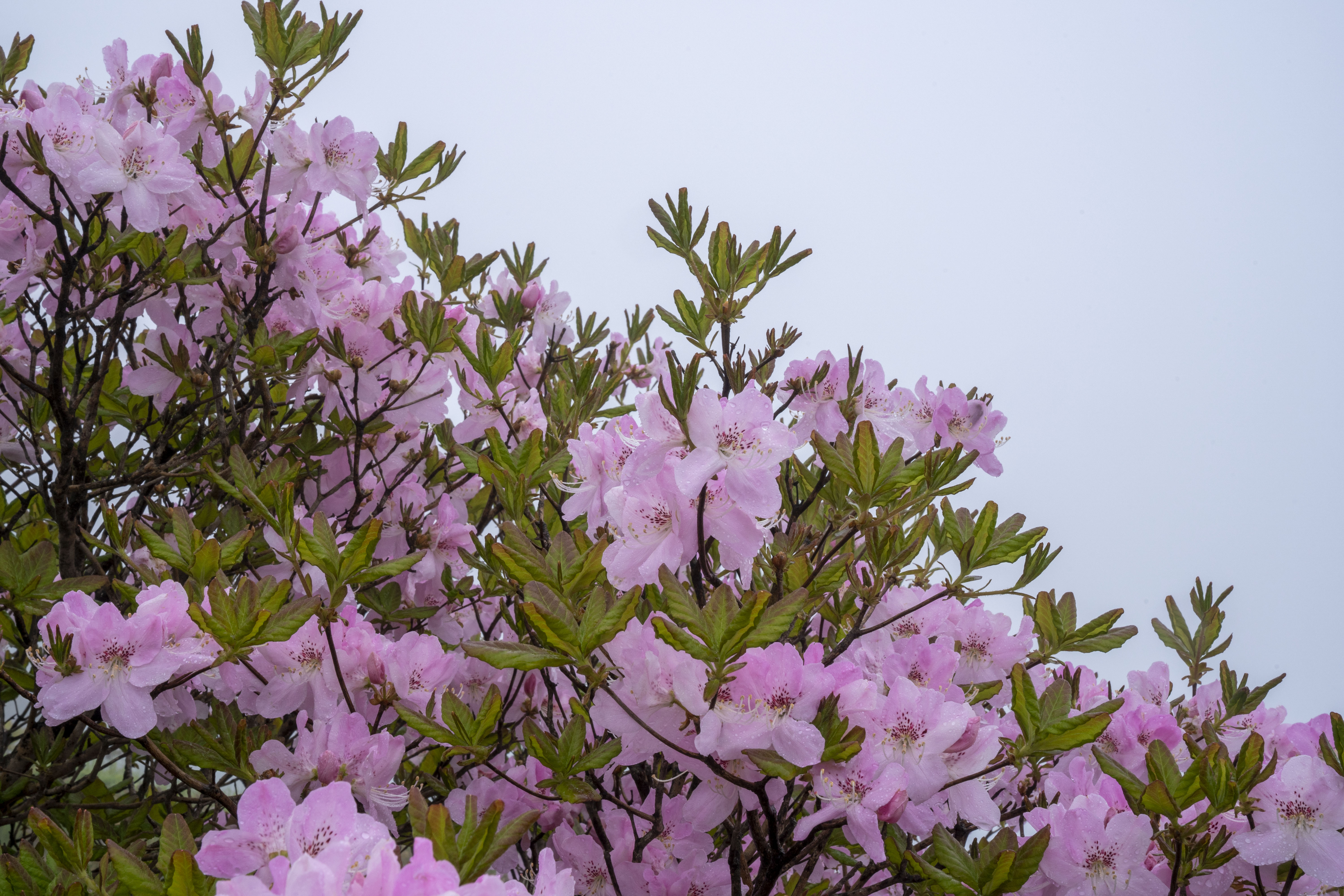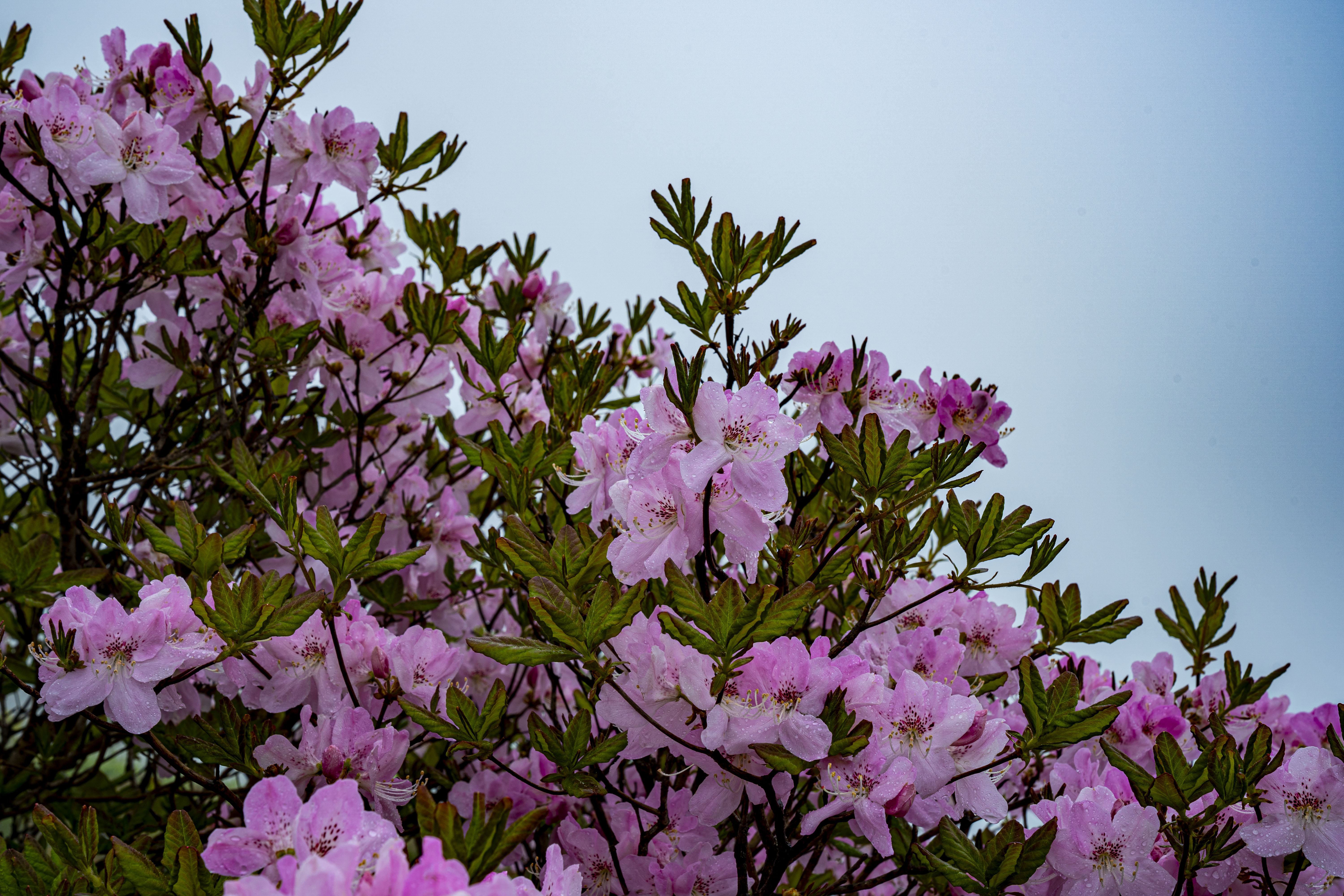 세찬 비바람에 고운 얼굴을 씻기고 있는 연분홍 철쭉의 모습이 선녀 같다.