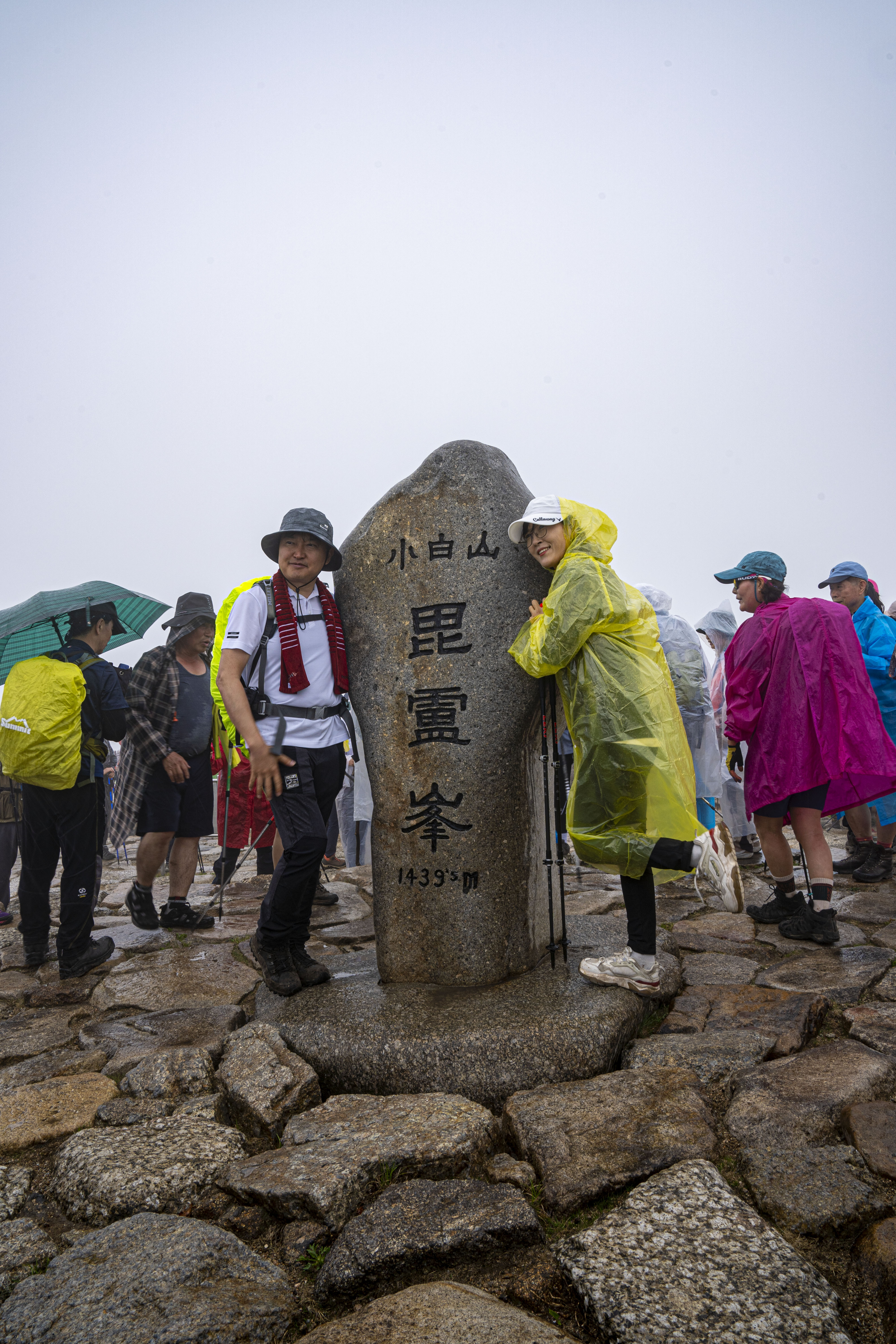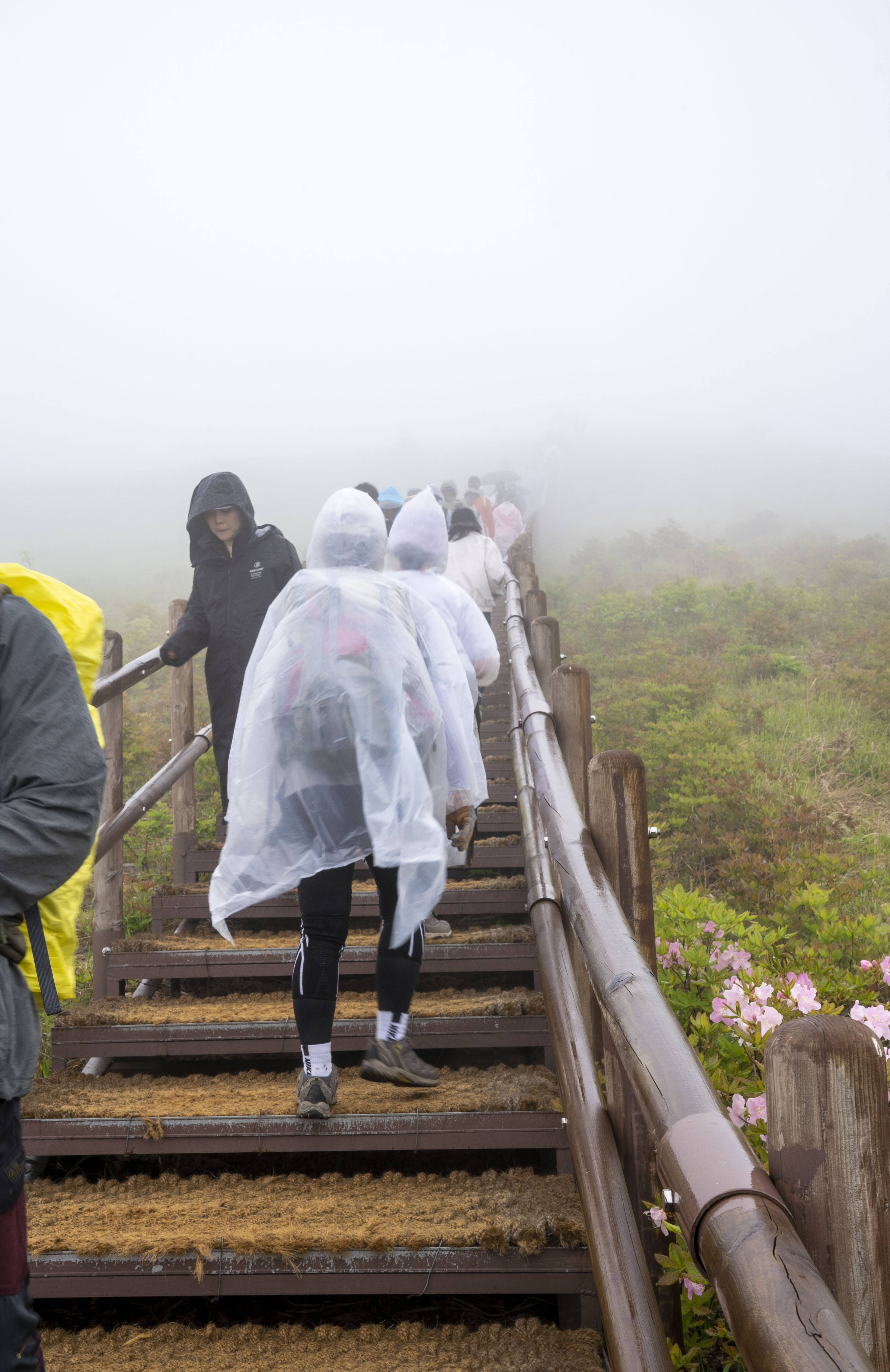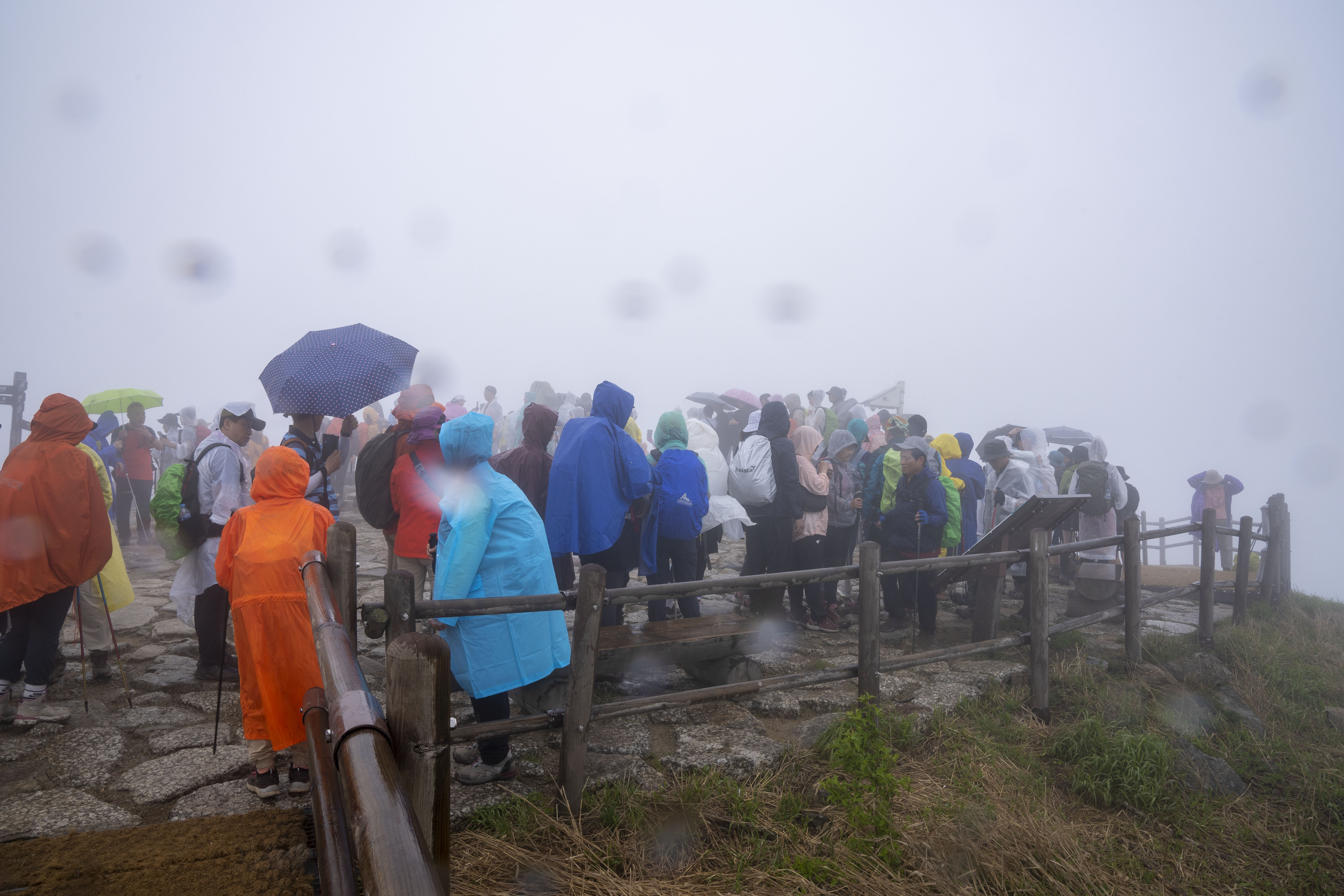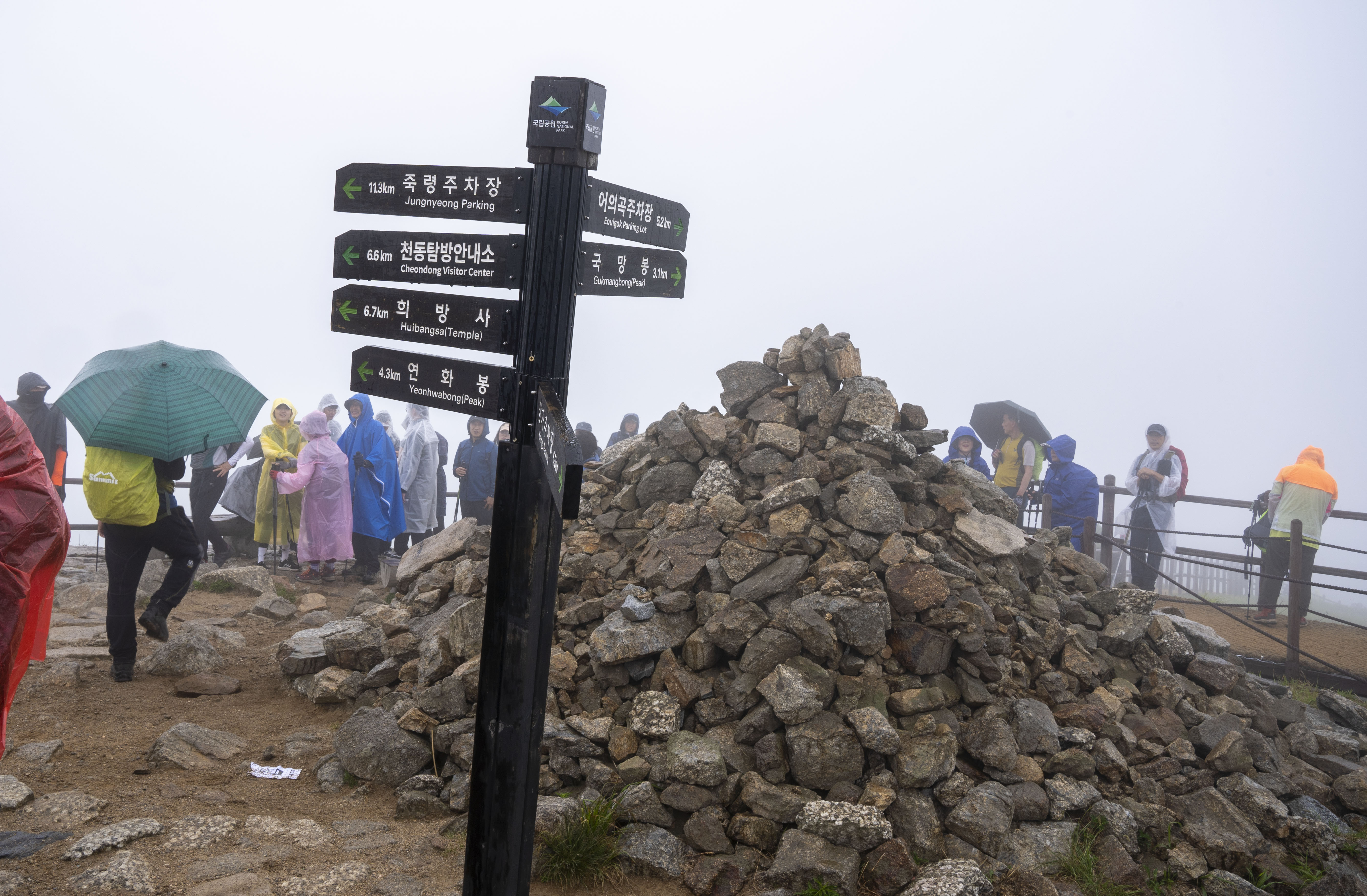 비로봉 부근에 오르니 비가 내리고 바람이 불고 안개가 자욱하다