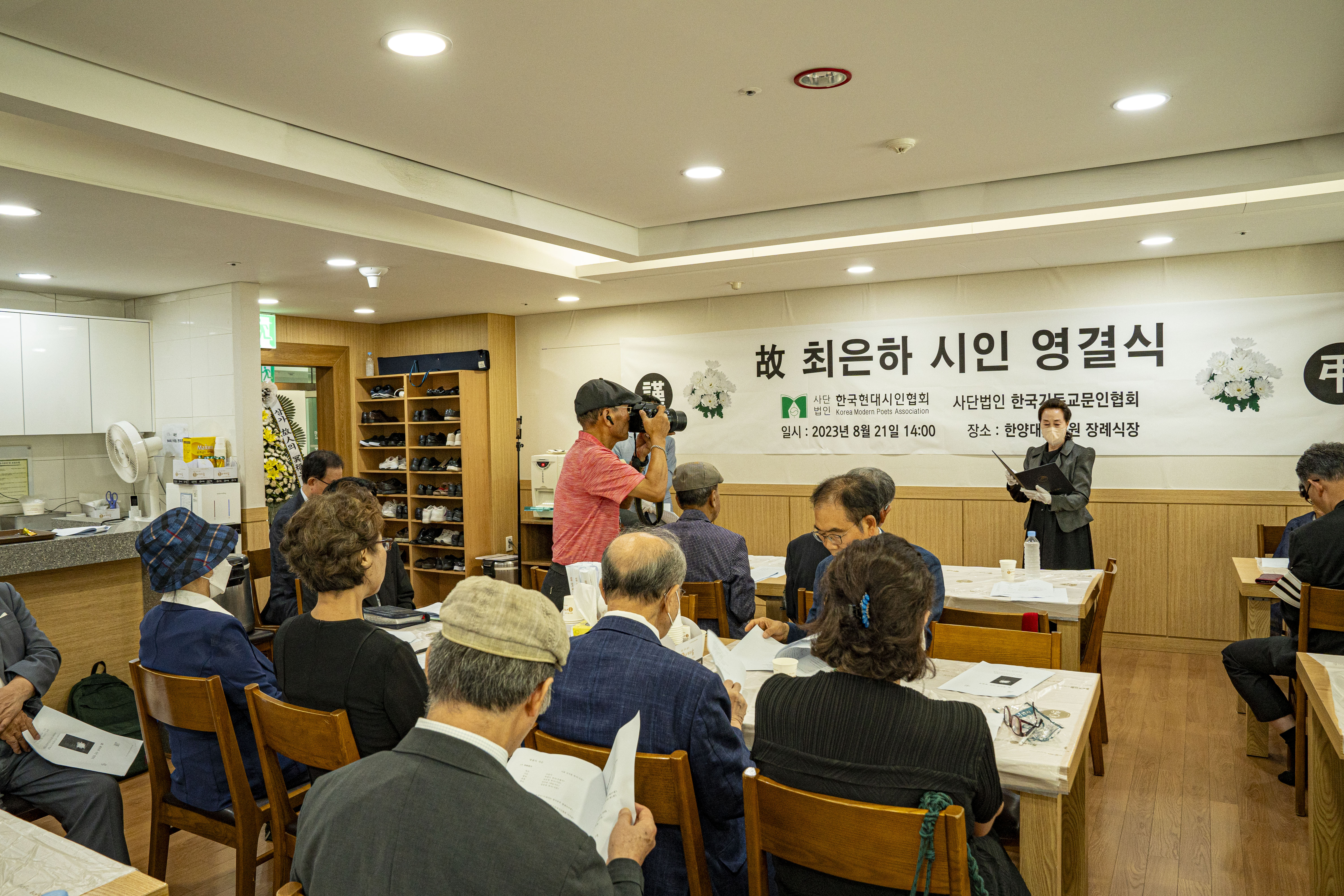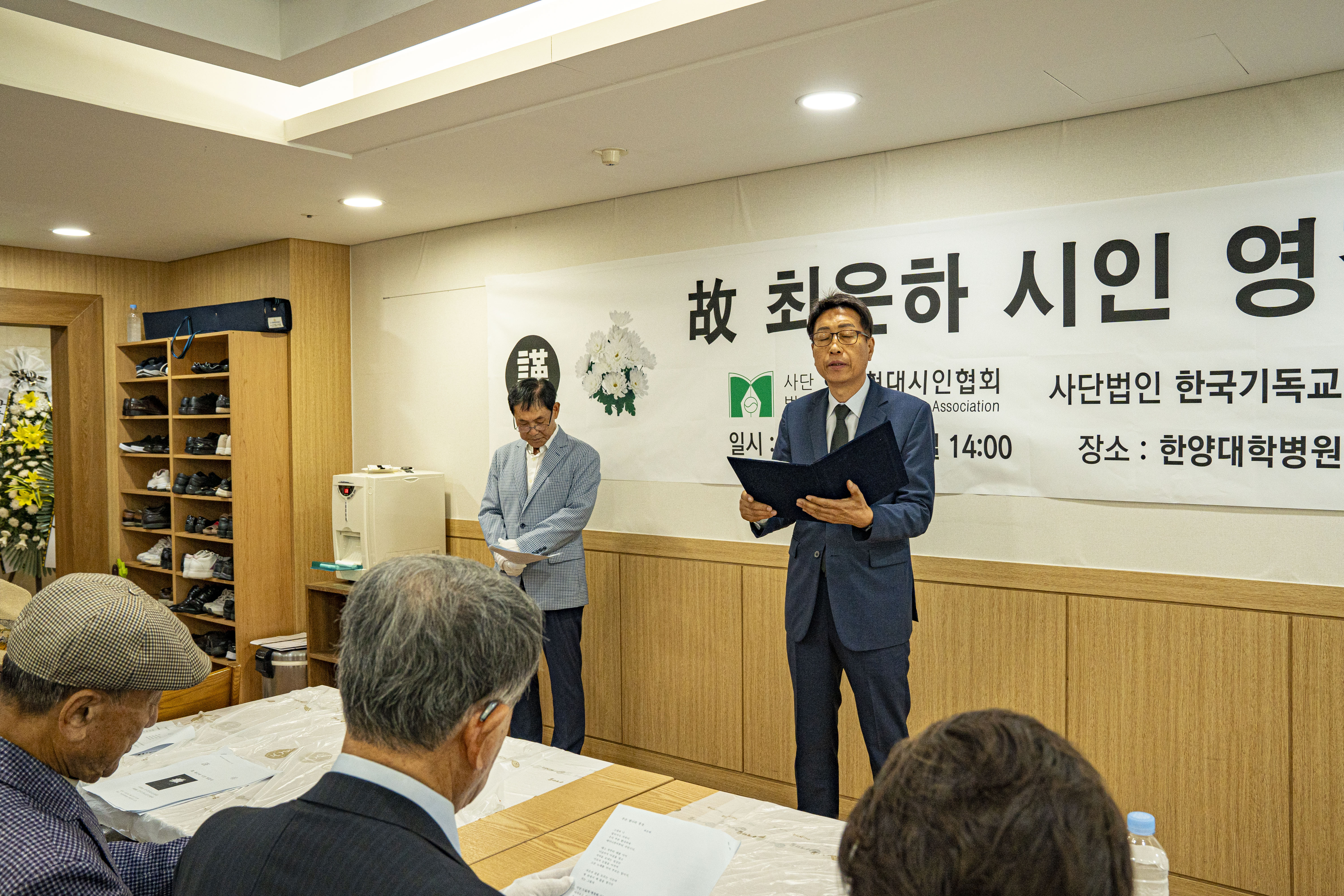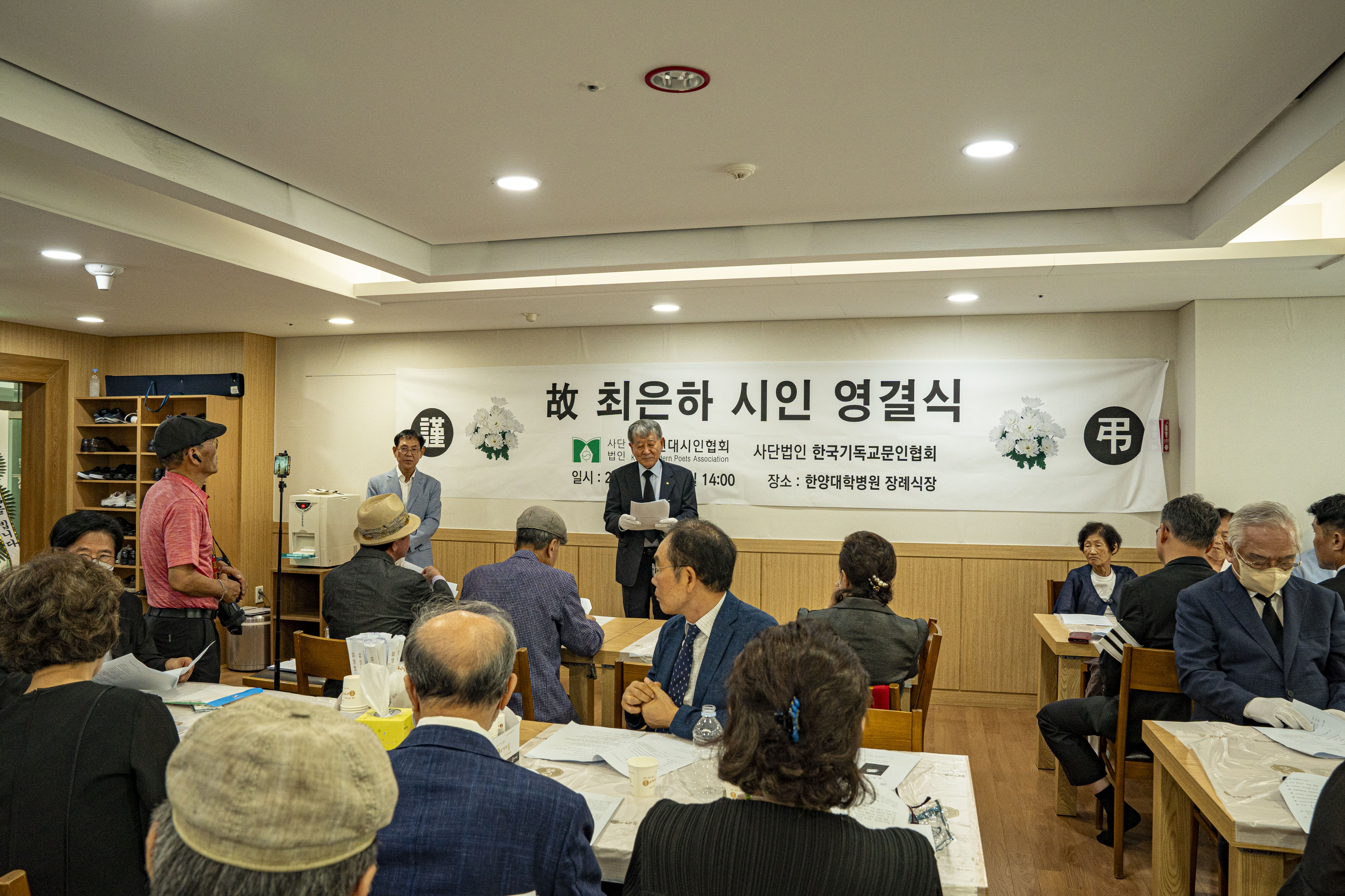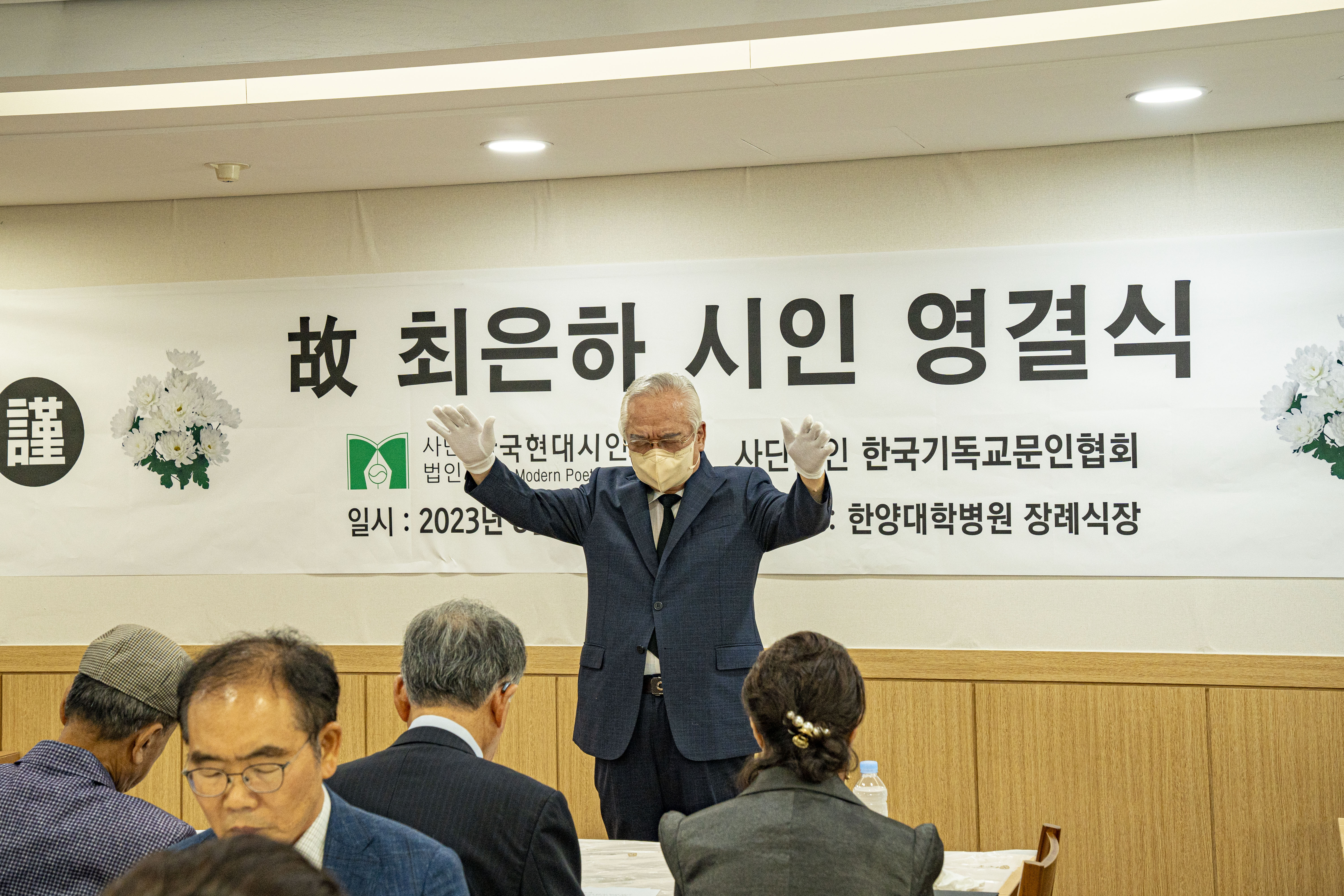 한국현대시인협회 종신평의원으로 시인을 보내는 자리에 여러 후배 문인들이 모여 시인의 작품을 읽으면서 추모한다