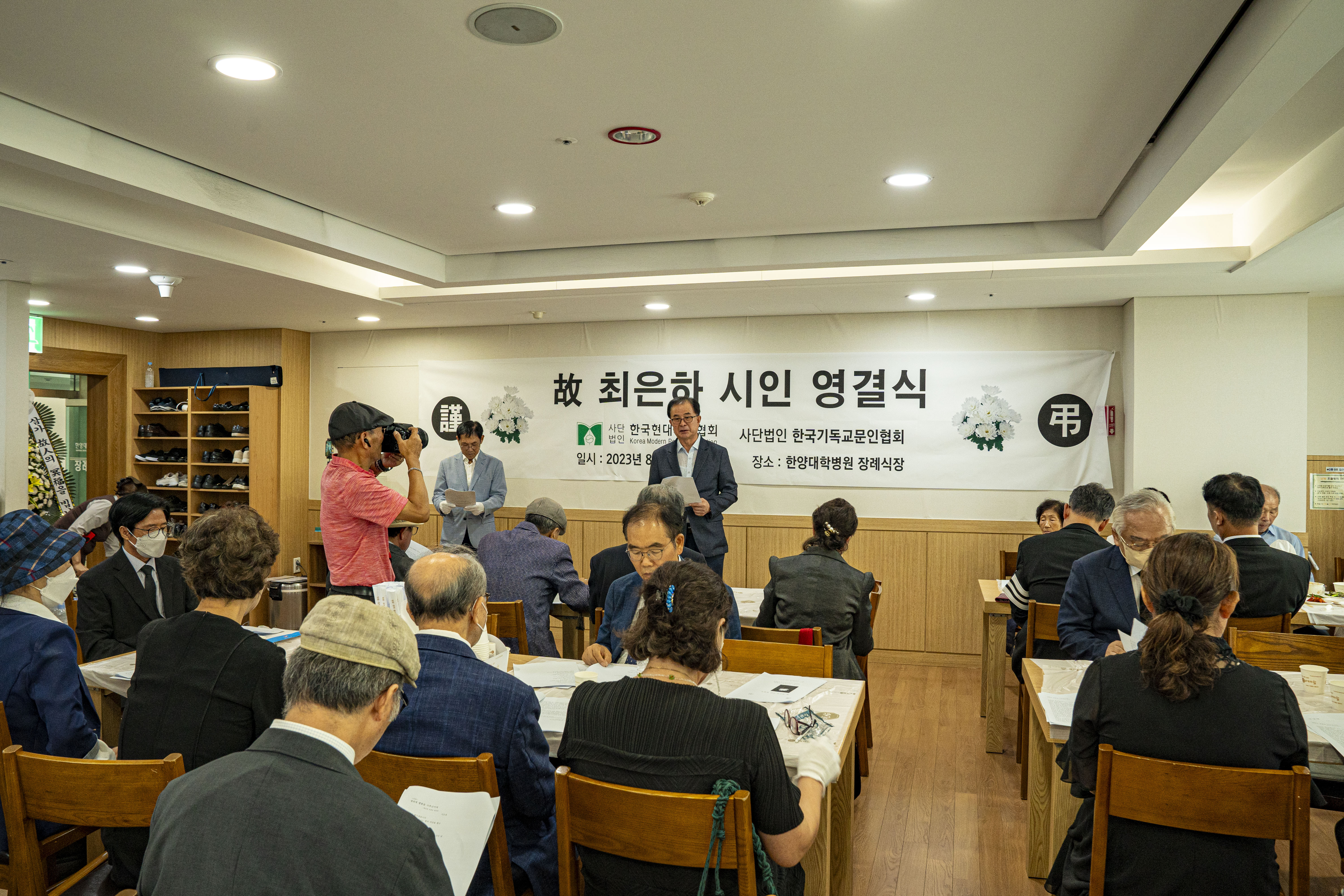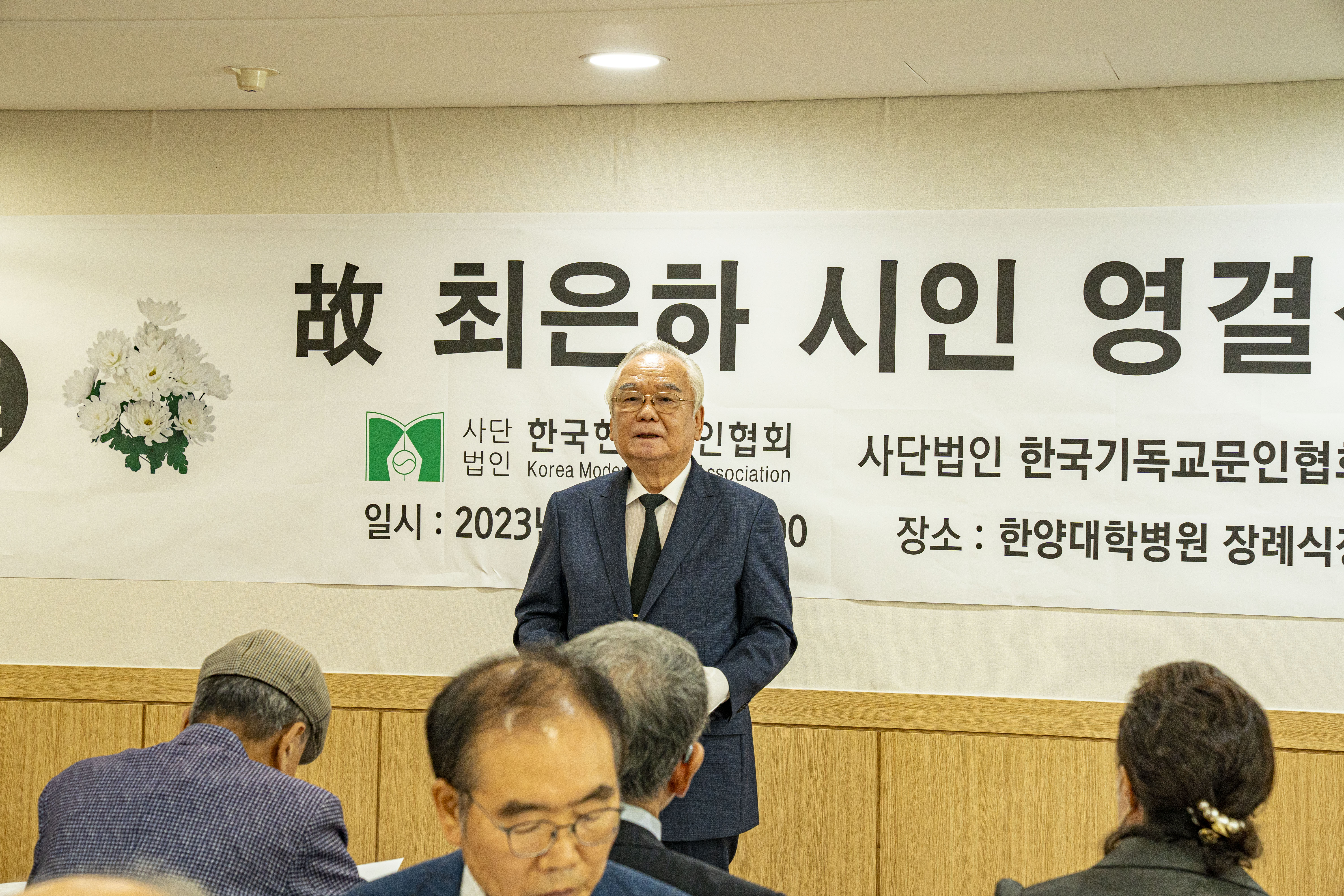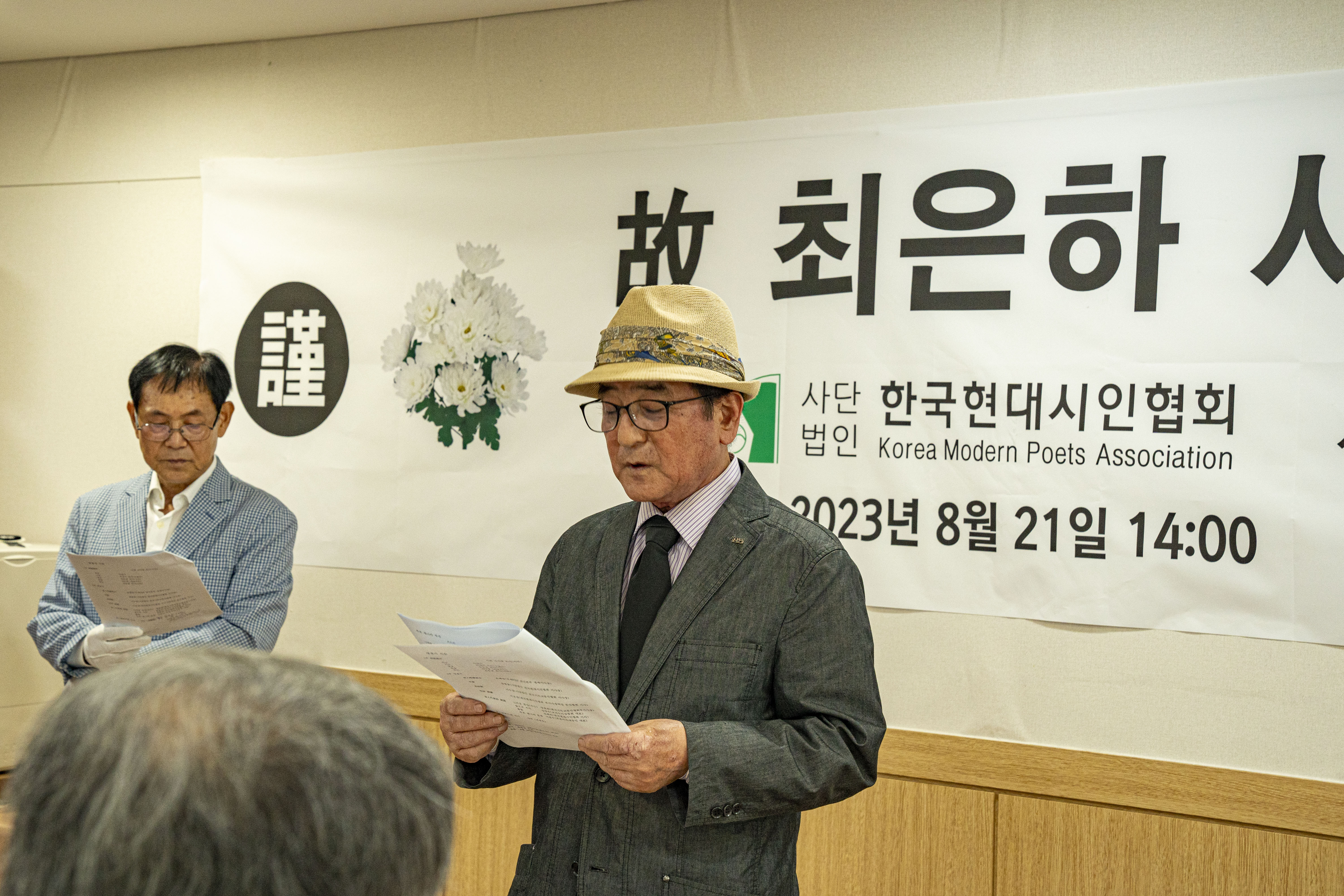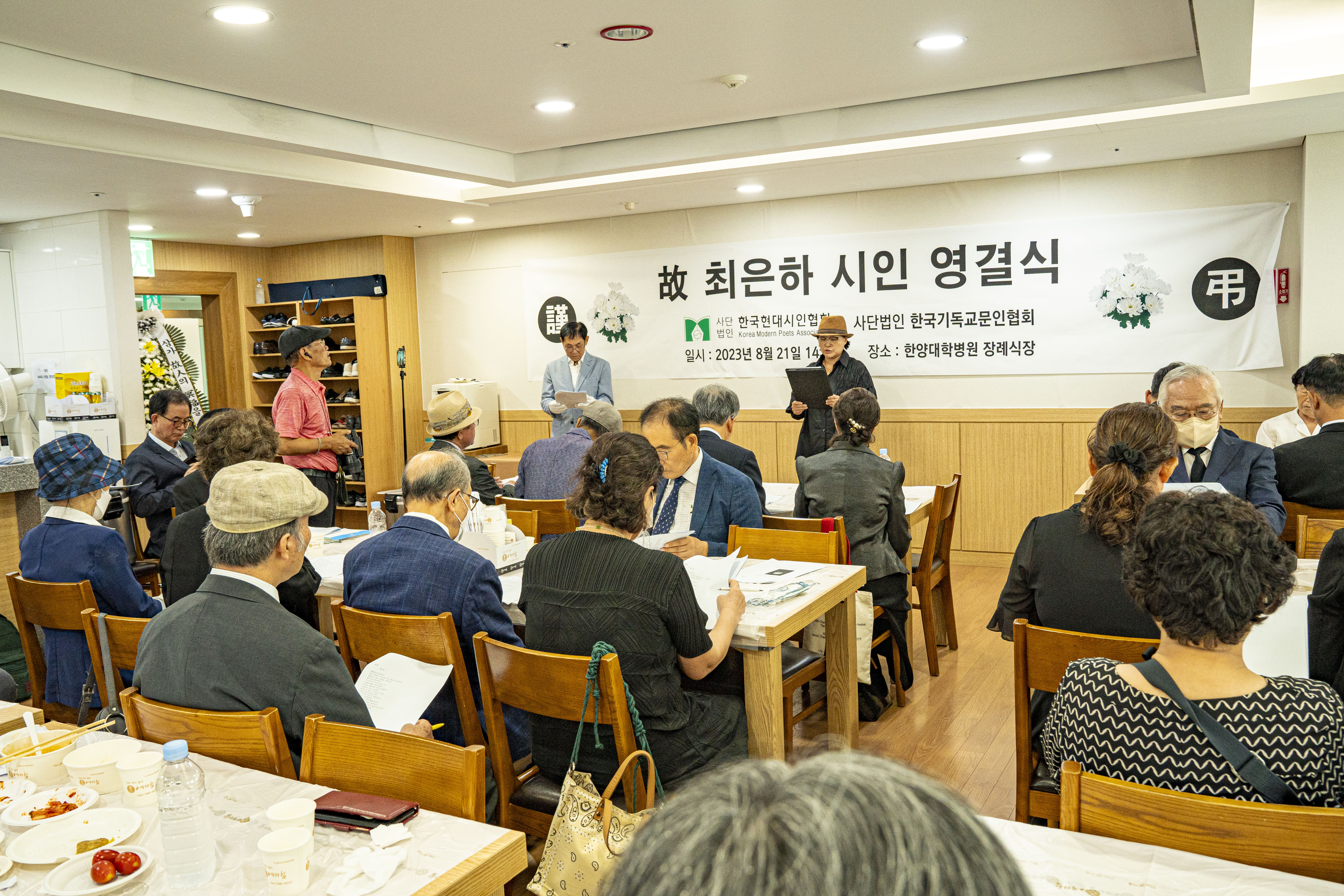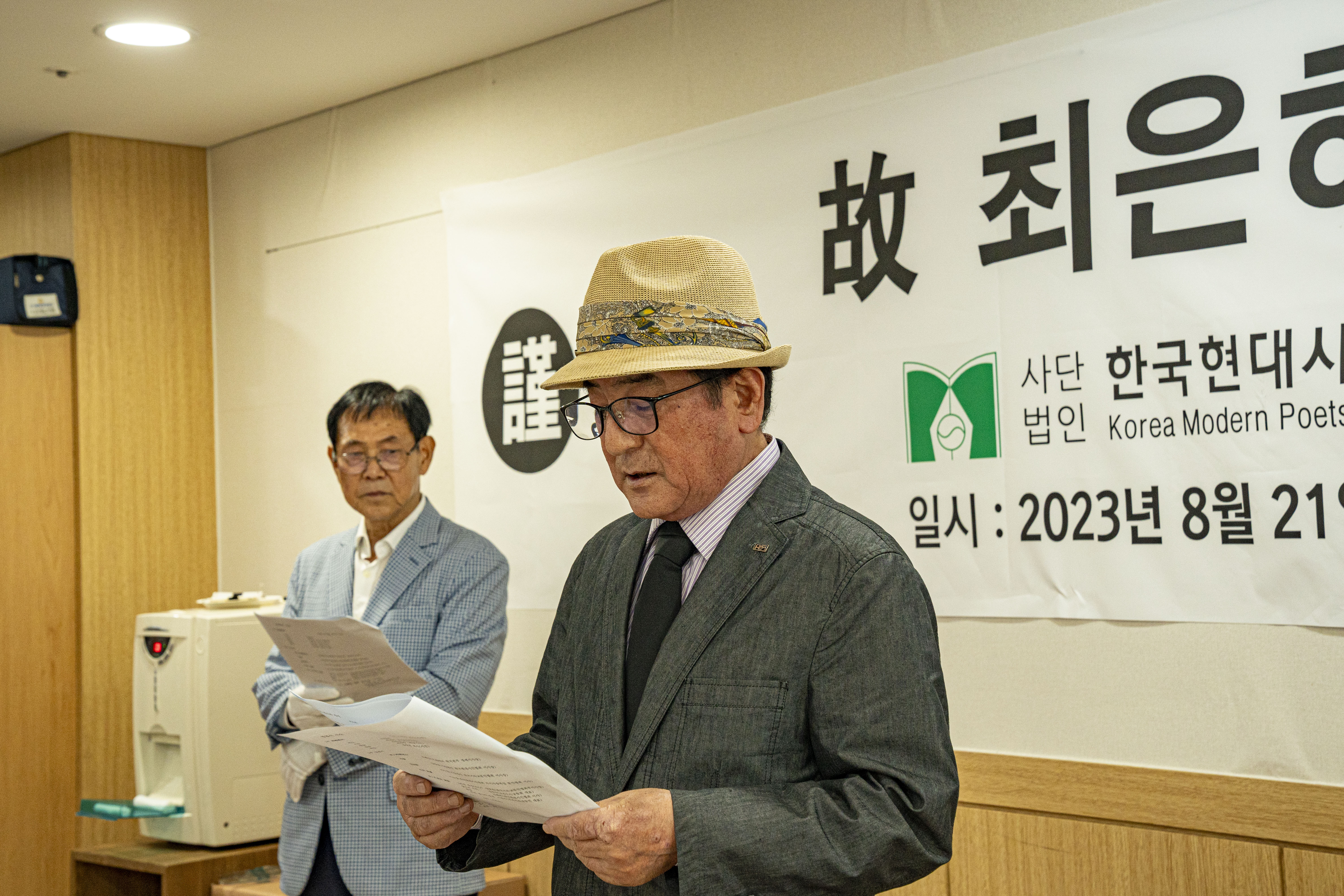한국현대시인협회 종신평의원으로 시인을 보내는 자리에 여러 후배 문인들이 모여 시인의 작품을 읽으면서 추모한다