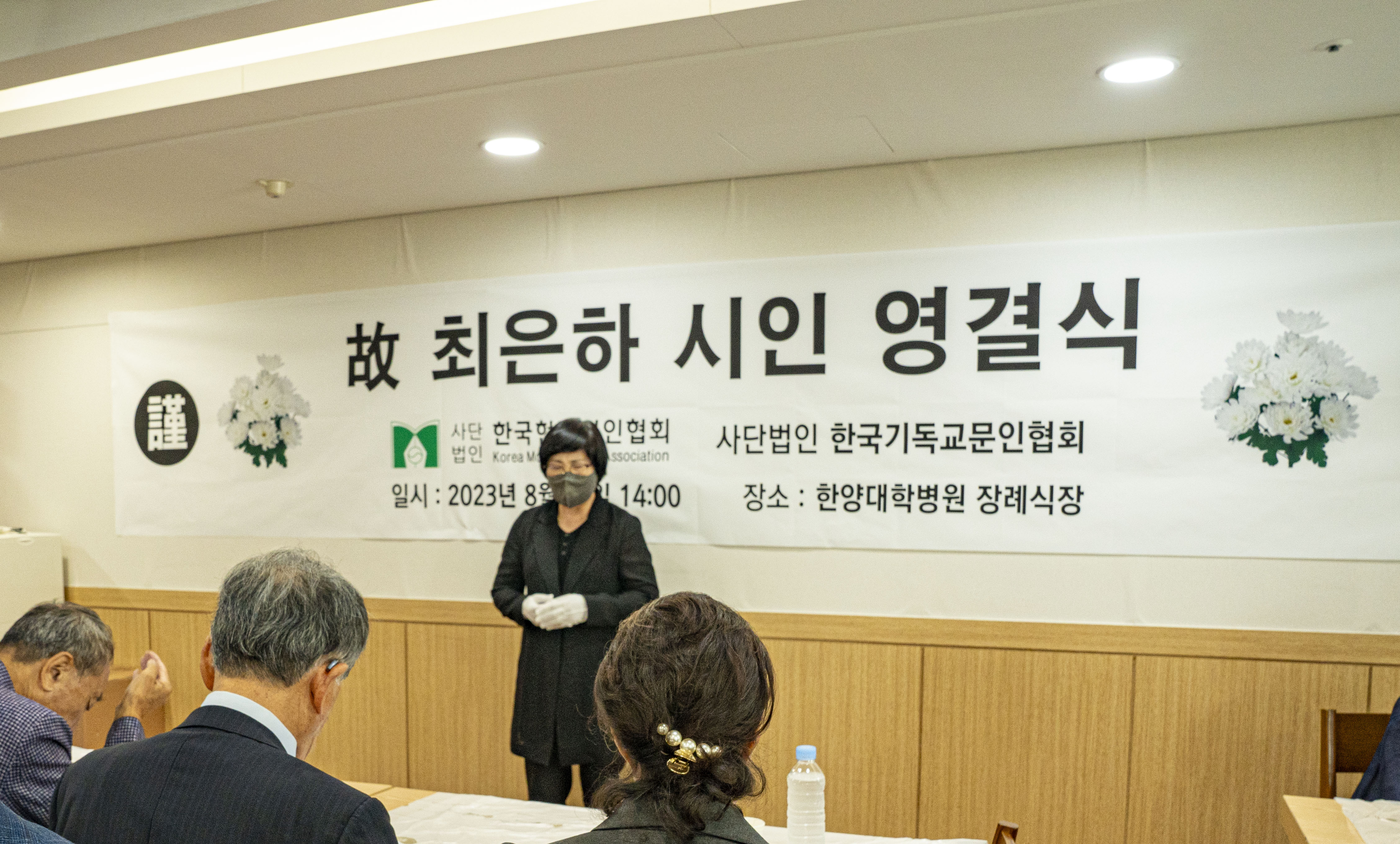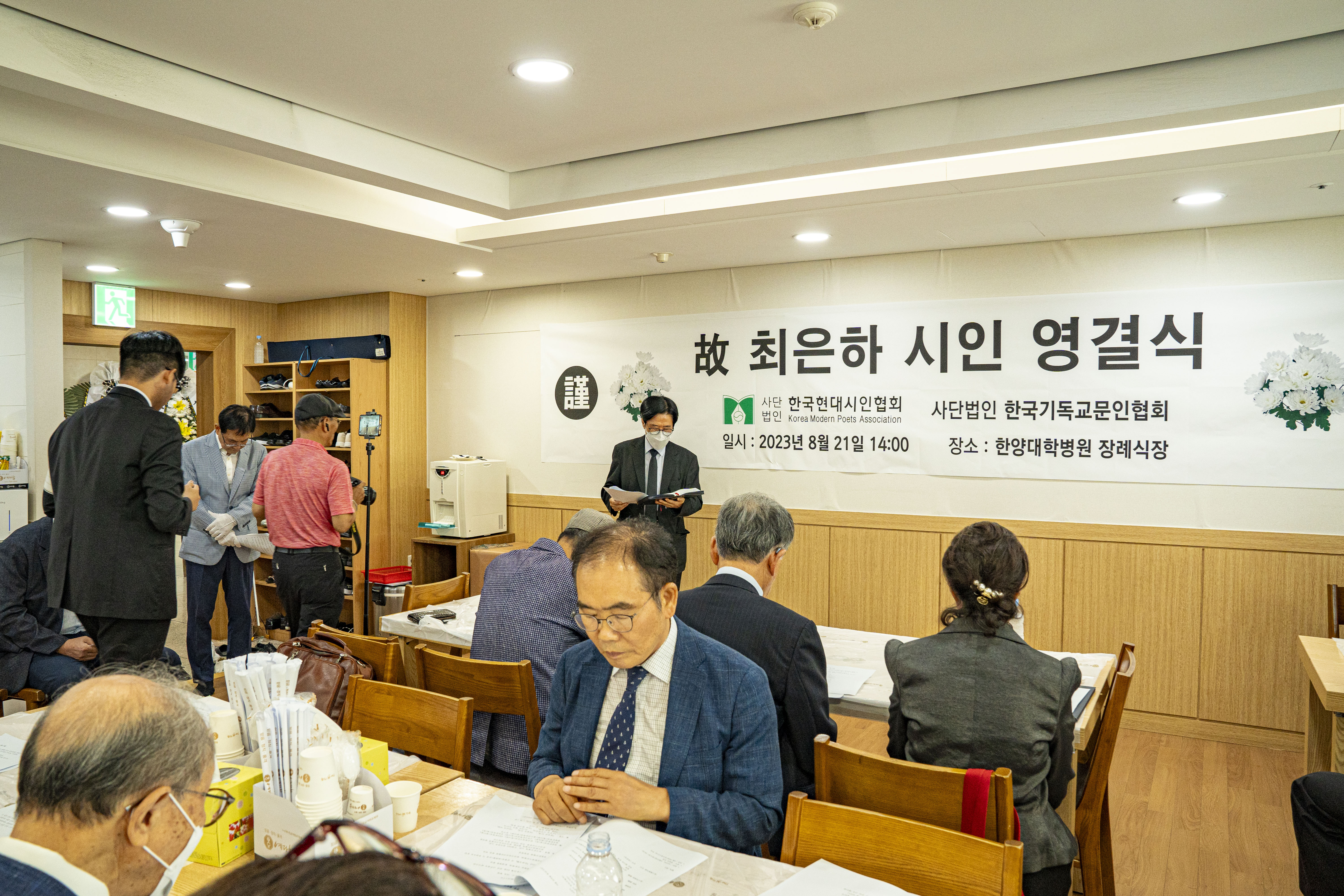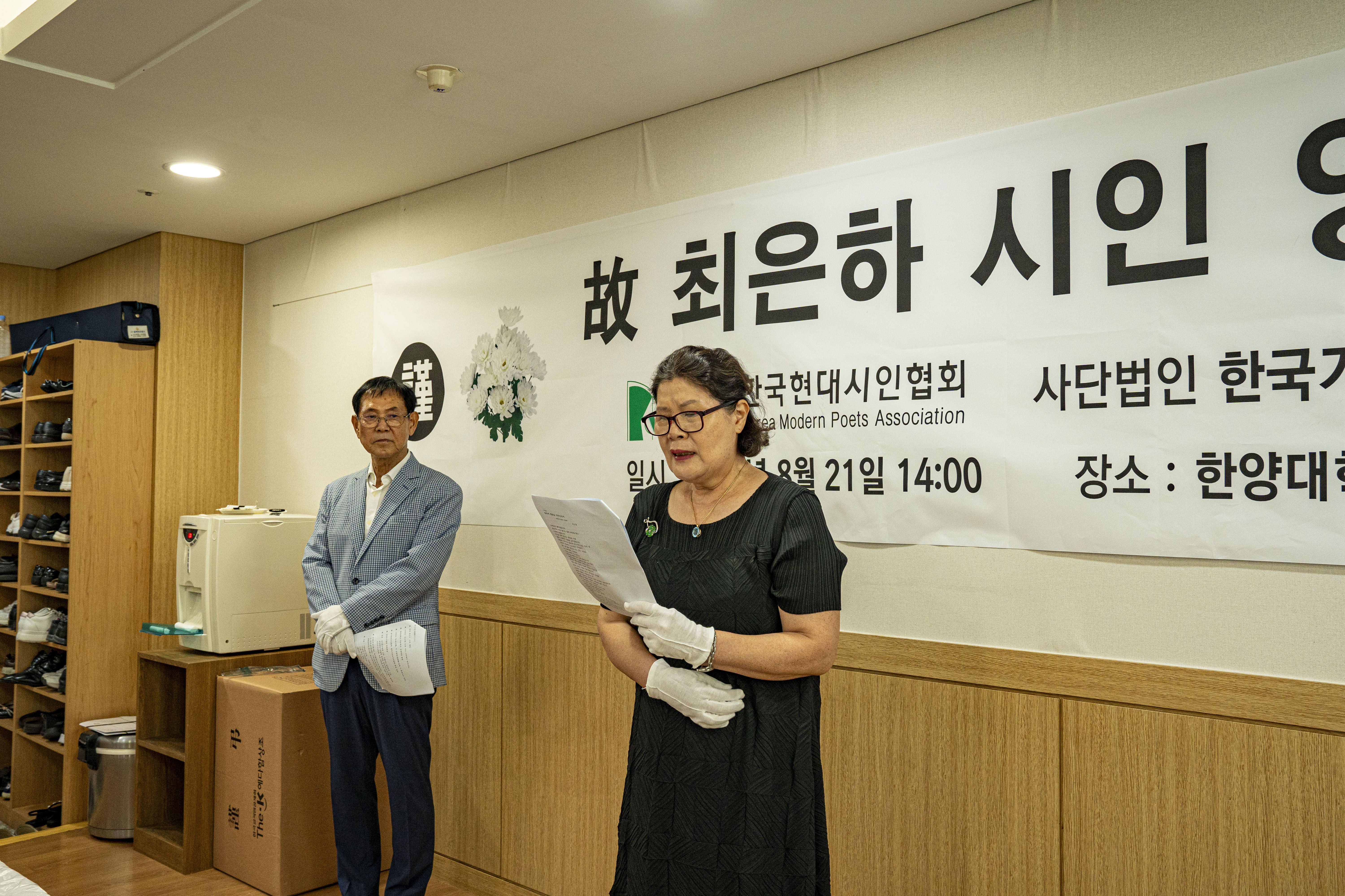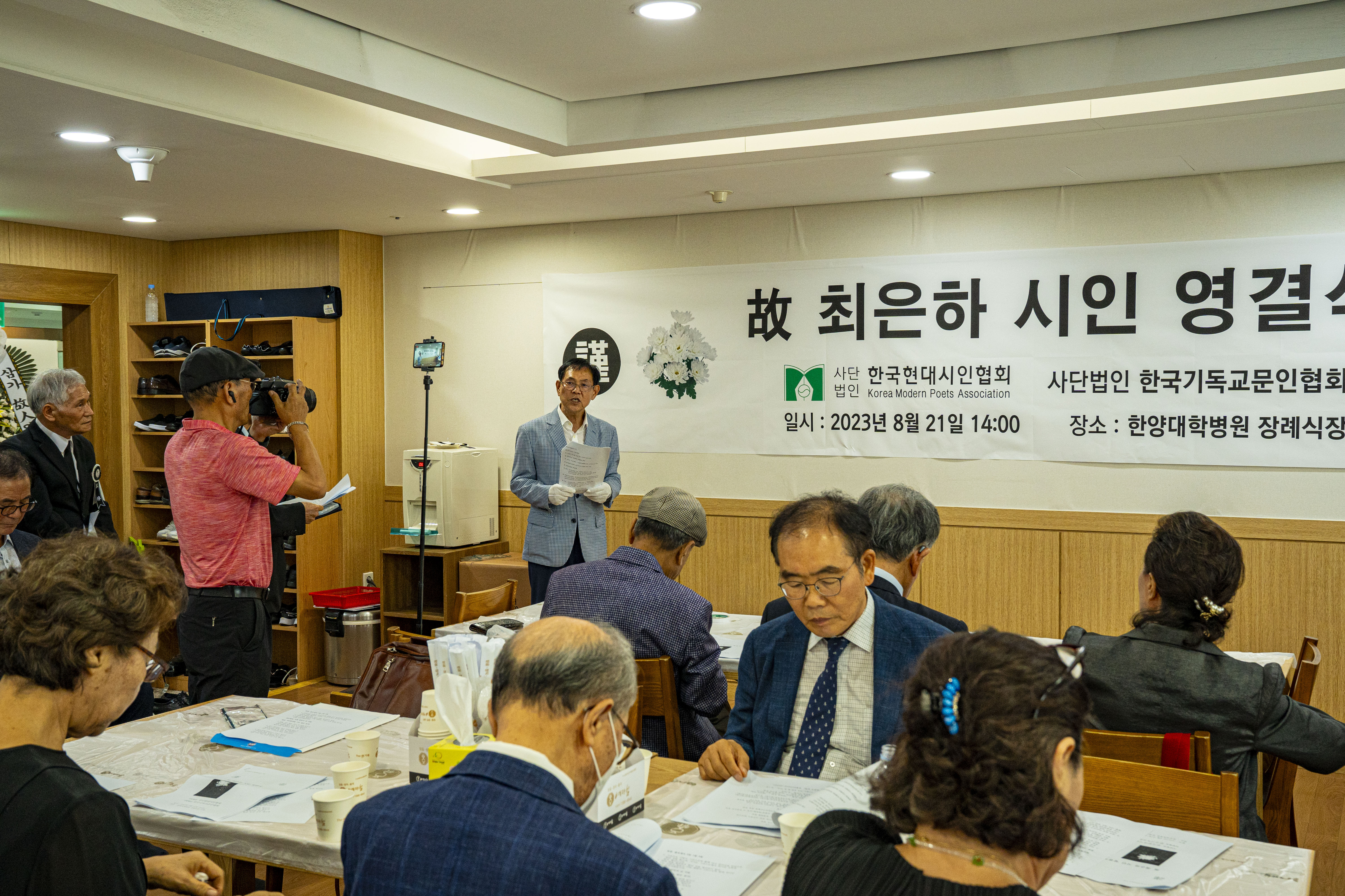 한국현대시인협회 종신평의원으로 시인을 보내는 자리에 여러 후배 문인들이 모여 시인의 작품을 읽으면서 추모한다