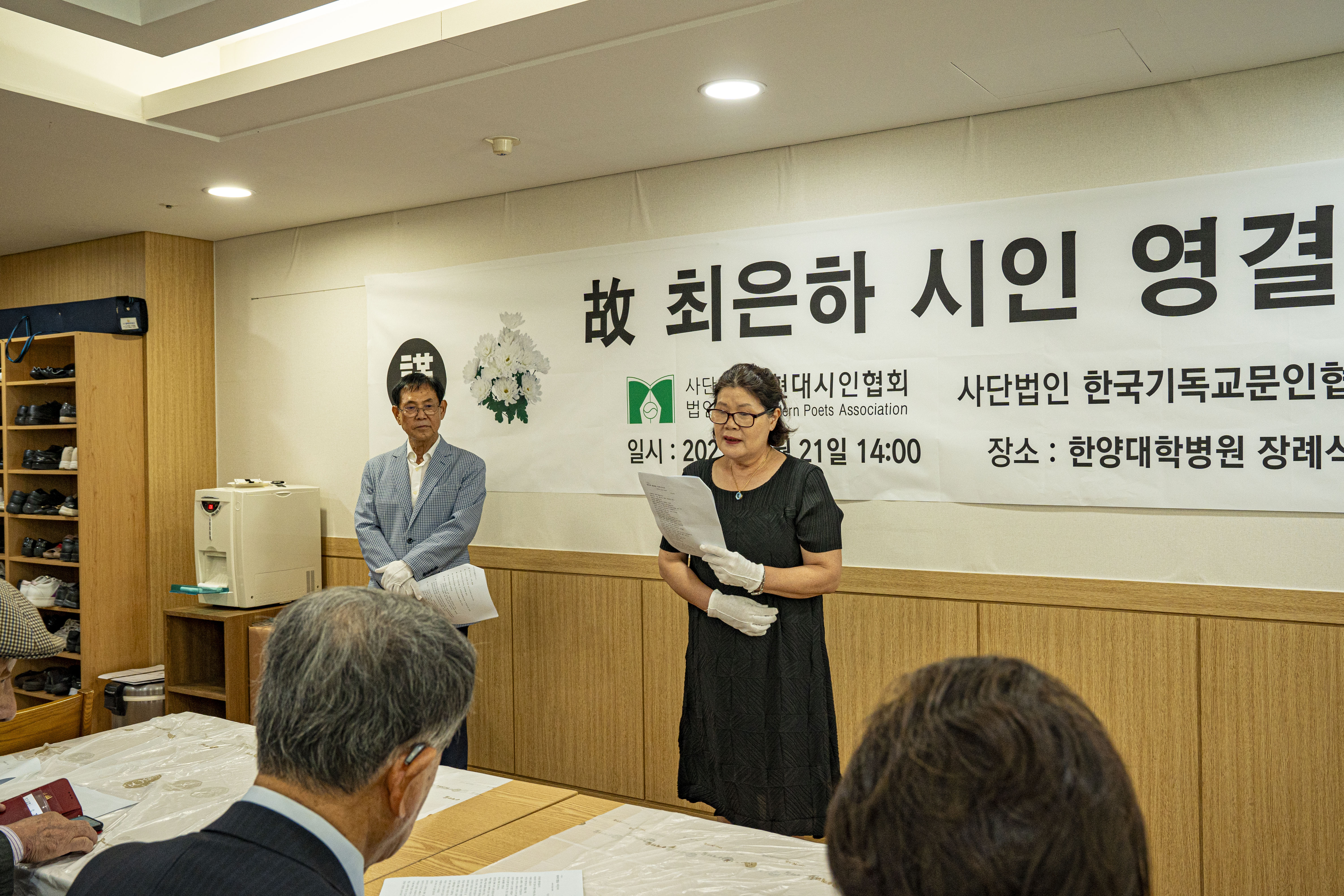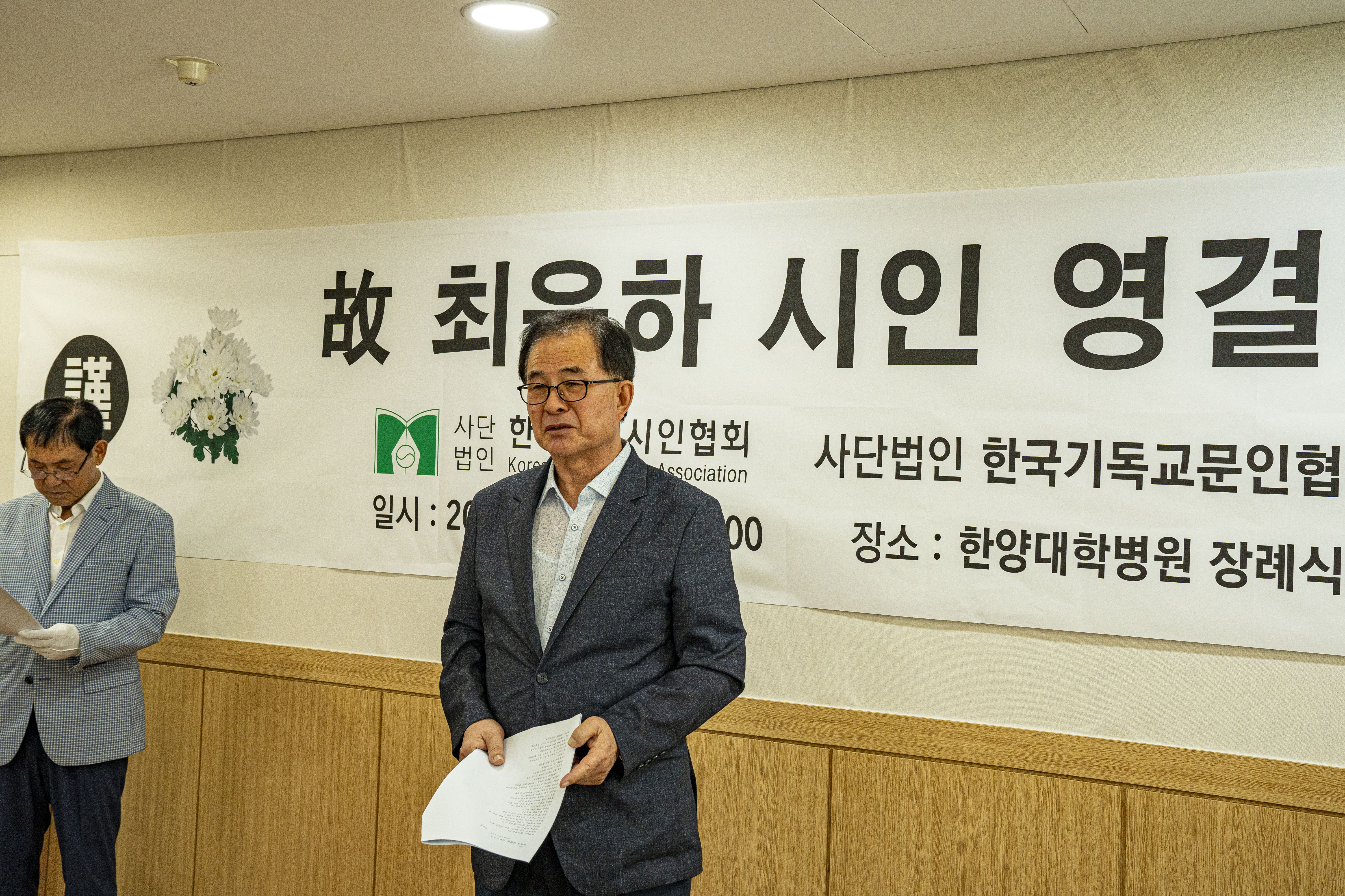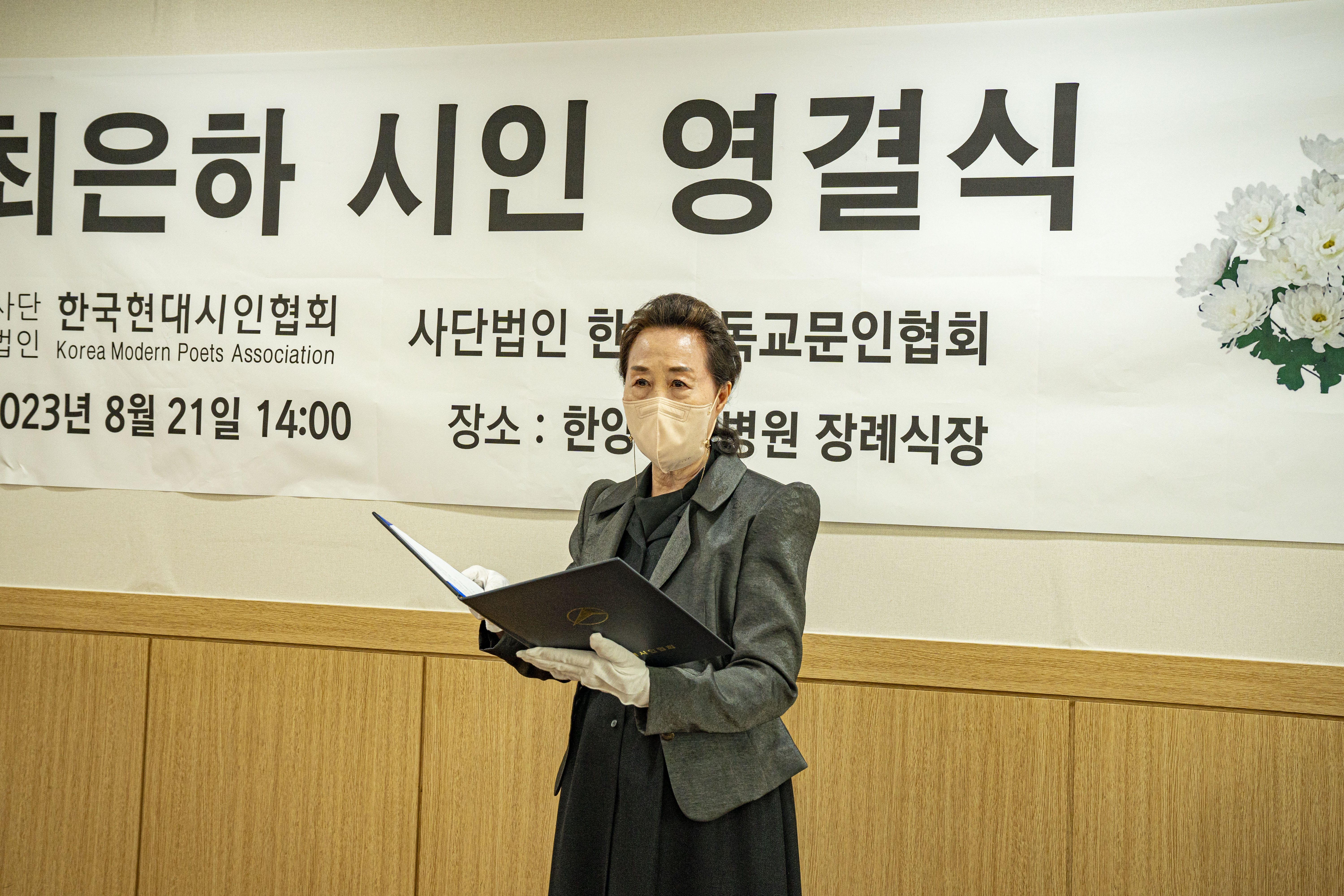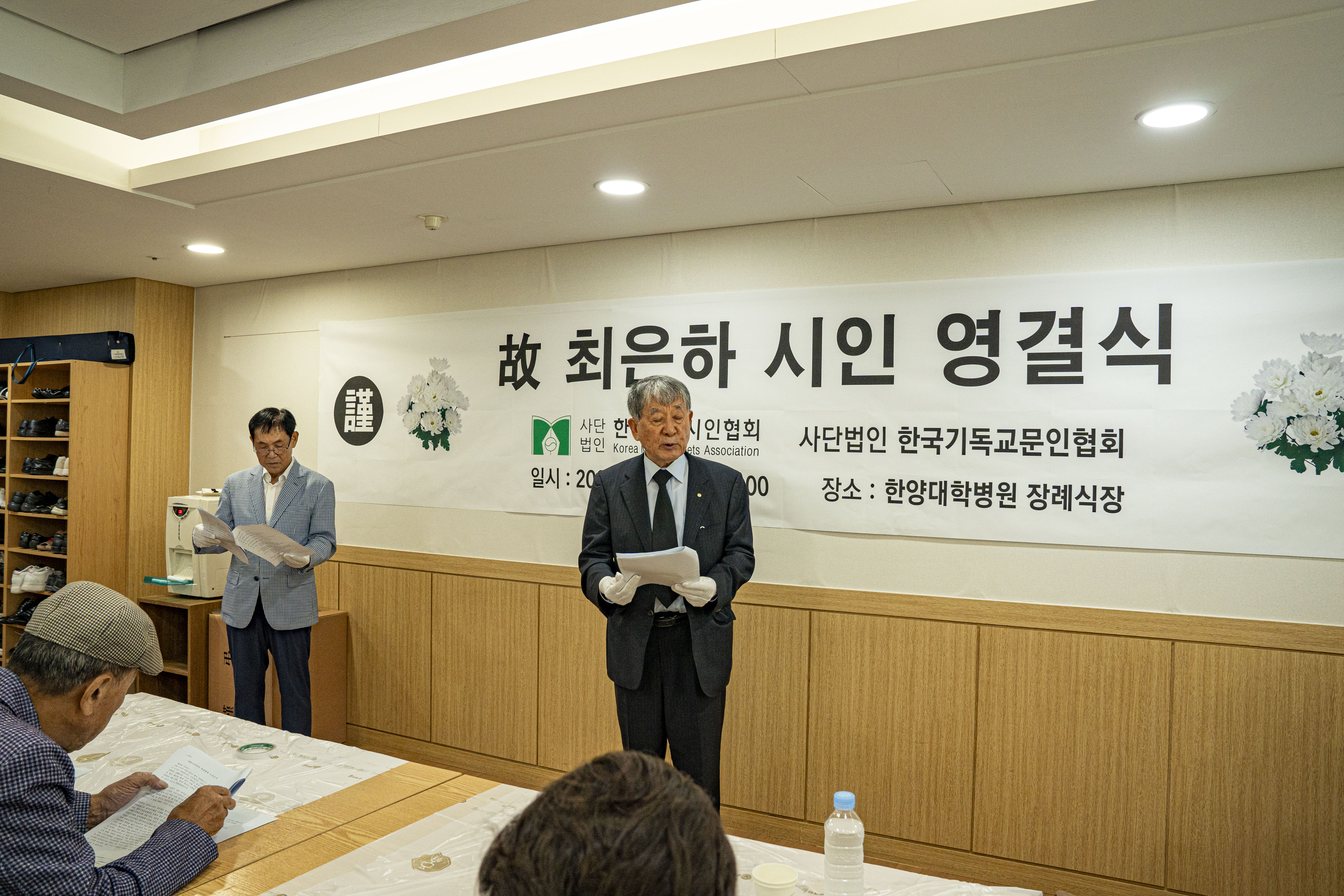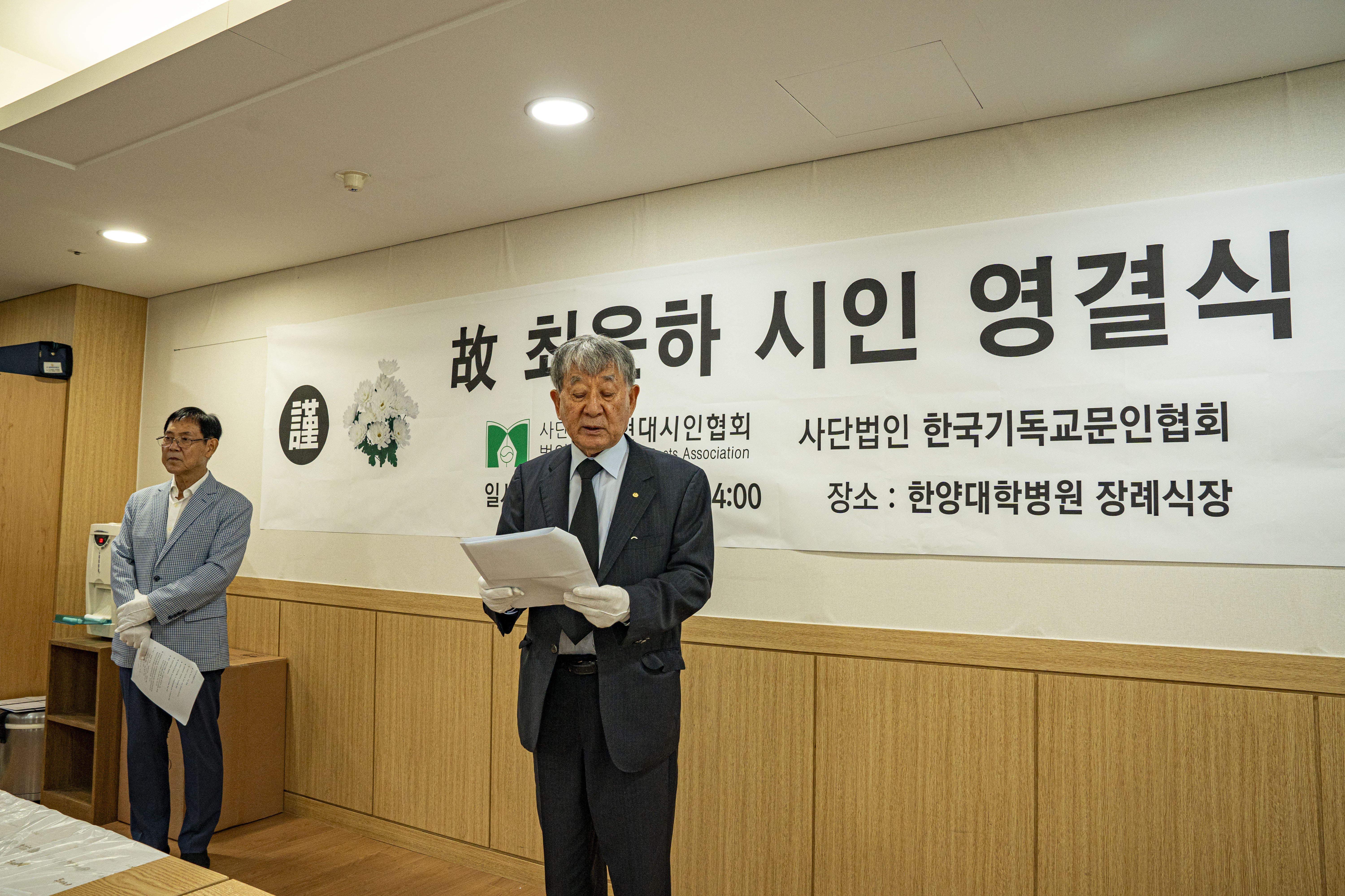 한국현대시인협회 종신평의원으로 시인을 보내는 자리에 여러 후배 문인들이 모여 시인의 작품을 읽으면서 추모한다