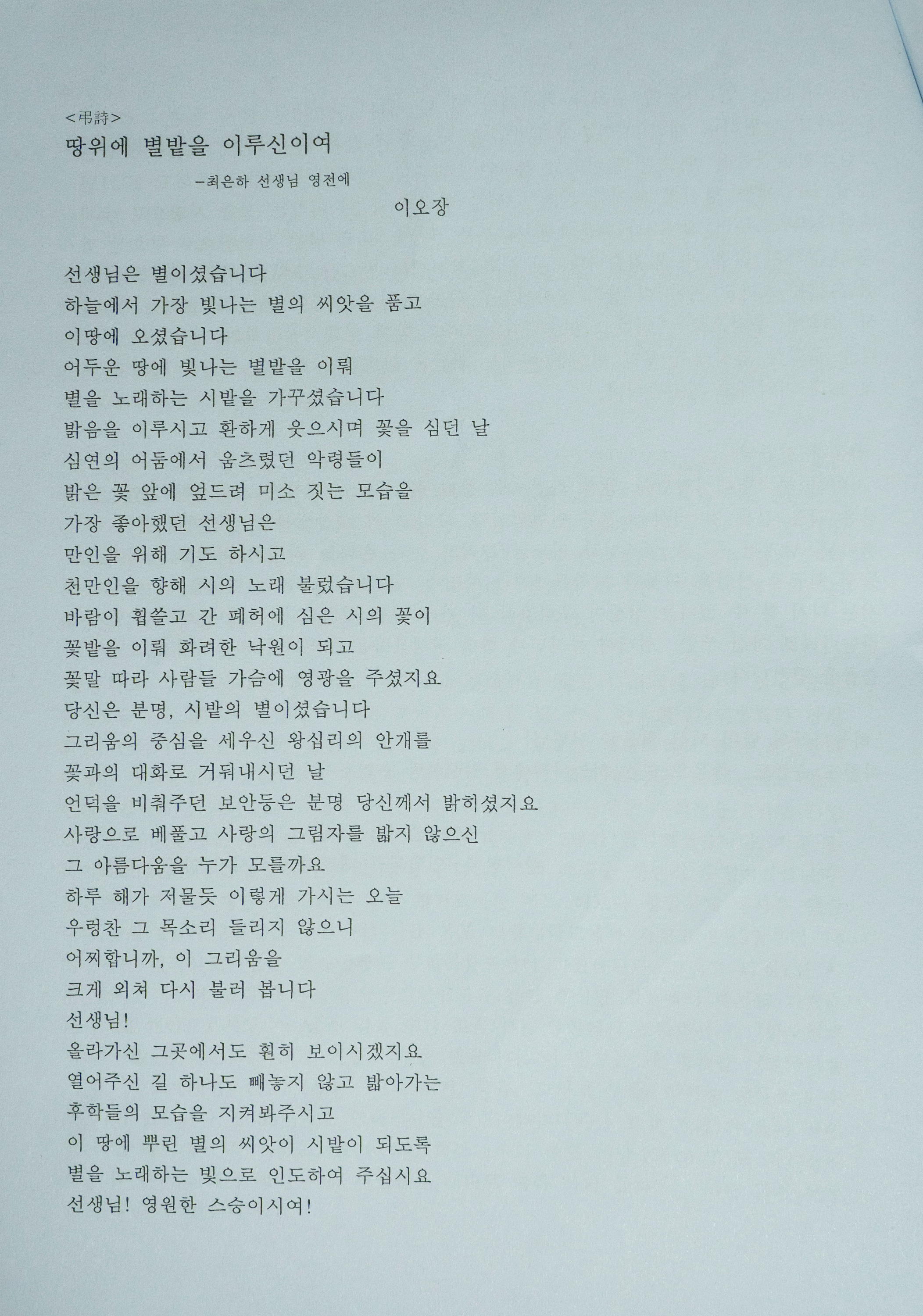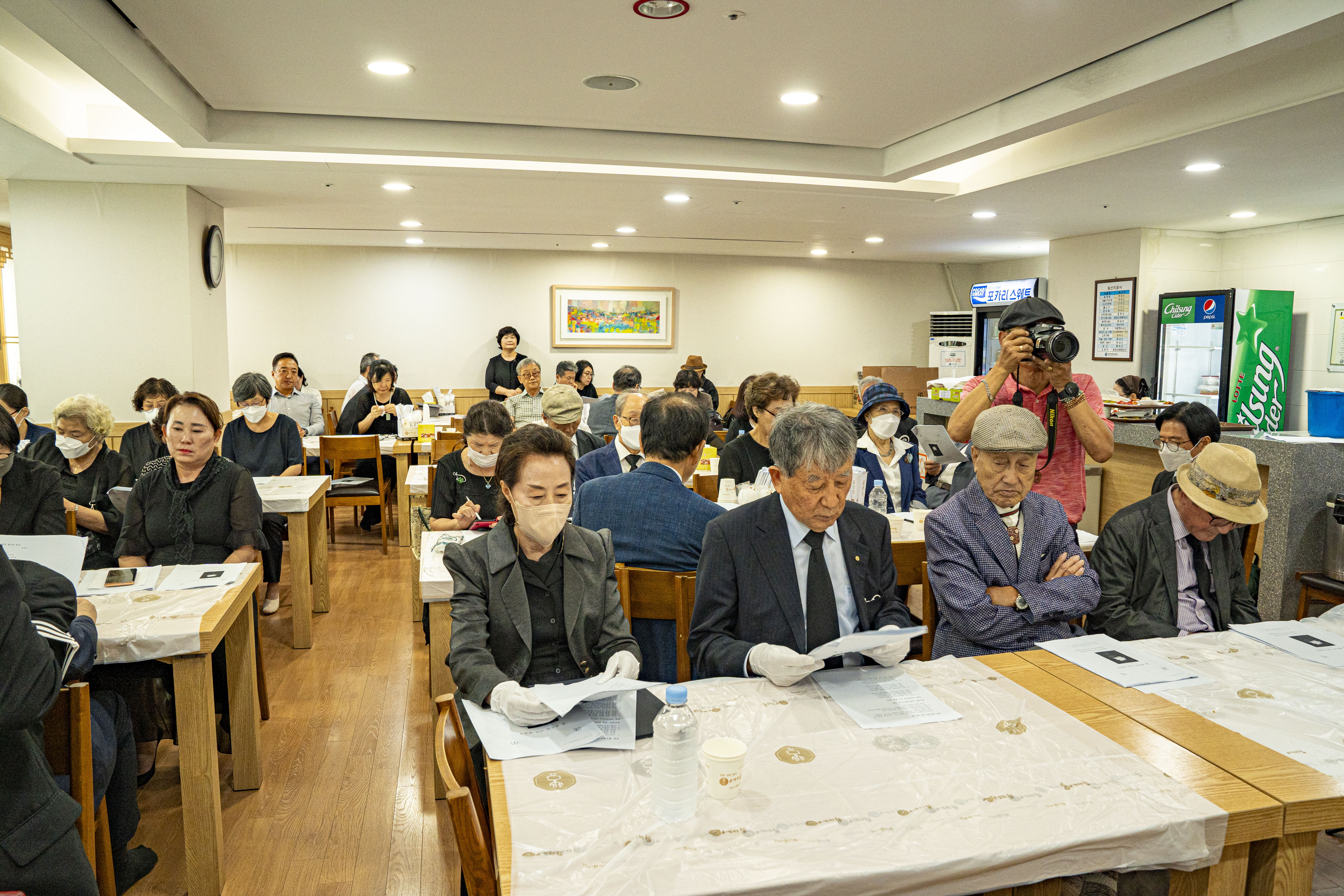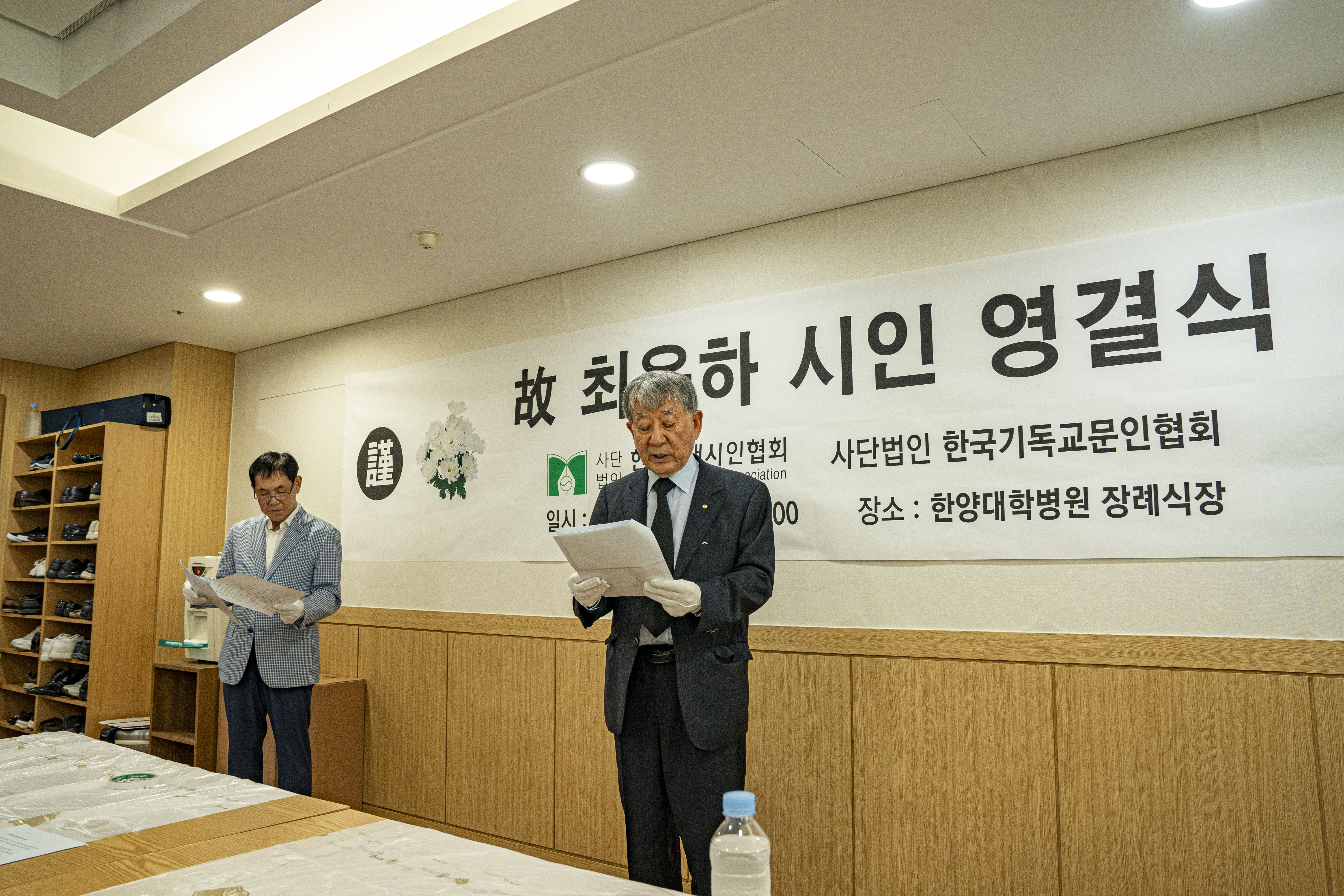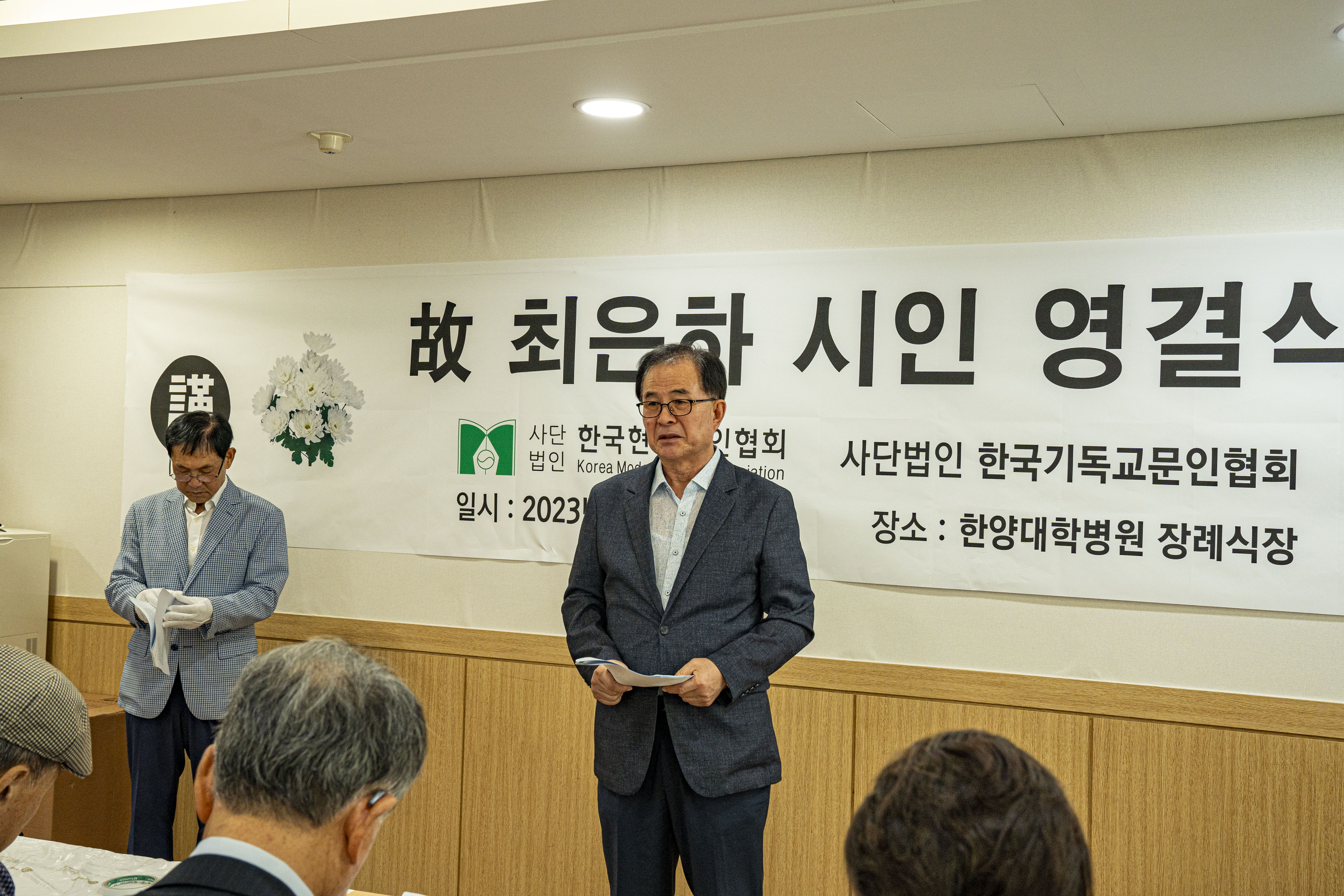 한국현대시인협회 종신평의원으로 시인을 보내는 자리에 여러 후배 문인들이 모여 시인의 작품을 읽으면서 추모한다