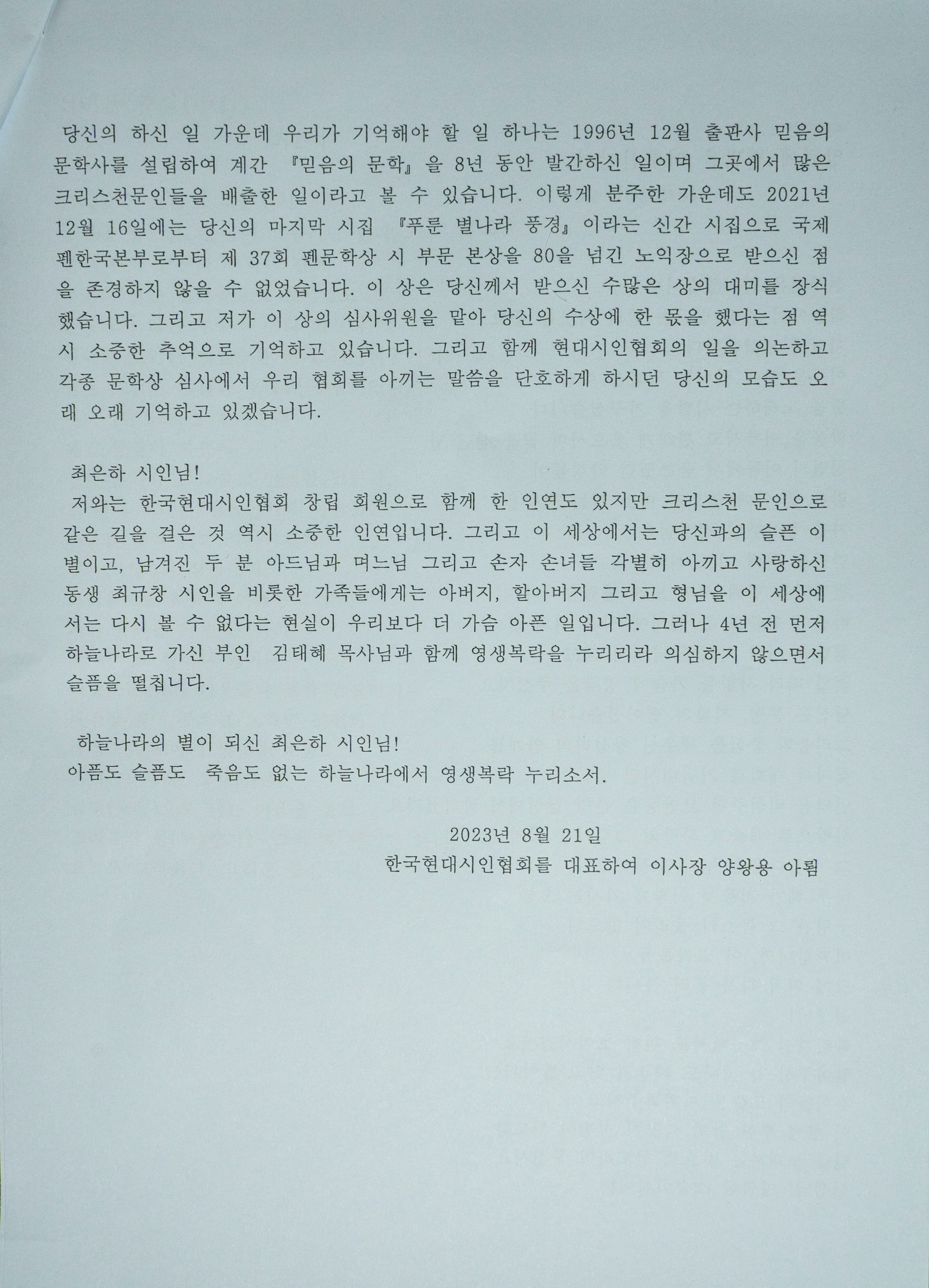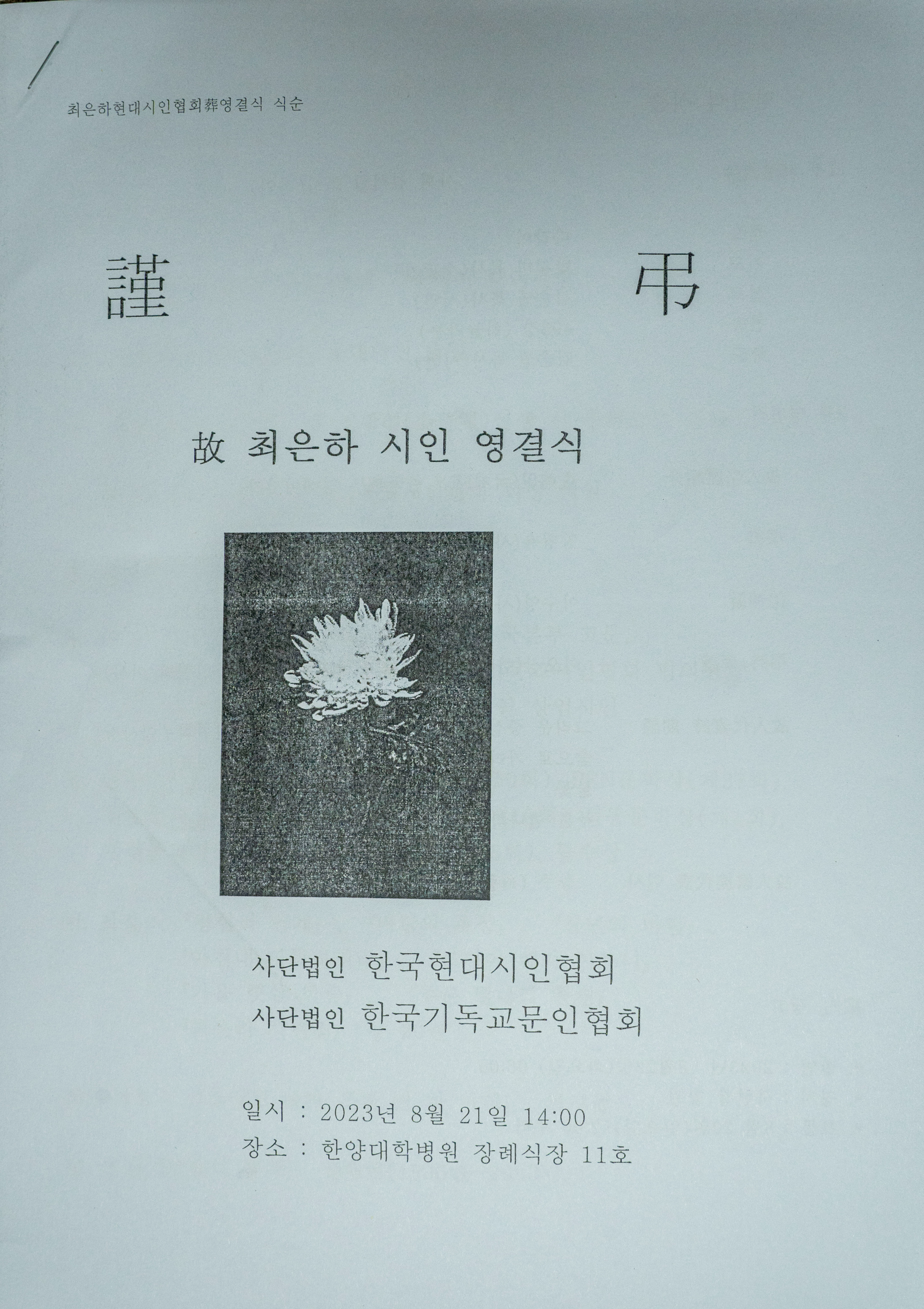 2023년 8월 21일 한양대학교장례식장에서 시인과 마지막 작별을 고한다