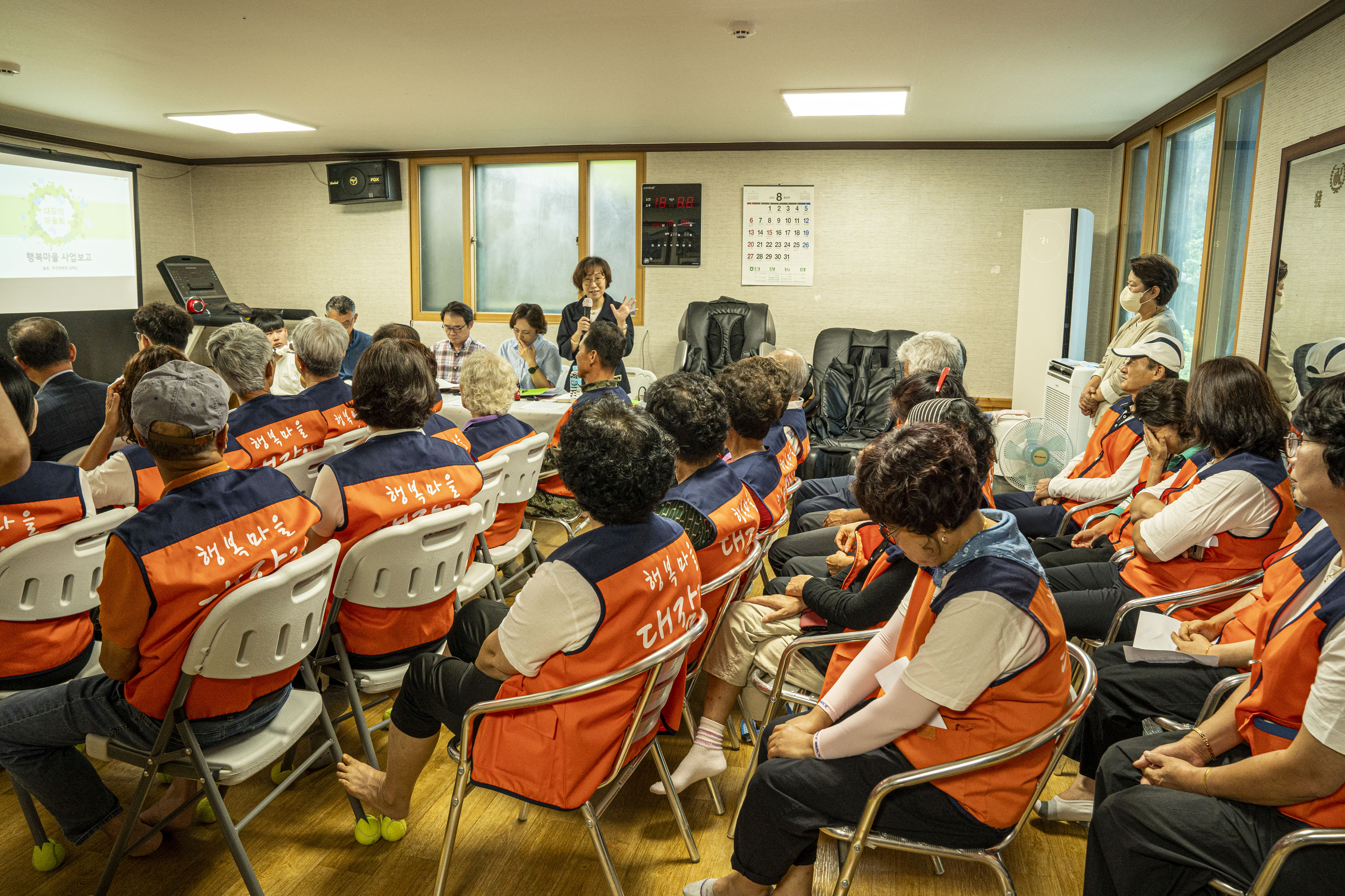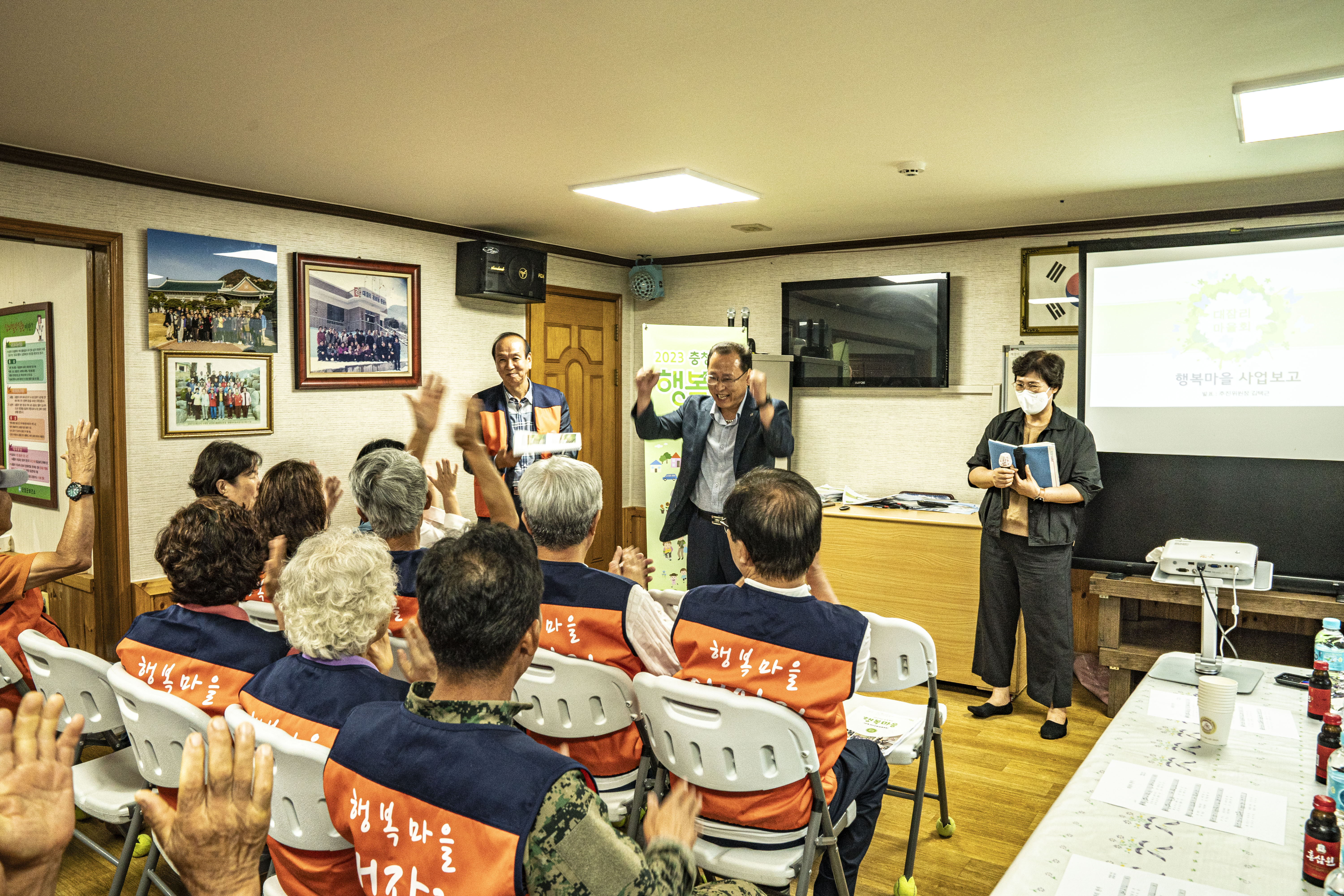 특히 행복마을 추진 항목으로 선정하여 전 주민들에게 노래를 연습하여 행복마을 추진 발표날 온 주민이 함께 부르면서 발표하면 이상적이라는 생각이 들었다