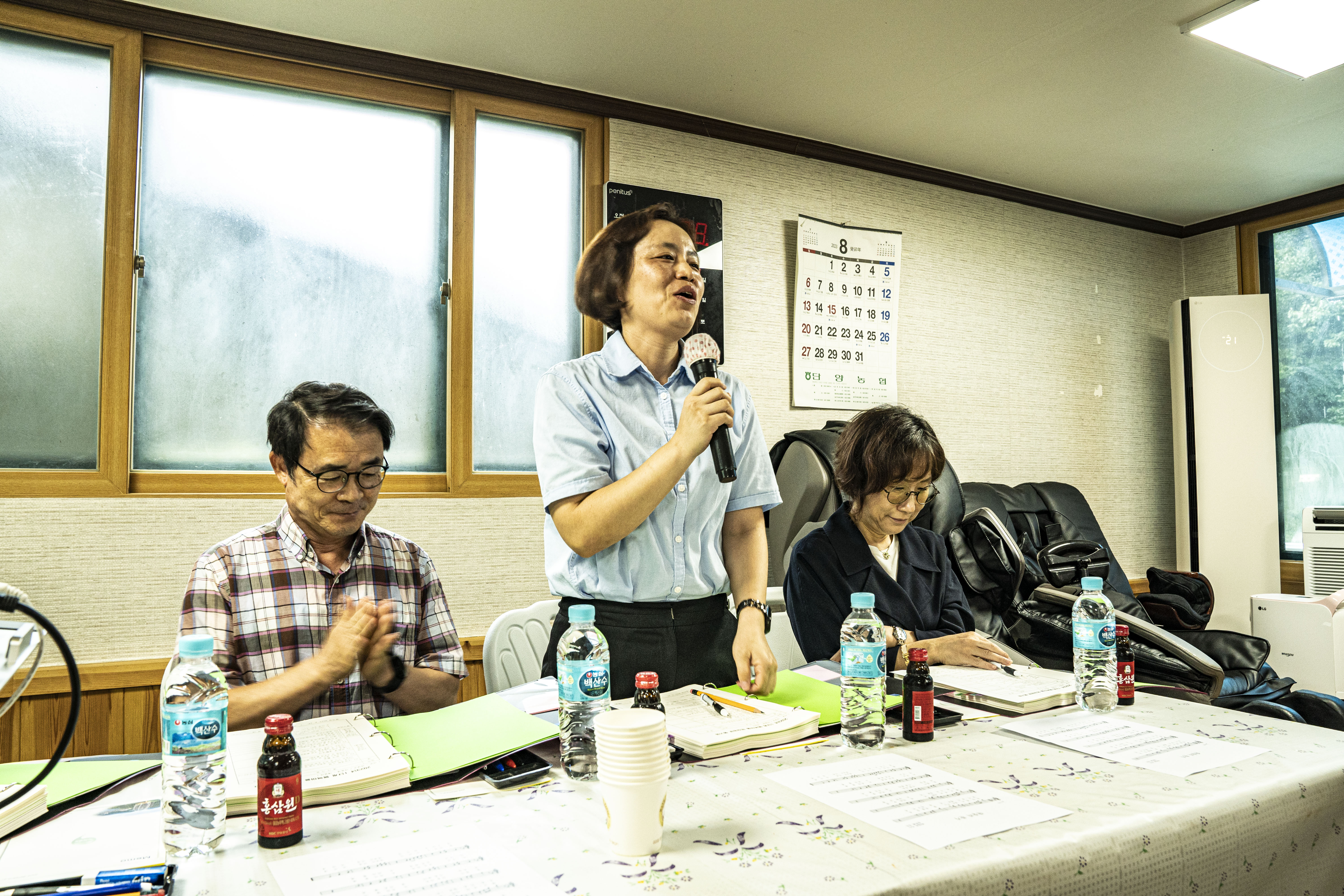 나도 행복마을 주민자치회의 날 마을 회관에서 대잠리 찬가에 대하여 설명하고 가사 내용에 대하여 우리 마을 자랑인 역사 문화적 사실을 설명하여 자긍심을 갖게 하는 자리를 마련하고 악보를 보고 대잠리 찬가를 이우윤 선생 부부와 장희규 전 이장님과 함께 같이 불렀다