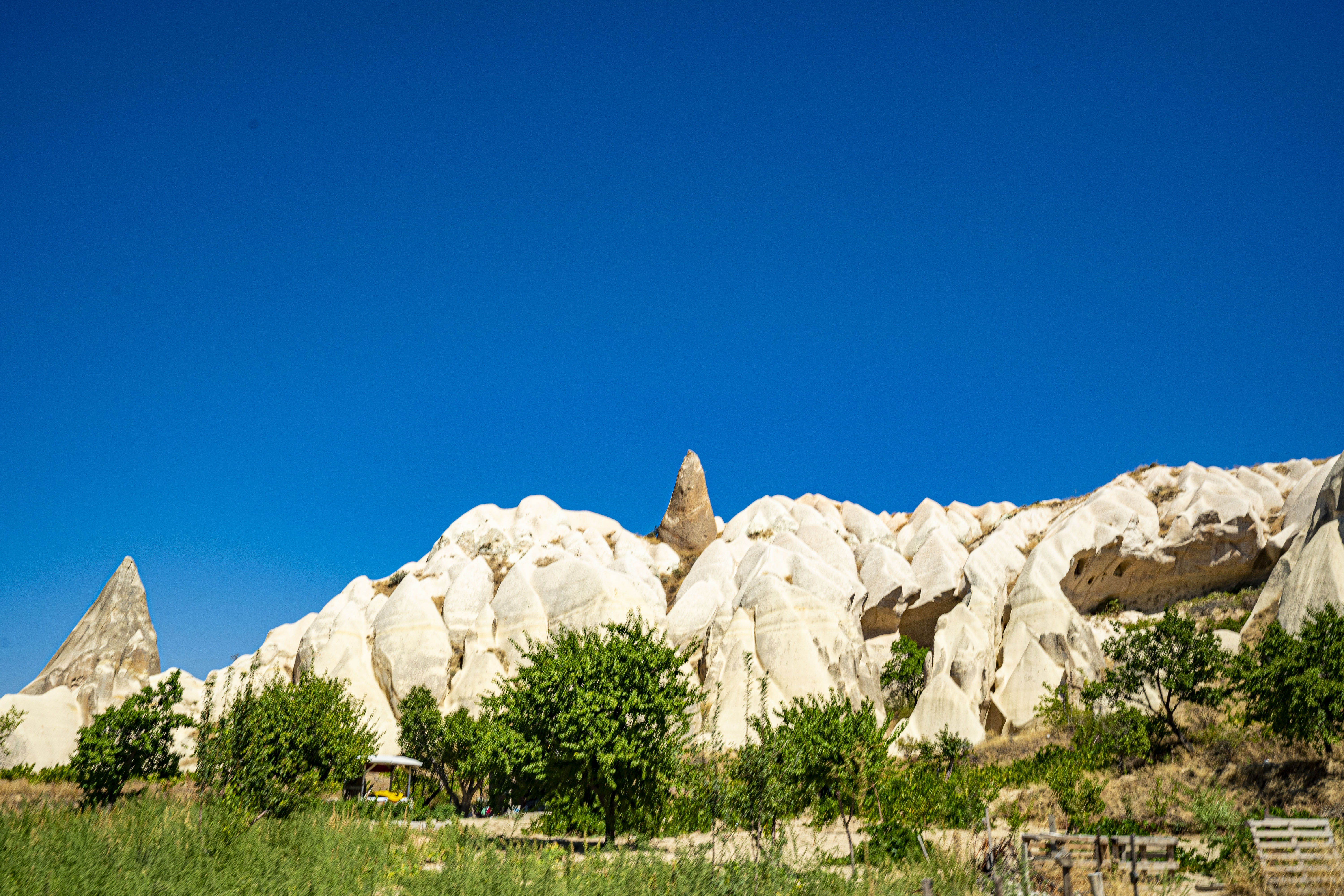응회암 언덕에 안으로 터널을 뚫고 밖으로 건물 형태를 지어서 생긴 호텔이 여러 곳 목격된다