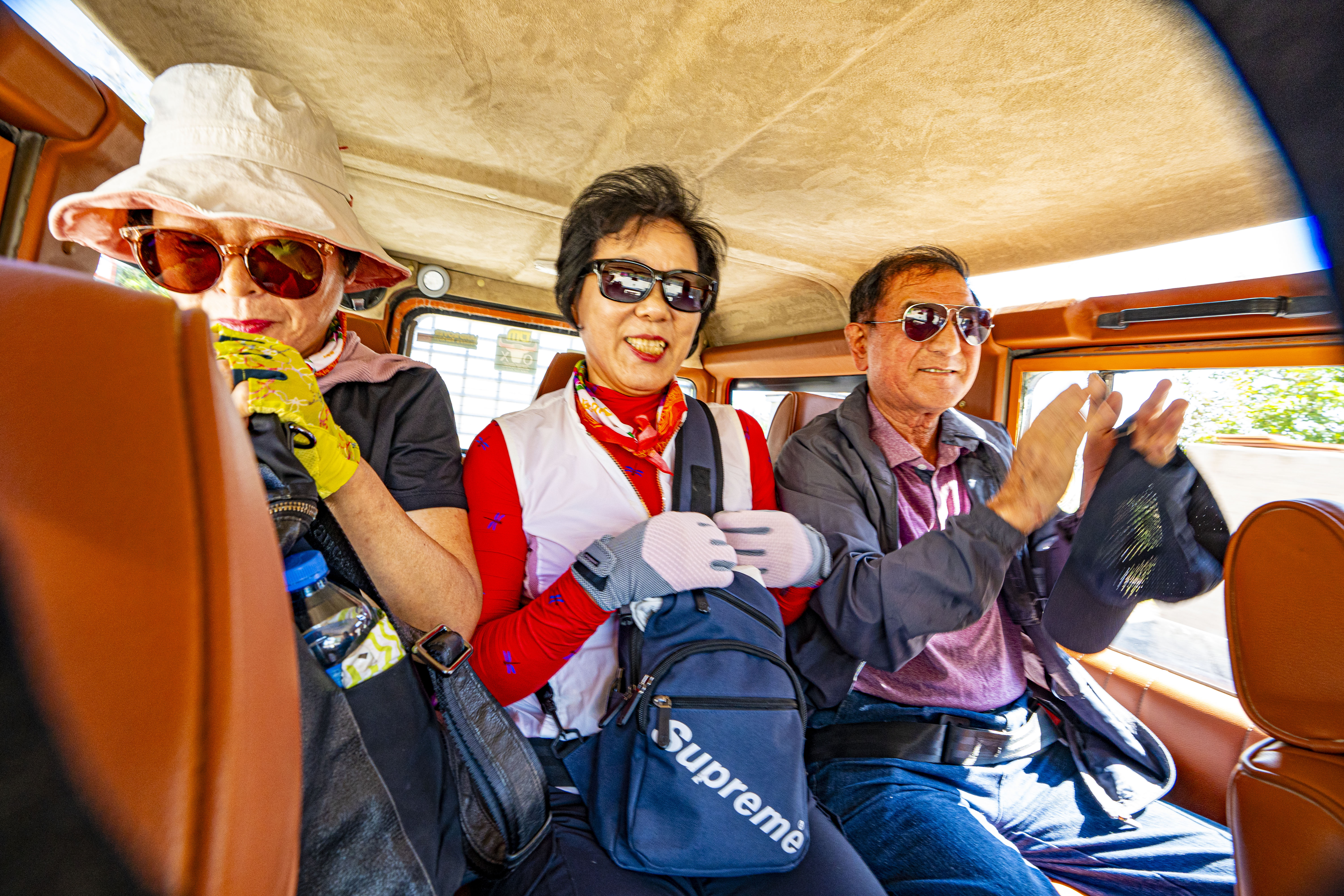 4륜구동 짚차를 4명씩 타고 언덕길을 액티브하게 달렸다