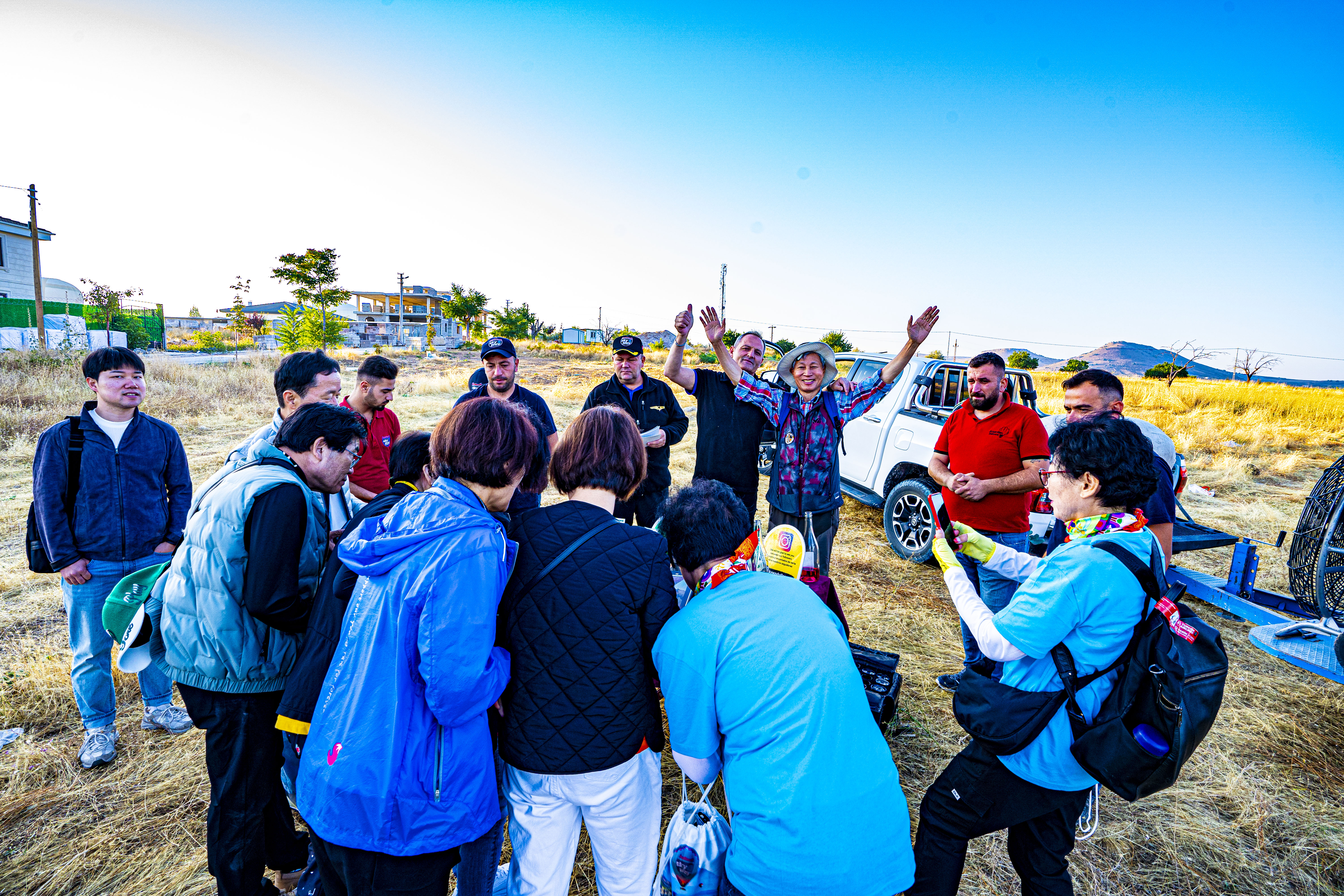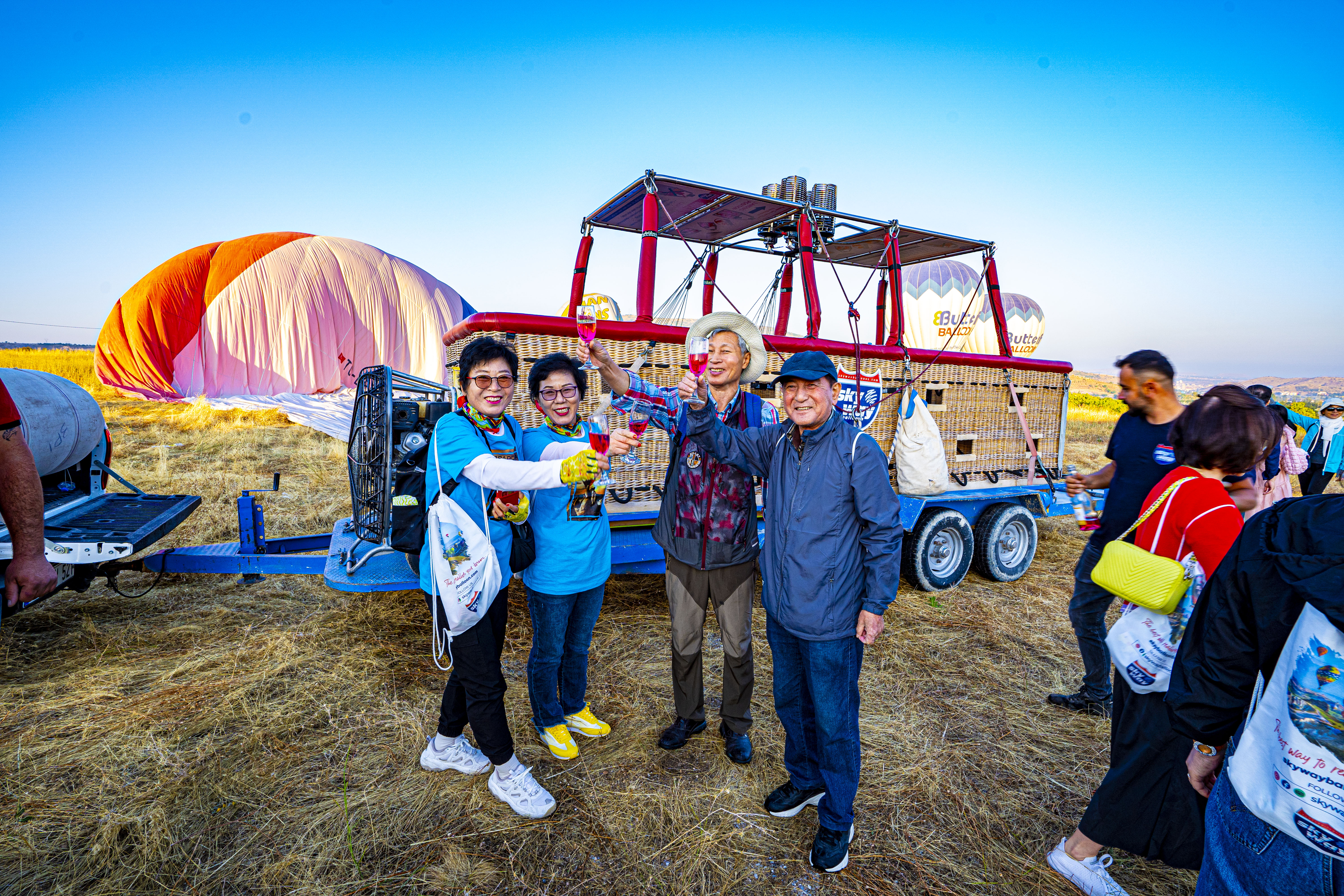 열기구 체험이 끝나면 파일럿과 함께 무사 귀환 와인 축배로 마무리 한다