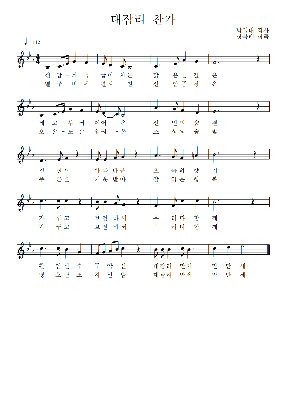 작사와 작곡은 주민인 박영대 시인이 노랫말을 짓고 작곡가에게 곡을 의뢰하여 대잠리 찬가를 만들게 되었다