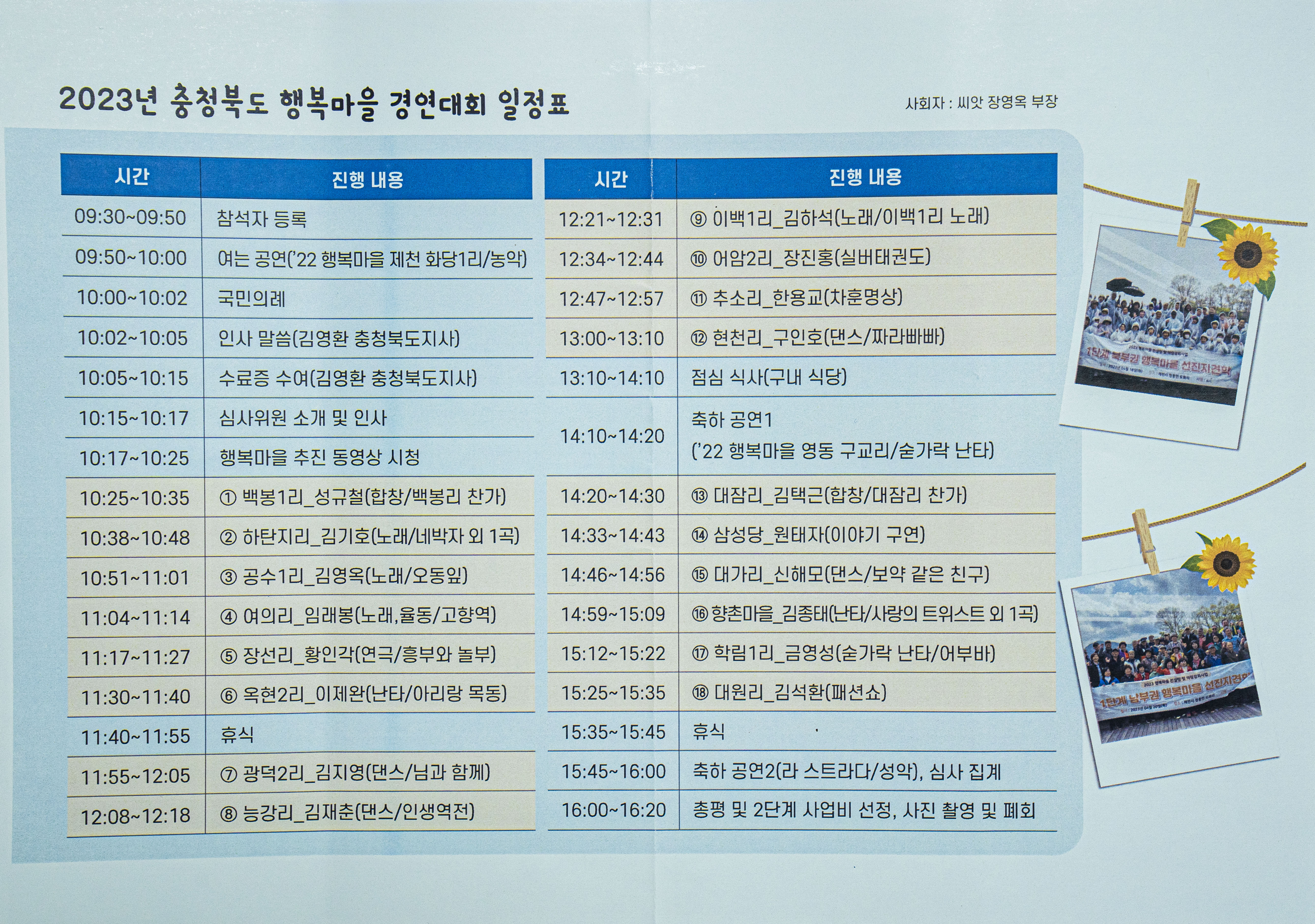 2023. 10. 11 충청북도가 시행하는 충북 행복마을 경연대회가 충북대학교 개신문화관에서 열렸다