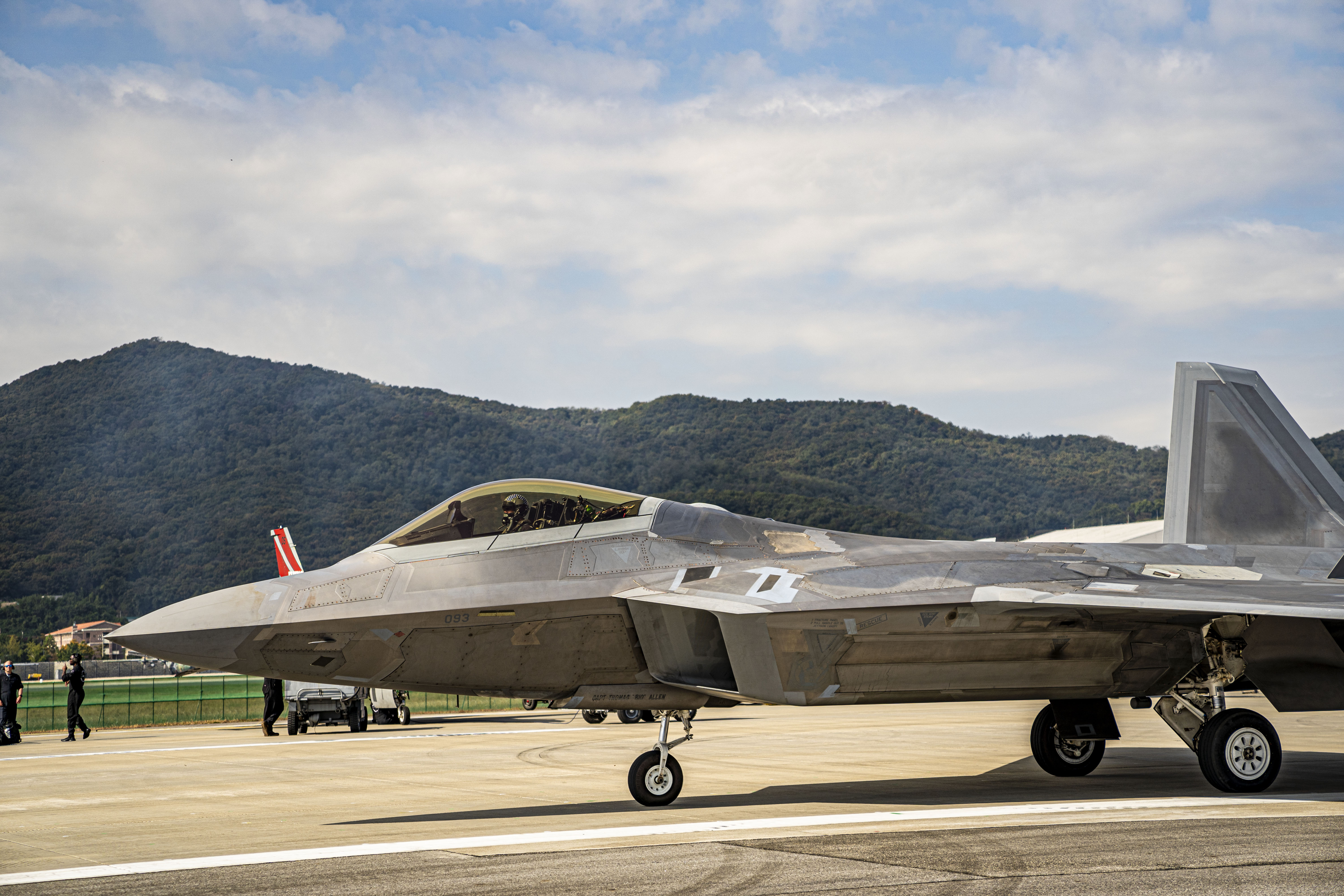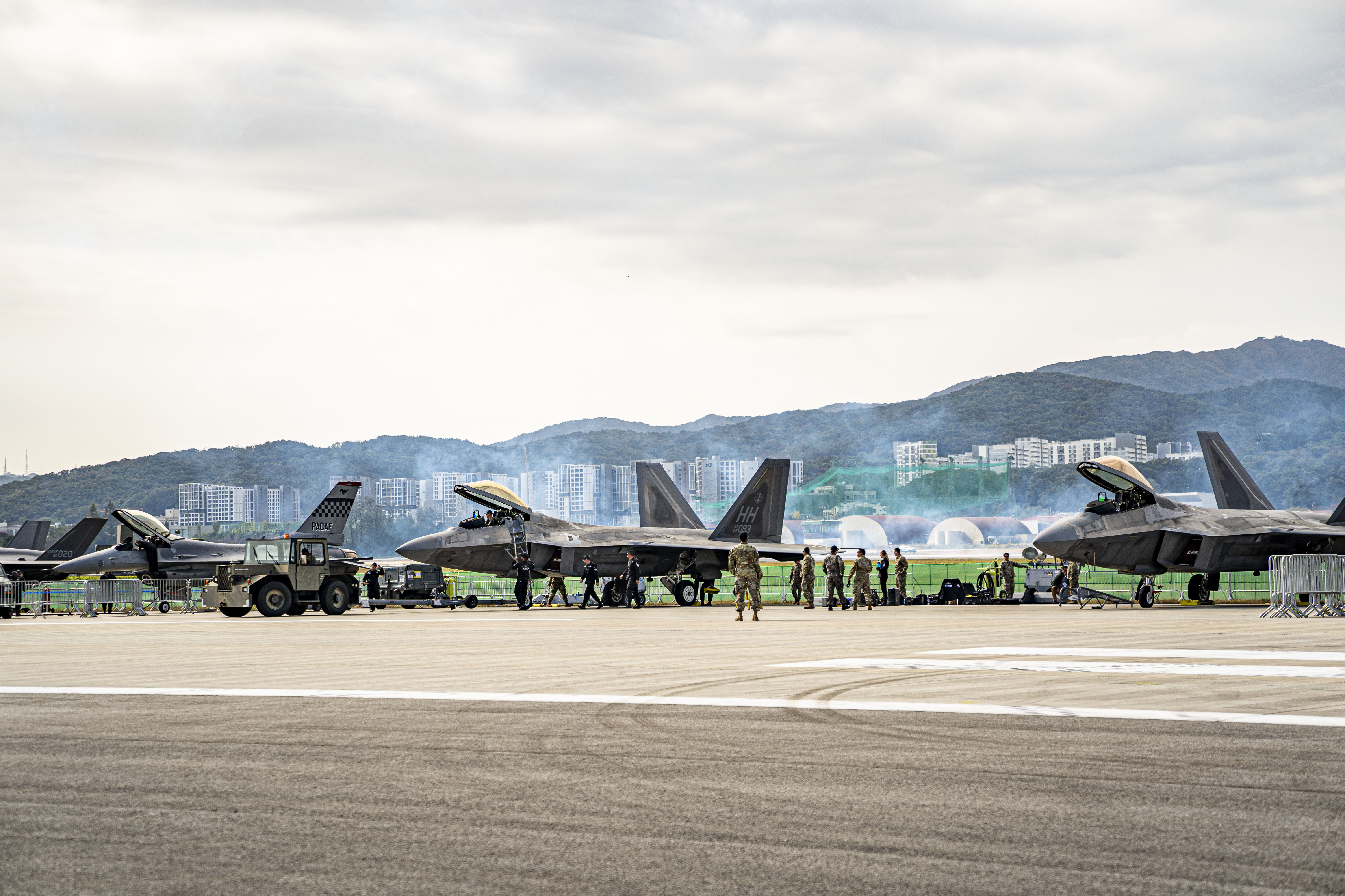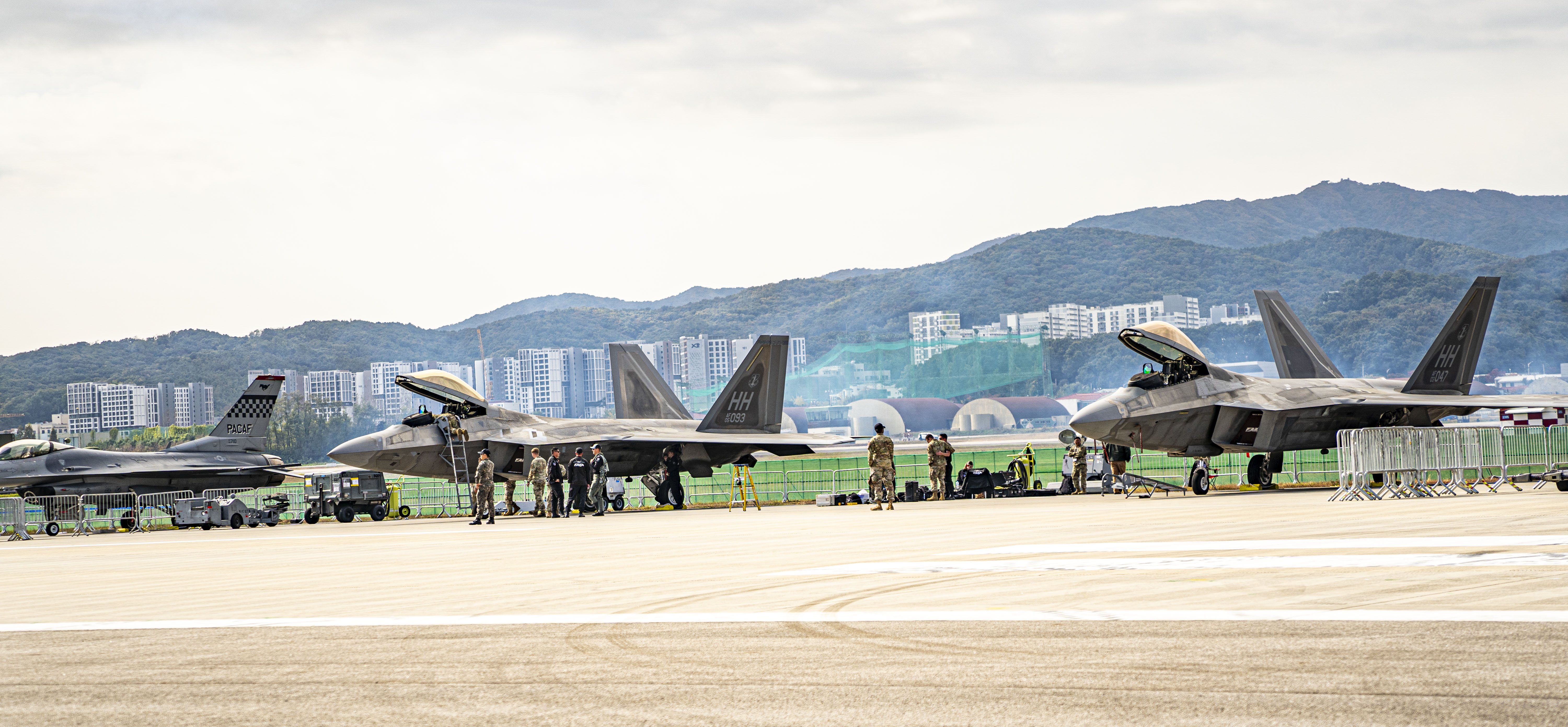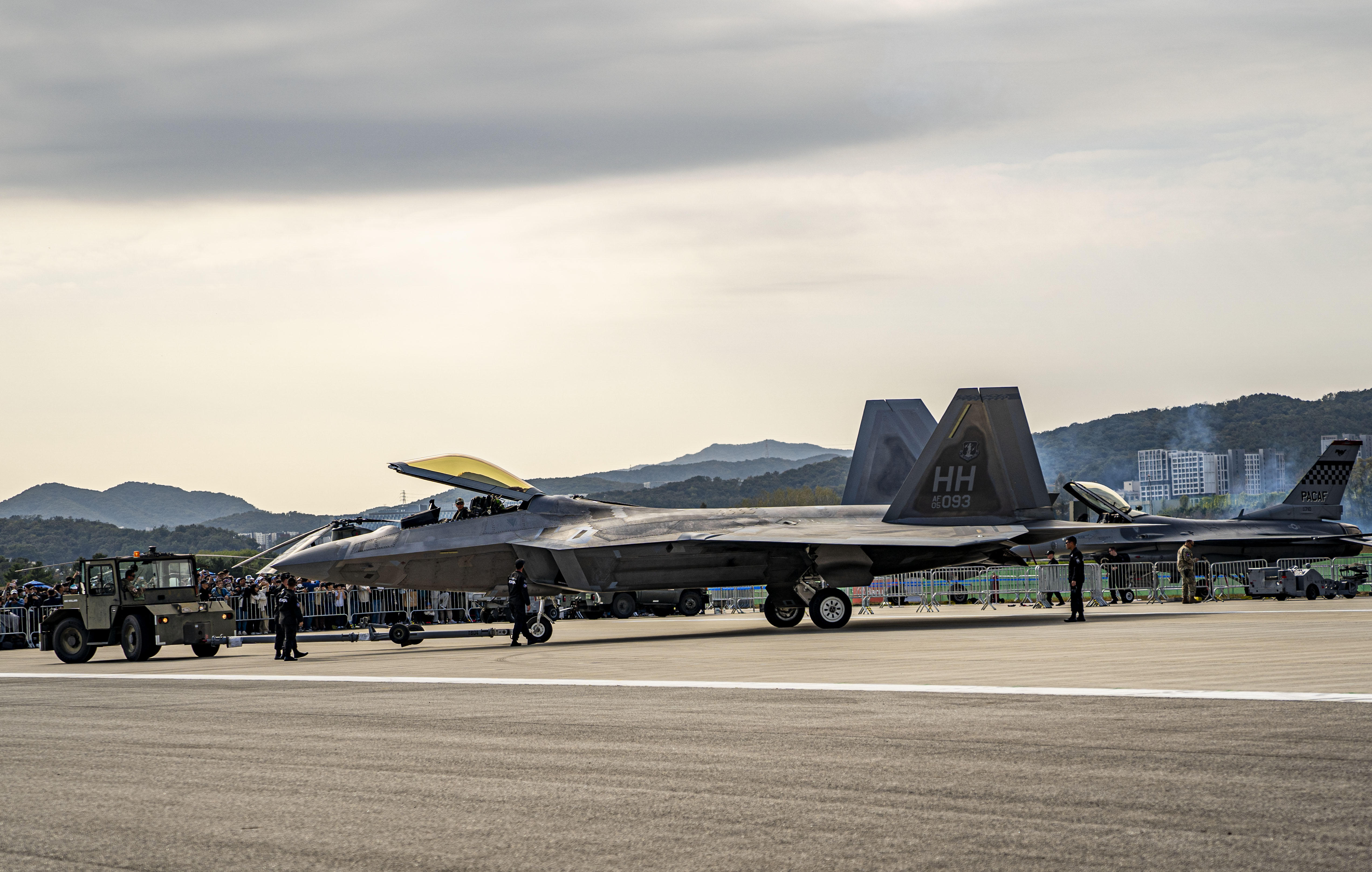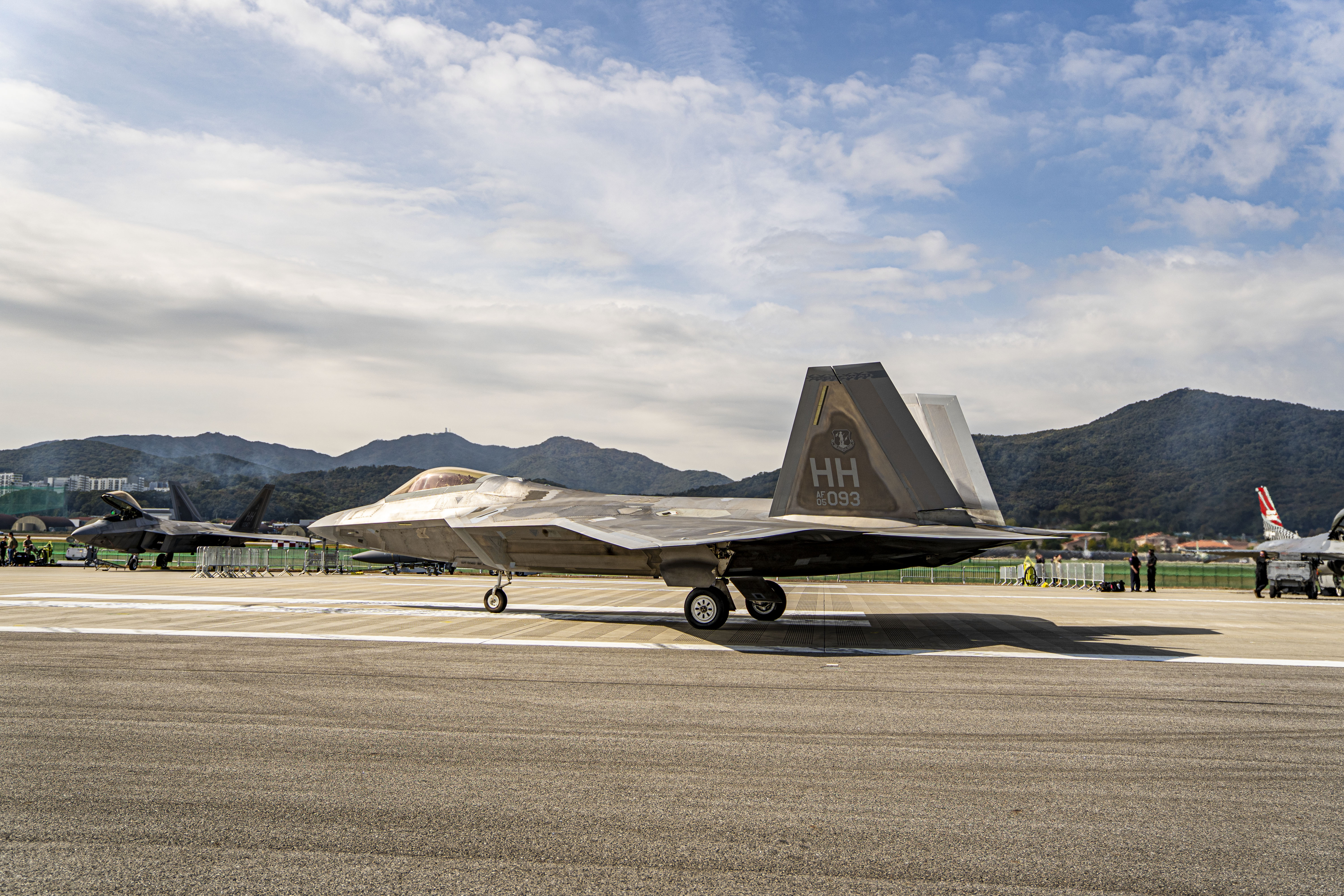 세상에서 가장 전투기로 성능이 우수한 F-22 랩터의 비행 모습도 볼 수가 있는 기회다