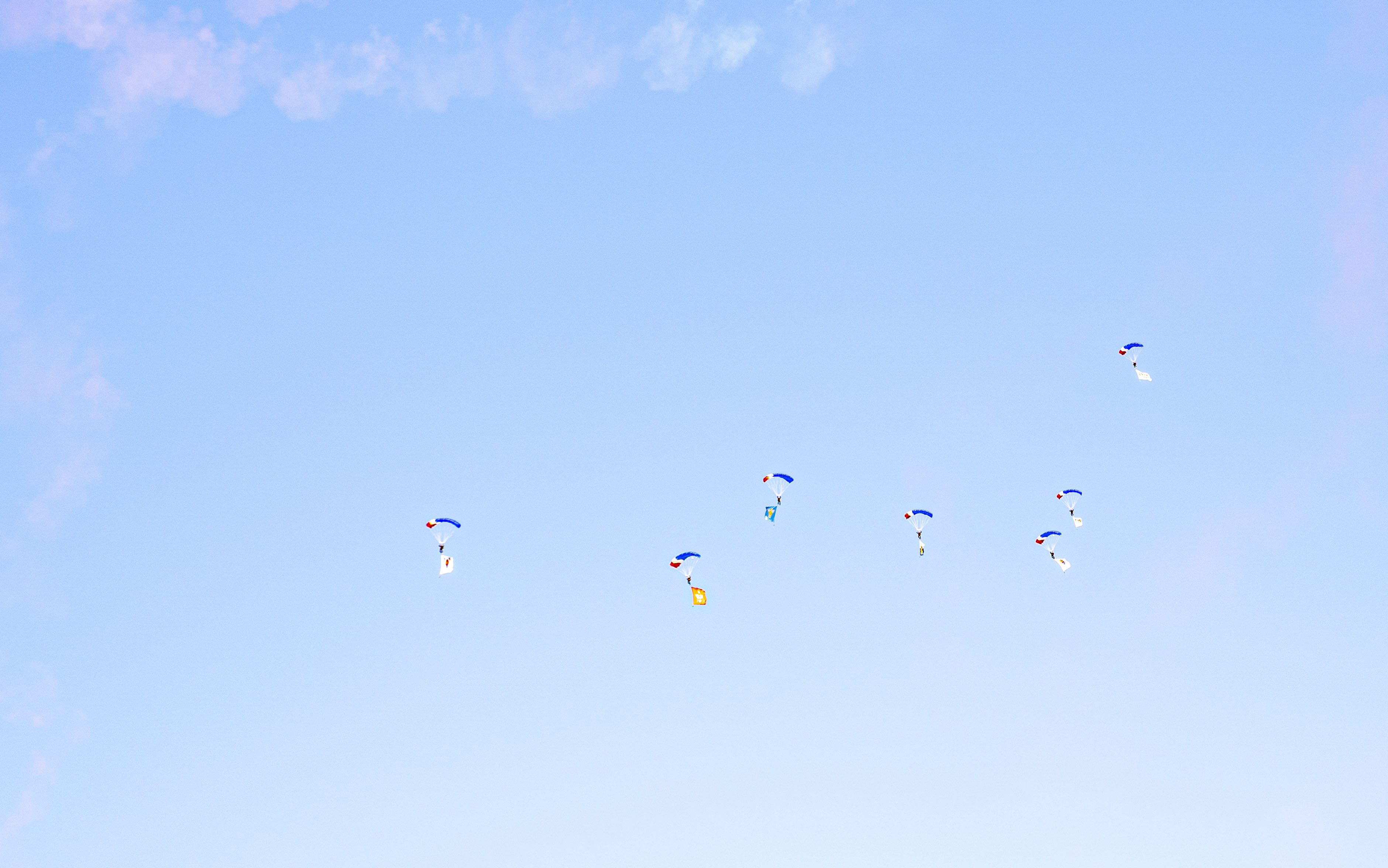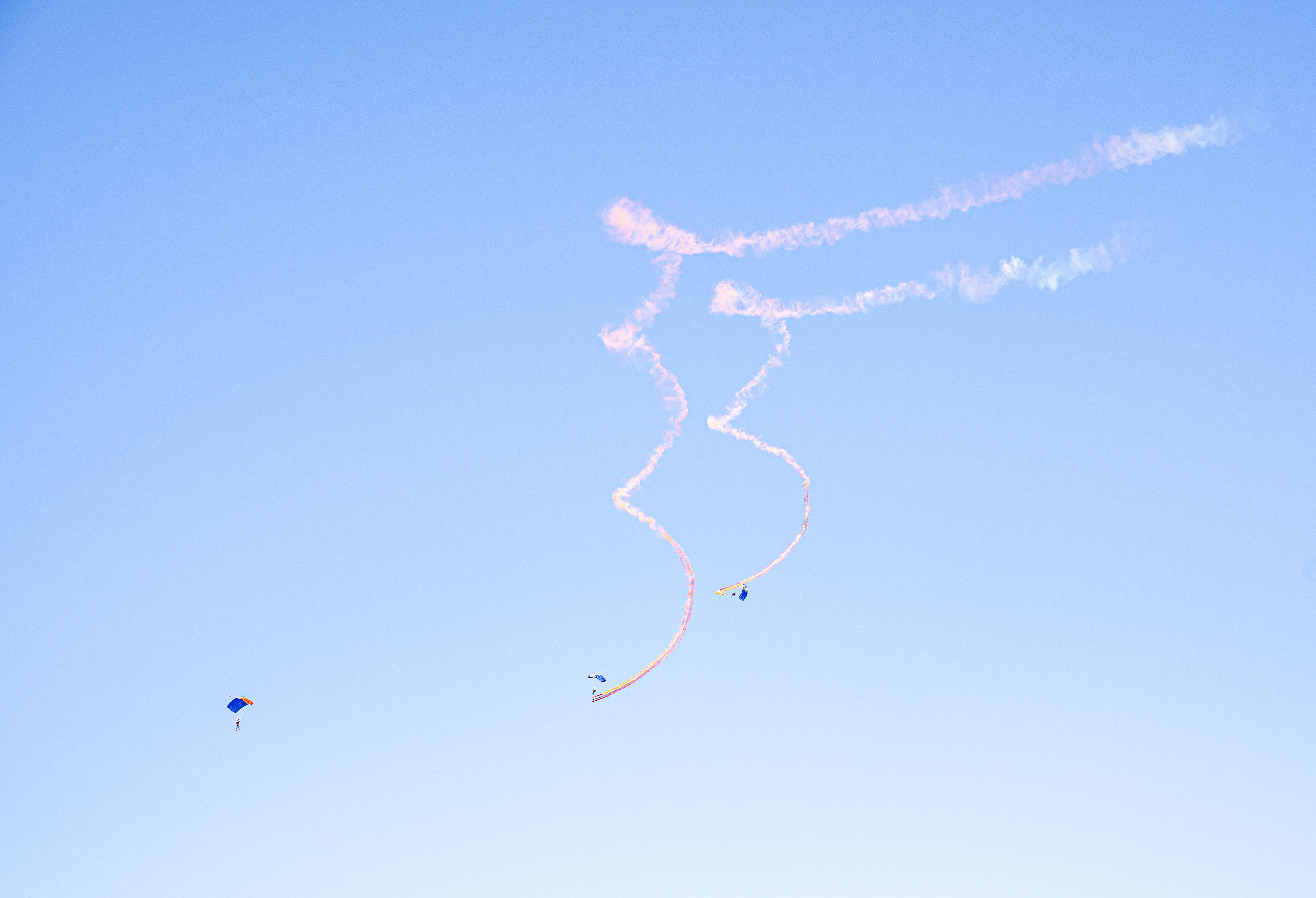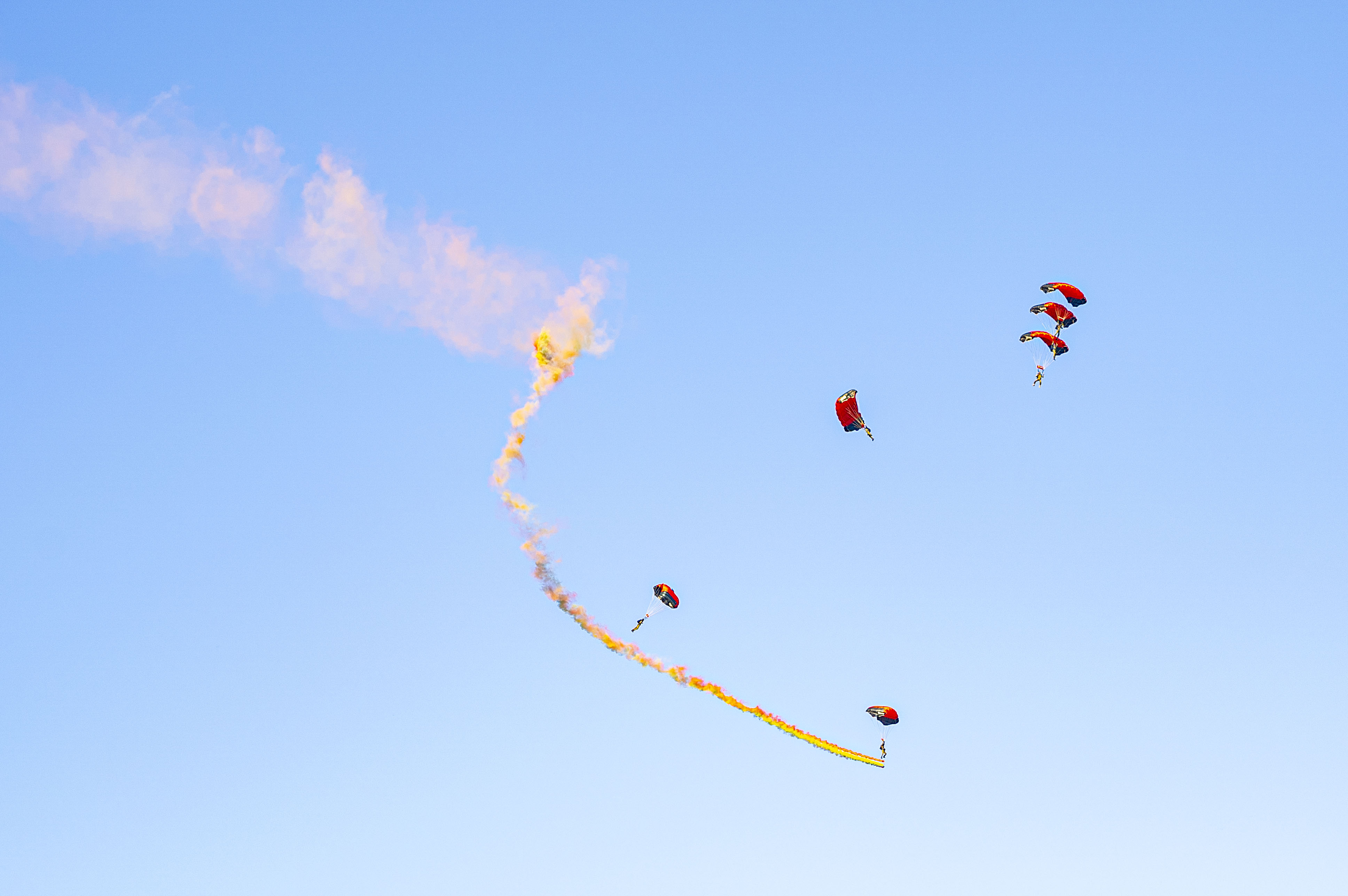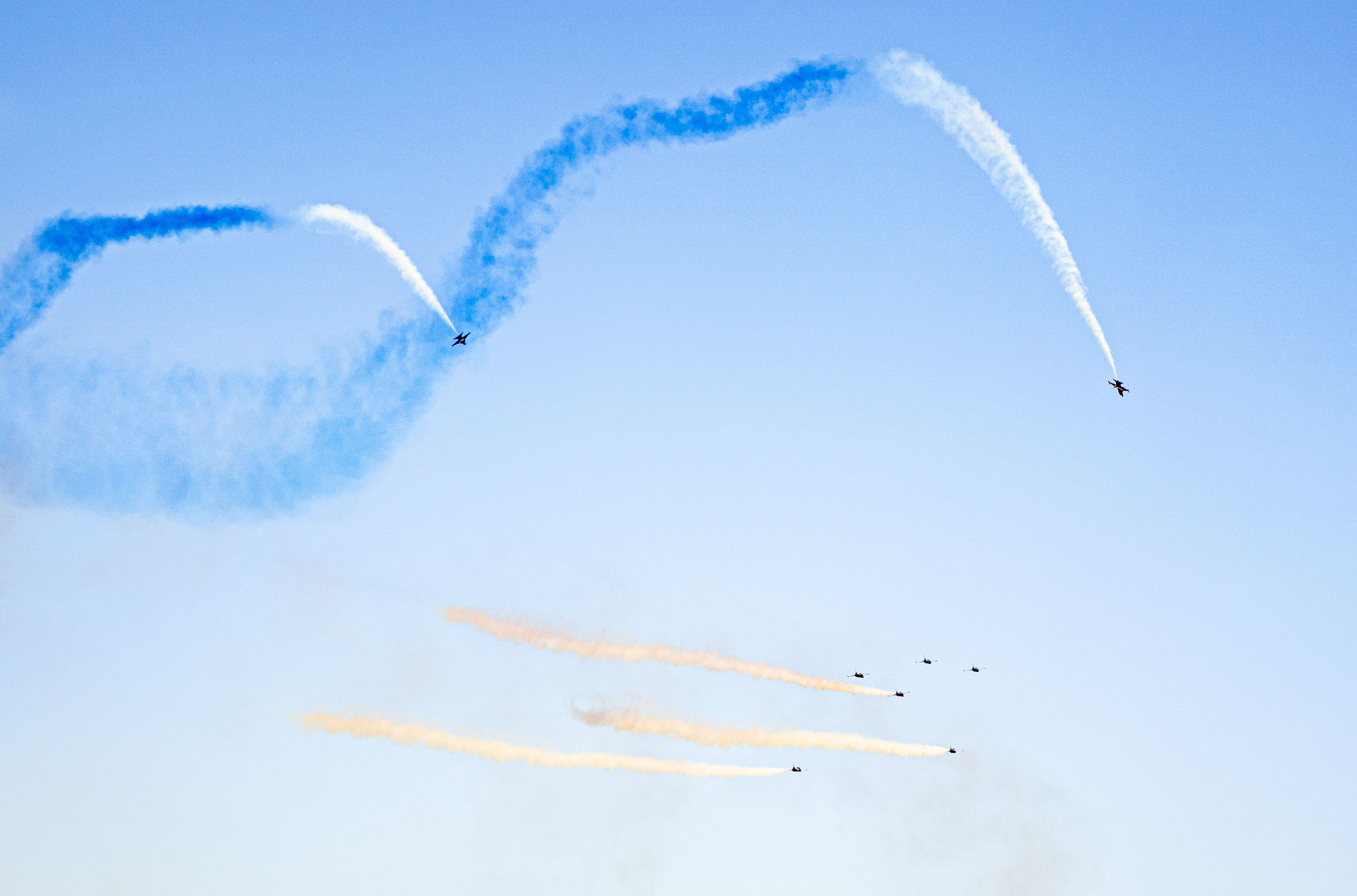 분열 비행, 교차 비행, 낙하훈련, 하트 그리기, 태극문양, 등 많은 기교를 보여 준다