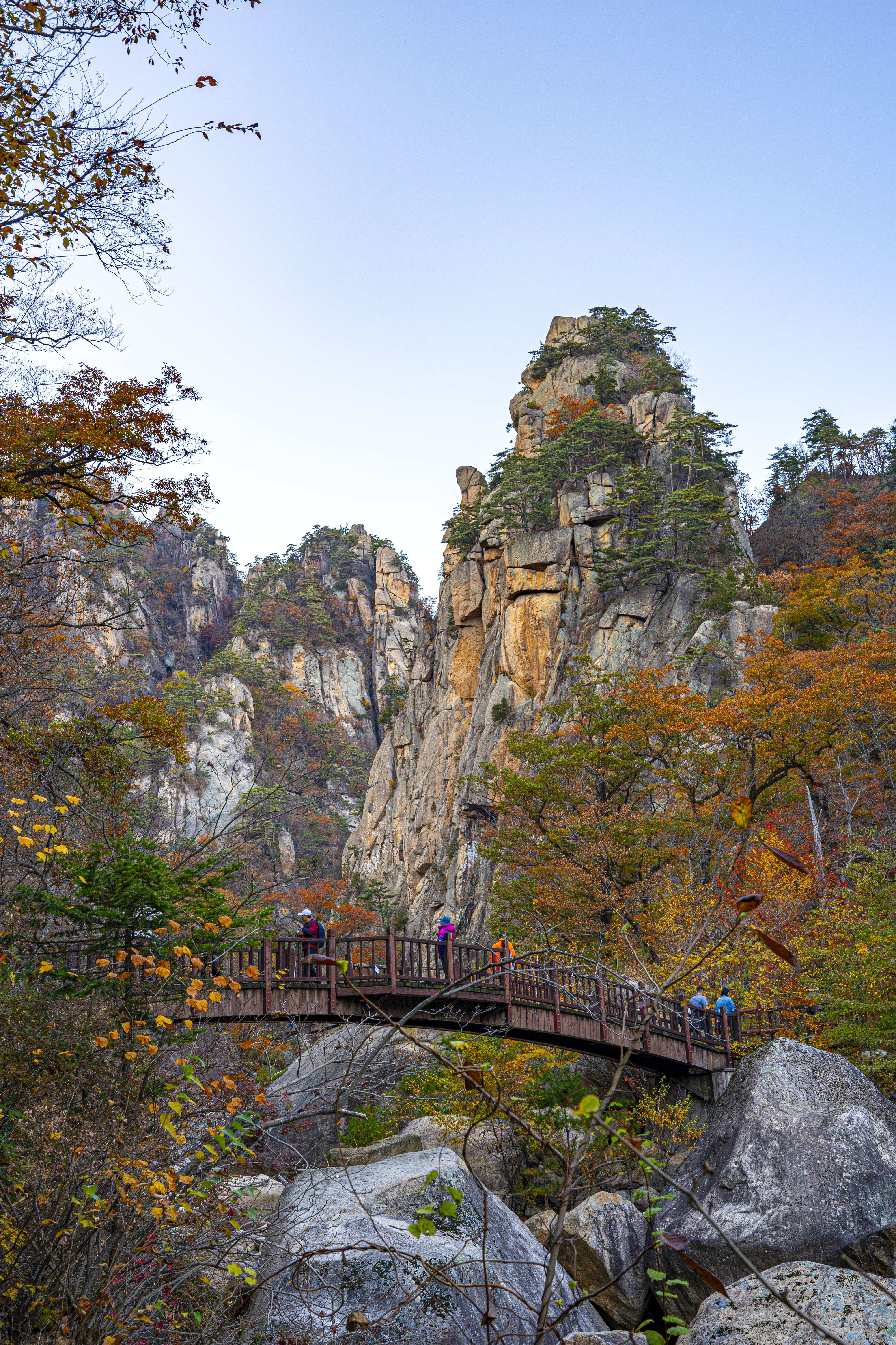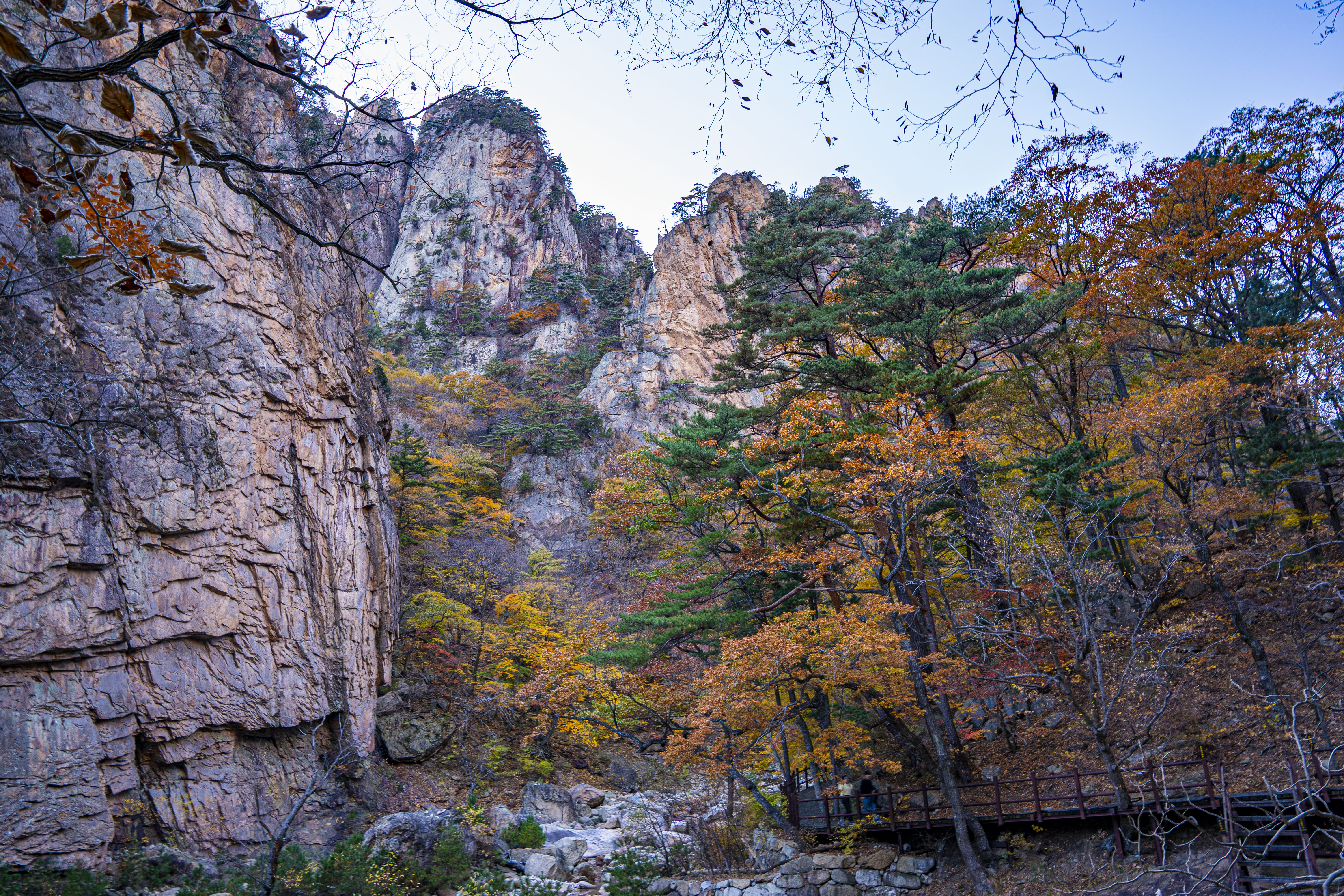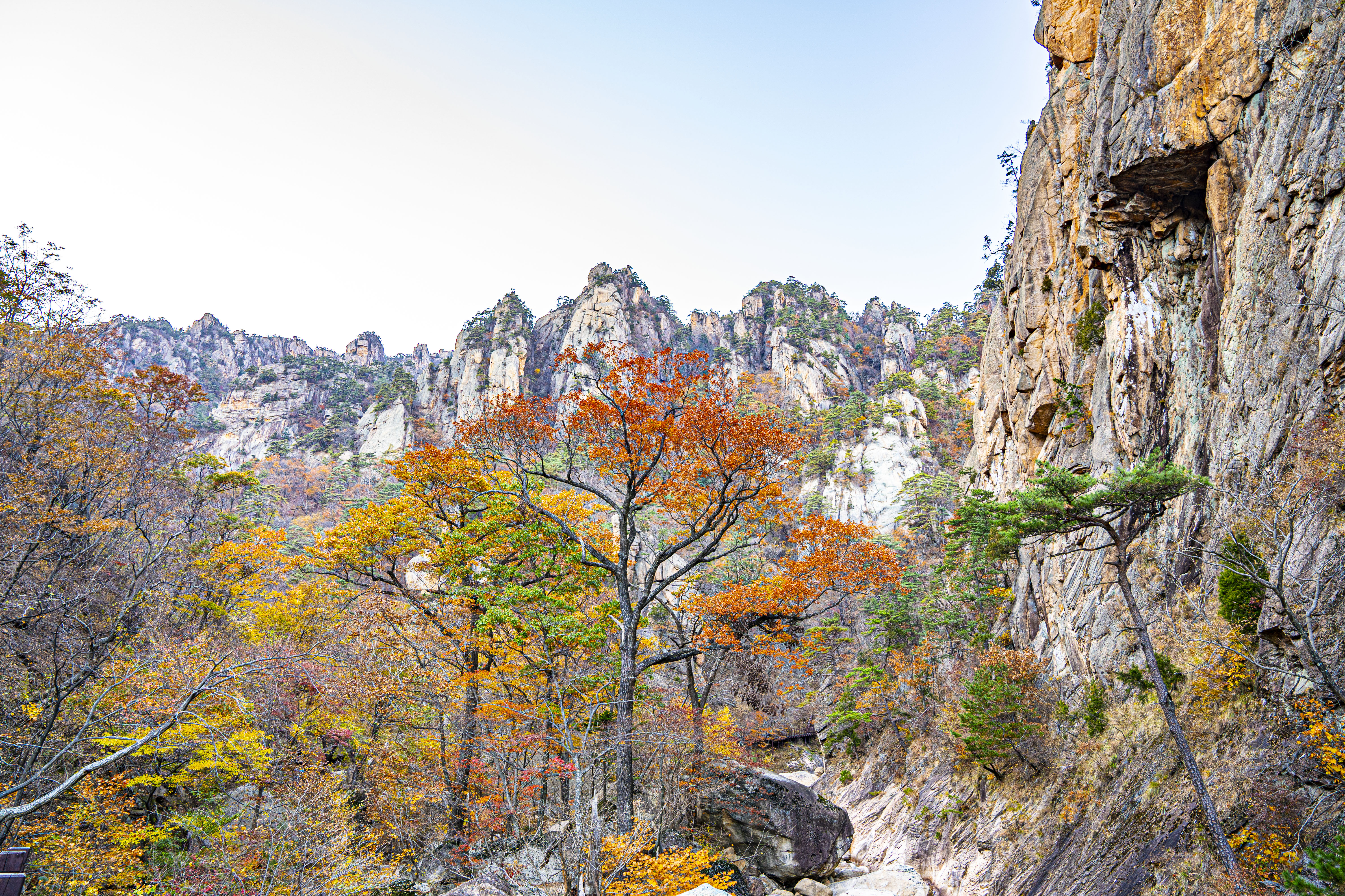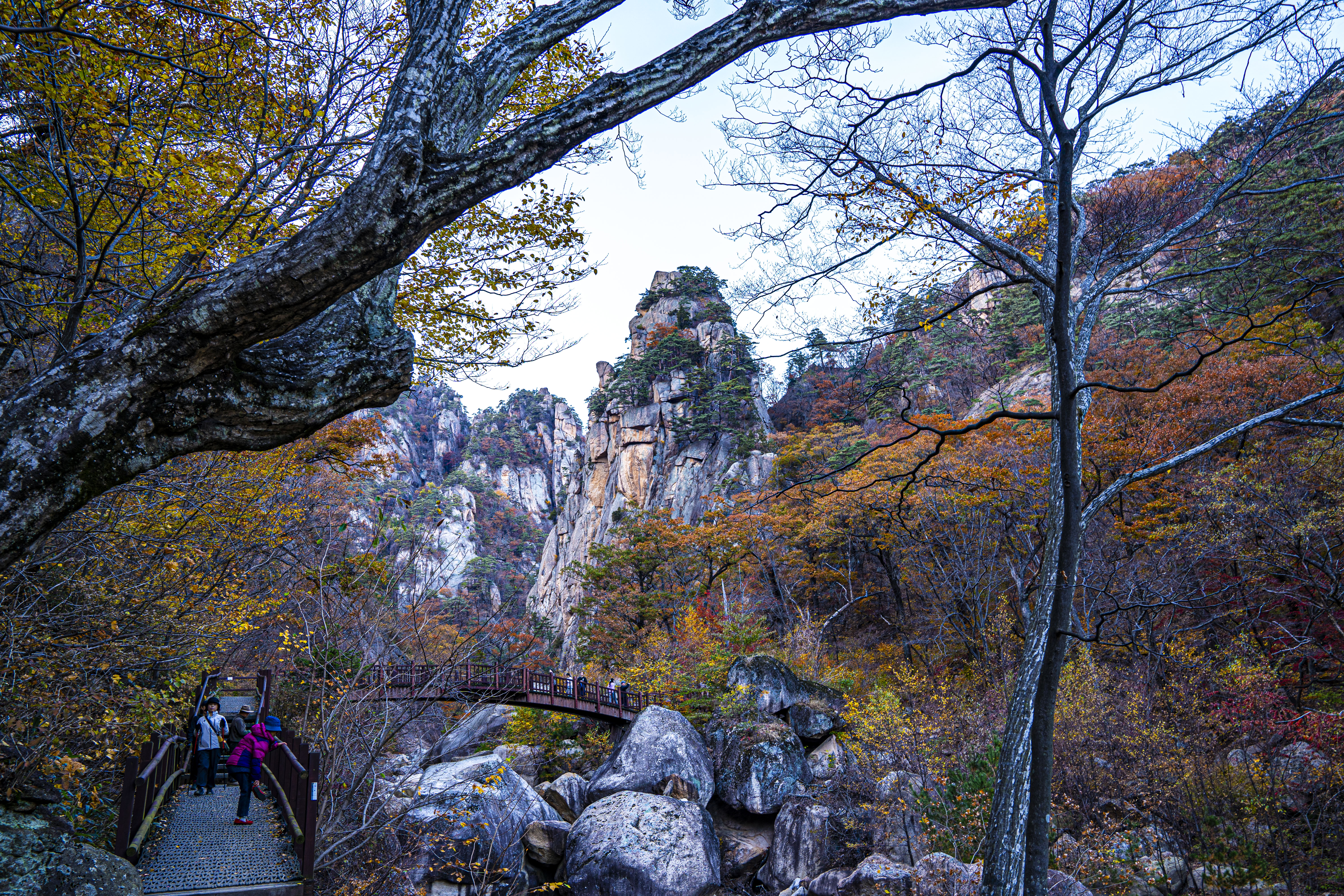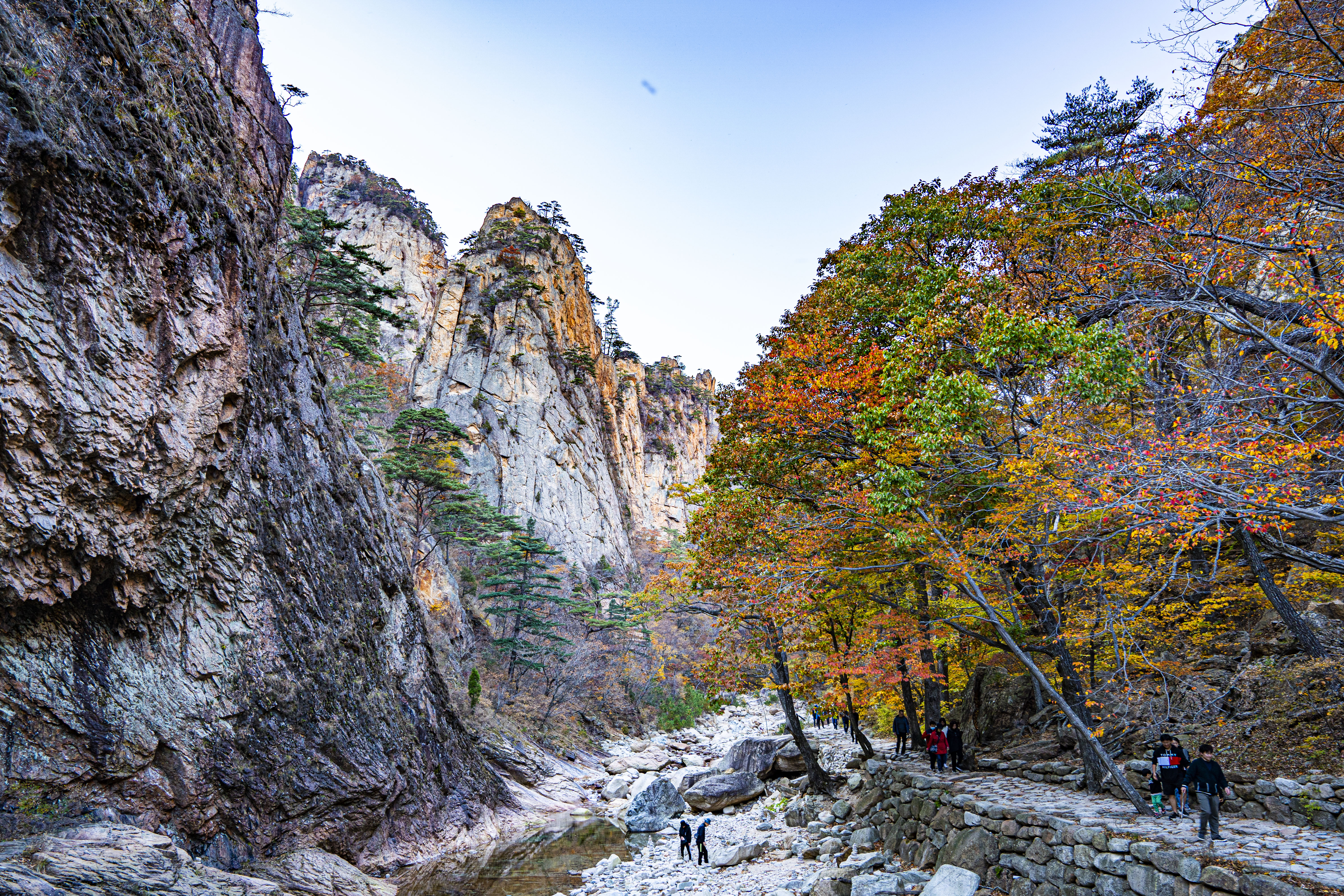 오색 주전골로 내려가 설악 단풍을 카메라에 담는다