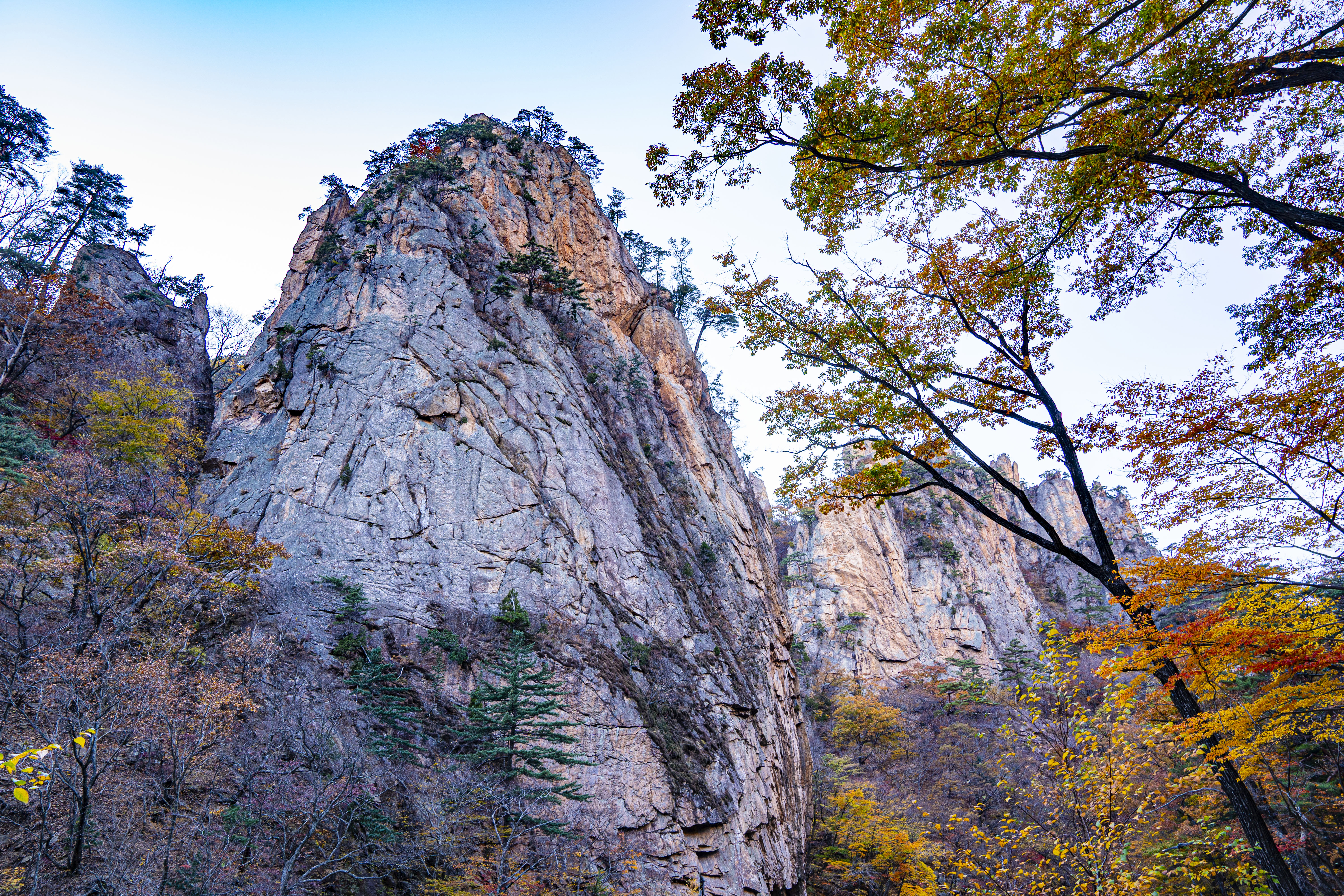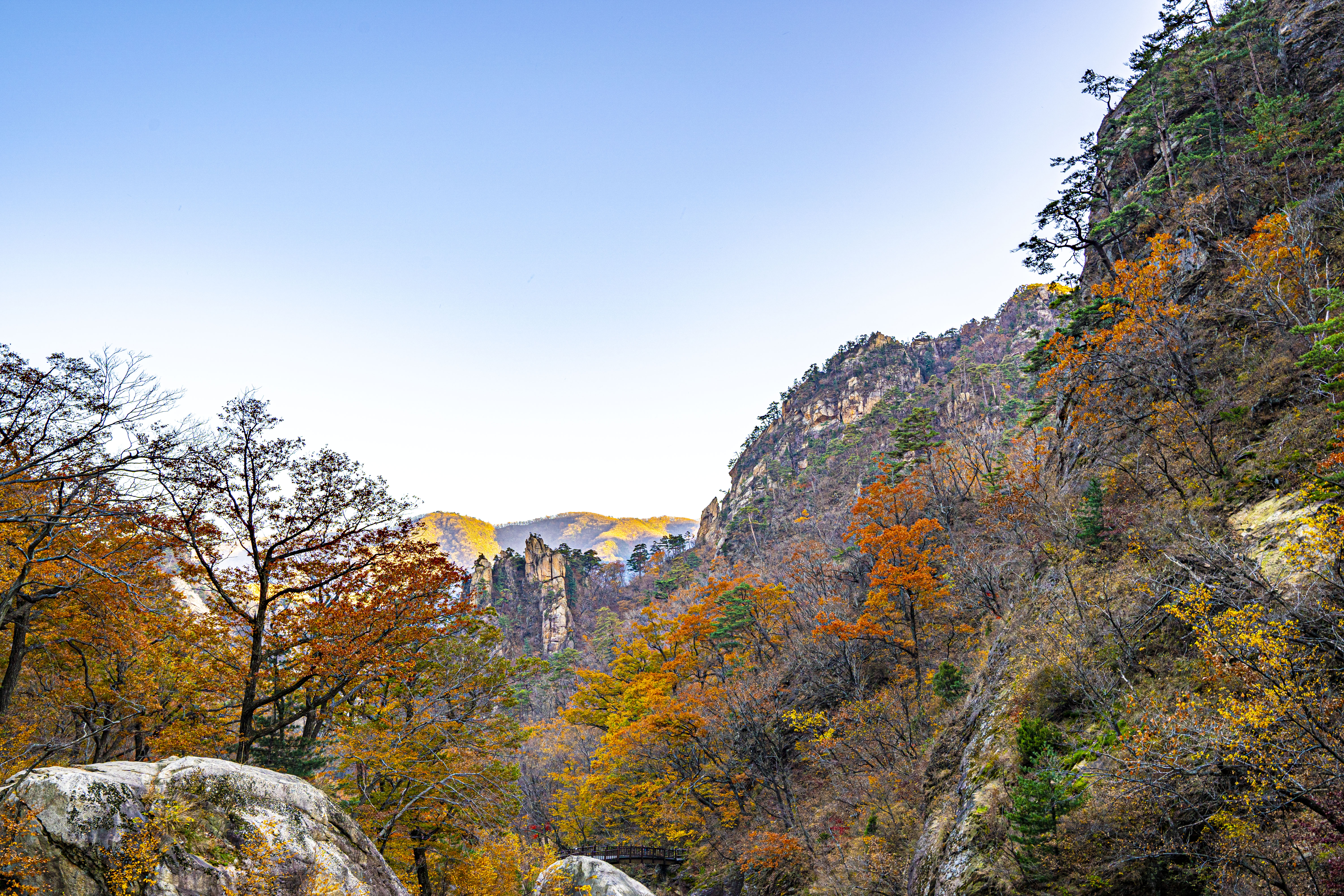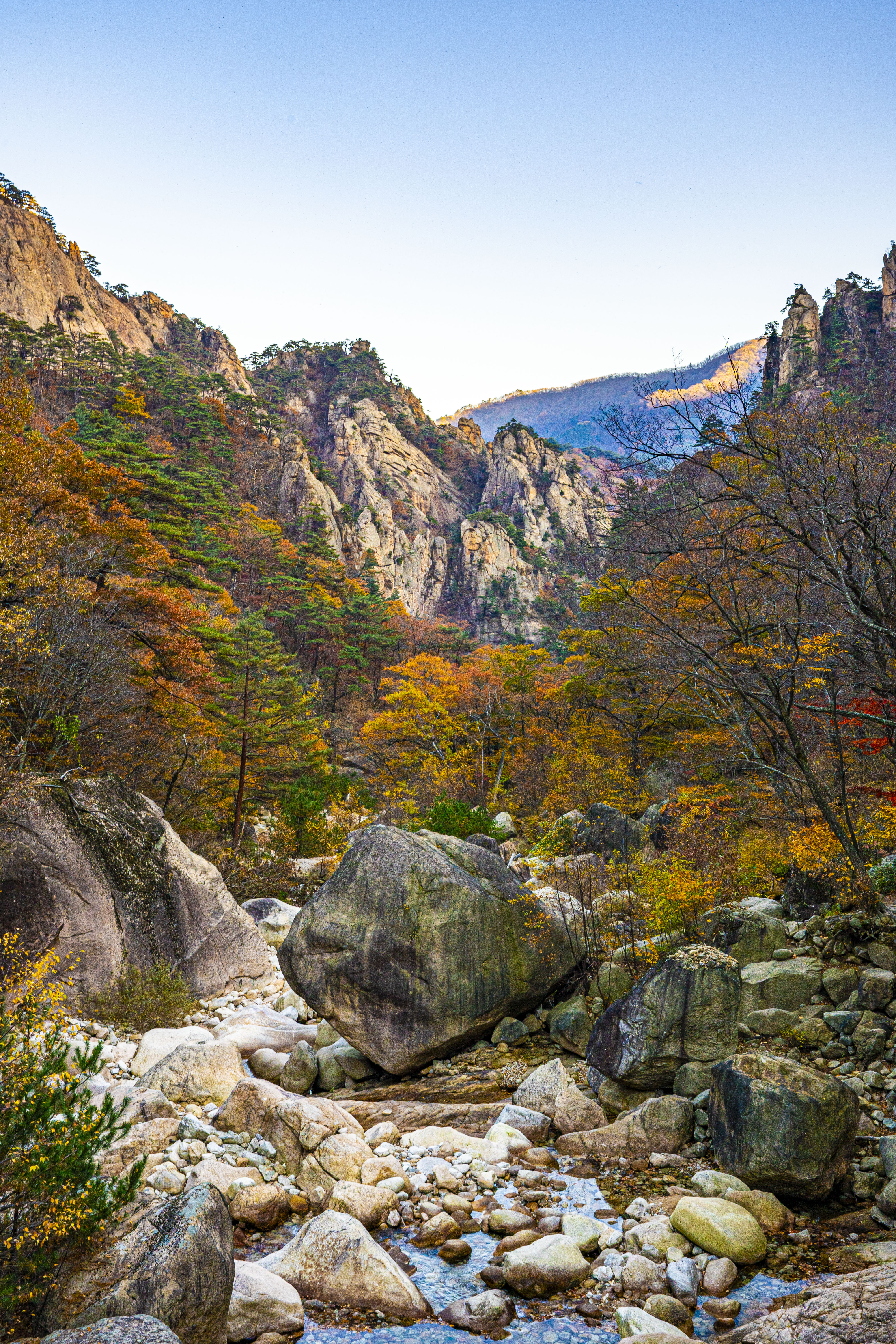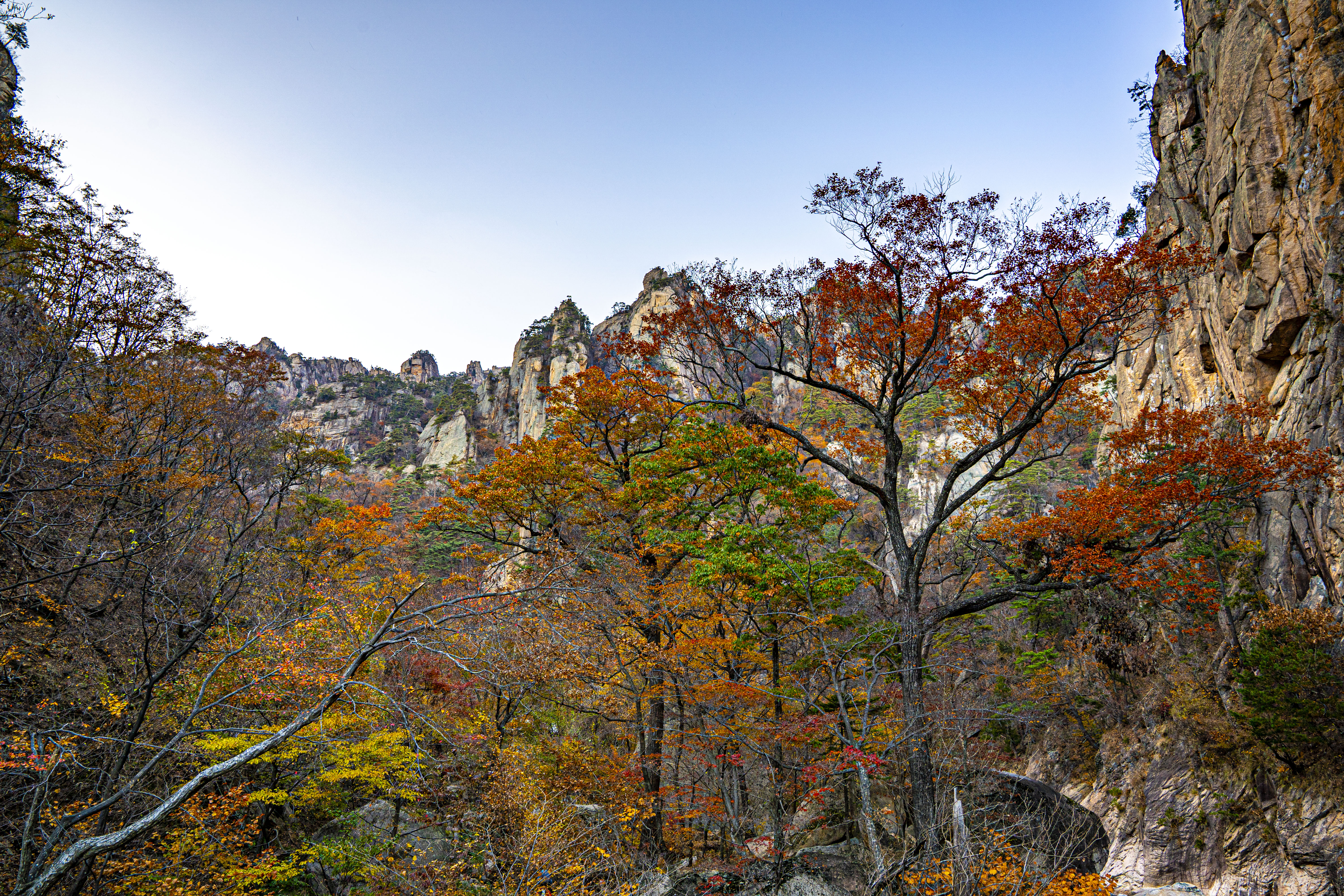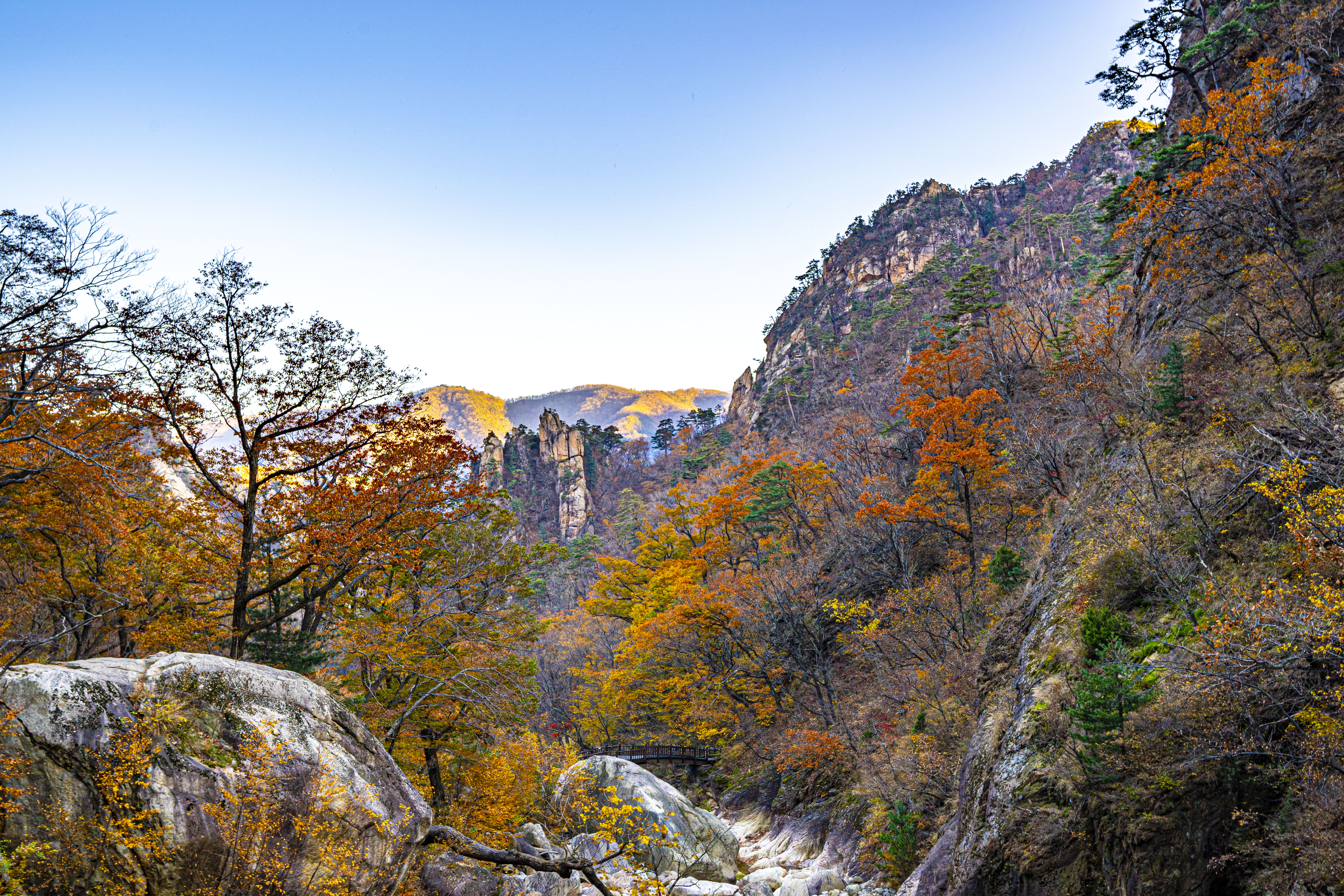 오색 주전골로 내려가 설악 단풍을 카메라에 담는다