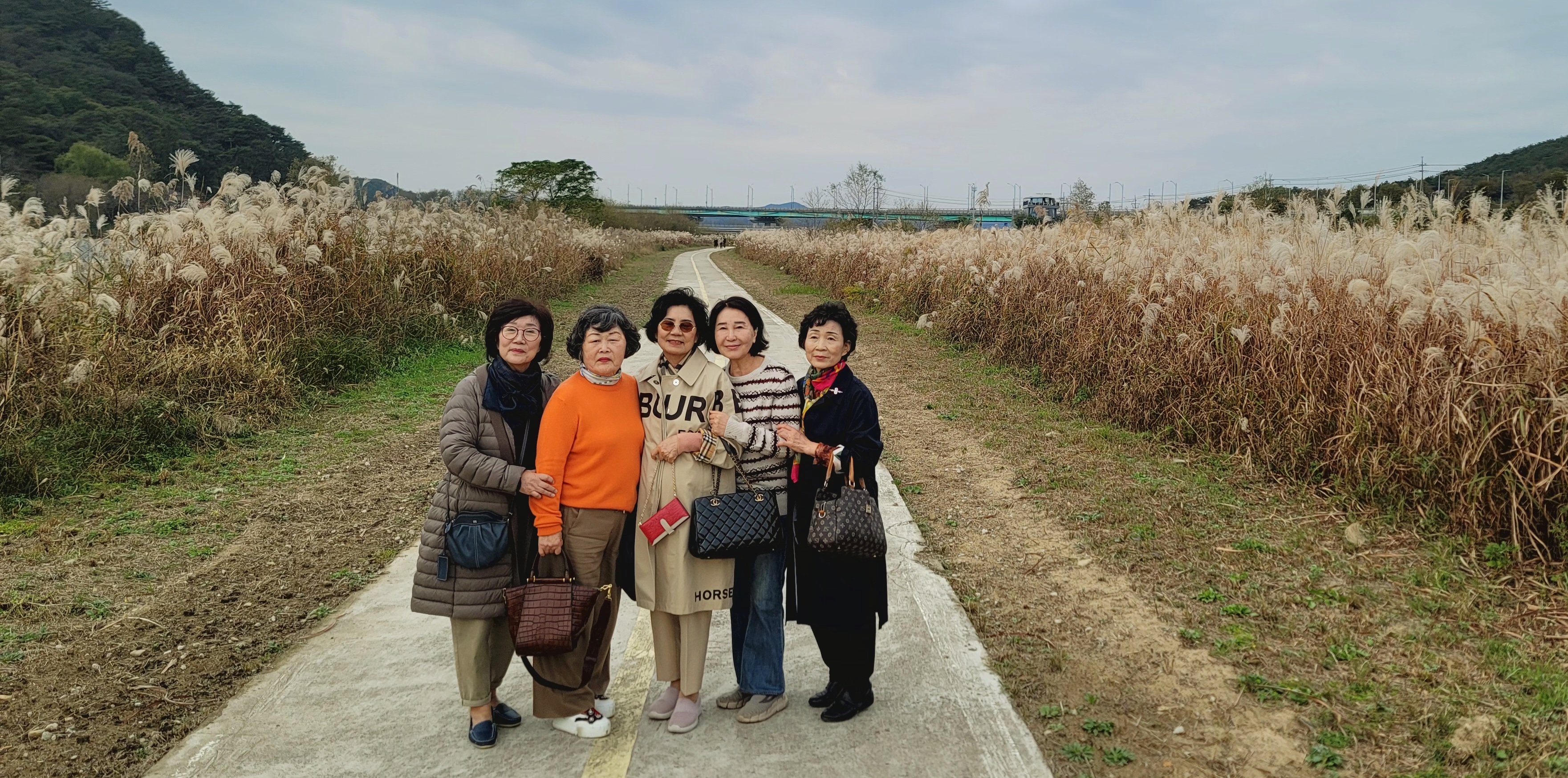 물들어가는 단풍과 갈대밭에서 7순을 넘긴 친구들 집사람과 사진찍기 놀이로 한 때를 즐긴다