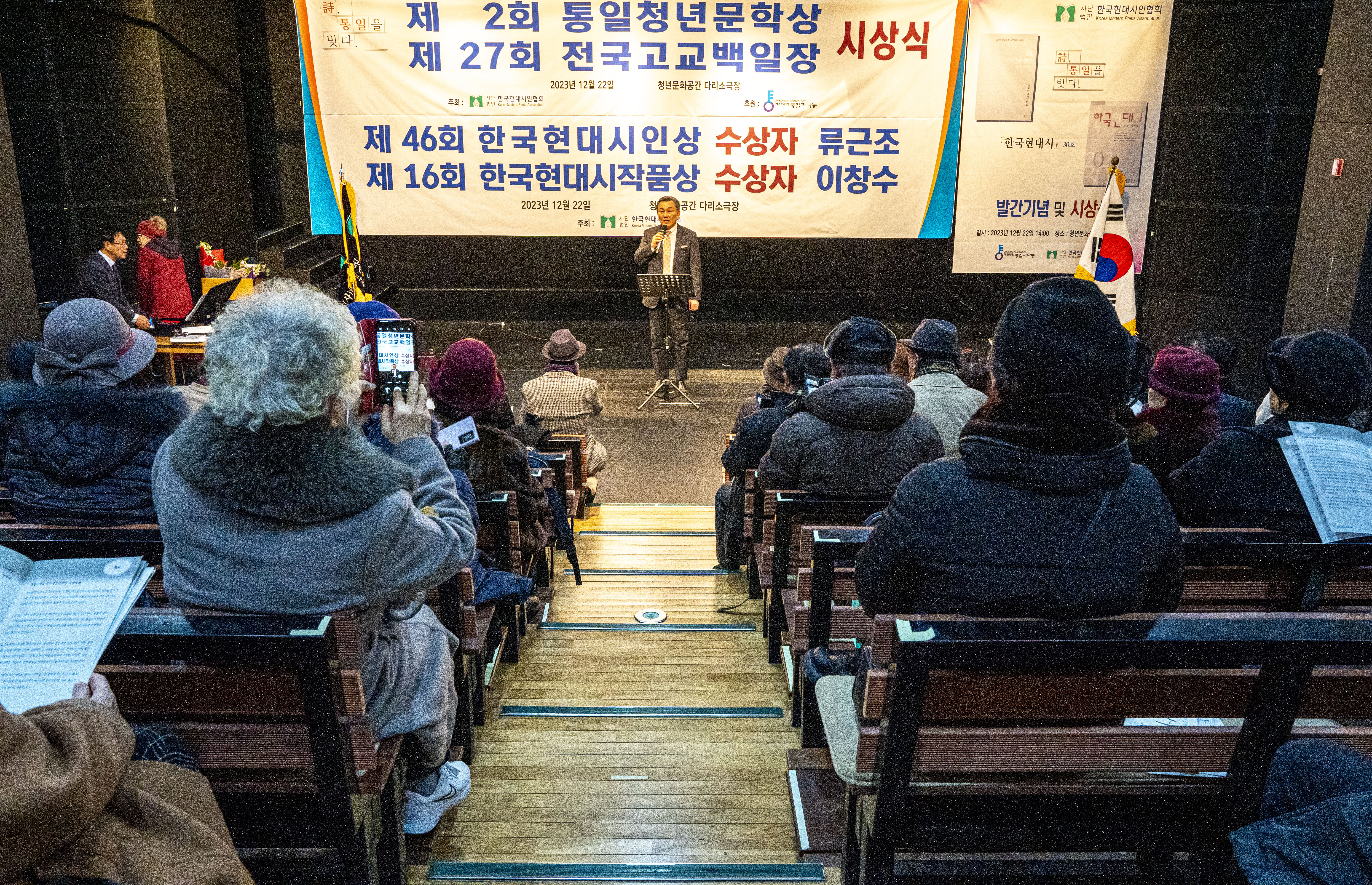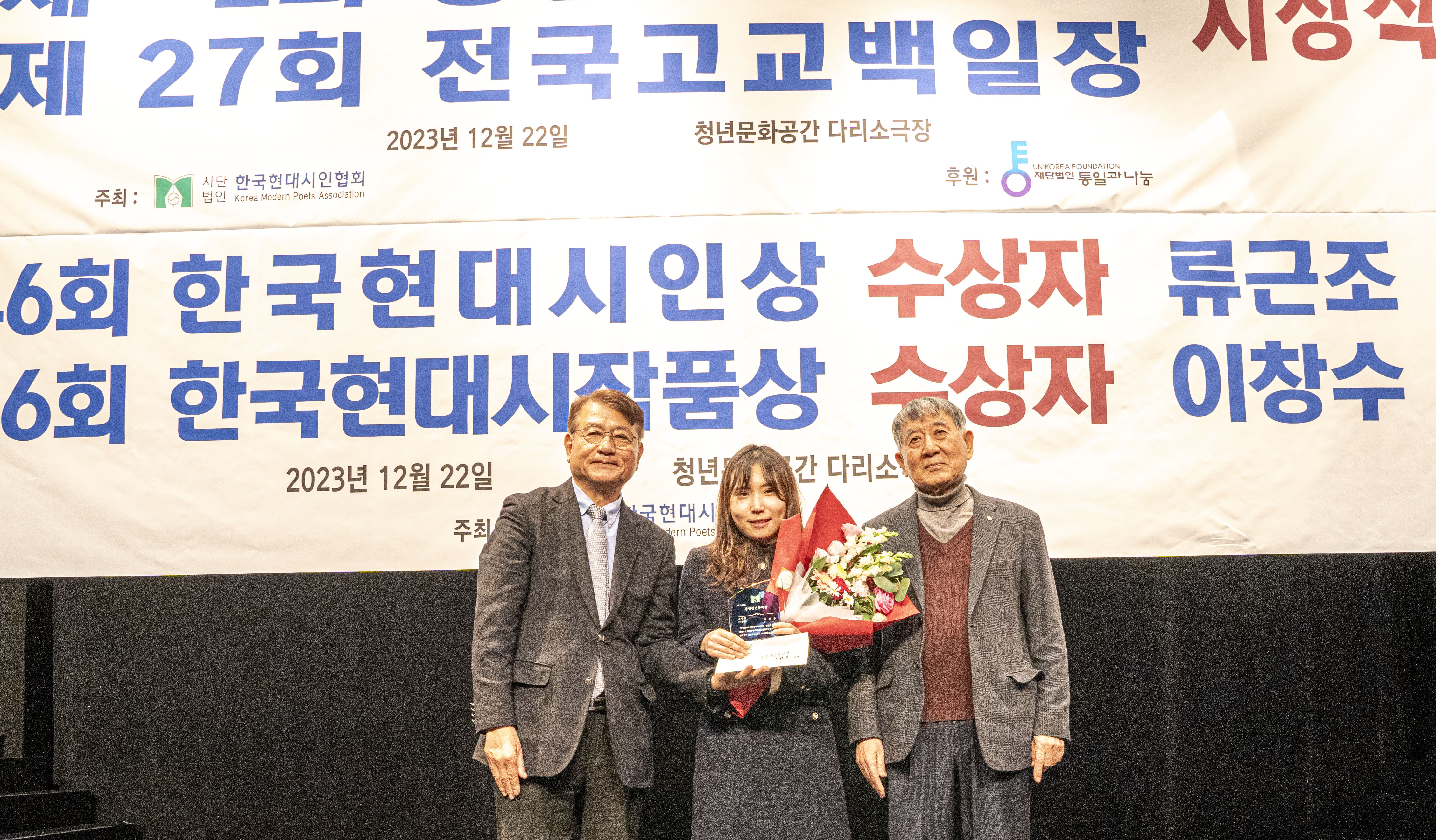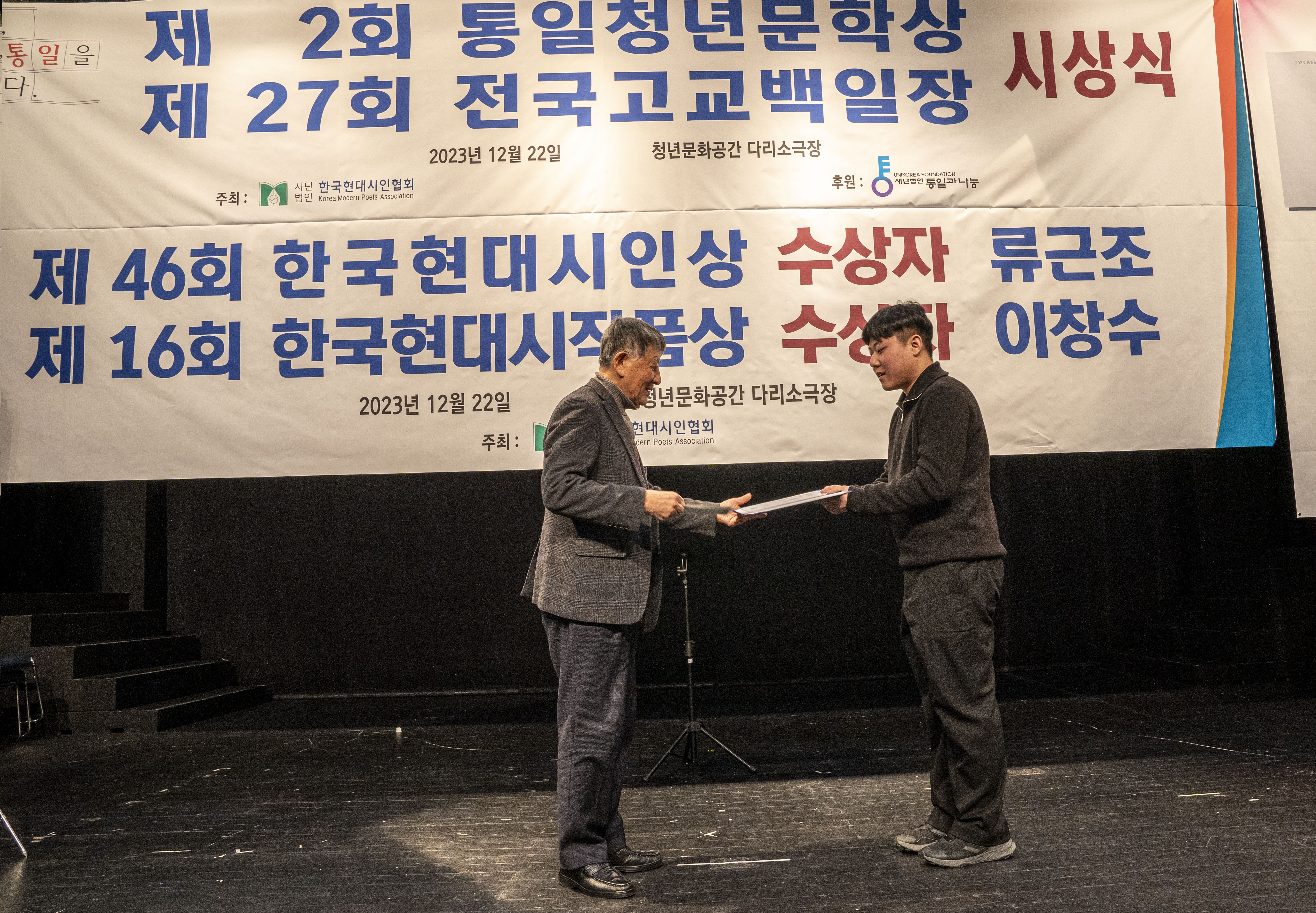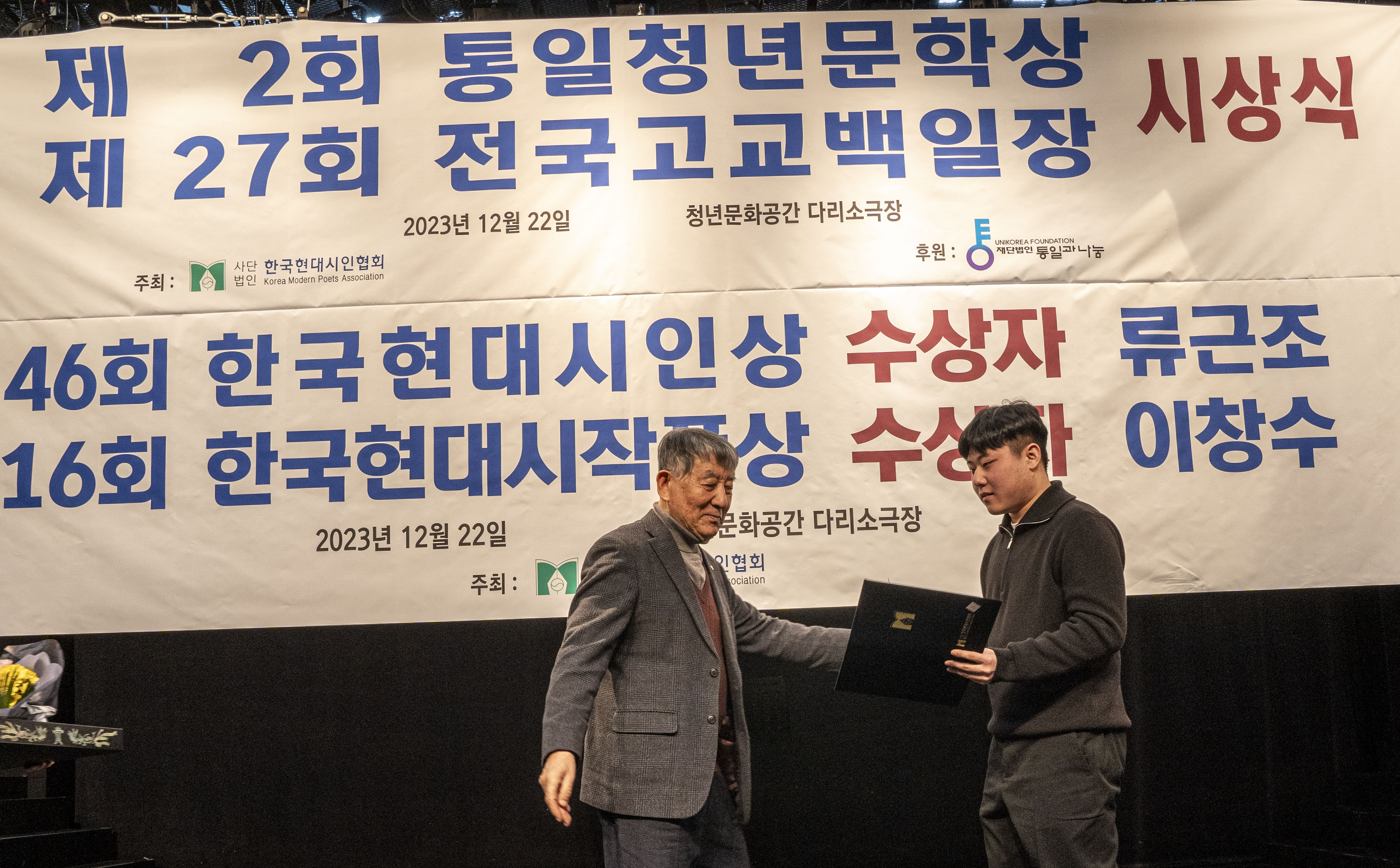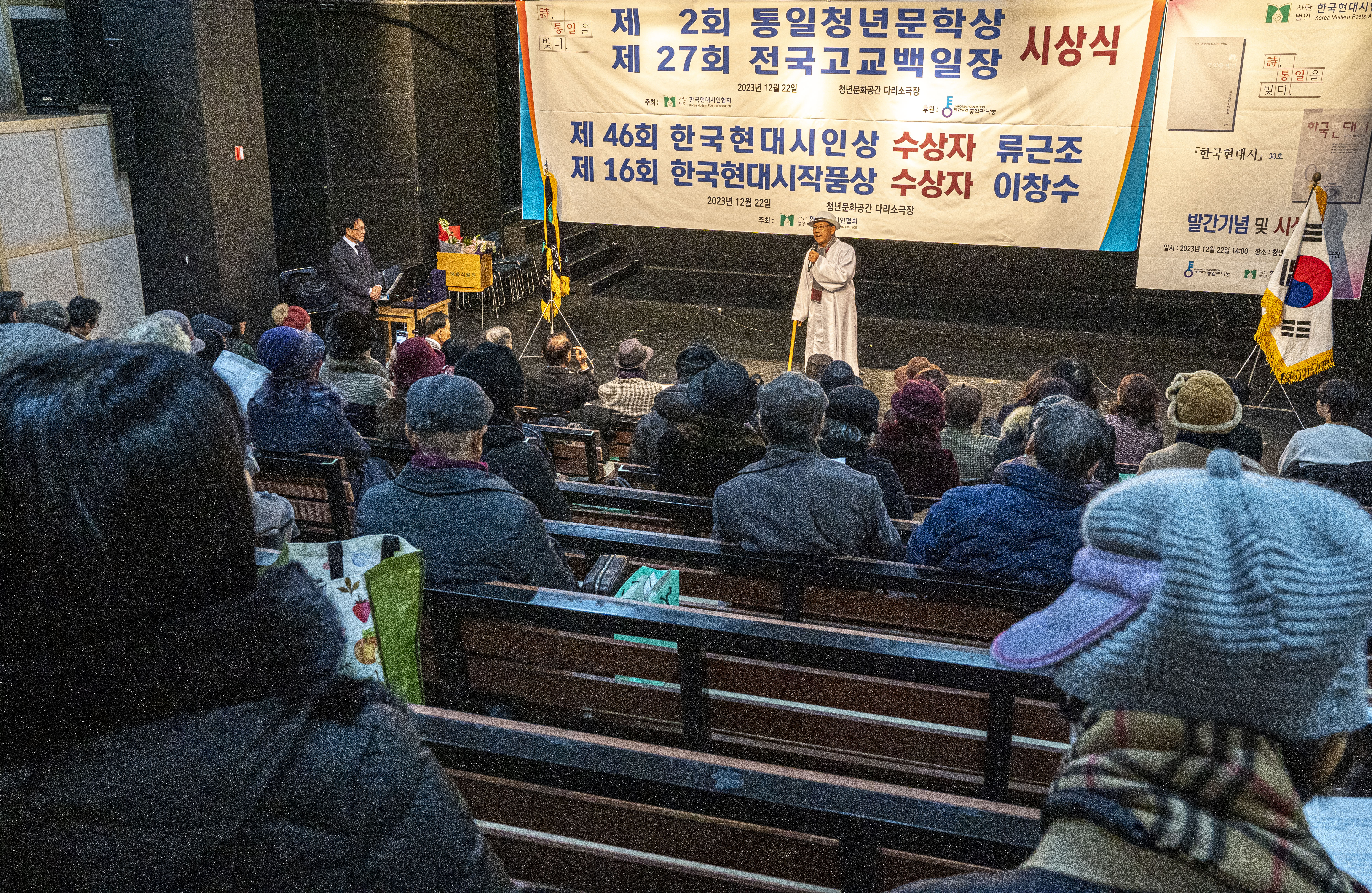 2023. 12. 22 한국현대시인협회에서 제2회 통일 청년문학상 및 제27회 전국 고교백일장 시상식을 다리소극장(홍대입구)에서 가졌다
