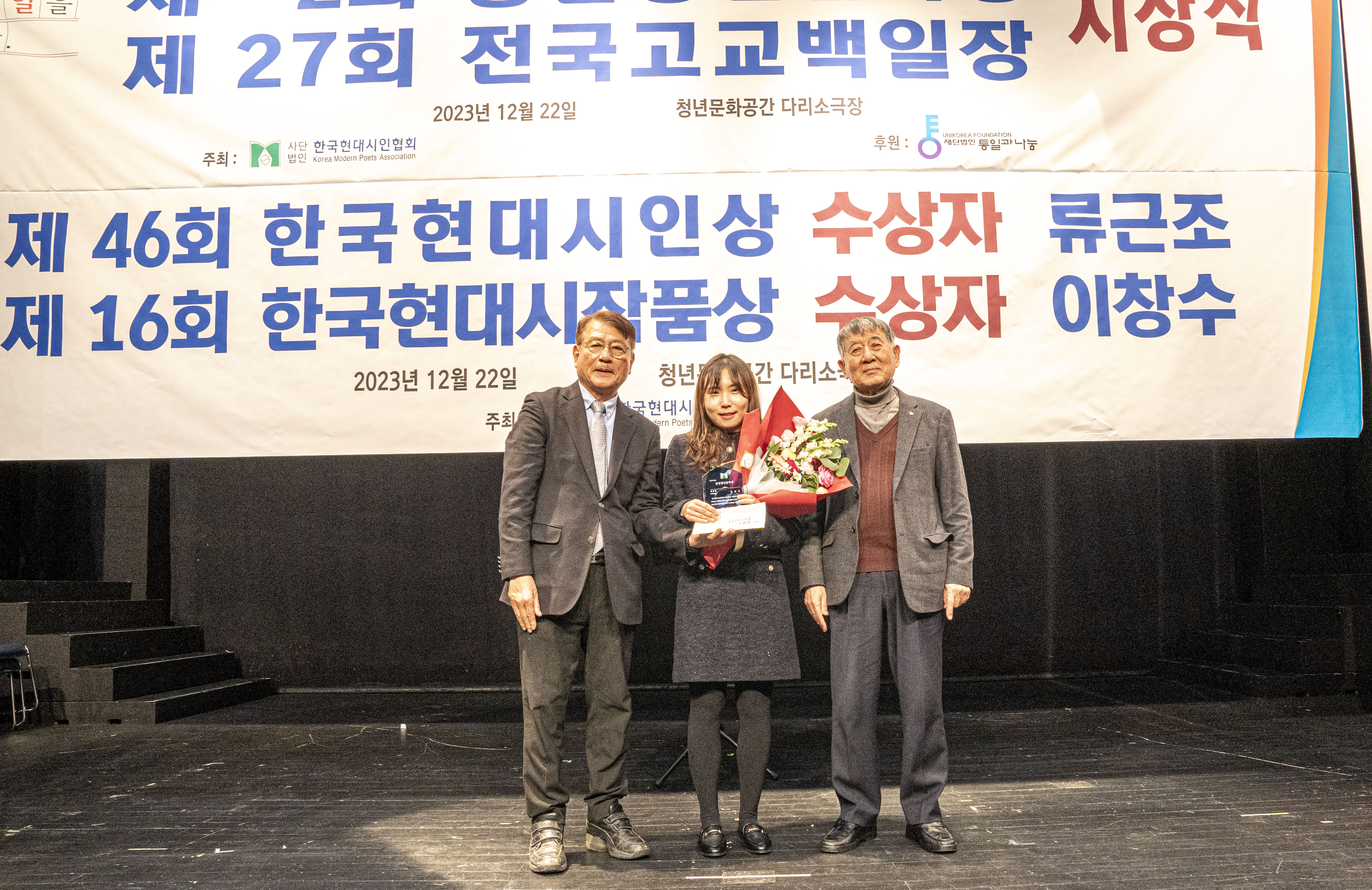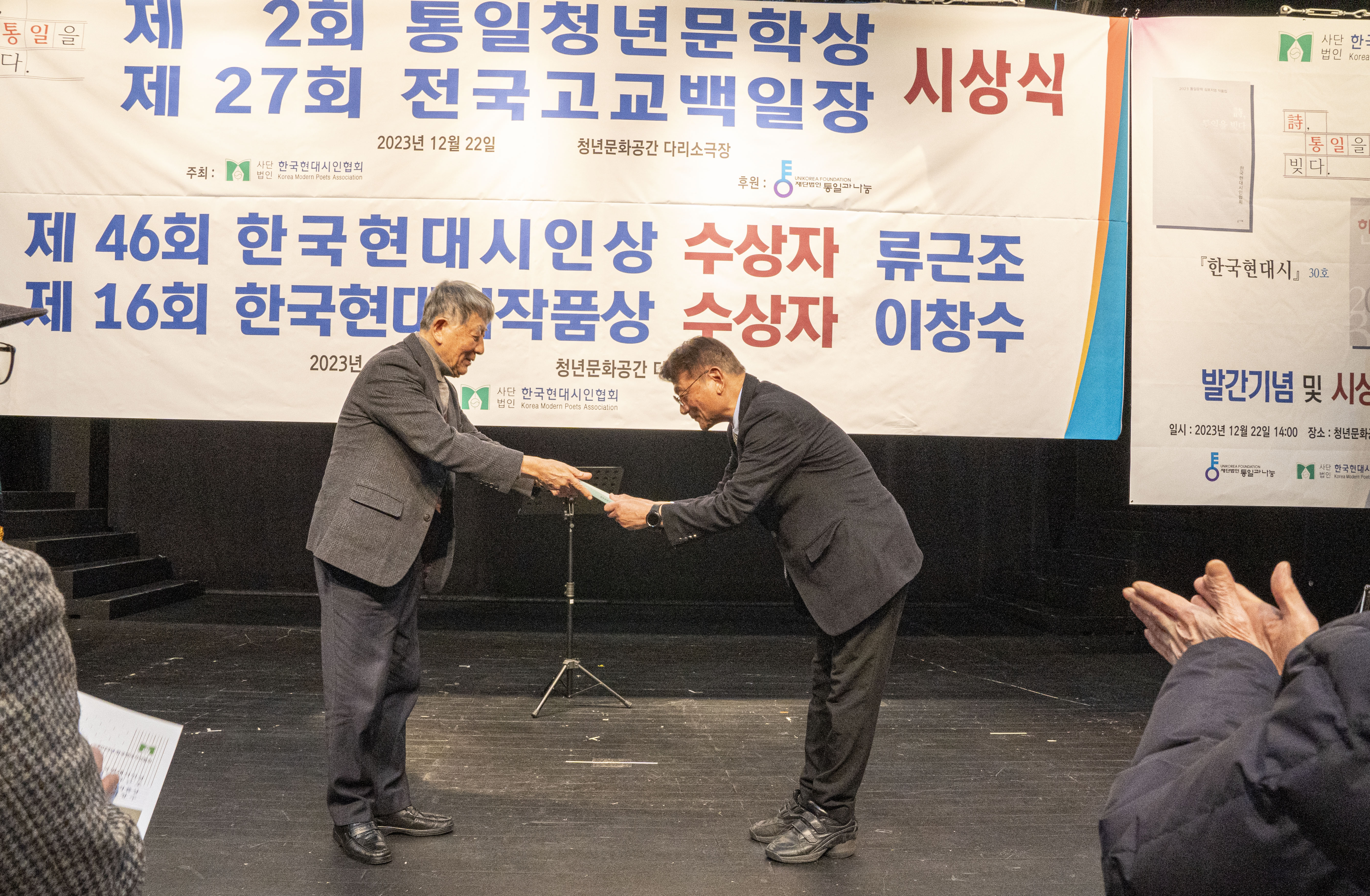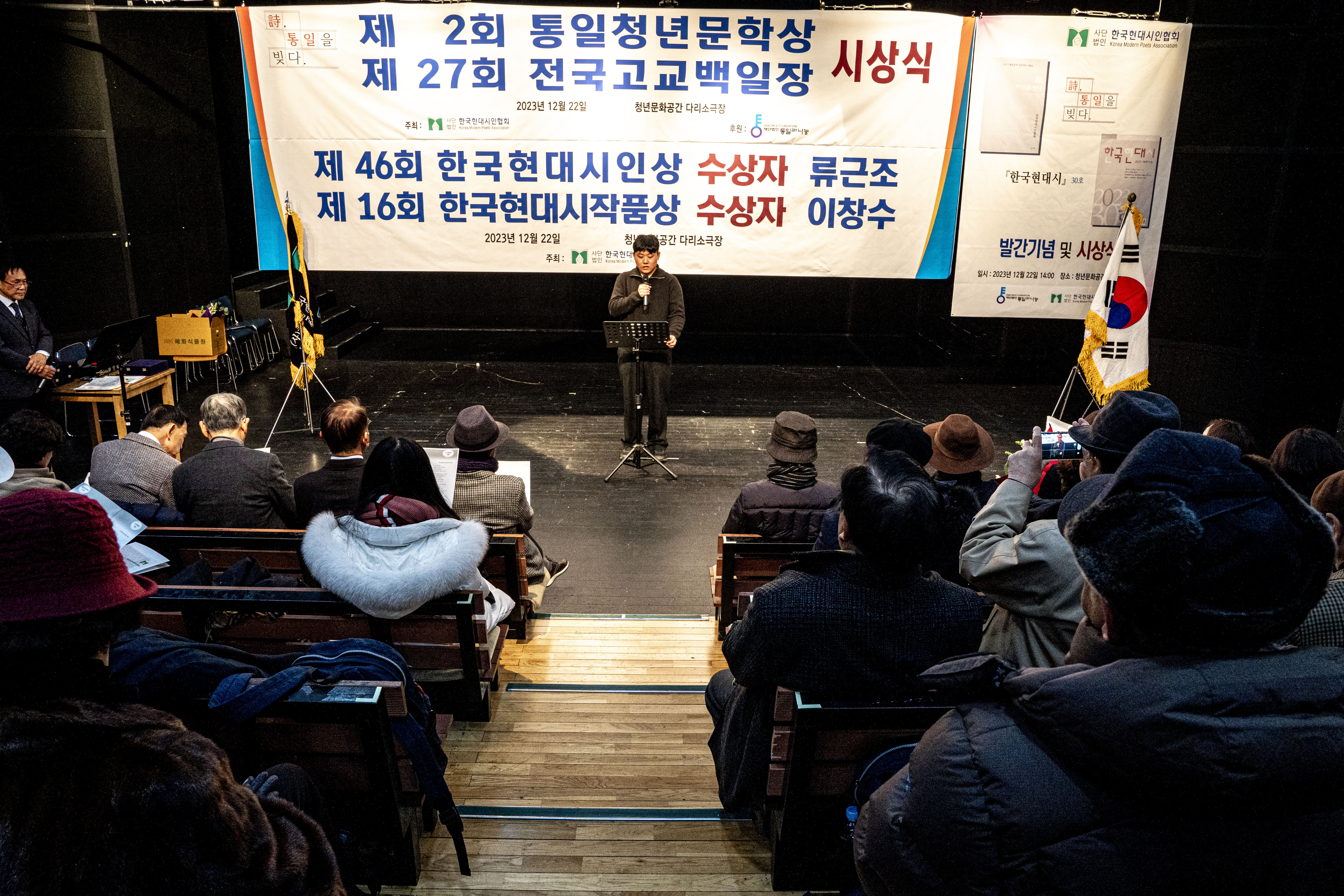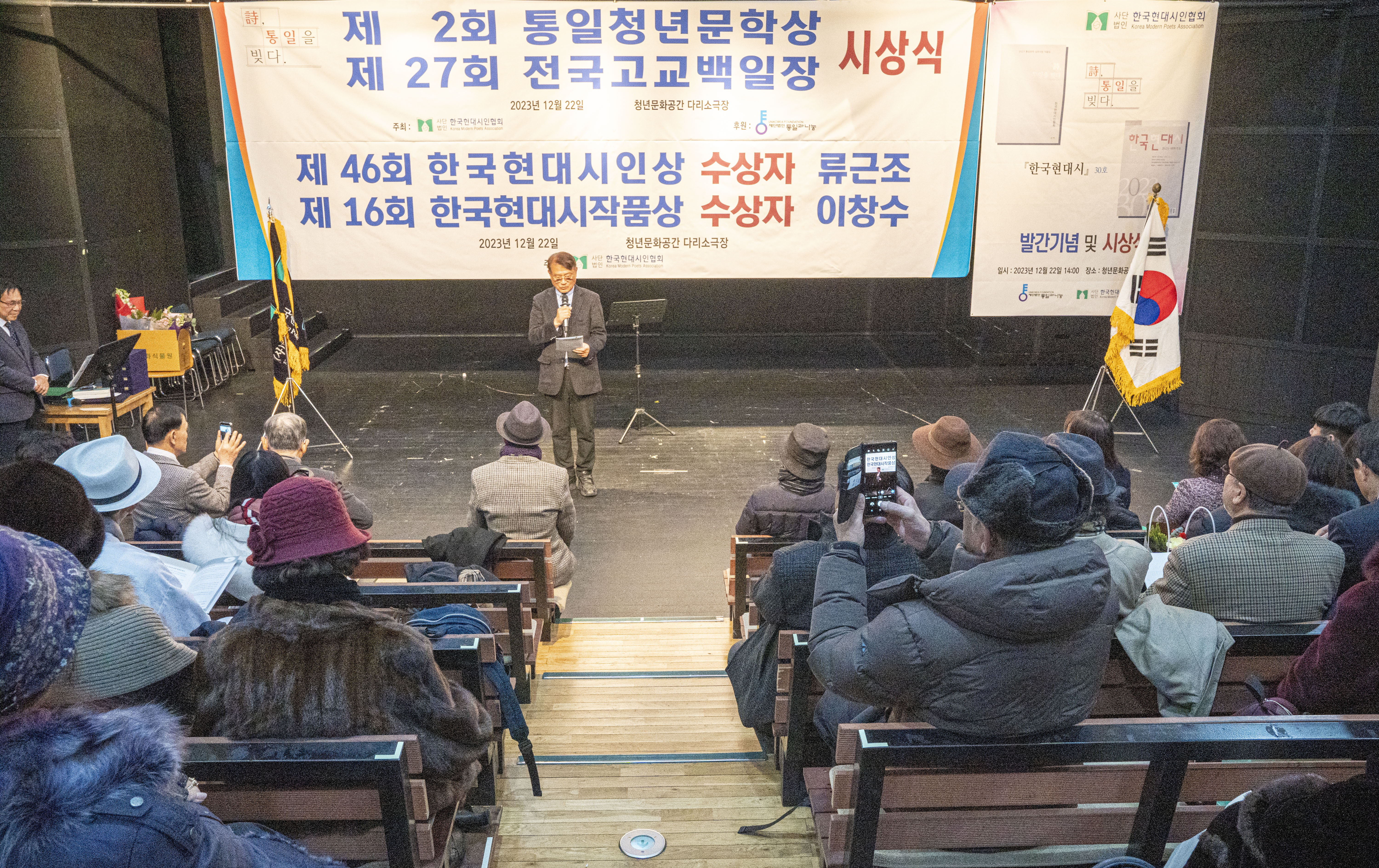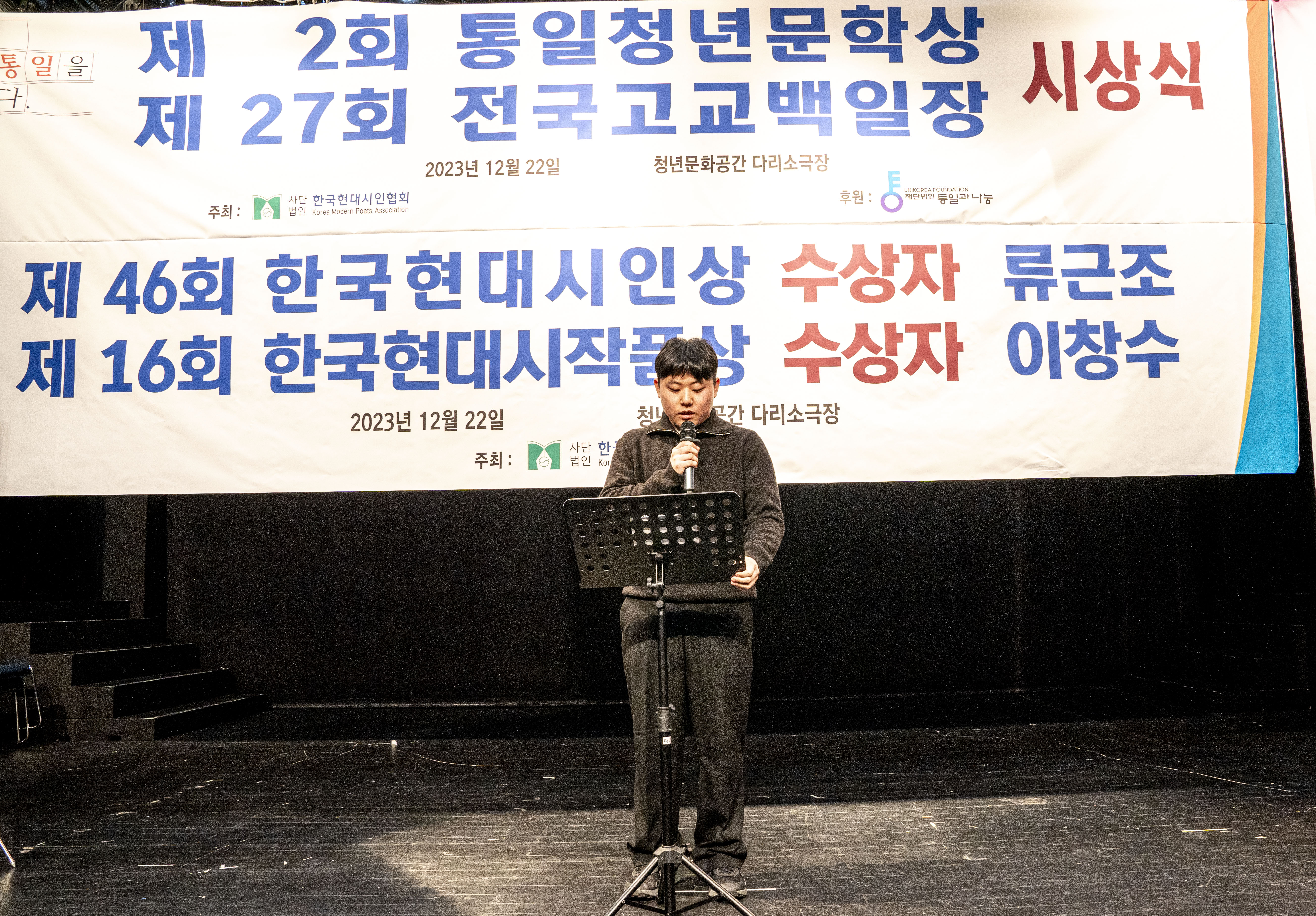 2023. 12. 22 한국현대시인협회에서 제2회 통일 청년문학상 및 제27회 전국 고교백일장 시상식을 다리소극장(홍대입구)에서 가졌다