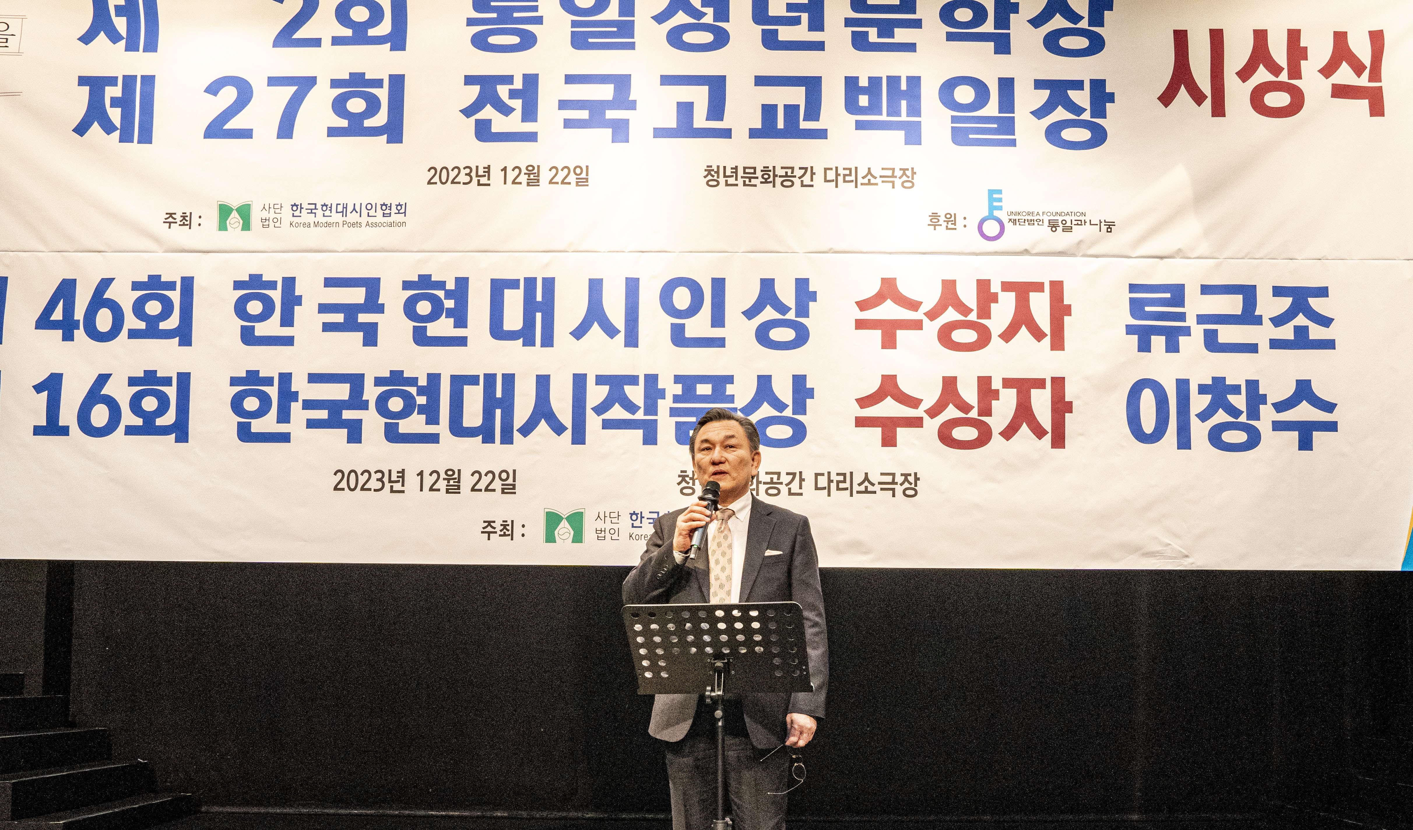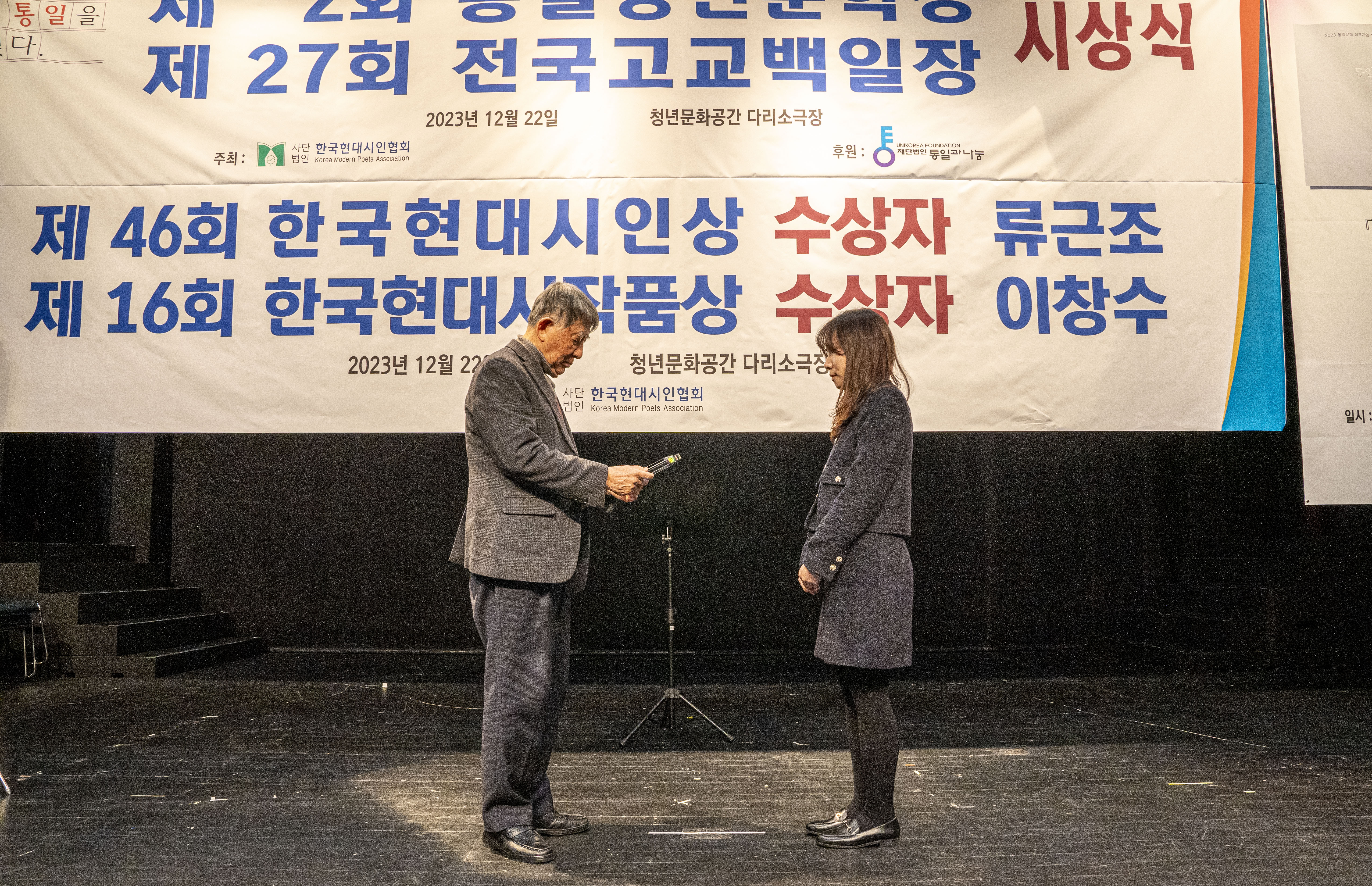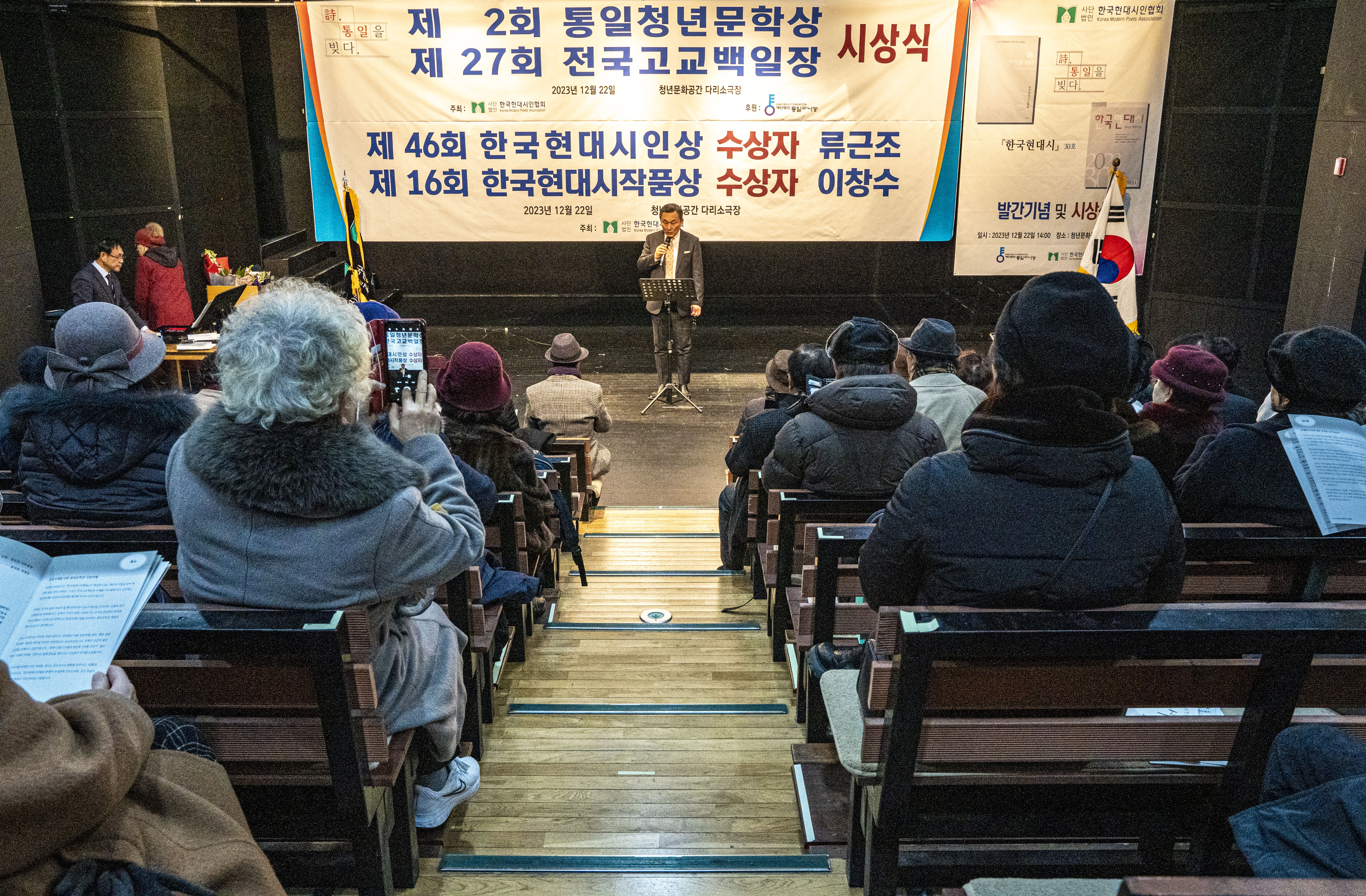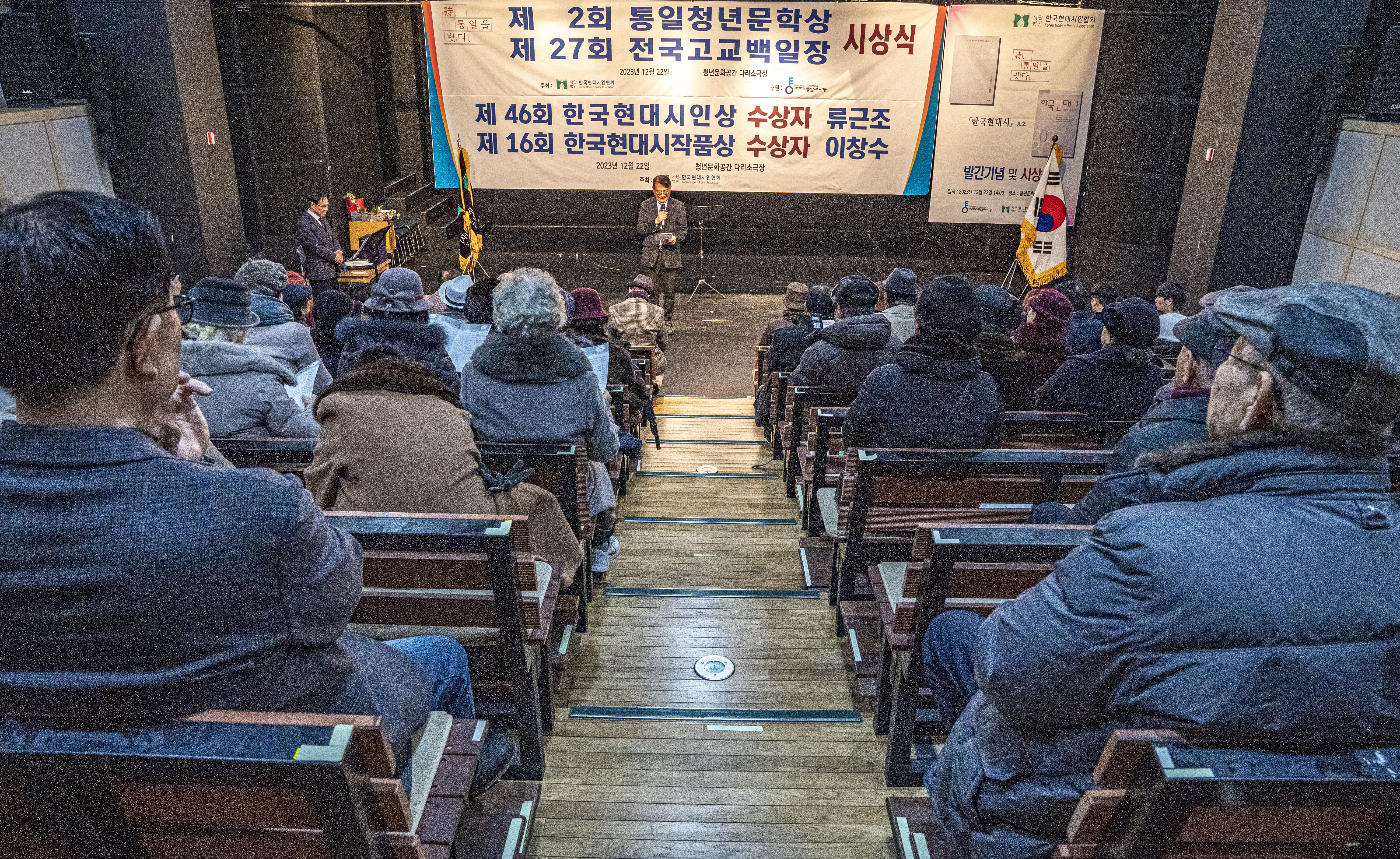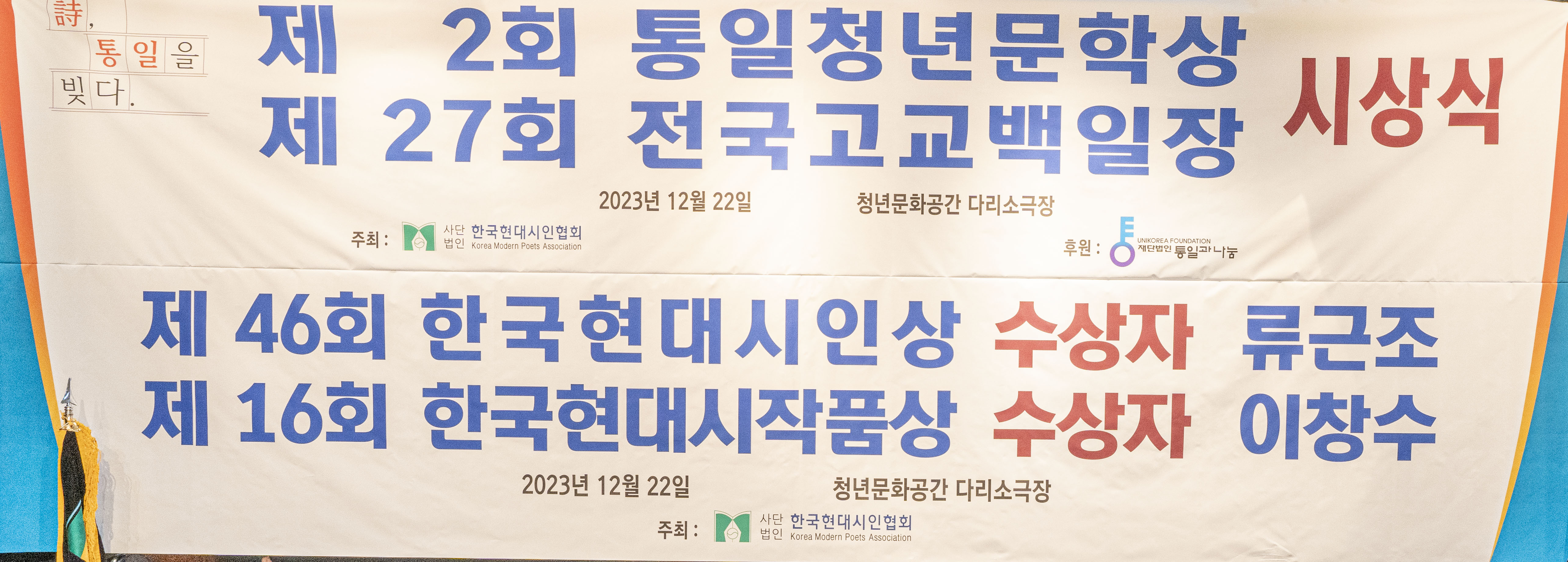2023. 12. 22 한국현대시인협회에서 제2회 통일 청년문학상 및 제27회 전국 고교백일장 시상식을 다리소극장(홍대입구)에서 가졌다