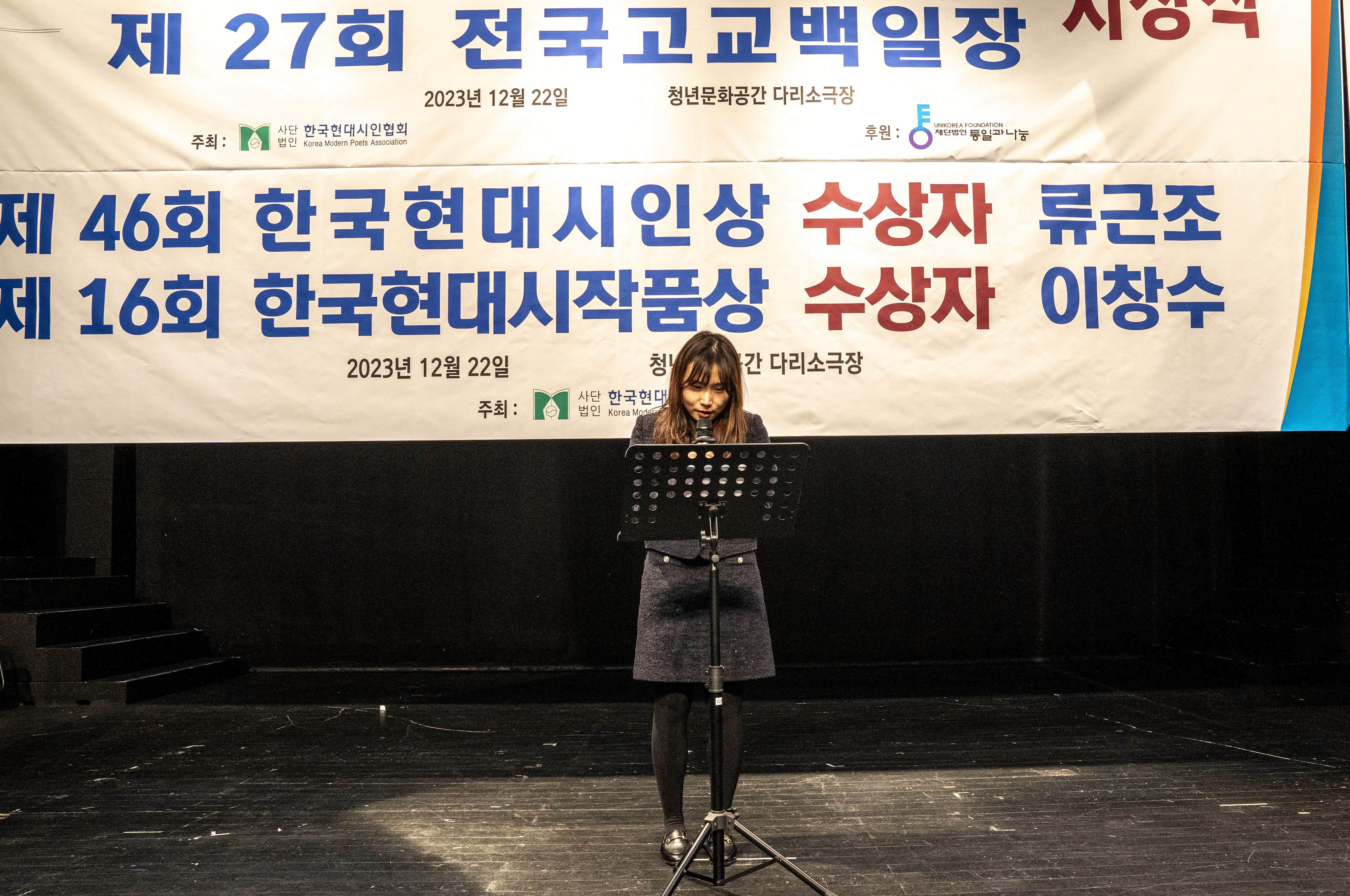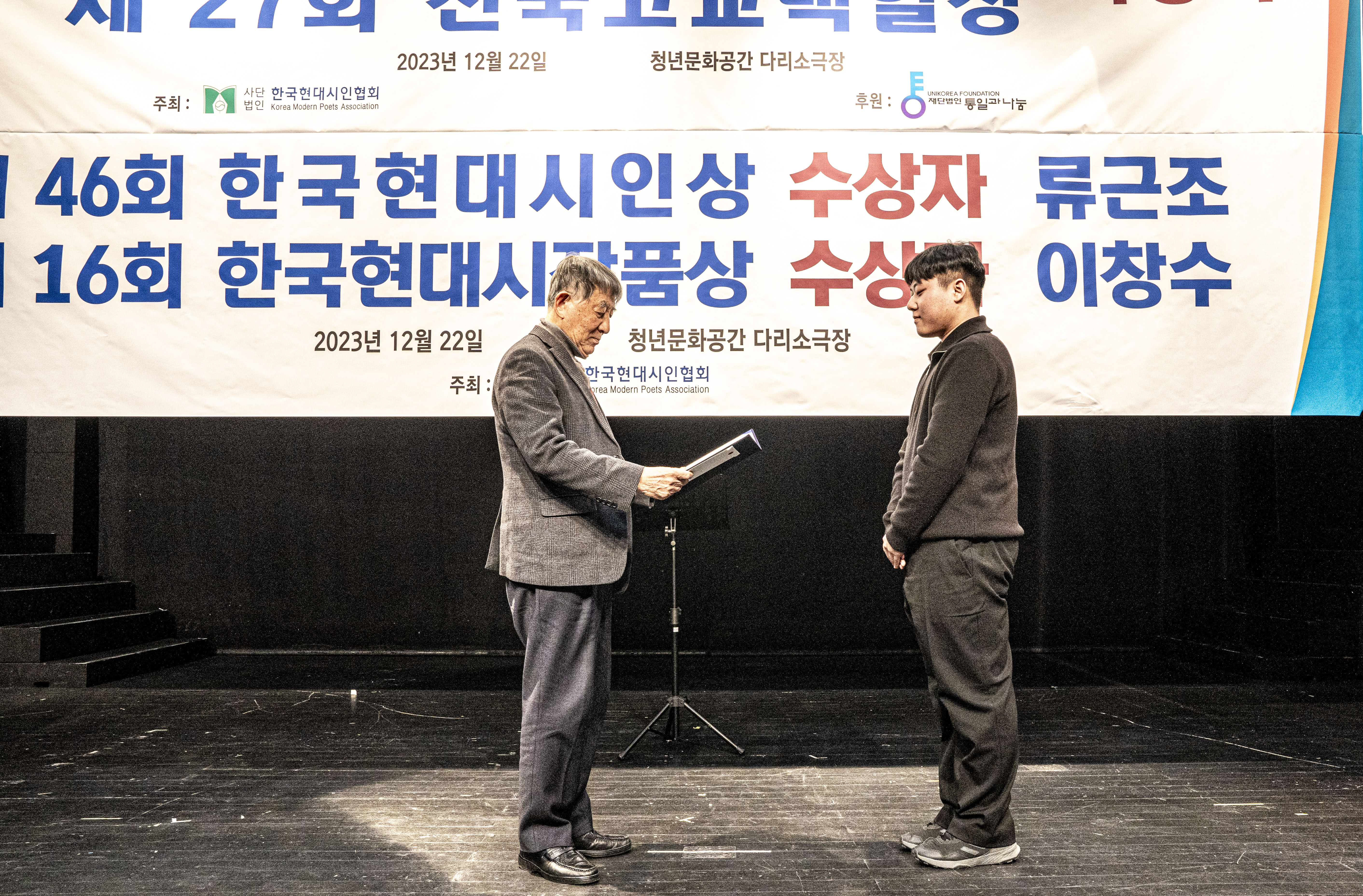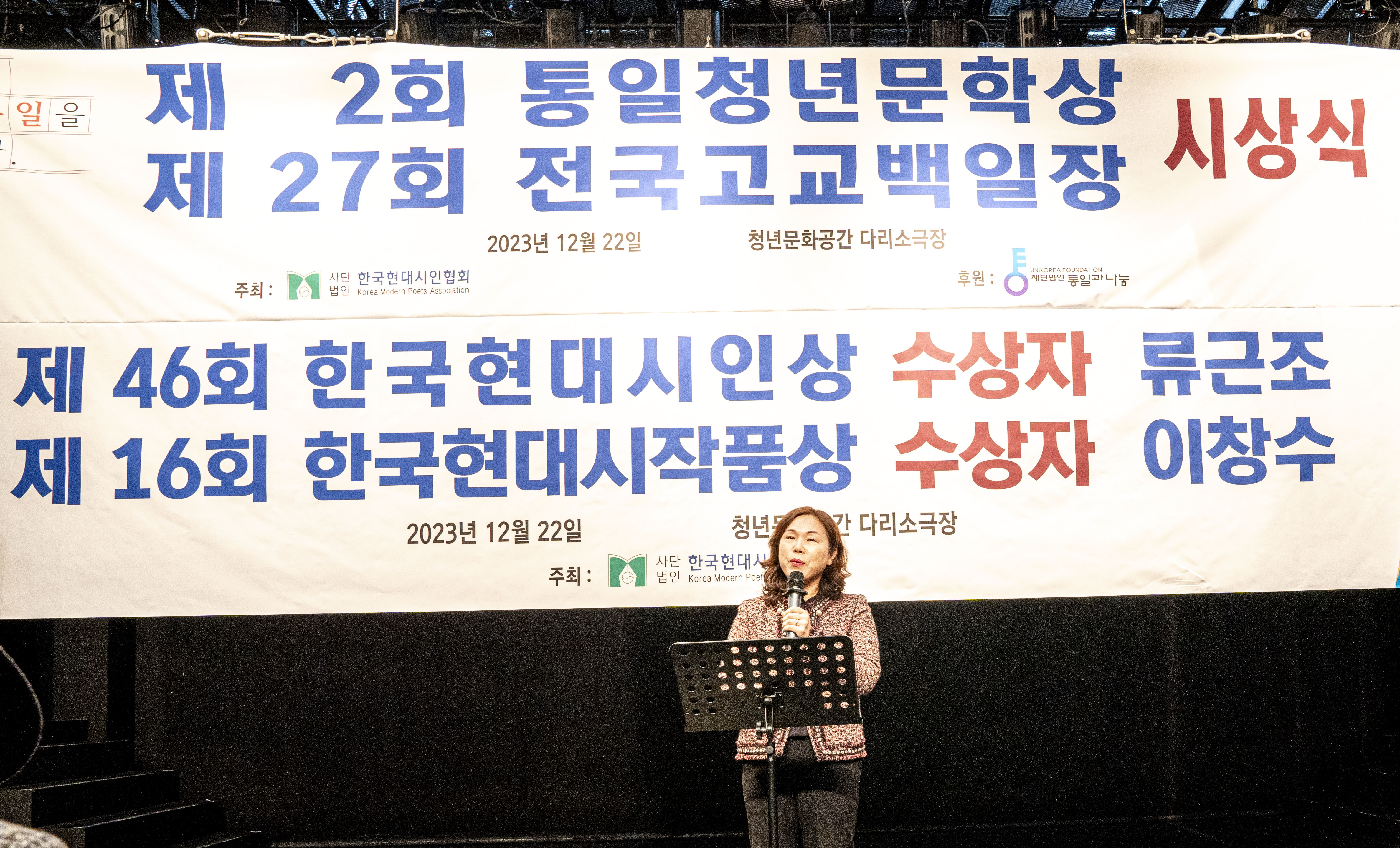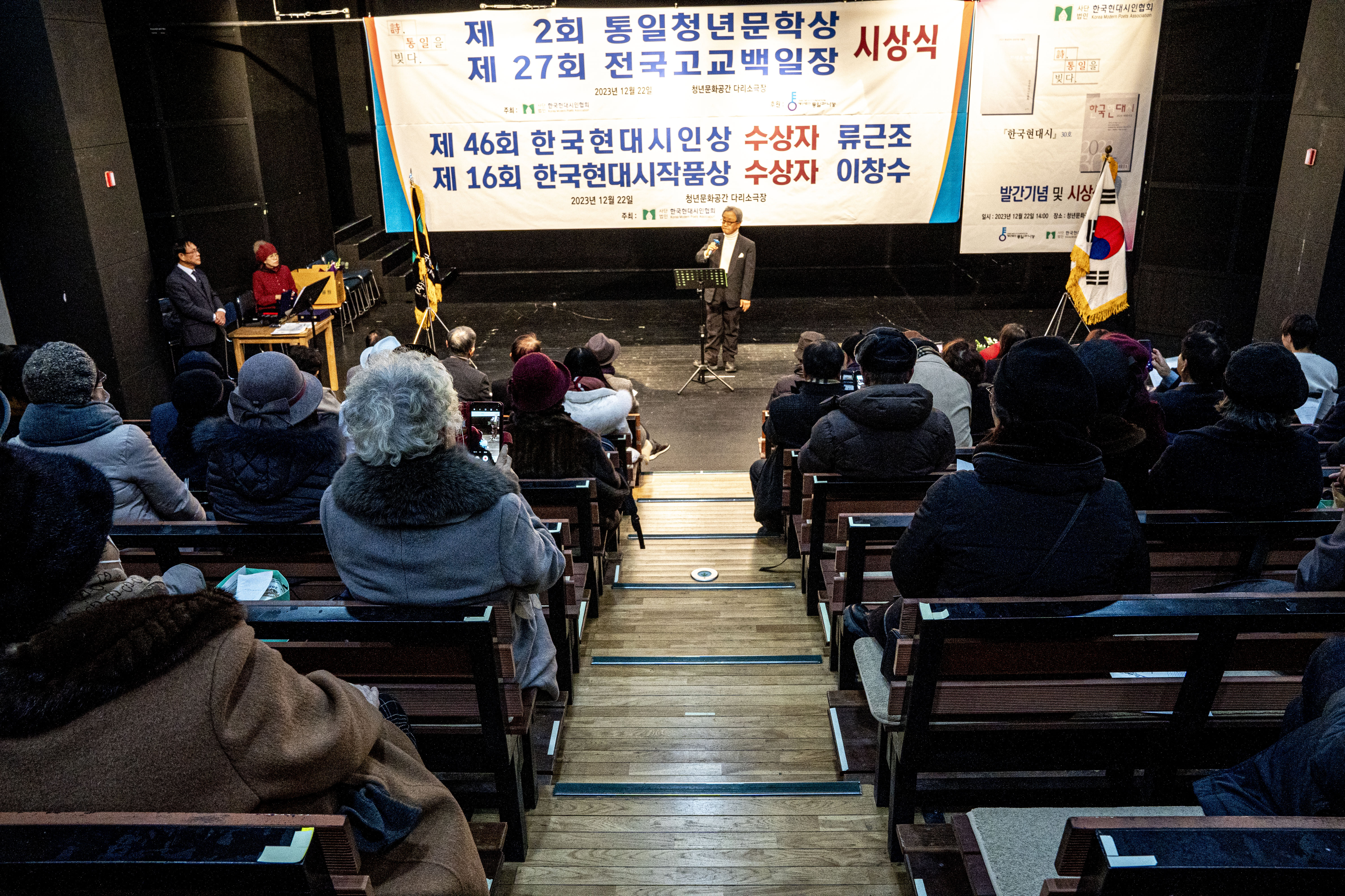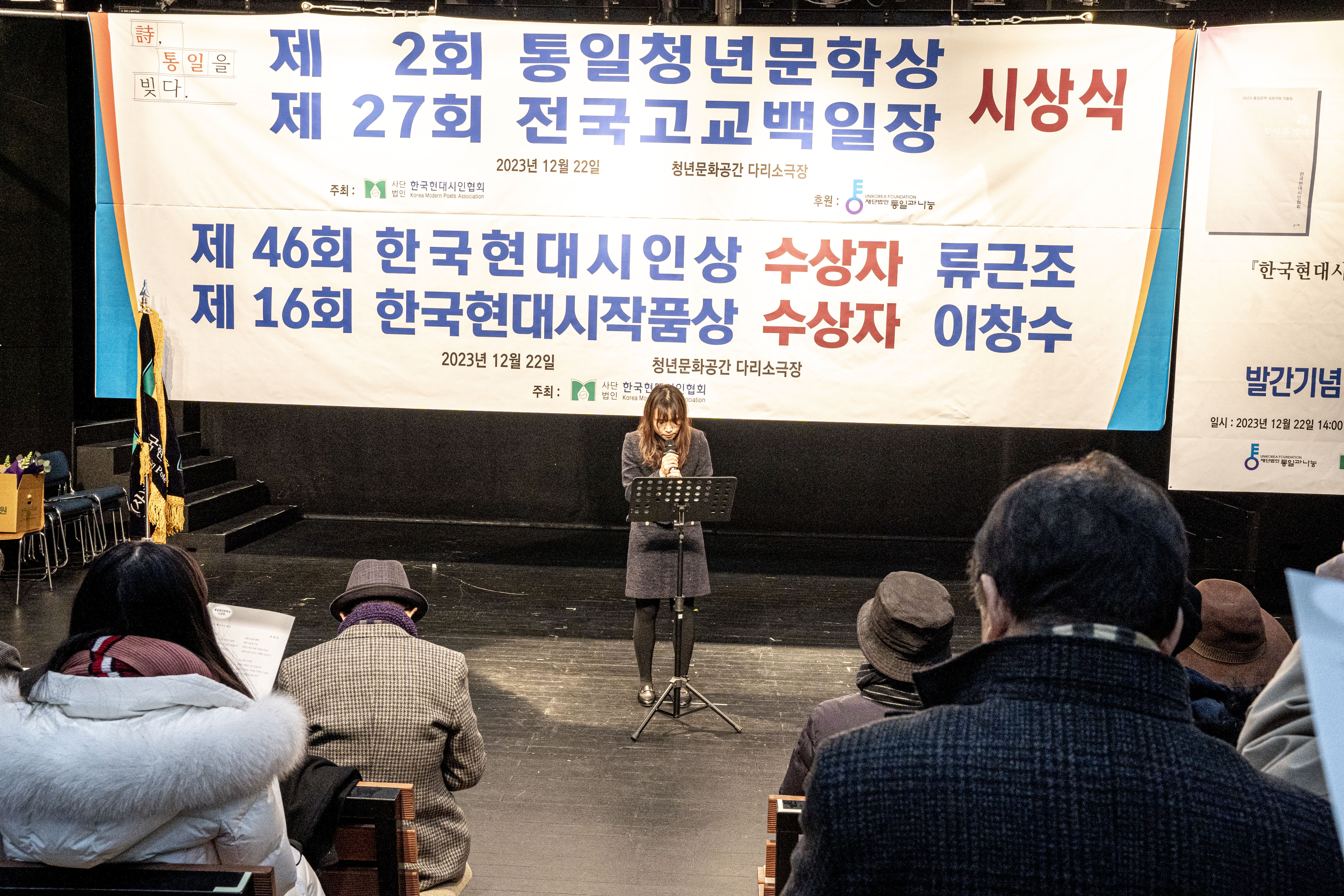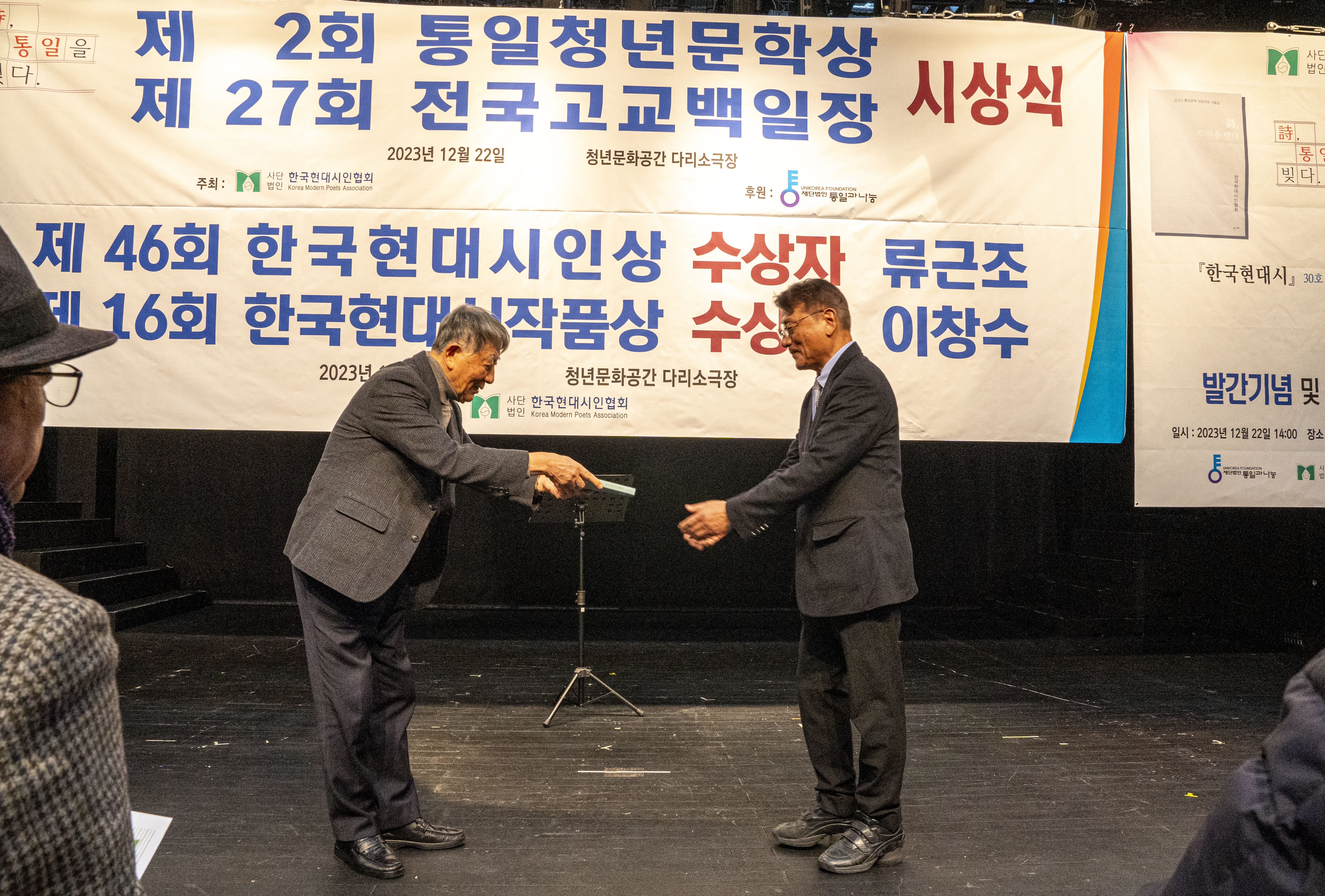 2023. 12. 22 한국현대시인협회에서 제2회 통일 청년문학상 및 제27회 전국 고교백일장 시상식을 다리소극장(홍대입구)에서 가졌다