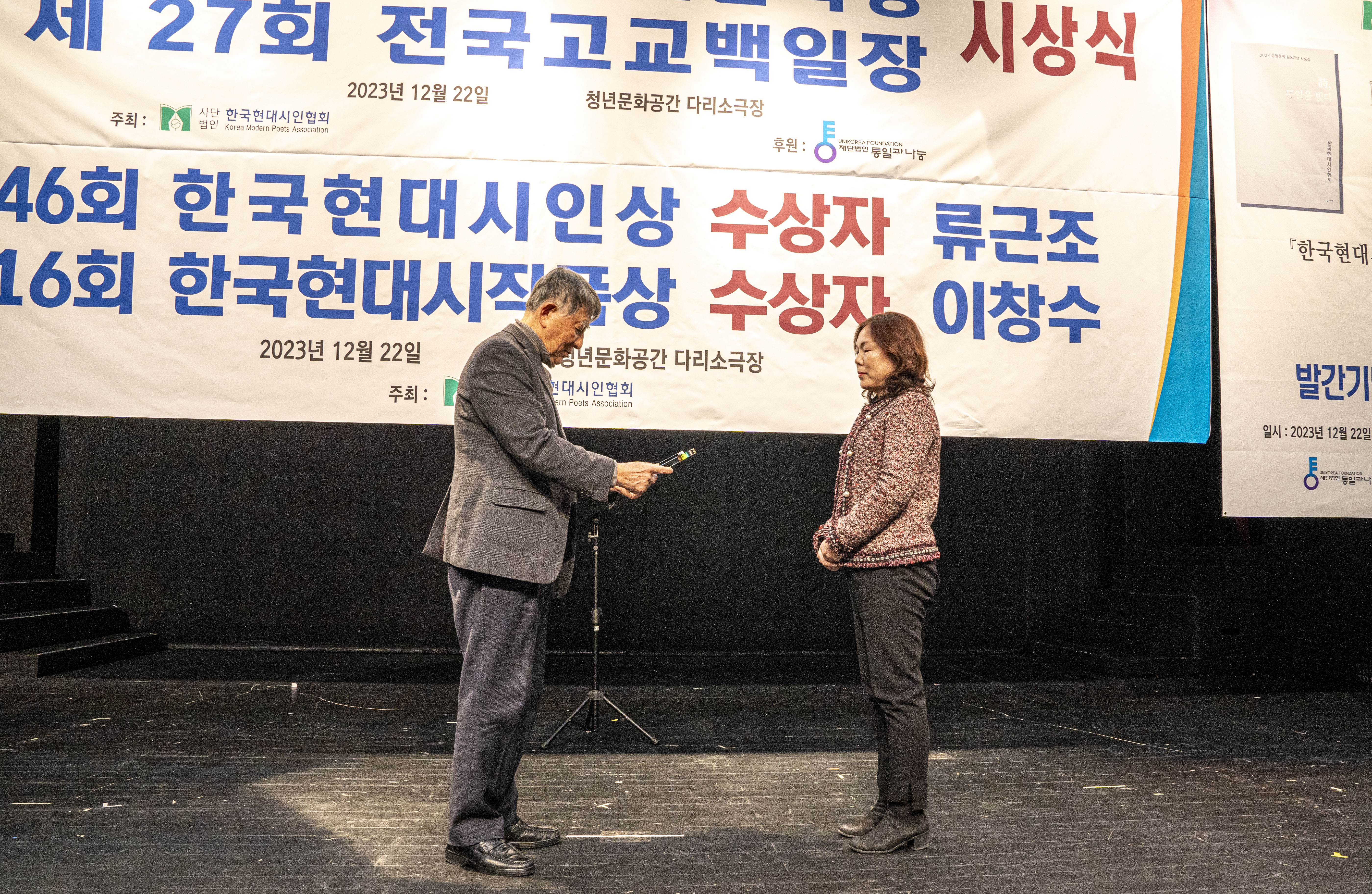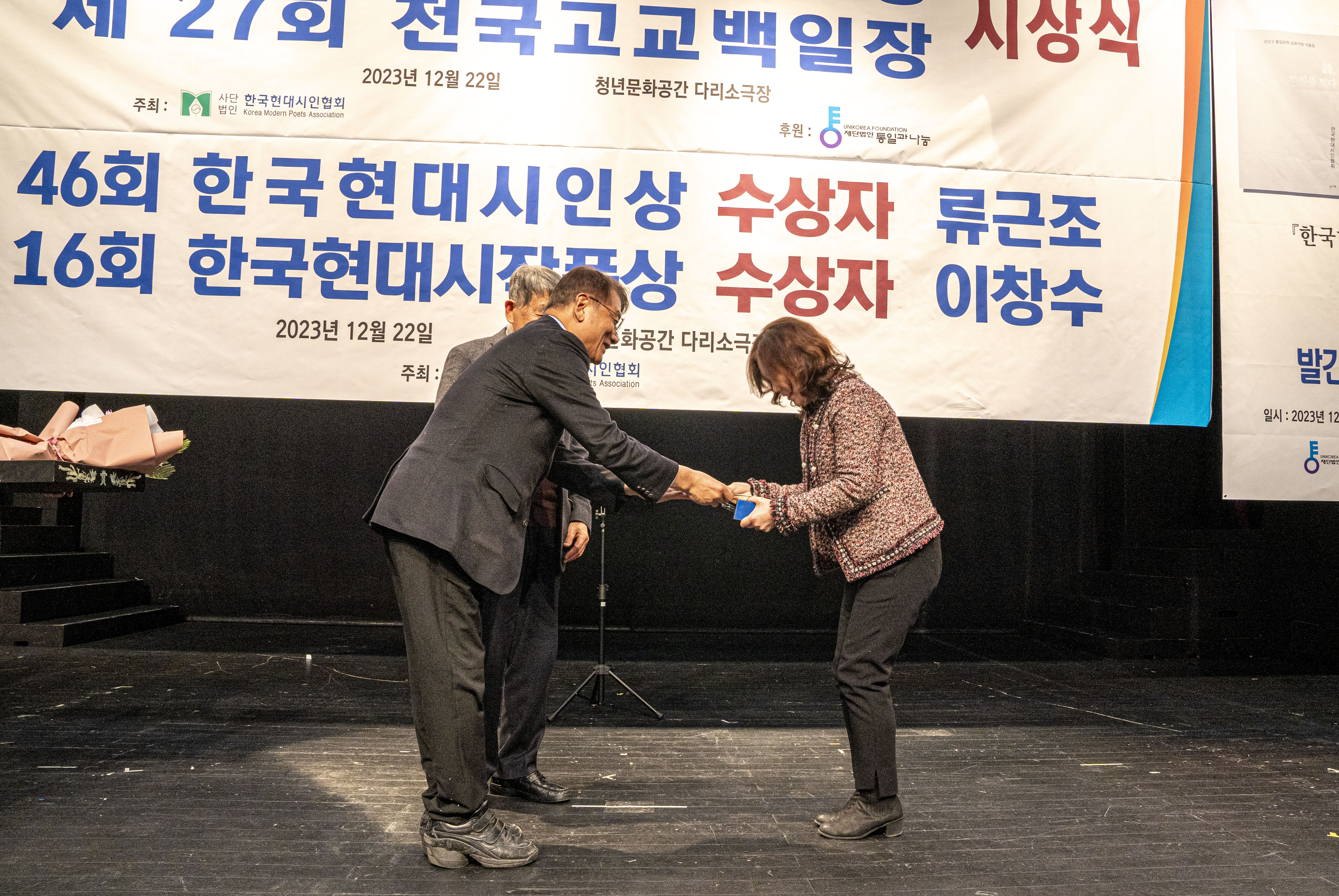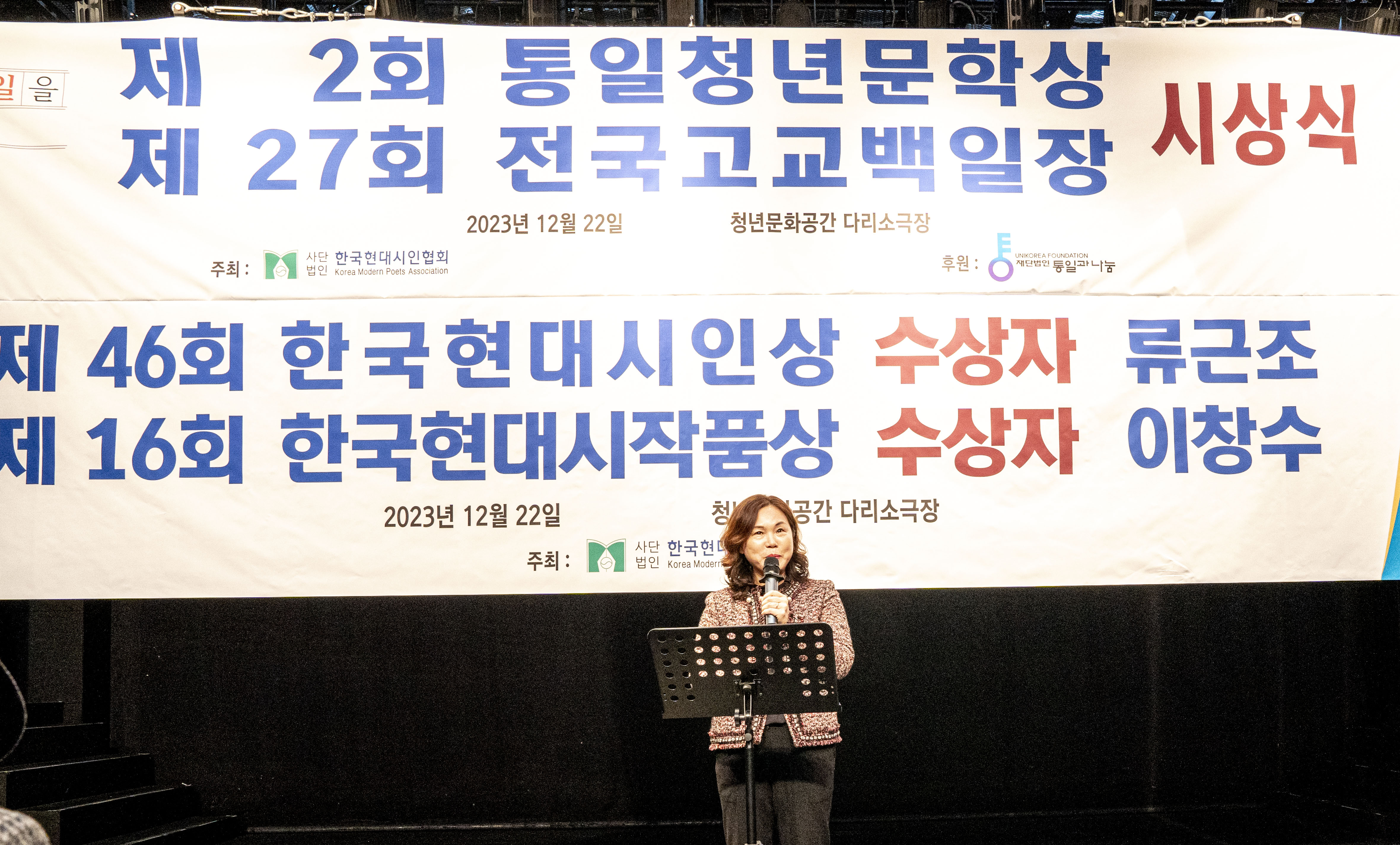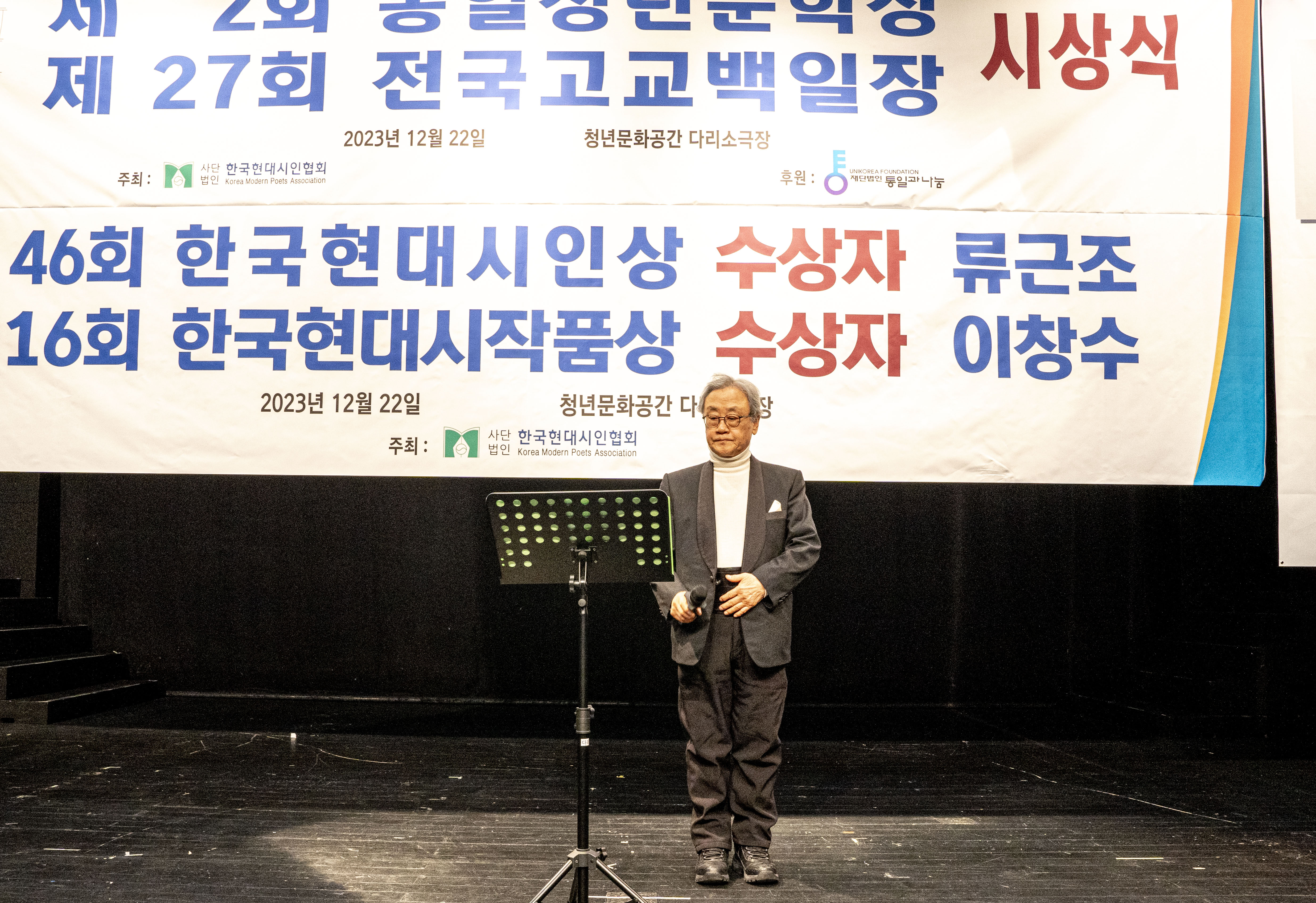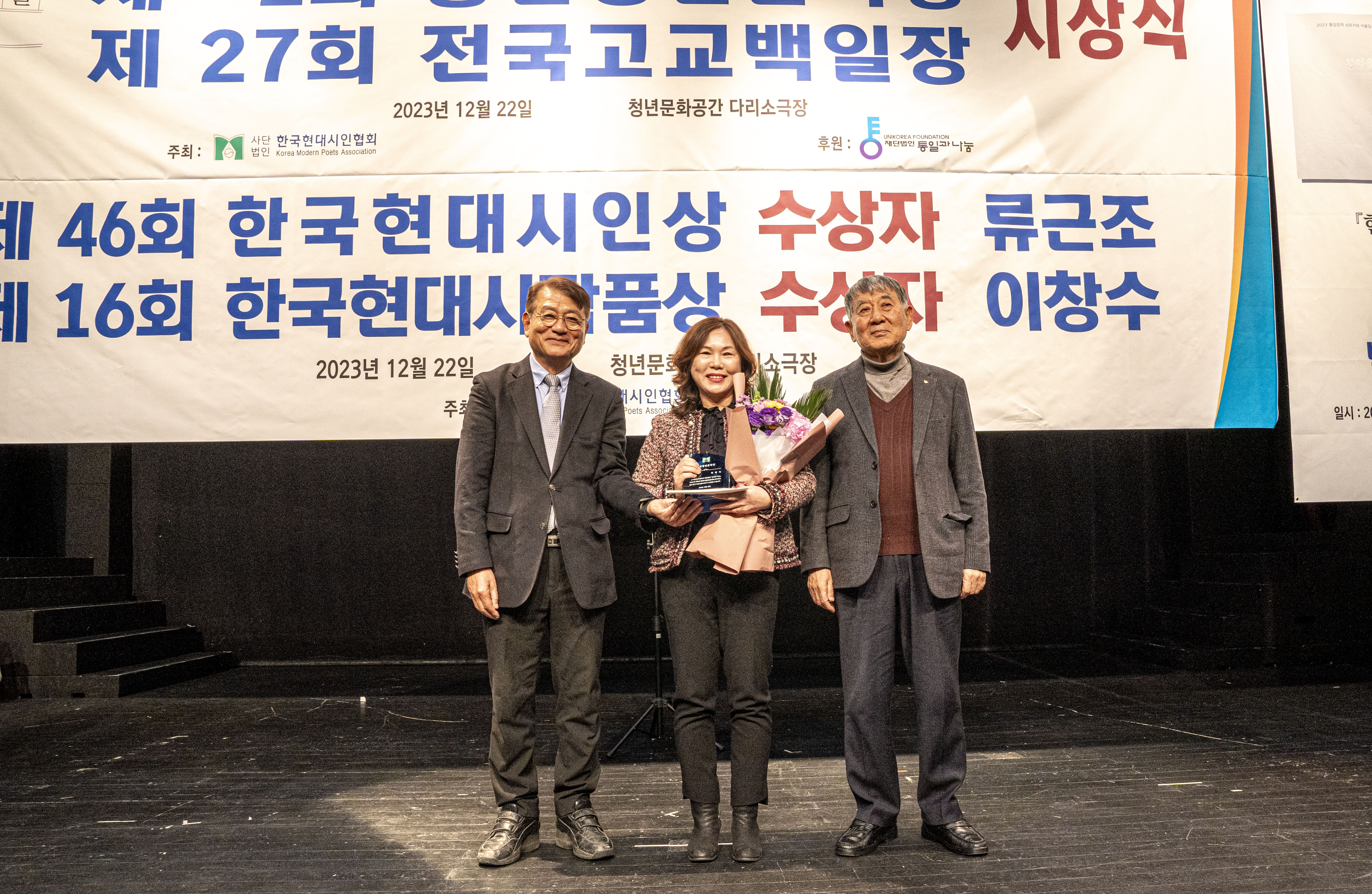 2023. 12. 22 한국현대시인협회에서 제2회 통일 청년문학상 및 제27회 전국 고교백일장 시상식을 다리소극장(홍대입구)에서 가졌다