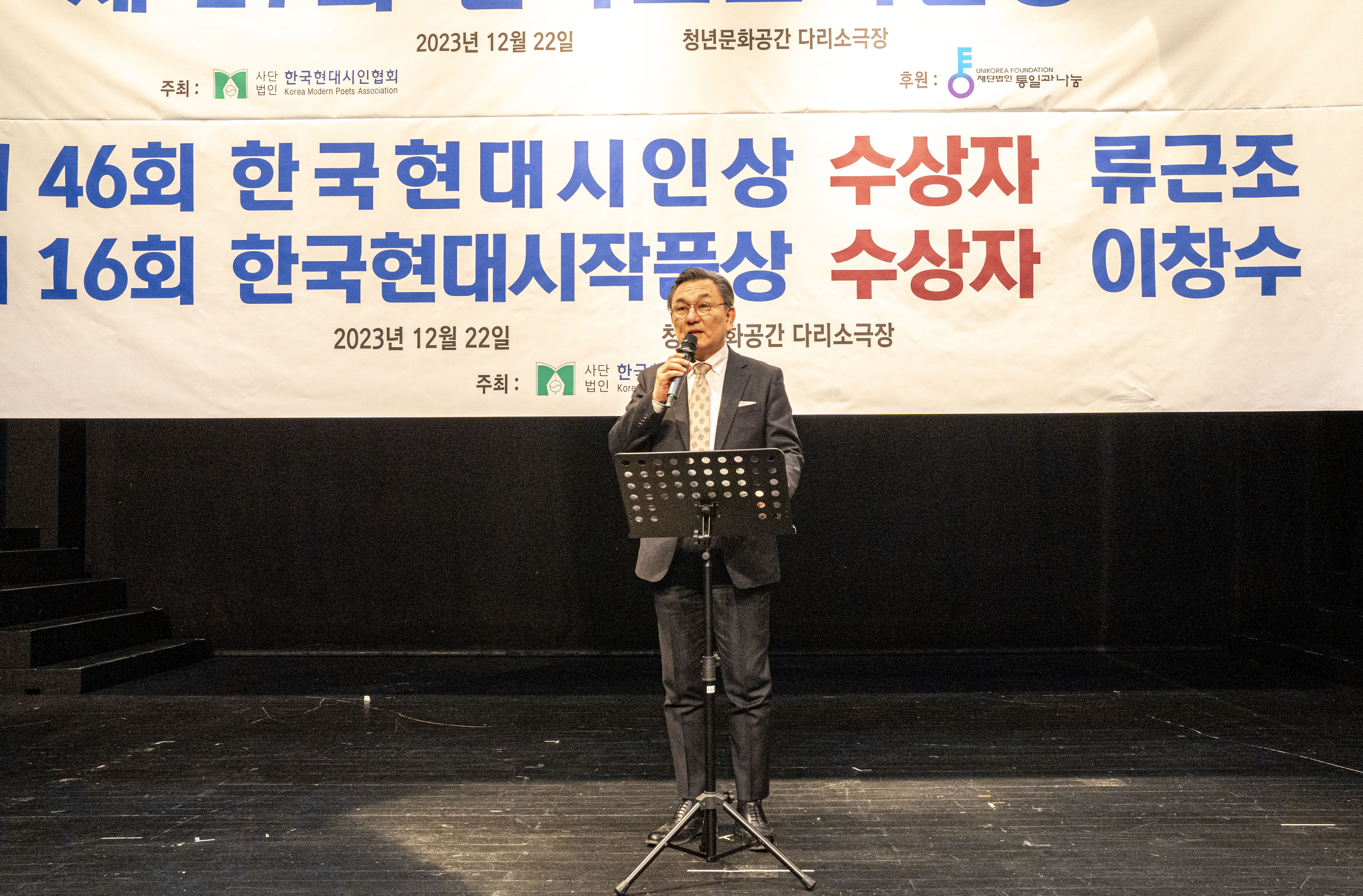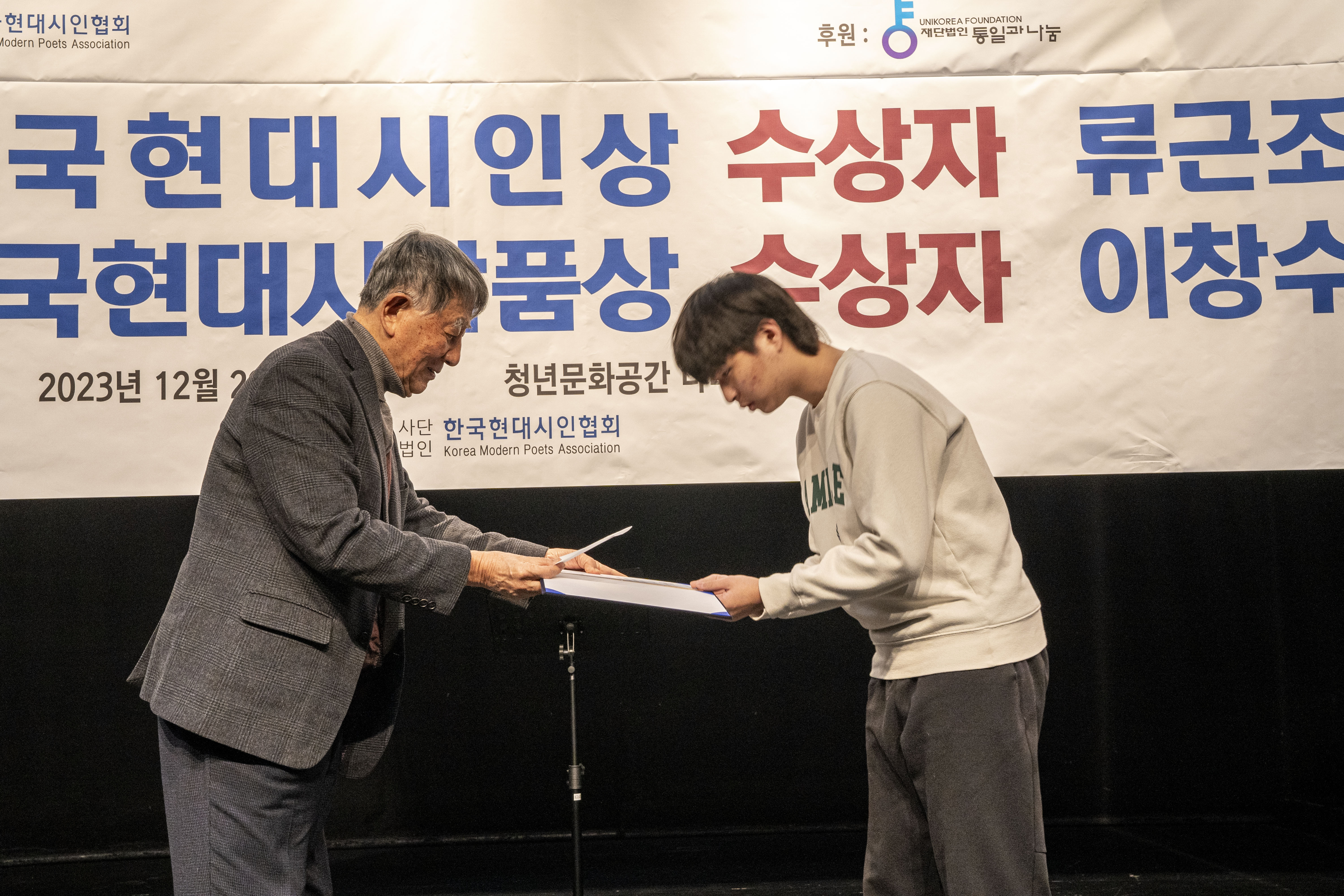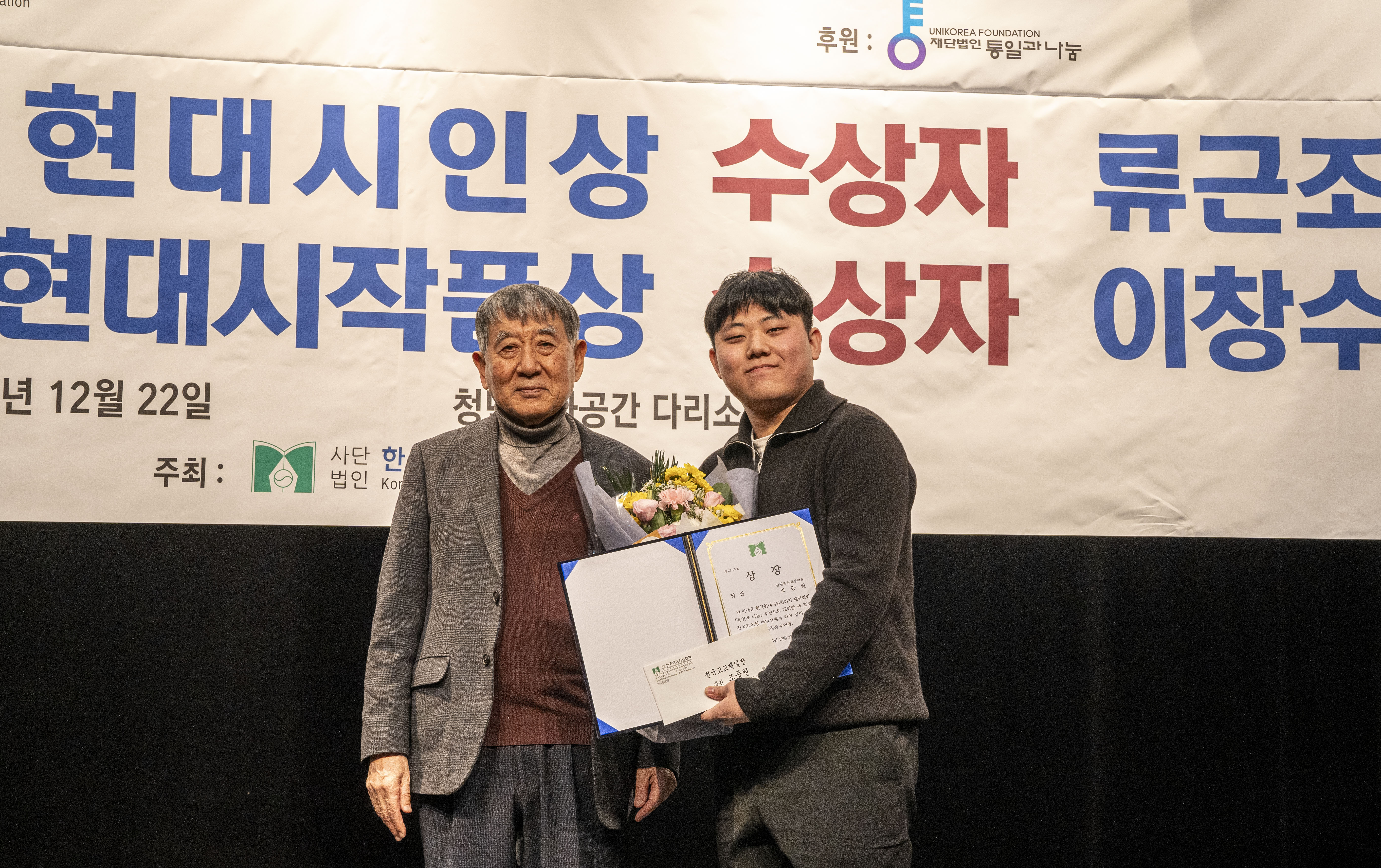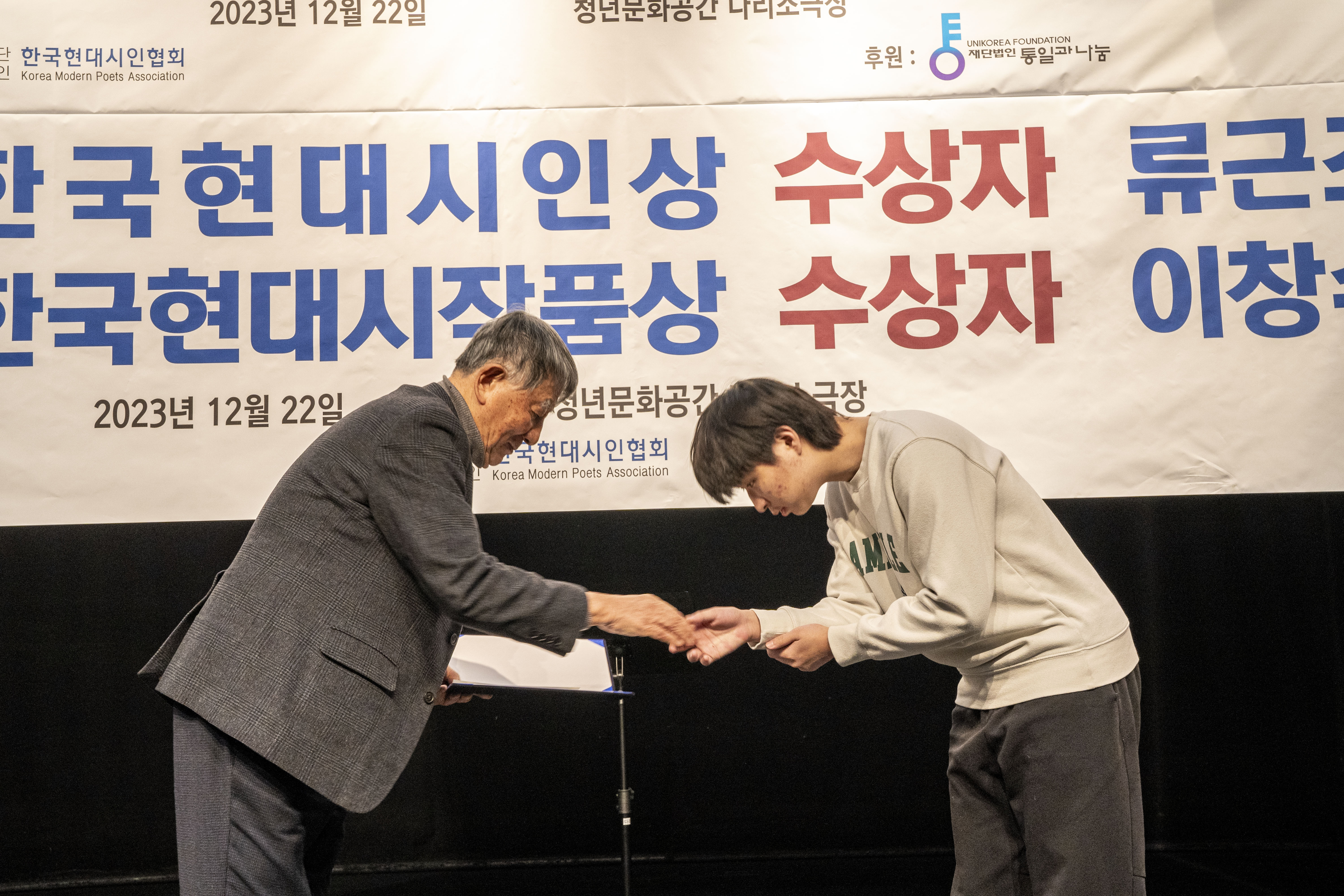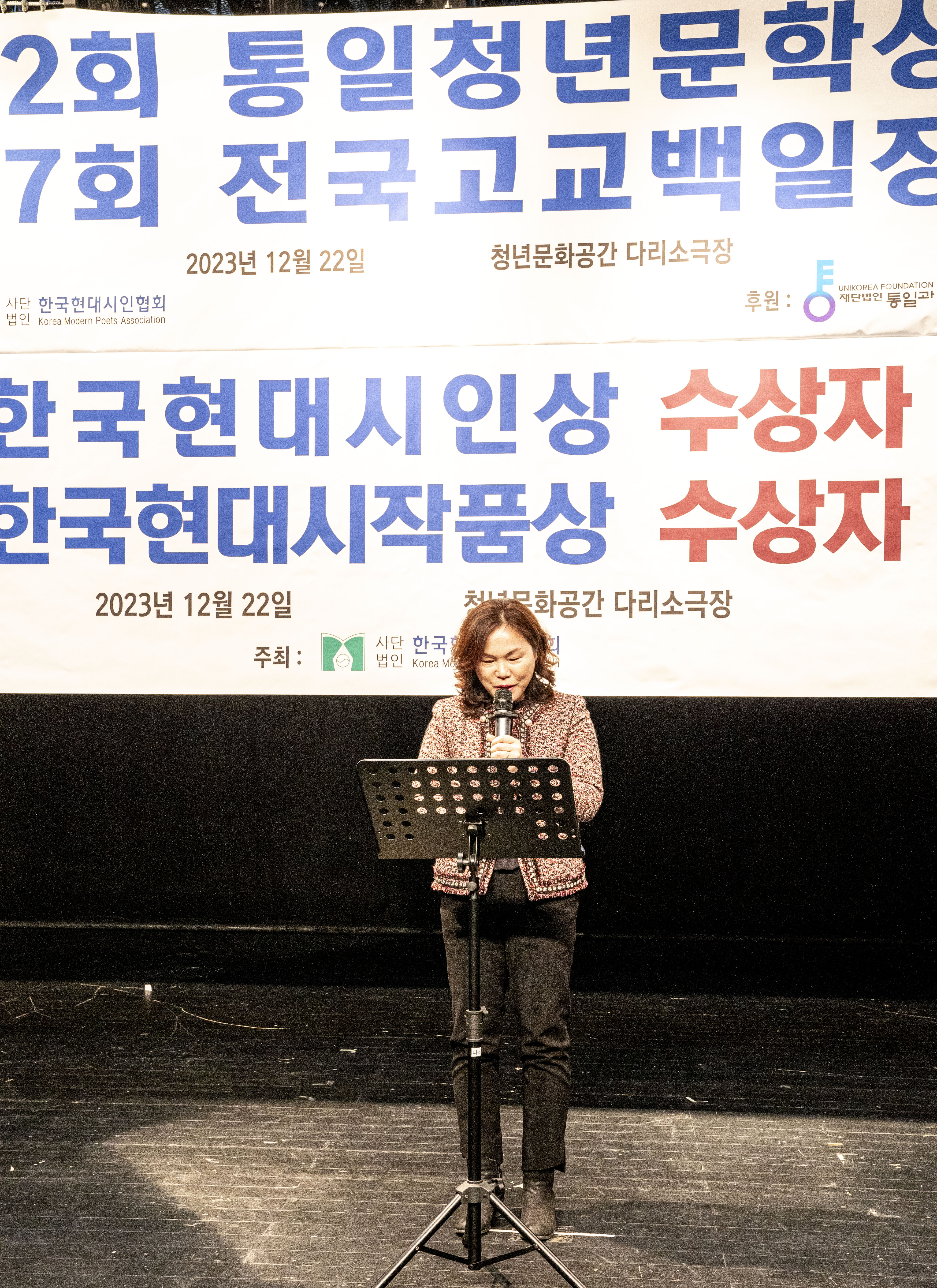 2023. 12. 22 한국현대시인협회에서 제2회 통일 청년문학상 및 제27회 전국 고교백일장 시상식을 다리소극장(홍대입구)에서 가졌다