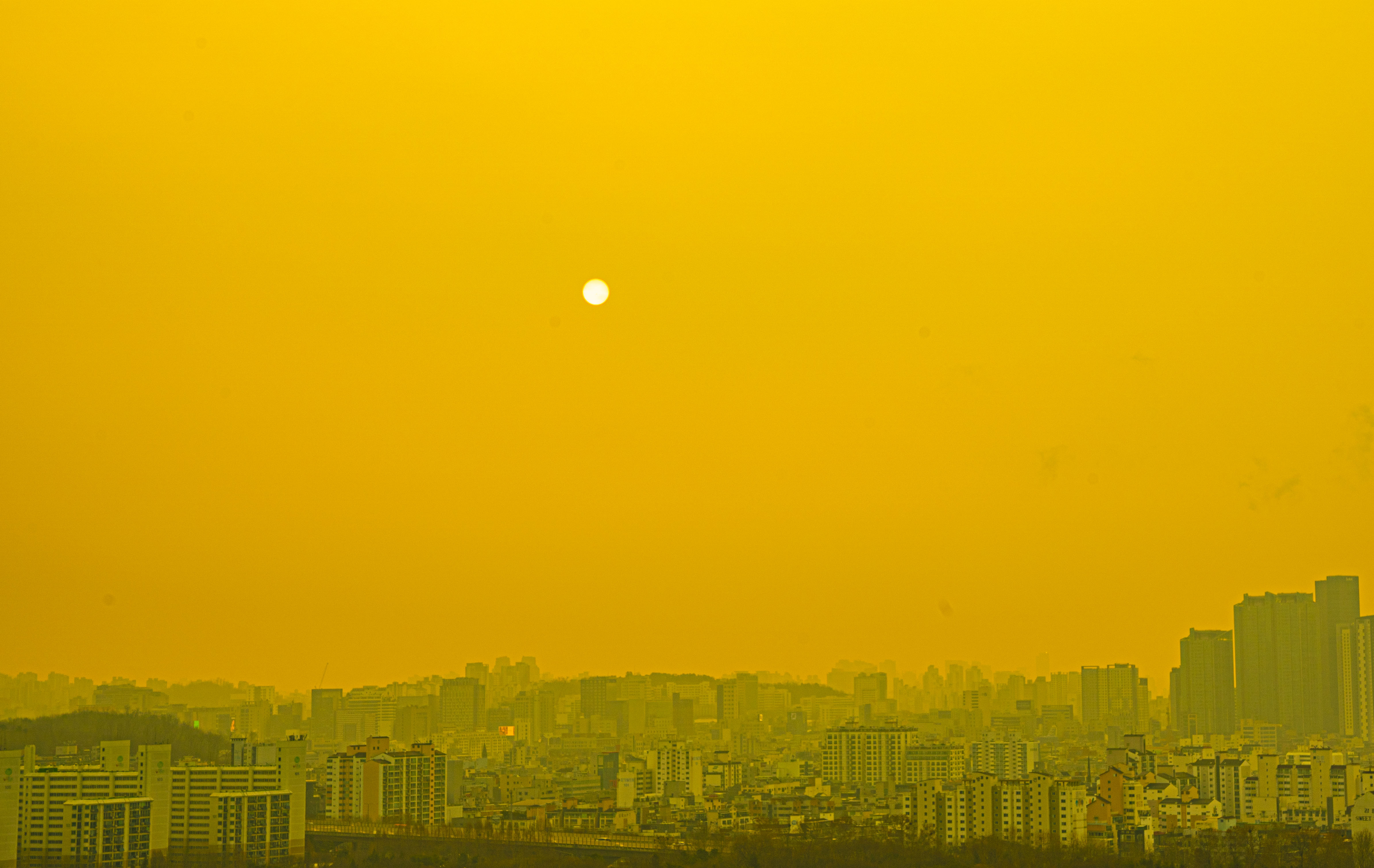 시각은 07:48:08에 지표를 훨씬 떠올라 안개속에서 설날 해의 모습을 드러낸다