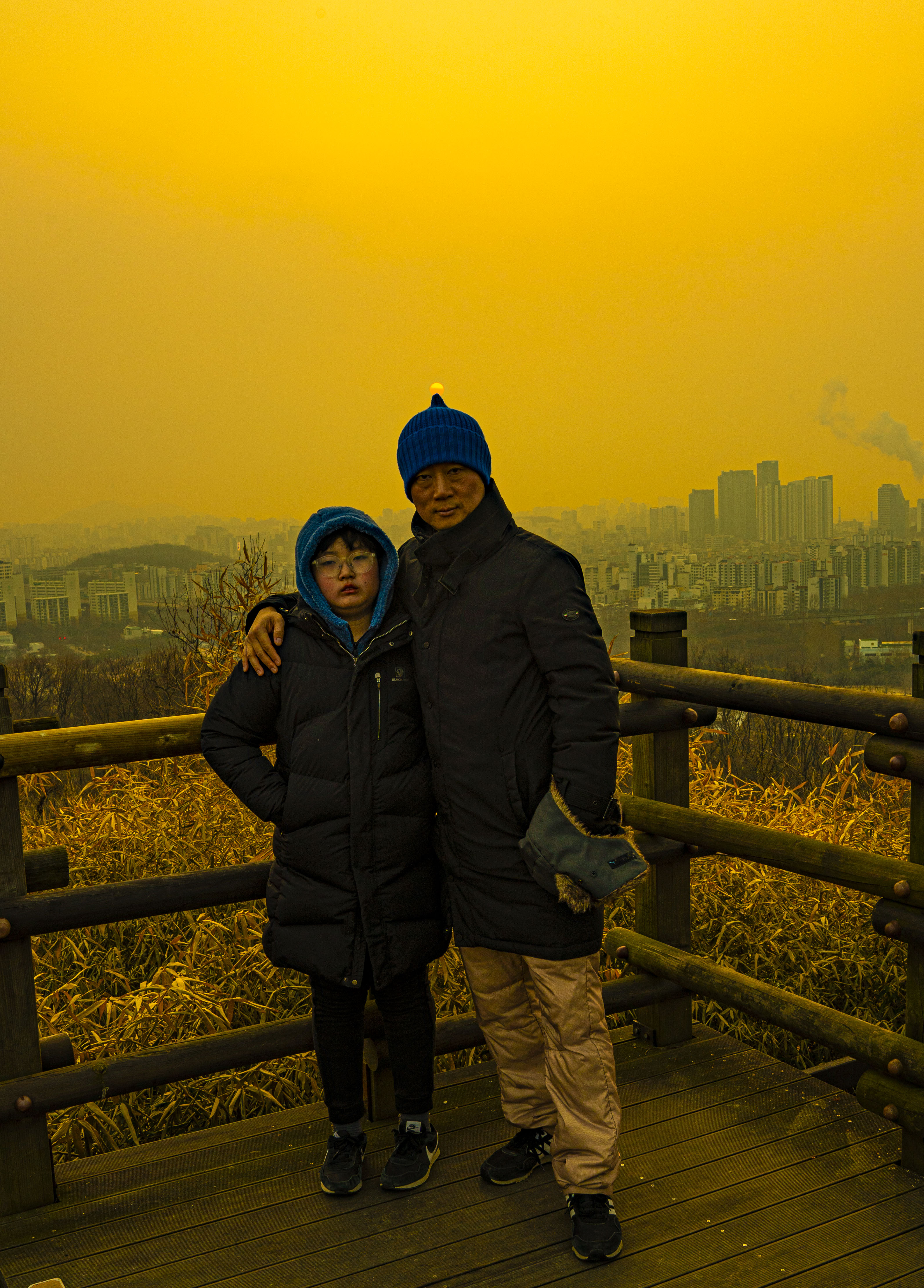 하늘공원 한강변쪽으로 해맞이 전망대에 벌써 수십명의 해맞이객들이 자리를 잡고 기다리고 있다